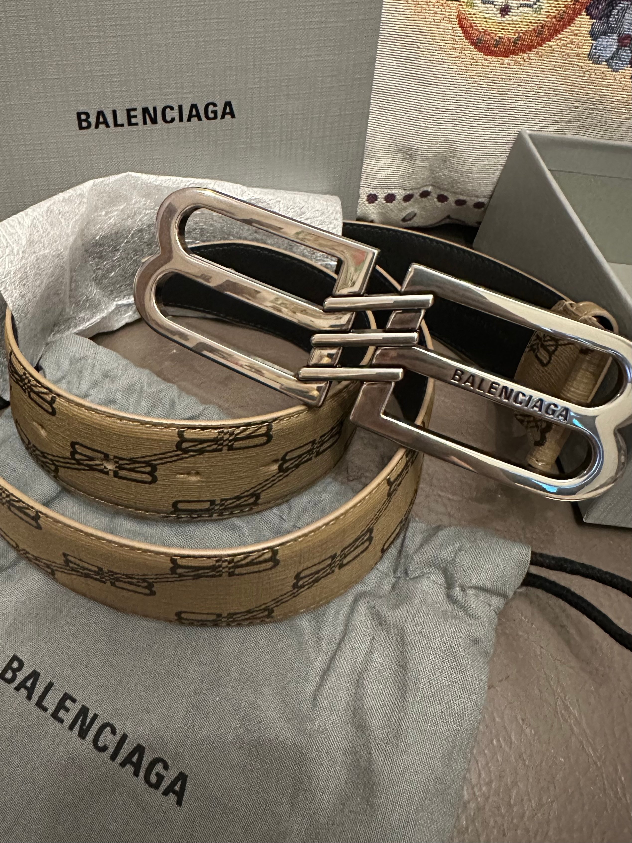 全新 100%new brand new 未使用品 Balenciaga monogram belt Size 100 Comes with ☑️dust bag ☑️ box Total length include the buckle 124cm size 100 unisex 男女都👌 this category is not available for in-store fitting or viewing of the actual items. Purchases can only be made online only 此類別不適用於店內試穿或到門市睇實物 只能在網頁線上購買