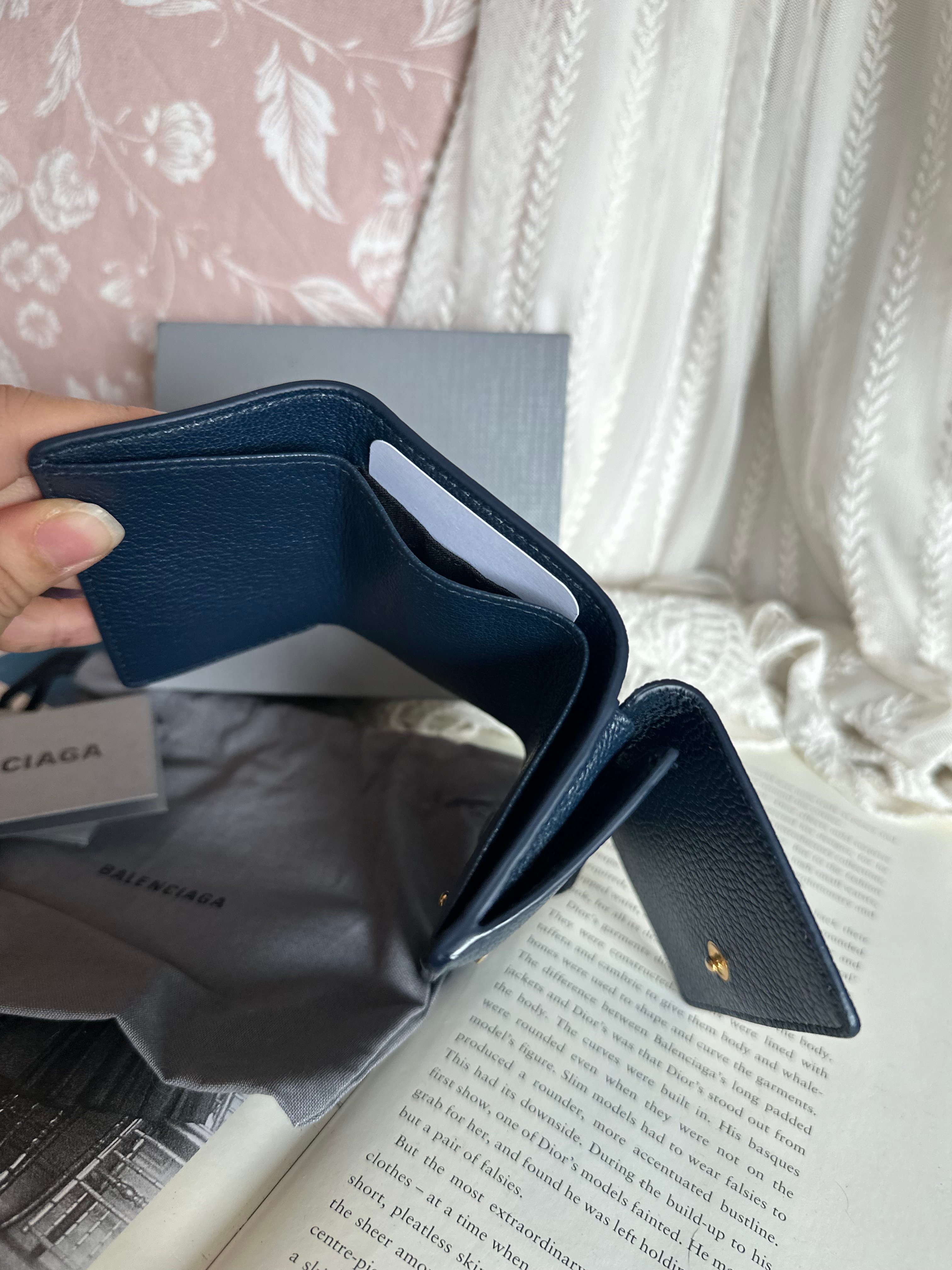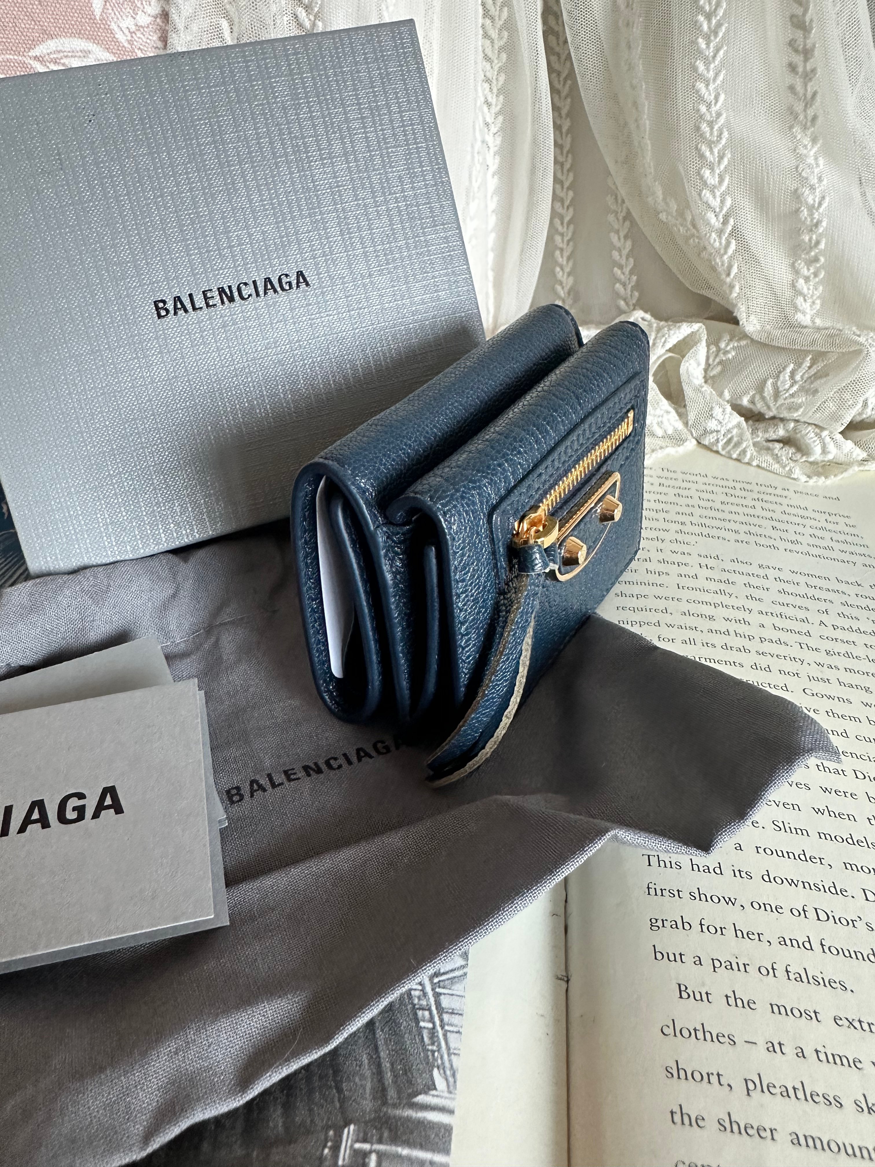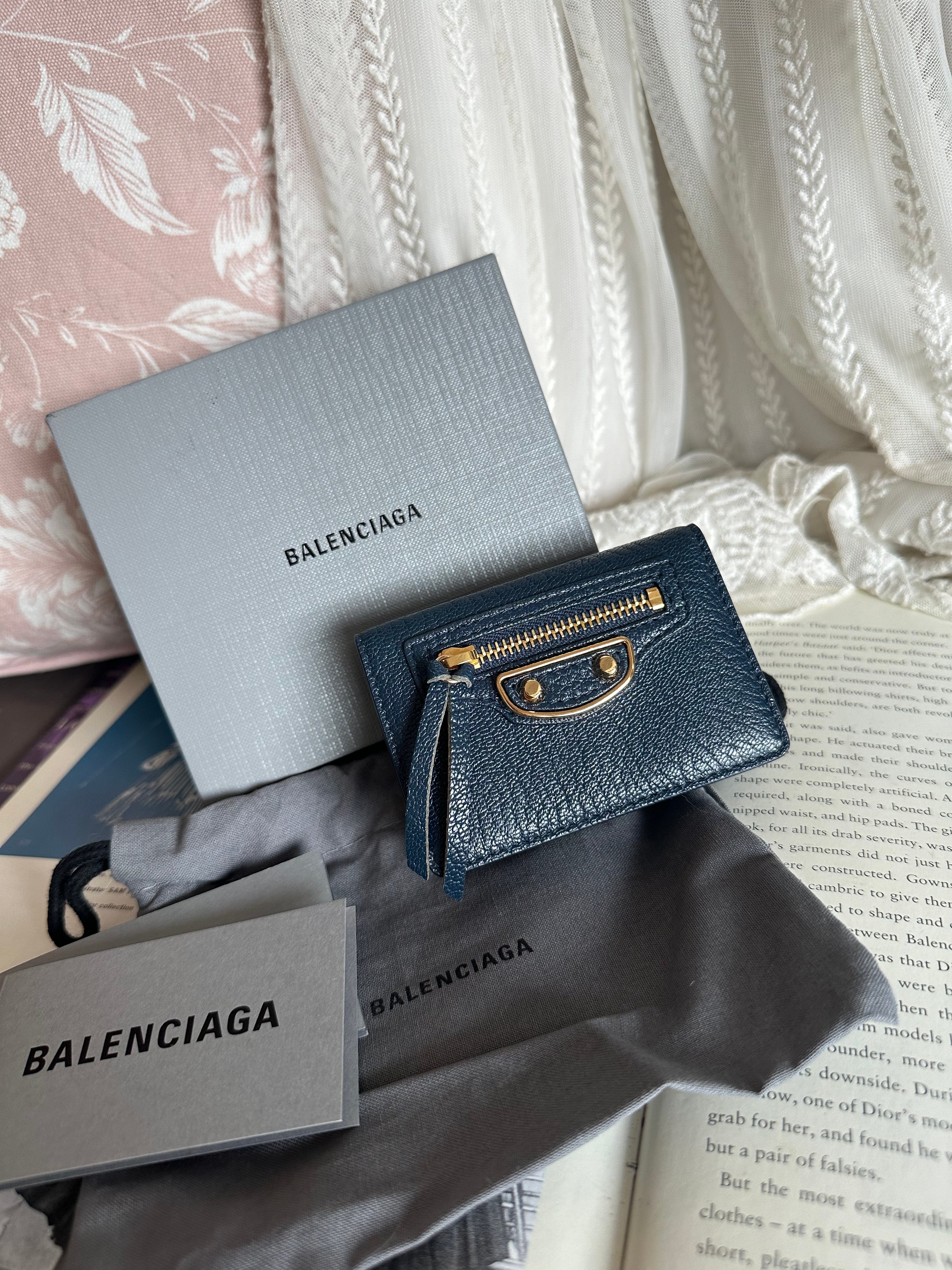 全新100%new brand new未使用品 巴黎世家 balenciaga Everyday Balenciaga Mini Leather Trifold Wallet Navy blue