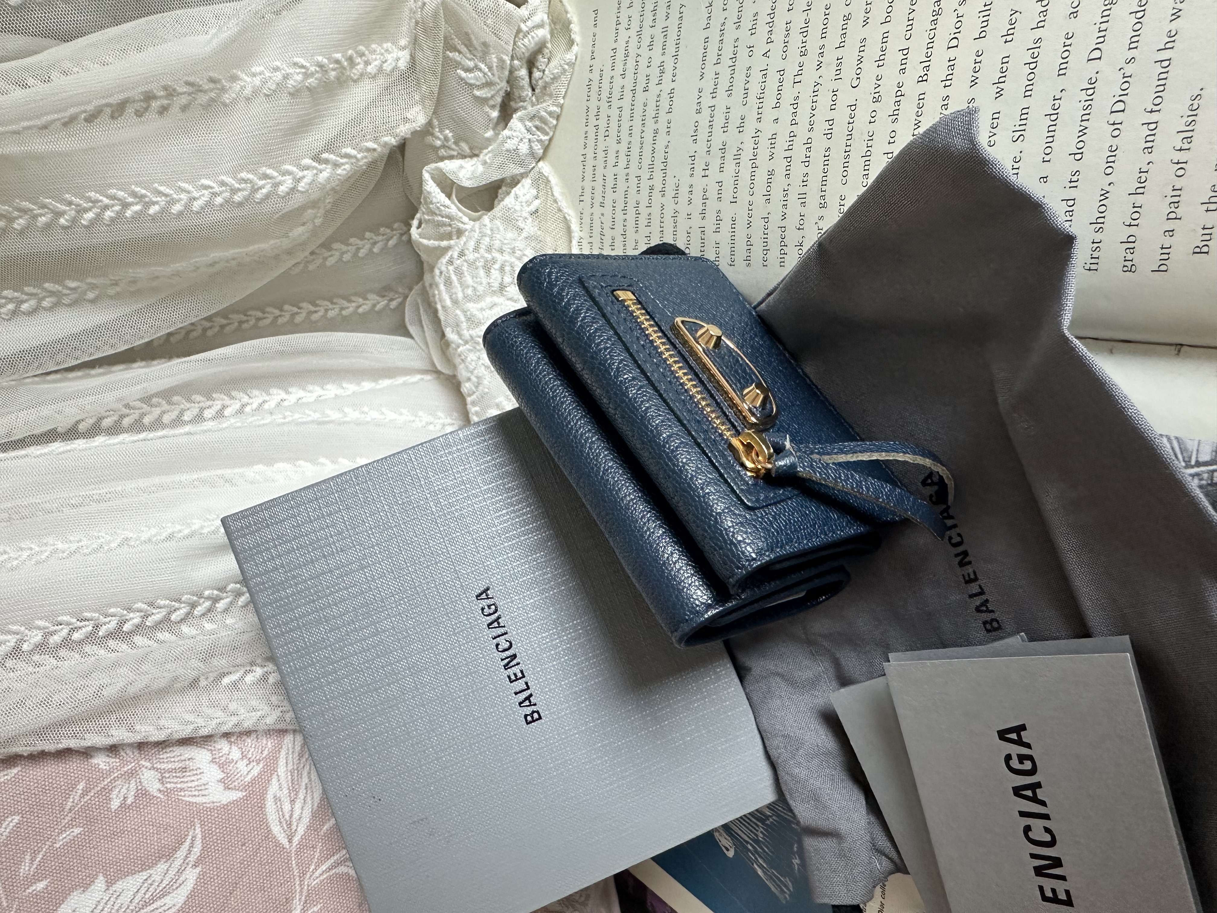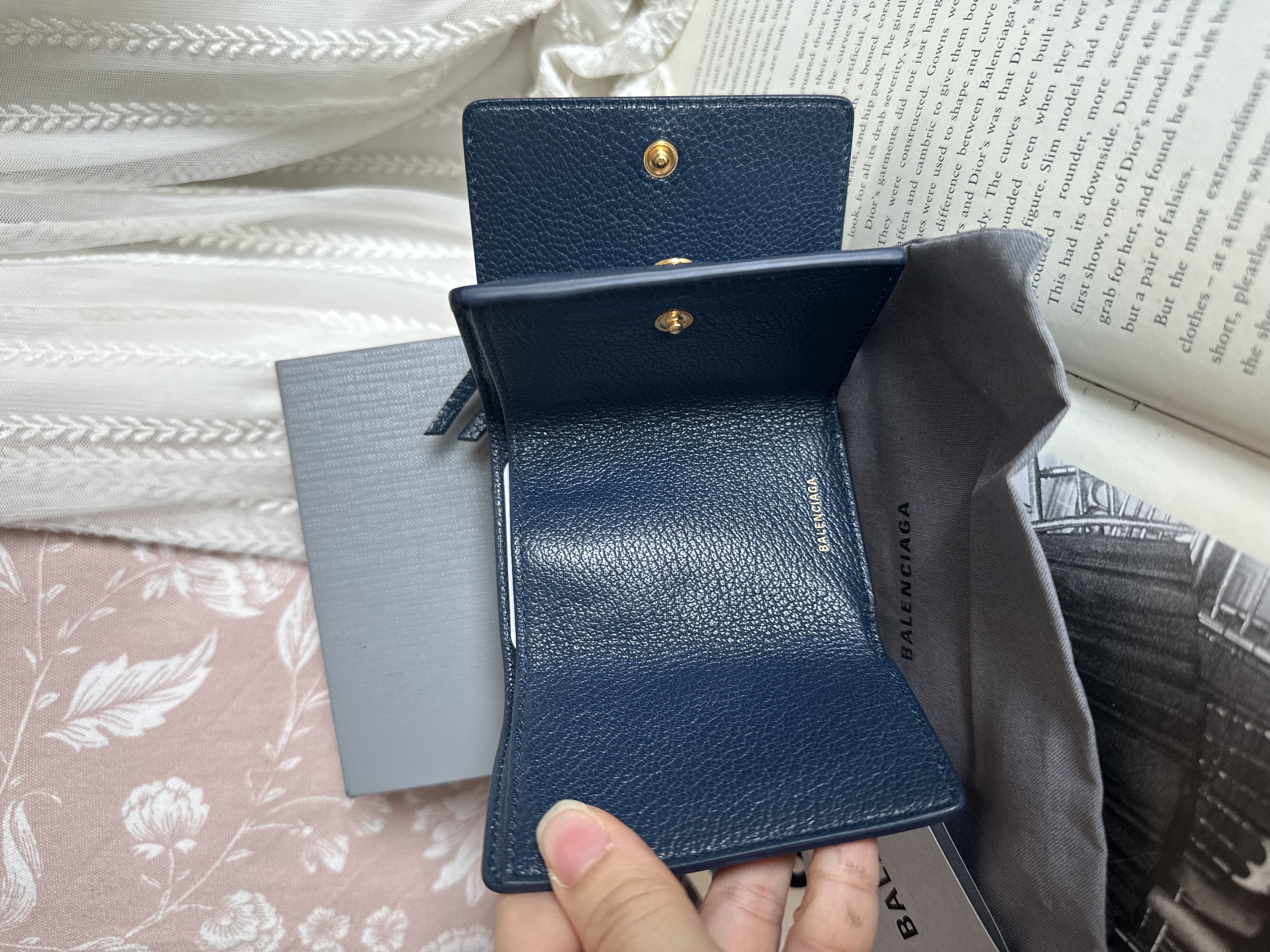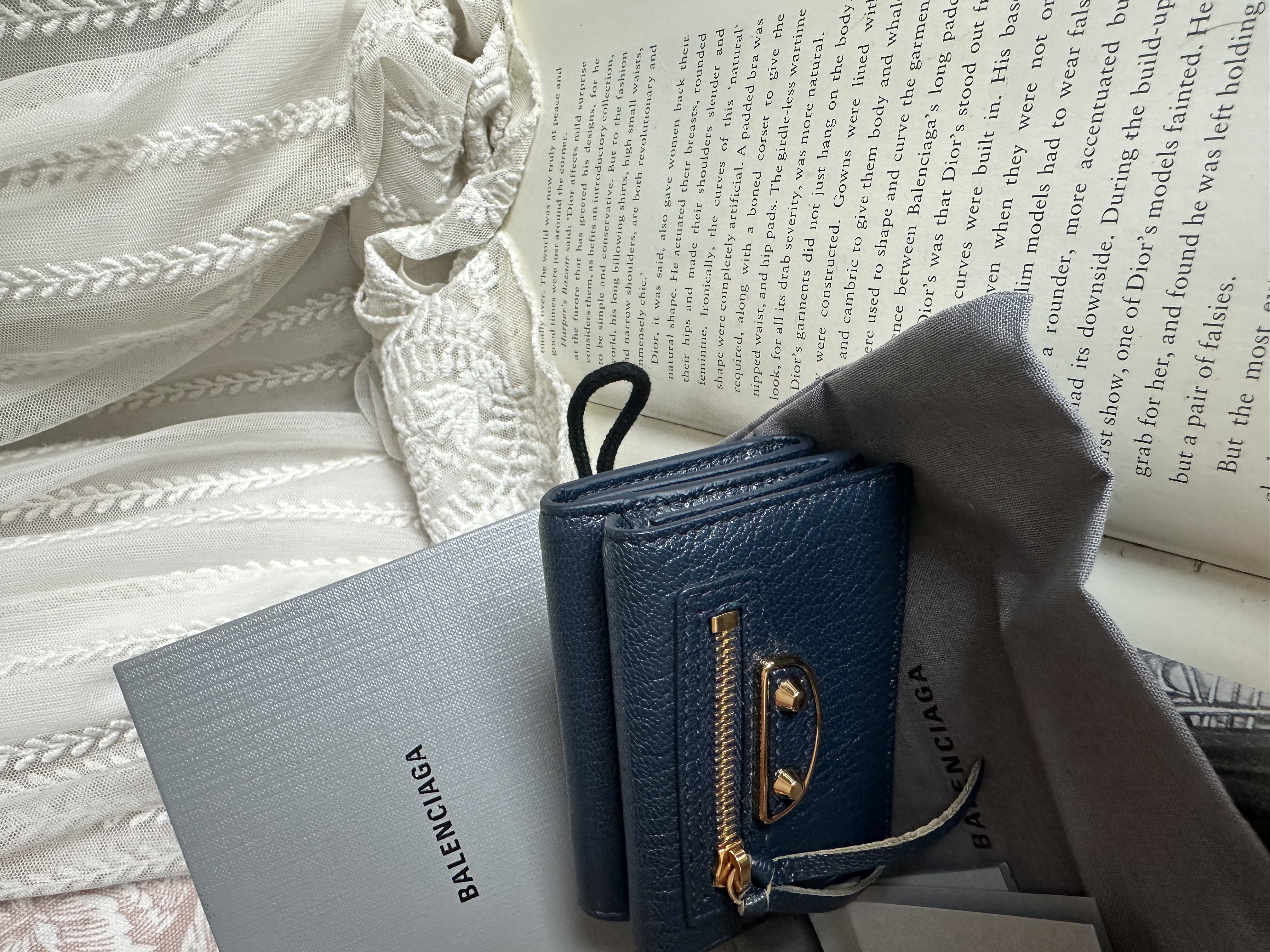 全新100%new brand new未使用品 巴黎世家 balenciaga Everyday Balenciaga Mini Leather Trifold Wallet Navy blue