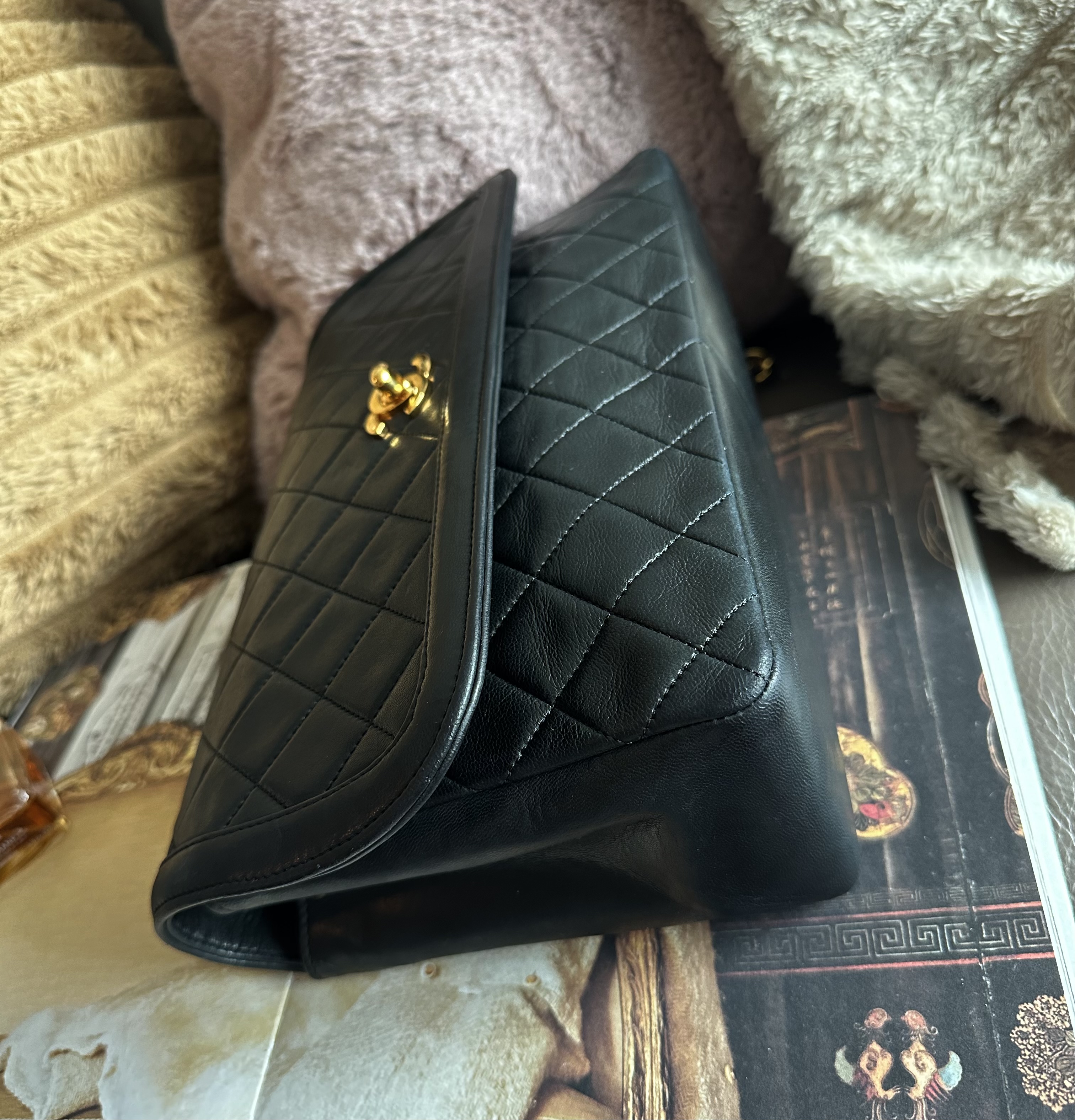 極美品 vintage Chanel Black Straight single Flap chain Shoulder Bag/crossbody bag