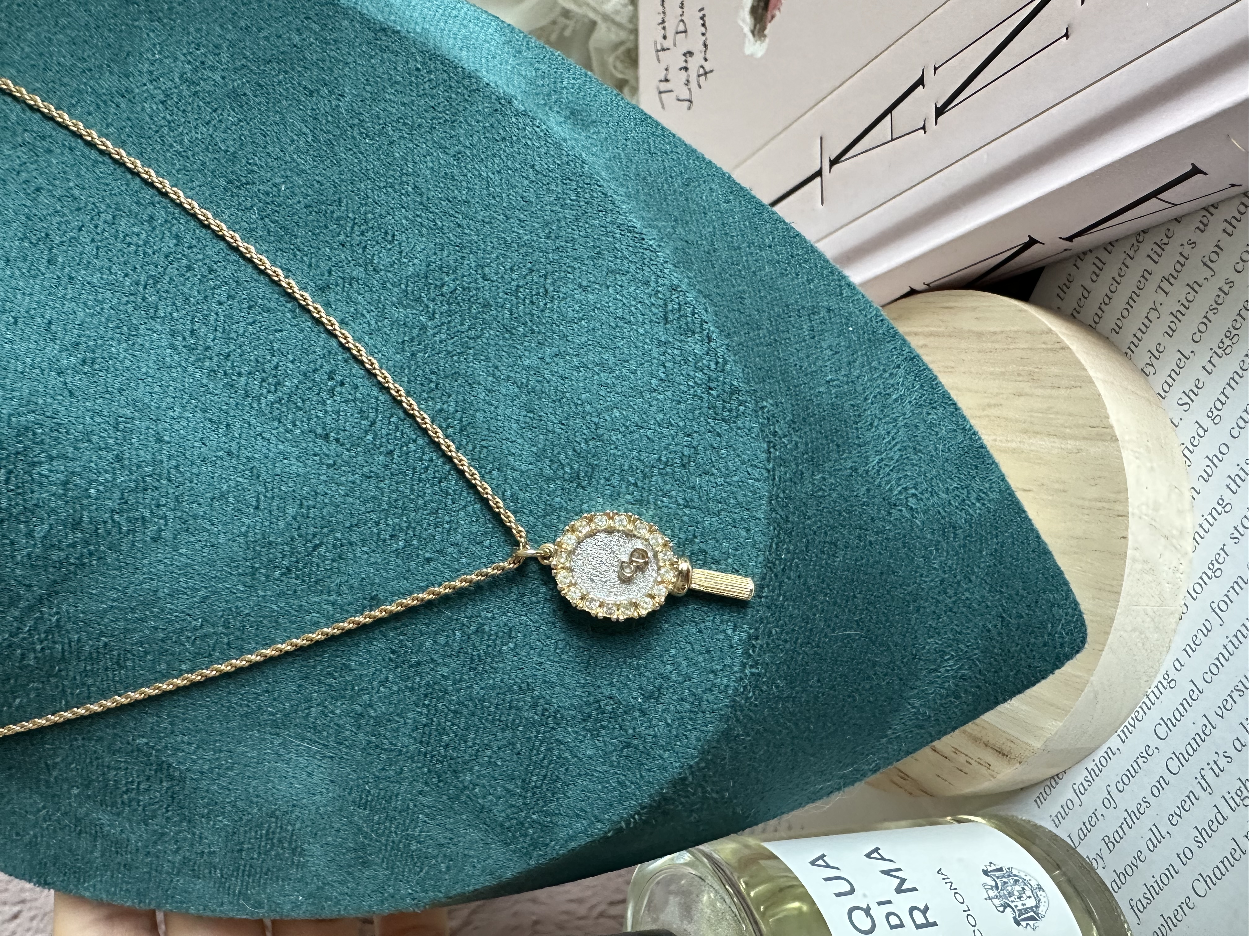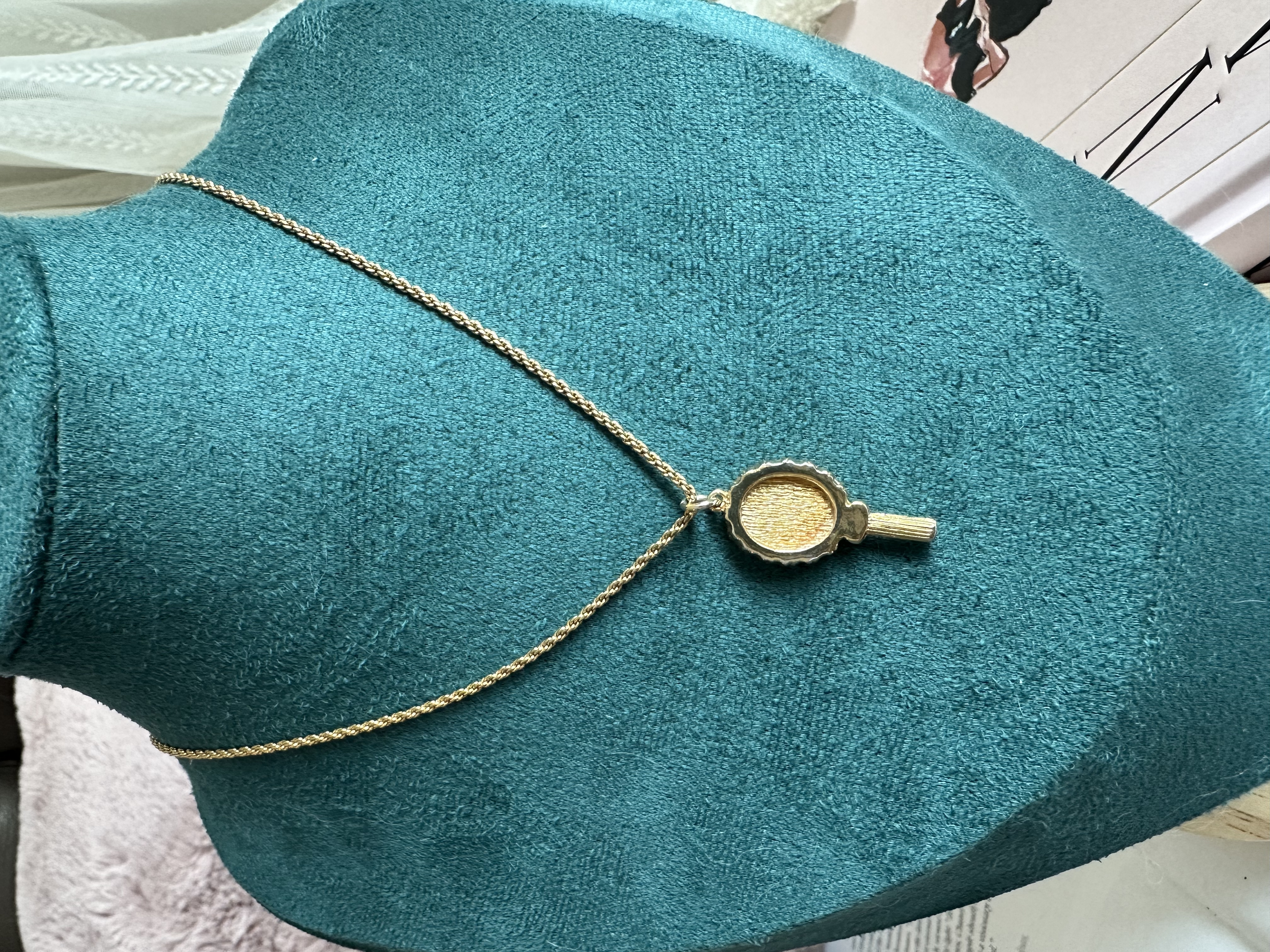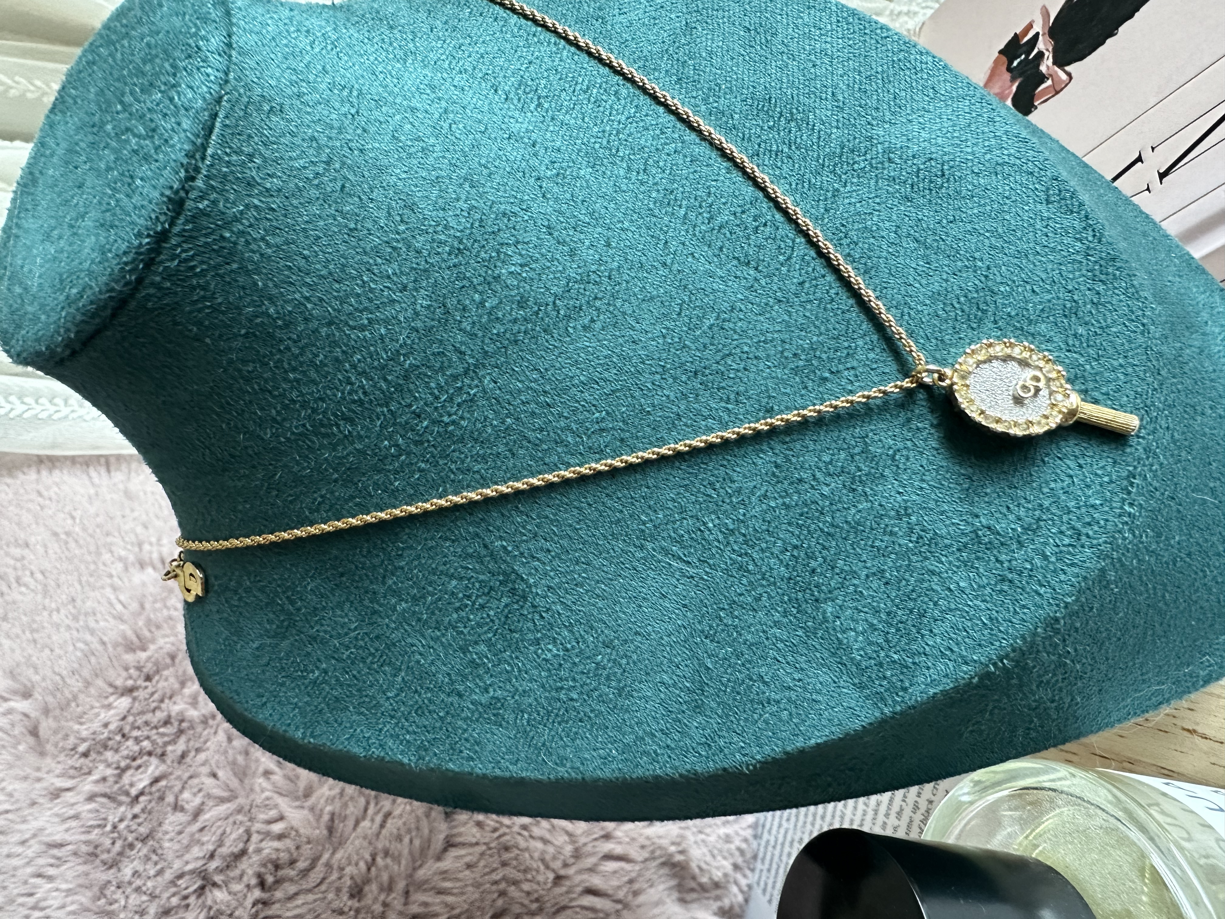 極美品 vintage dior CD logo鏡 mirror gold metal necklace