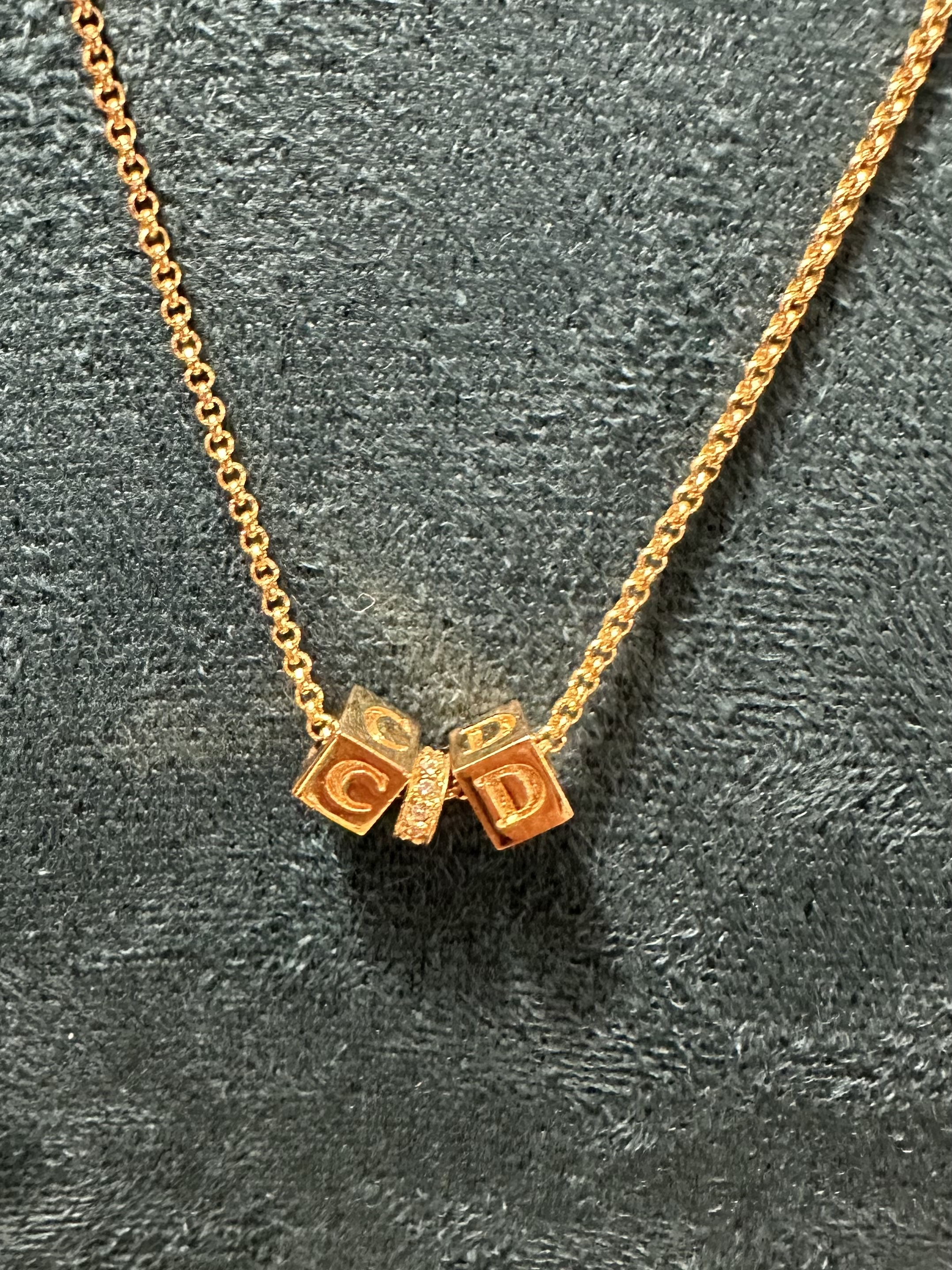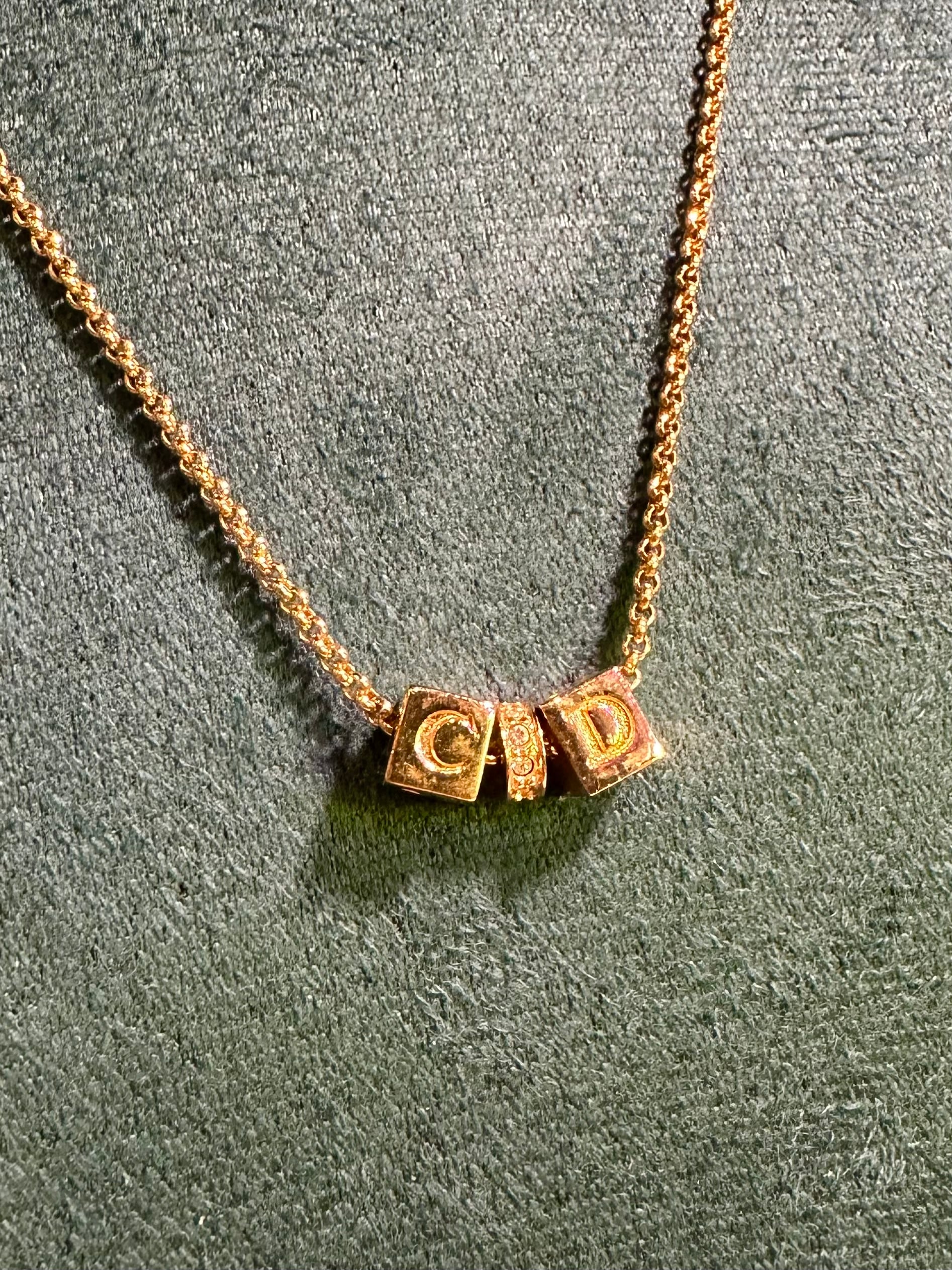 超美❤️極美品 vintage dior CD logo gold metal necklace 新淨極美品 骰仔同中間都可轉動💓 極美品 vintage dior CD logo gold metal necklace Dimensions:全長45cm 可調節距離共7cm 狀態:98新 配件:沒有 (如沒有配件的飾物本店會提供禮物盒包裝) ❤️本店為香港零售管理協會會員/門市已開業9年連續多年正版正貨商戶2025編號001176 付款方法:VISA / MASTER / AE / 銀聯 / UNION PAY /現金 /alipay ❤️另提供 AE 信用卡12個月免息分期 /恆生信用卡12個月免息分期/hsbc 12個月免息分期/渣打12個月免息分期 📢本店只出售正版貨📢 ❤️歡迎親臨銅鑼灣門市😍 ❤️ 本門市已搬到銅鑼灣記利佐治街2-10號銅鑼灣地帶2樓237號鋪 Shop 237, 2/f, causeway place, 2 great george street, causeway bay 📞+852 65230308