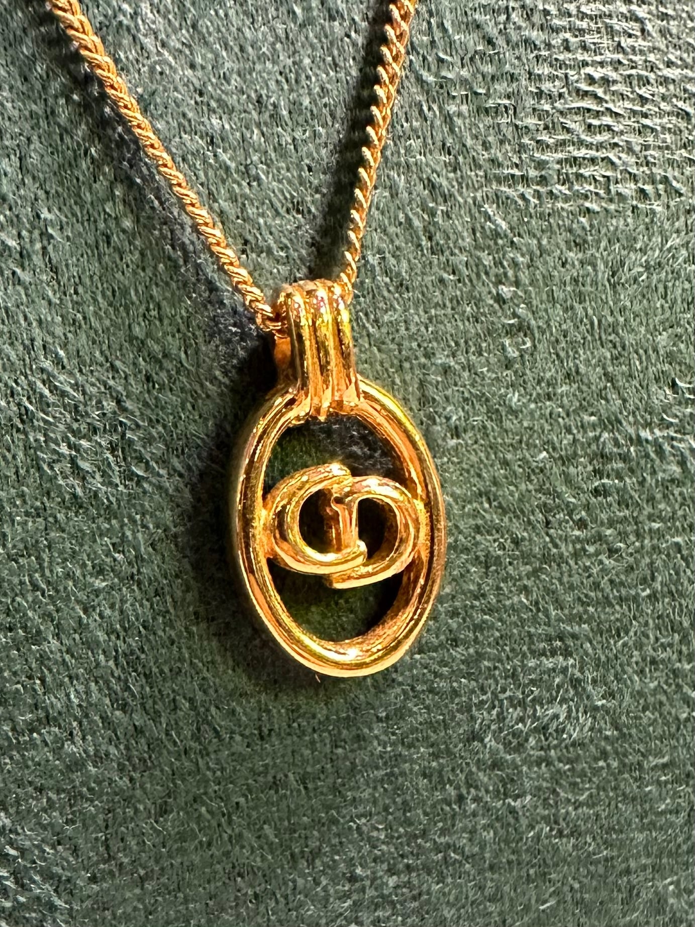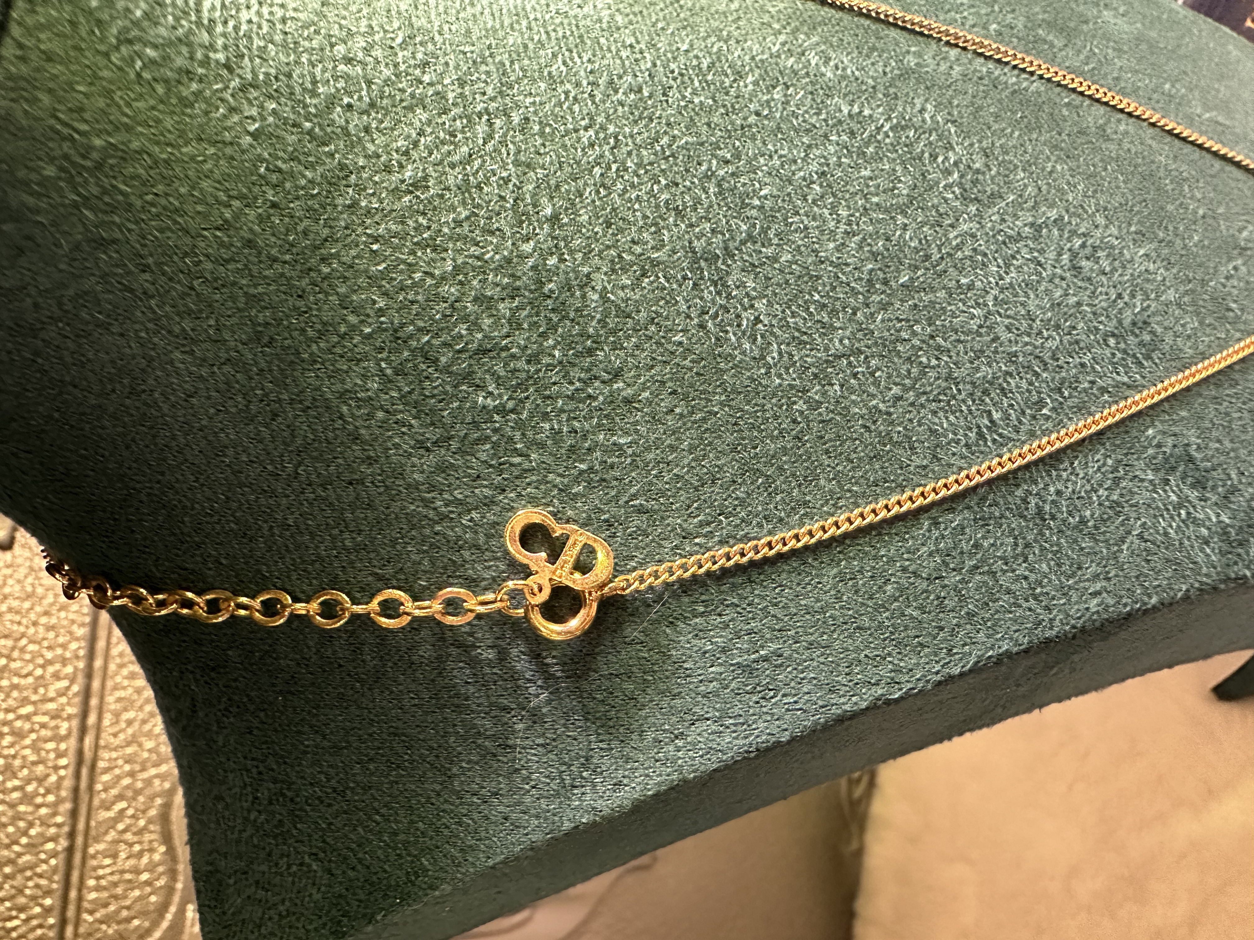 極美品 vintage dior CD logo gold metal necklace