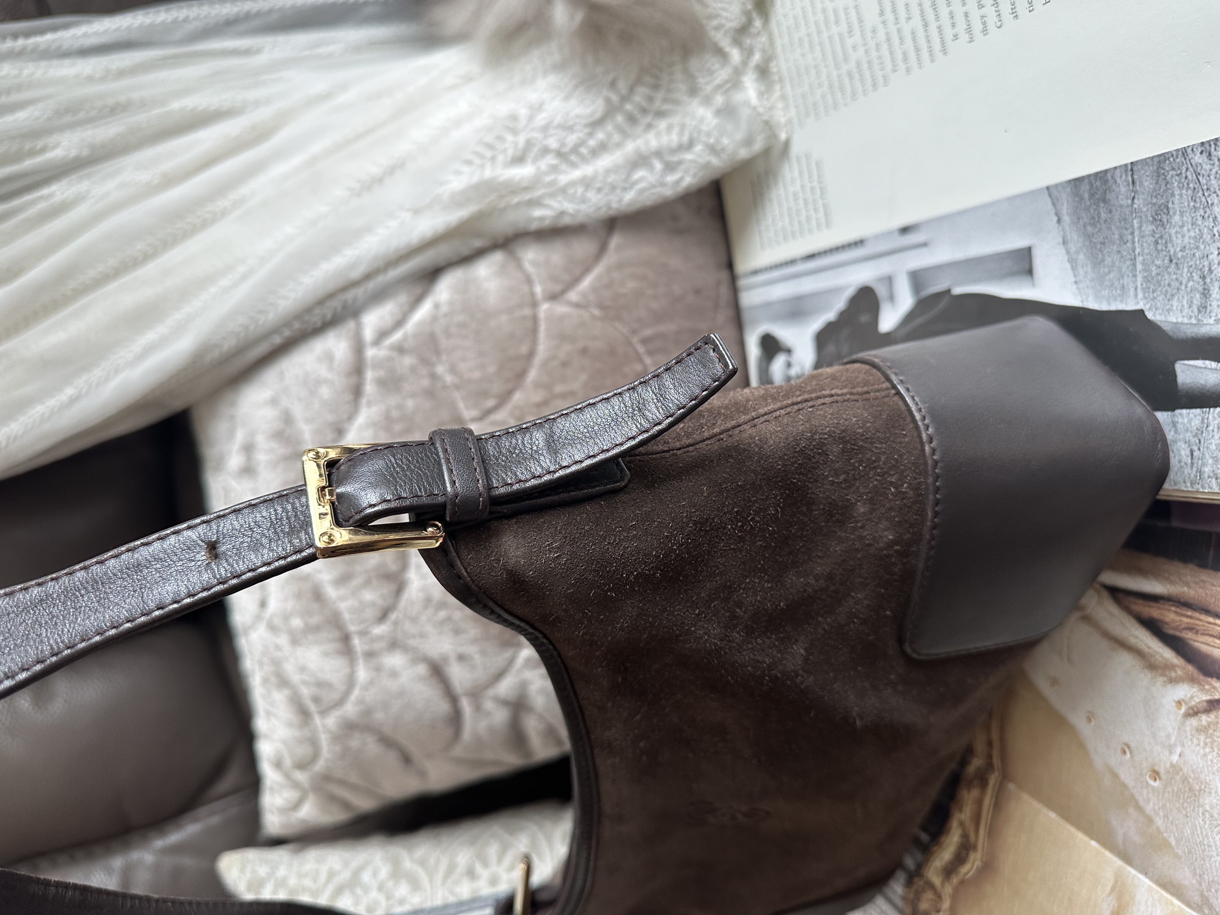 美品 vintage loewe baguette 🥖 baguette brown suede/calf leather shoulder bag