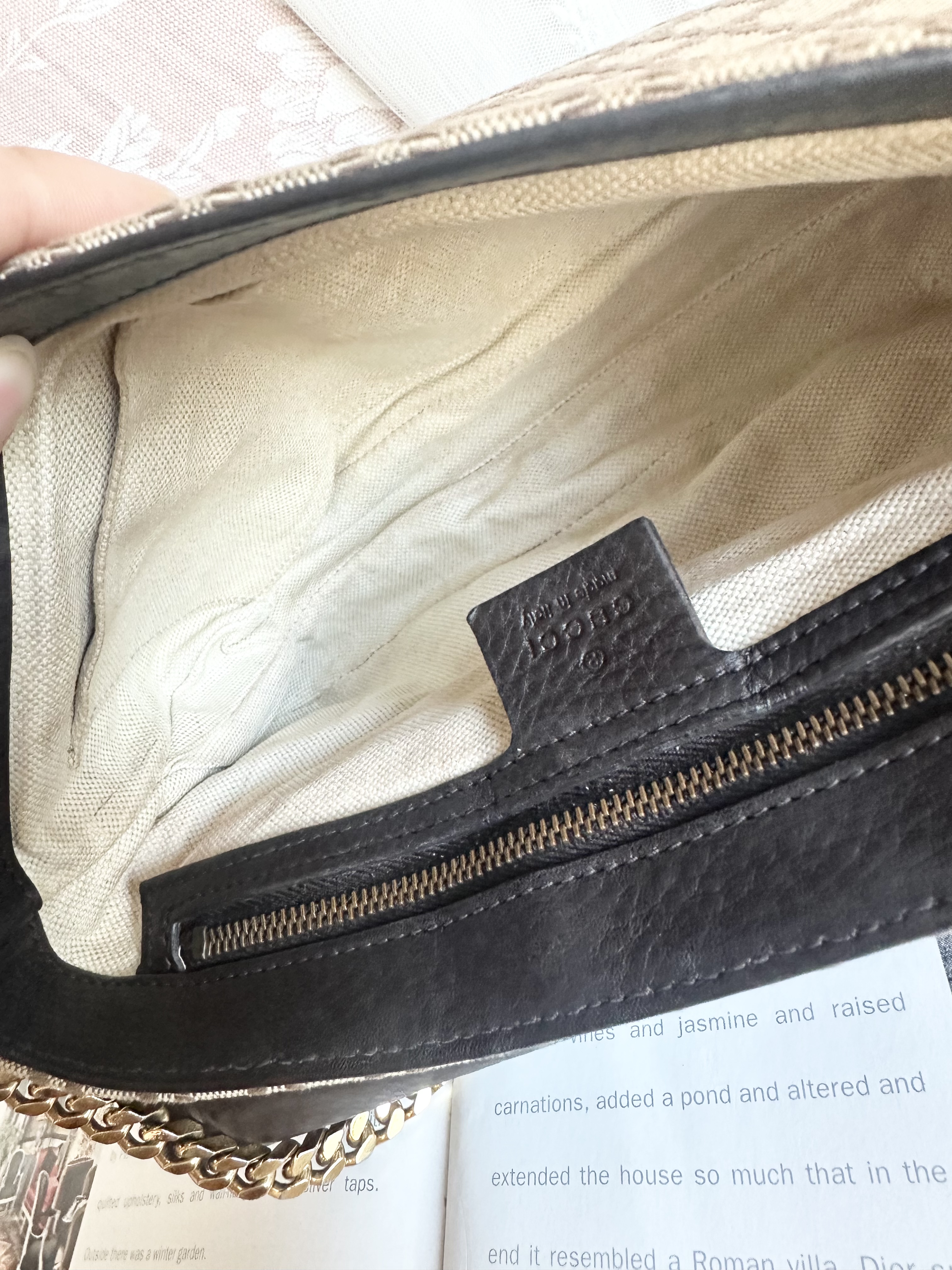 Gucci 1973 Beige/Brown Diamante chain bag 💓勁靚 可放長銀包 縮骨遮 pro max 💰3999 only 美品Gucci 1973 Beige/Brown Diamante chain bag 尺寸26.5x15x3cm 配件:沒有 狀態:外觀95新/内90新 Gucci 1973 Beige/Brown Diamante chain bag Dimensions:26.5x15x3cm Accessories :none Condition:outside excellent /inside very good 🖤本店為香港零售管理協會會員/門市已開業9年連續多年正版正貨商戶2025編號 001176 付款方法:VISA / MASTER / AE / 銀聯 / UNION PAY /現金 /alipay ❤️門市提供恒生💳渣打💳滙豐💳AE 💳DBS 💳Citibank💳mox 信用卡✅免息分期✅ 📢本店只出售正版貨📢 ❤️歡迎親臨銅鑼灣門市😍 ❤️ 本門市已搬到銅鑼灣記利佐治街2-10號銅鑼灣地帶2樓237號鋪 Shop 237, 2/f, causeway place, 2 great george street, causeway bay