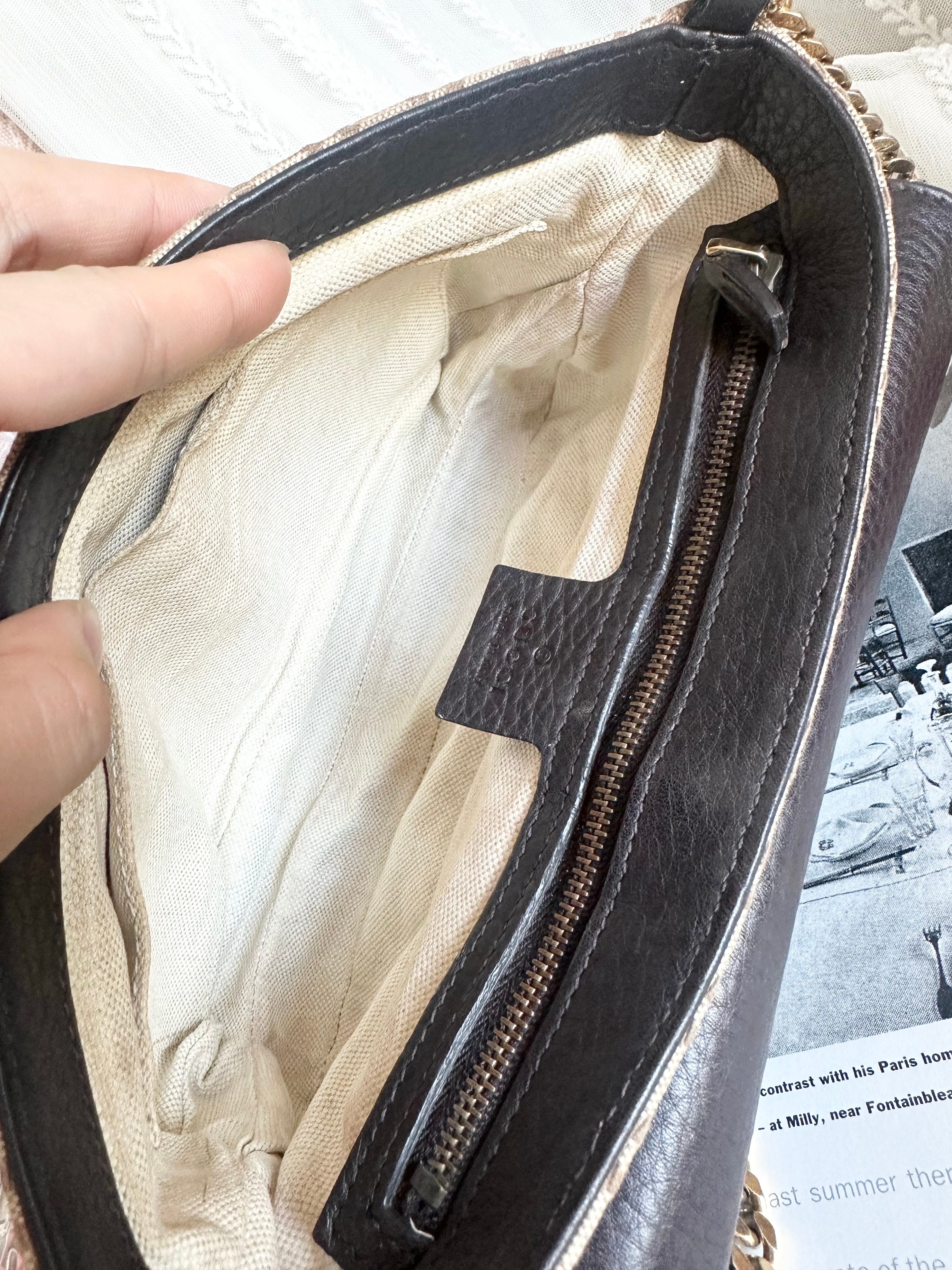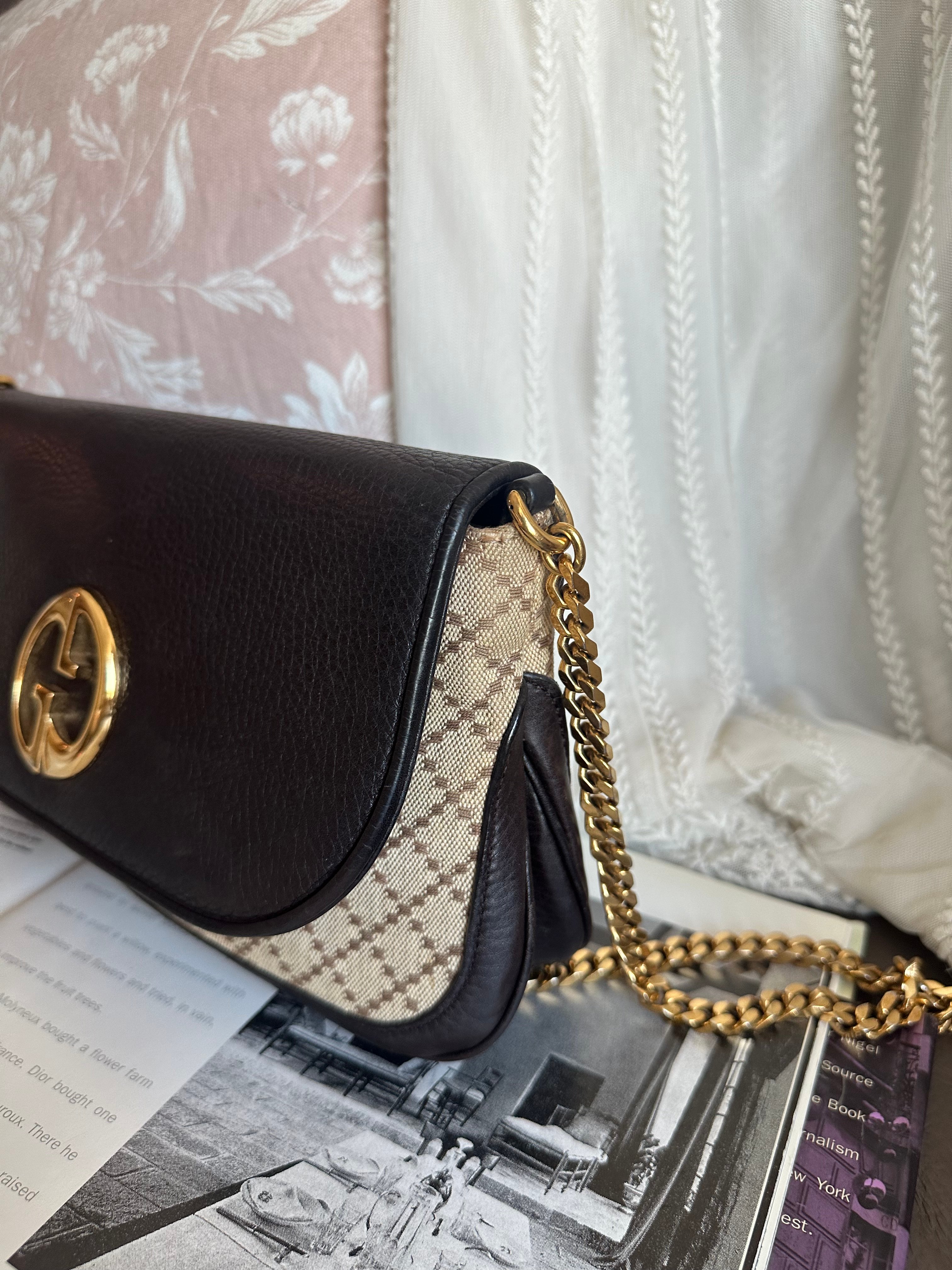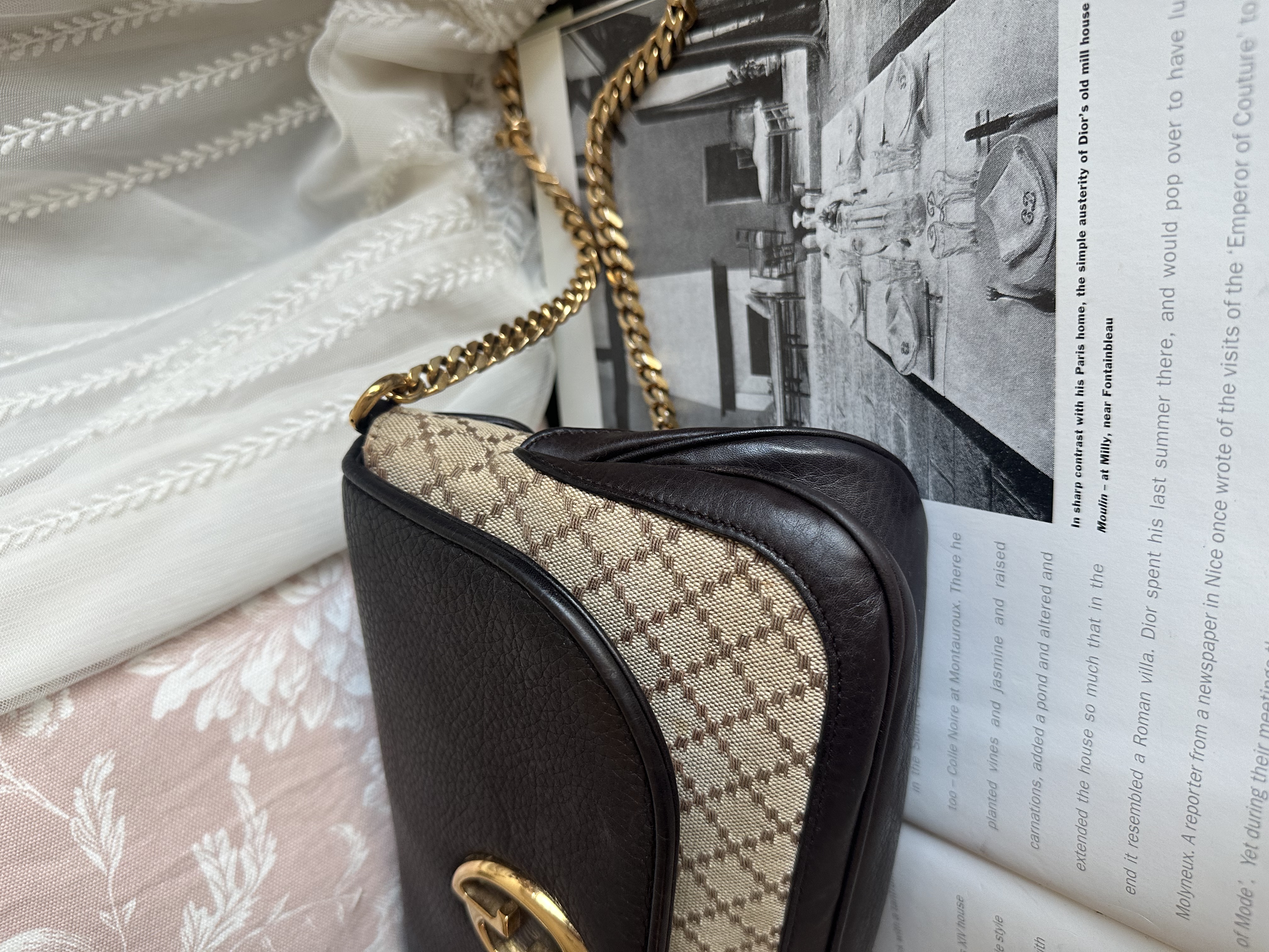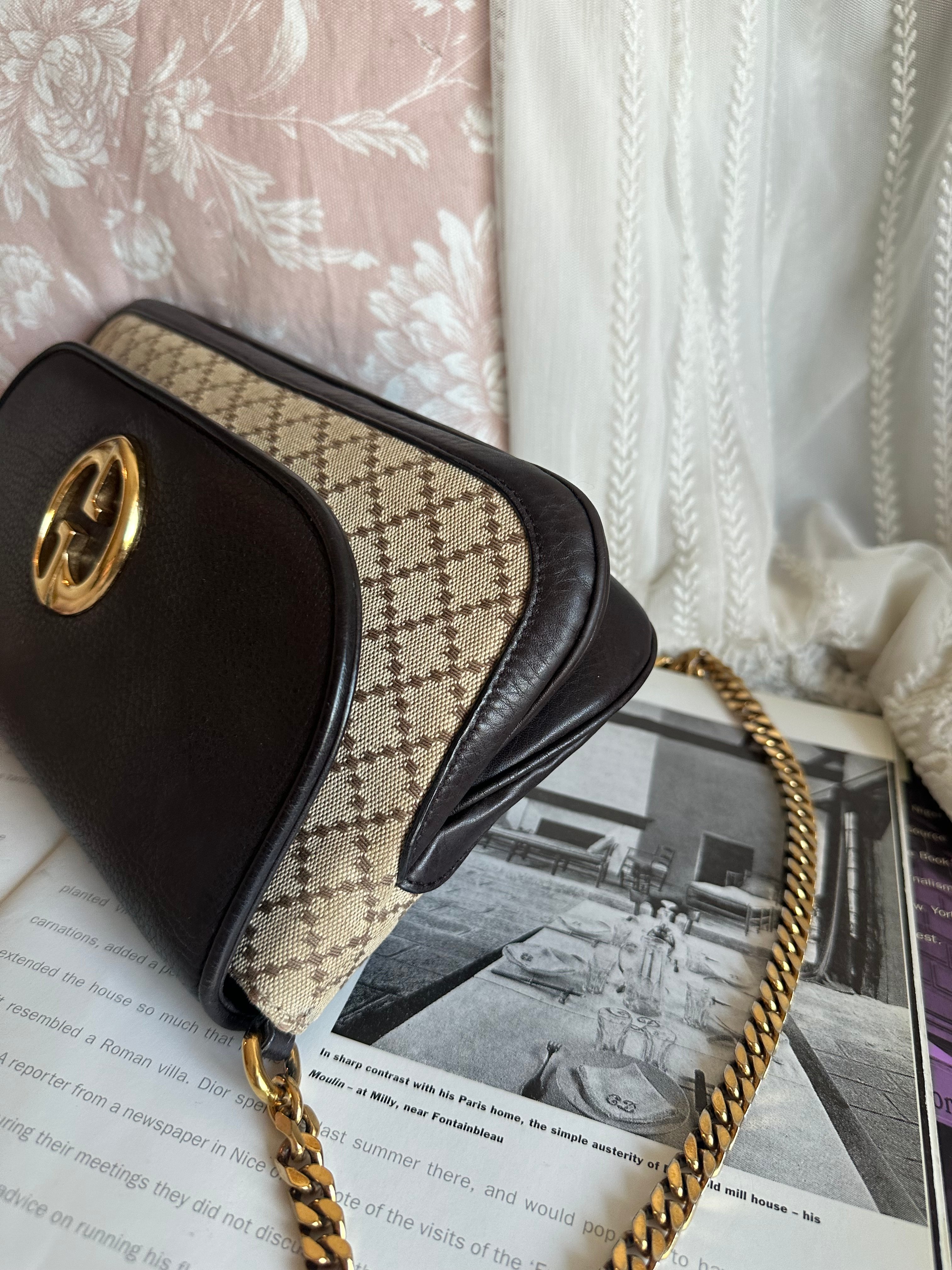 美品Gucci 1973 Beige/Brown Diamante chain bag
