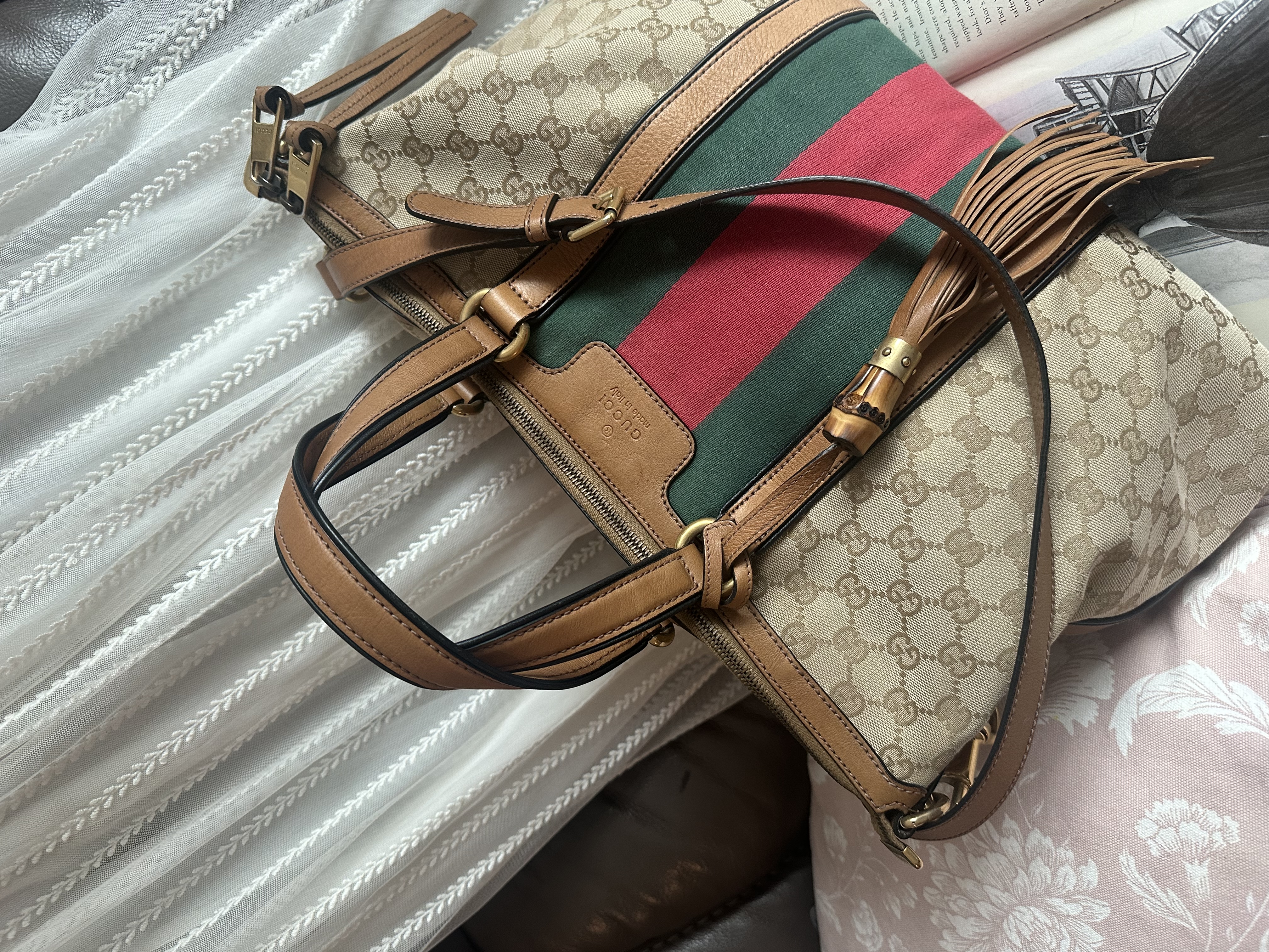 美品Gucci Ophidia tote bag 非常新淨🧒男女用都得 🖤 ☑️好實用 ☑️電腦☑️放到縮骨遮 原裝strap長度可較crossbody 超級優惠價💰3980 帶走🔥 美品Gucci Ophidia tote bag 尺寸:40x28x16 狀態外觀:95新/內95新 配件:原裝長帶 Gucci Ophidia tote bag Dimensions : 40x28x16 Condition:excellent Accessories :original strap 🖤本店為香港零售管理協會會員/門市已開業9年連續多年正版正貨商戶2025編號 001176 付款方法:VISA / MASTER / AE / 銀聯 / UNION PAY /現金 /alipay ❤️門市提供恒生💳渣打💳滙豐💳AE 💳DBS 💳Citibank💳mox 信用卡✅免息分期✅ 📢本店只出售正版貨📢 ❤️歡迎親臨銅鑼灣門市😍 ❤️ 本門市已搬到銅鑼灣記利佐治街2-10號銅鑼灣地帶2樓237號鋪 Shop 237, 2/f, causeway place, 2 great george street, causeway bay