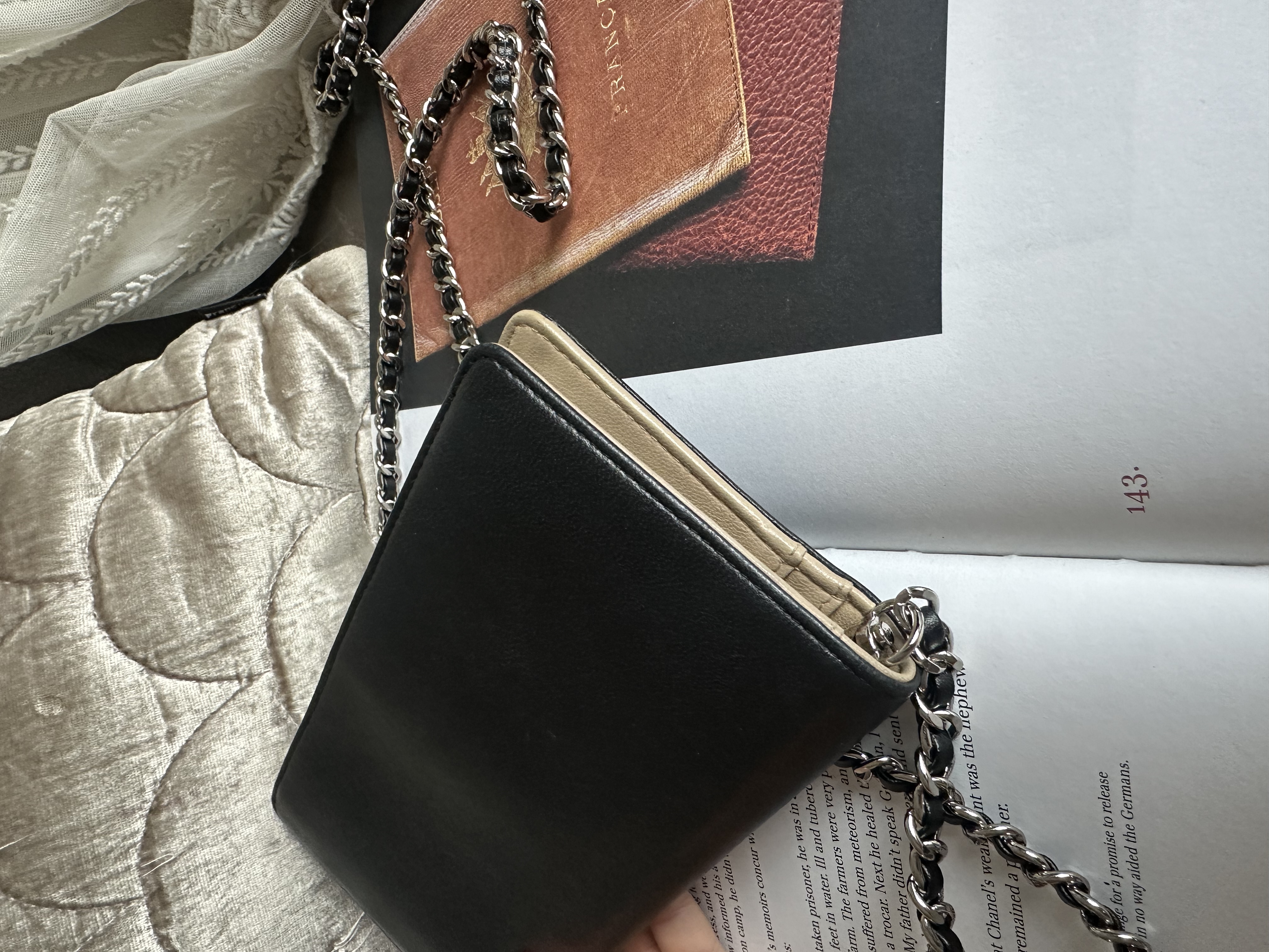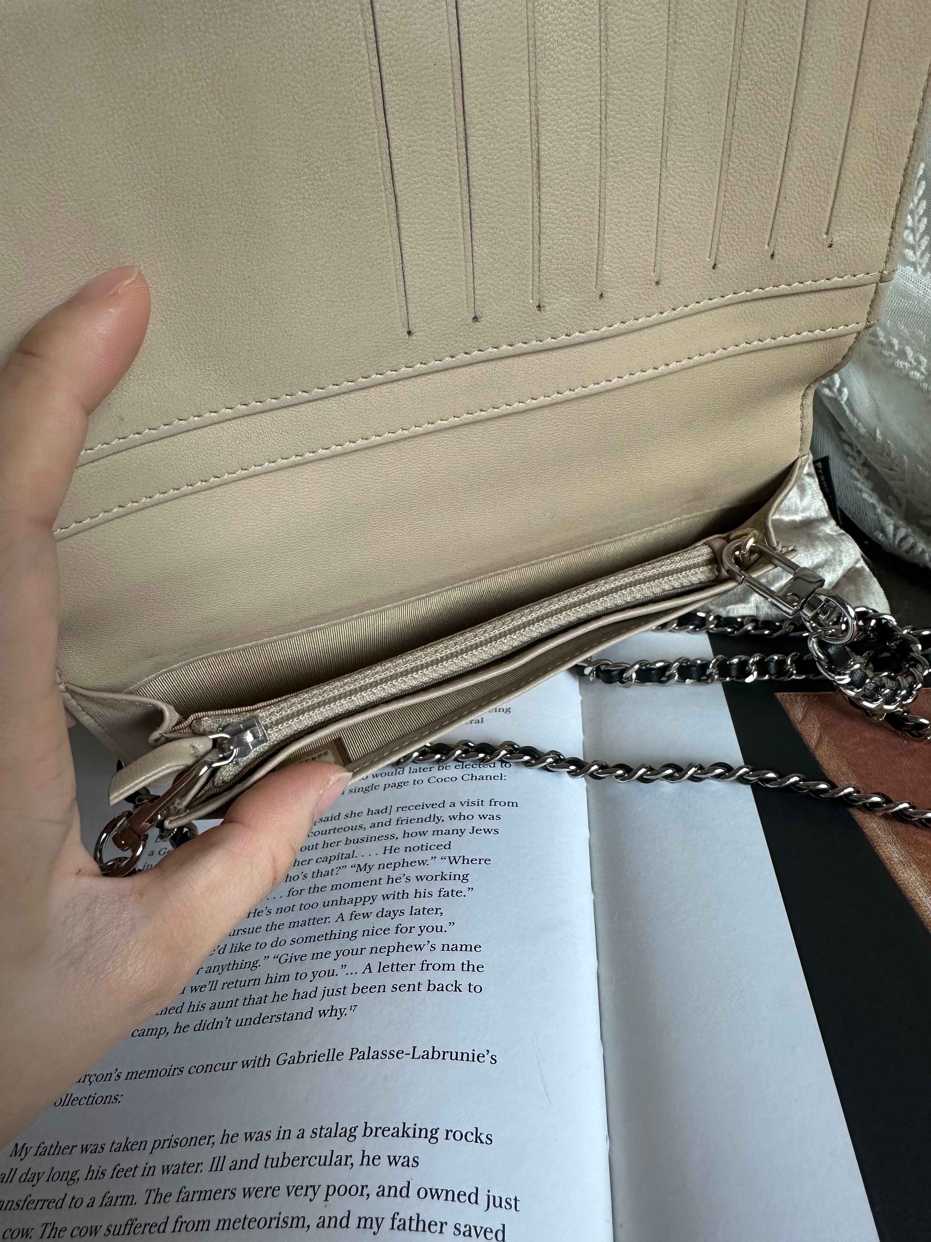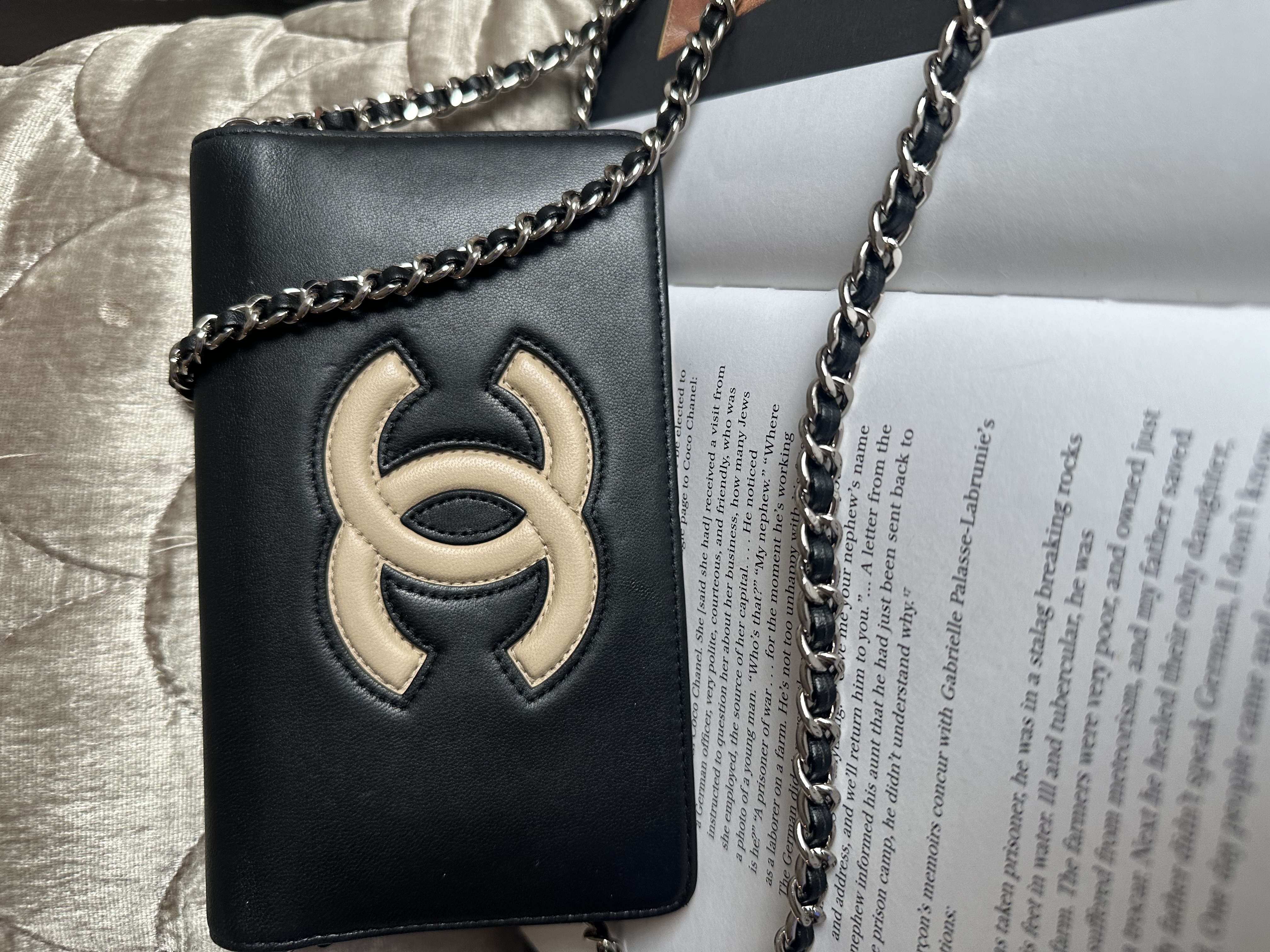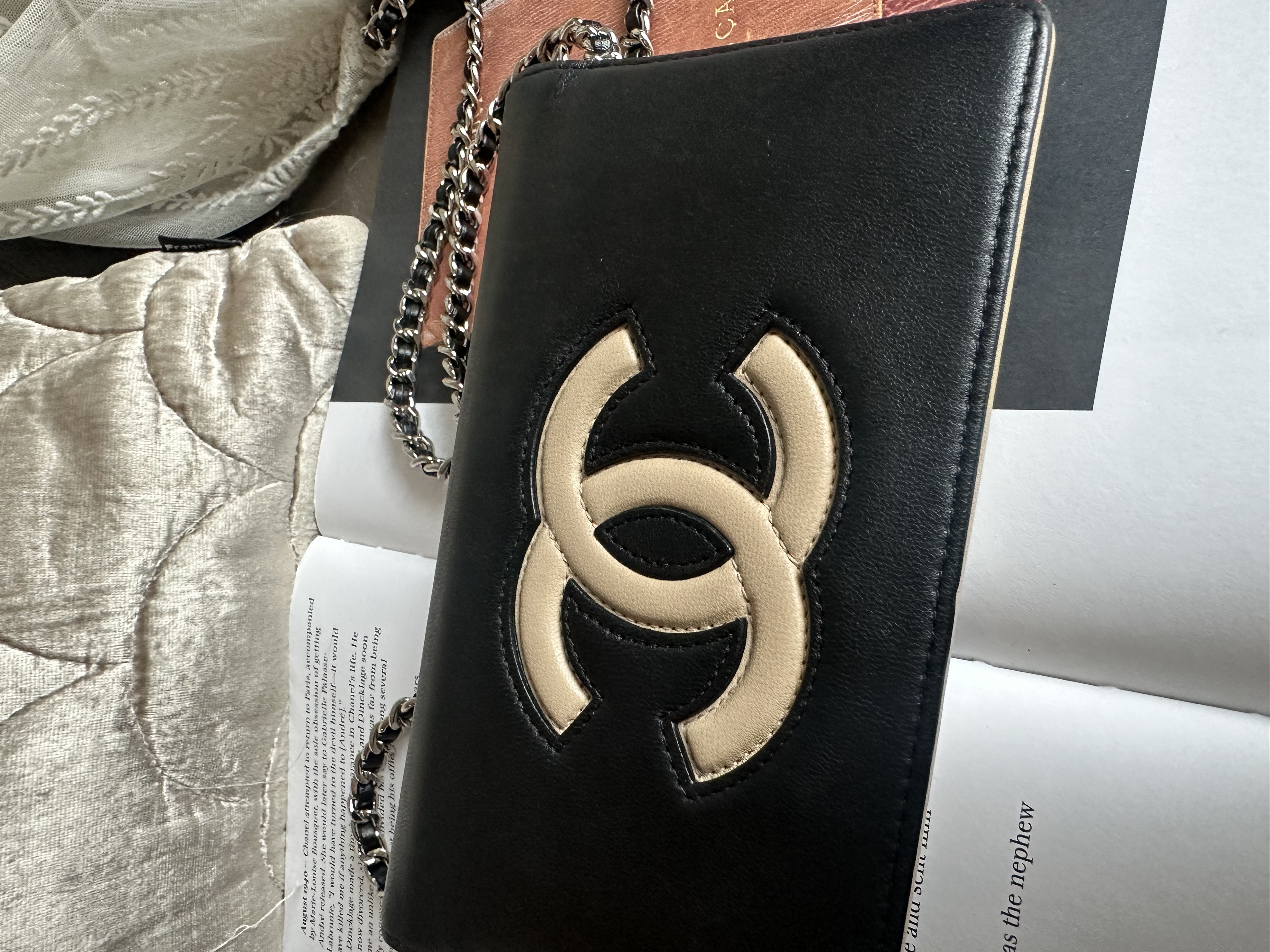 剛到港🇯🇵✈️🇭🇰 改裝款 cc黑色長銀包❤️beige & black 勁新淨22字頭有貼貼數字清晰可見♥️保存超新淨 👑 改裝的 🌸原裝冇鏈❤️ 免費安裝埋可變Woc扣同沒品牌長鏈俾你加上去當woc用 (安裝不傷皮革可拆除) 美品chanel beige black long wallet 配件:貼 免費改裝成袋用扣/沒品牌長鏈一條(見尾圖) Item has been modified, free non branded chain/non brand hook (see photo ) (以上是免費贈送原裝並沒有全部可隨意拆除不傷皮革) Dimensions:19x10x2cm 狀態:外觀95新/内95新 Vintage chanel black beige long wallet Accessories: authenticity sticker Dimensions: 19x10x2cm Condition: outside very good /inside very good Item has been modified, free non branded chain/non brand hook (see last photo )⚠️its a long wallet originally without chain 🖤本店為香港零售管理協會會員/門市已開業9年連續多年正版正貨商戶2025編號 001176 付款方法:VISA / MASTER / AE / 銀聯 / UNION PAY /現金 /alipay ❤️門市提供恒生💳渣打💳滙豐💳AE 💳DBS 💳Citibank💳mox 信用卡✅免息分期✅ 📢本店只出售正版貨📢 ❤️歡迎親臨銅鑼灣門市😍 ❤️ 本門市已搬到銅鑼灣記利佐治街2-10號銅鑼灣地帶2樓237號鋪 Shop 237, 2/f, causeway place, 2 great george street, causeway bay