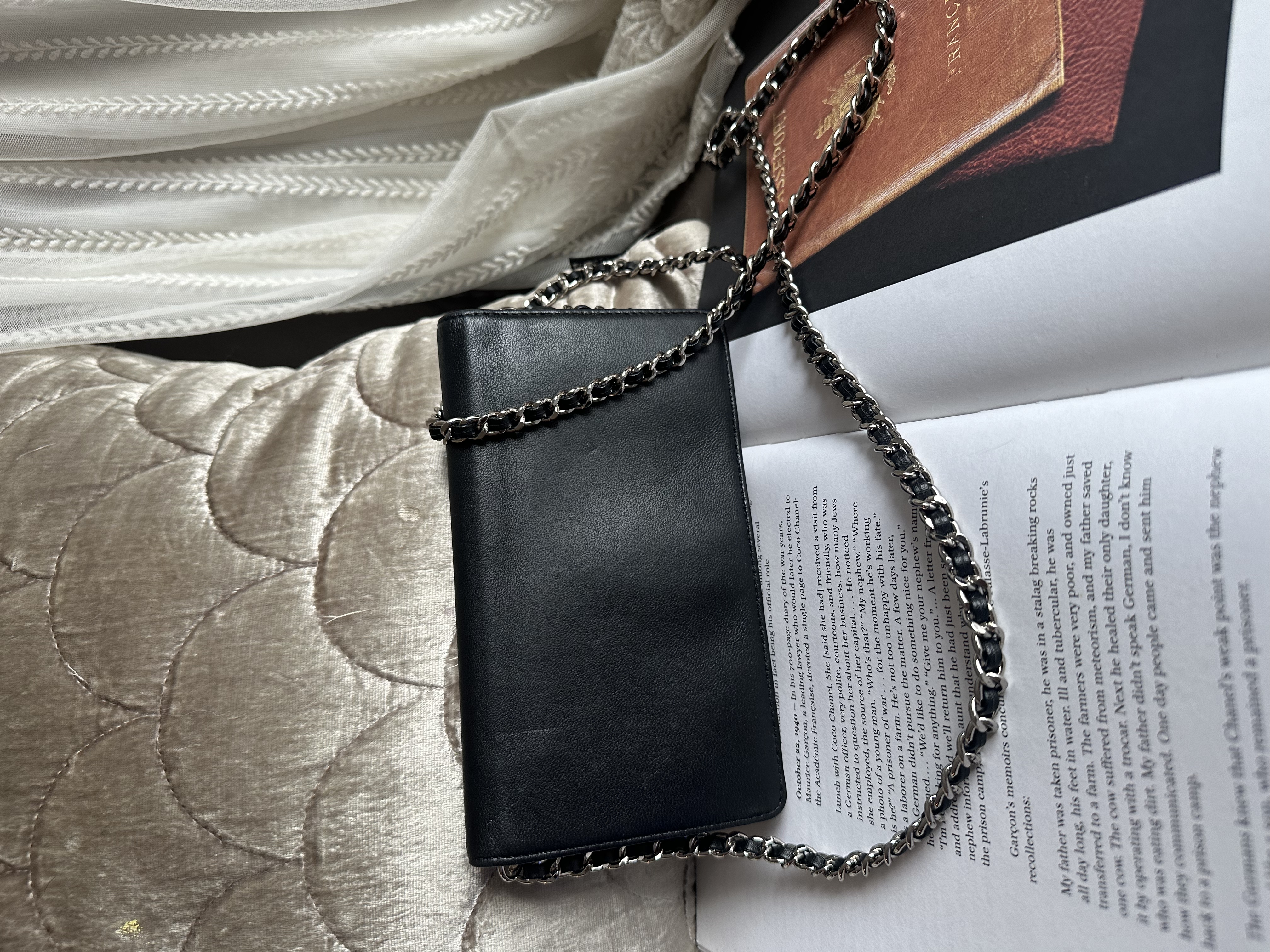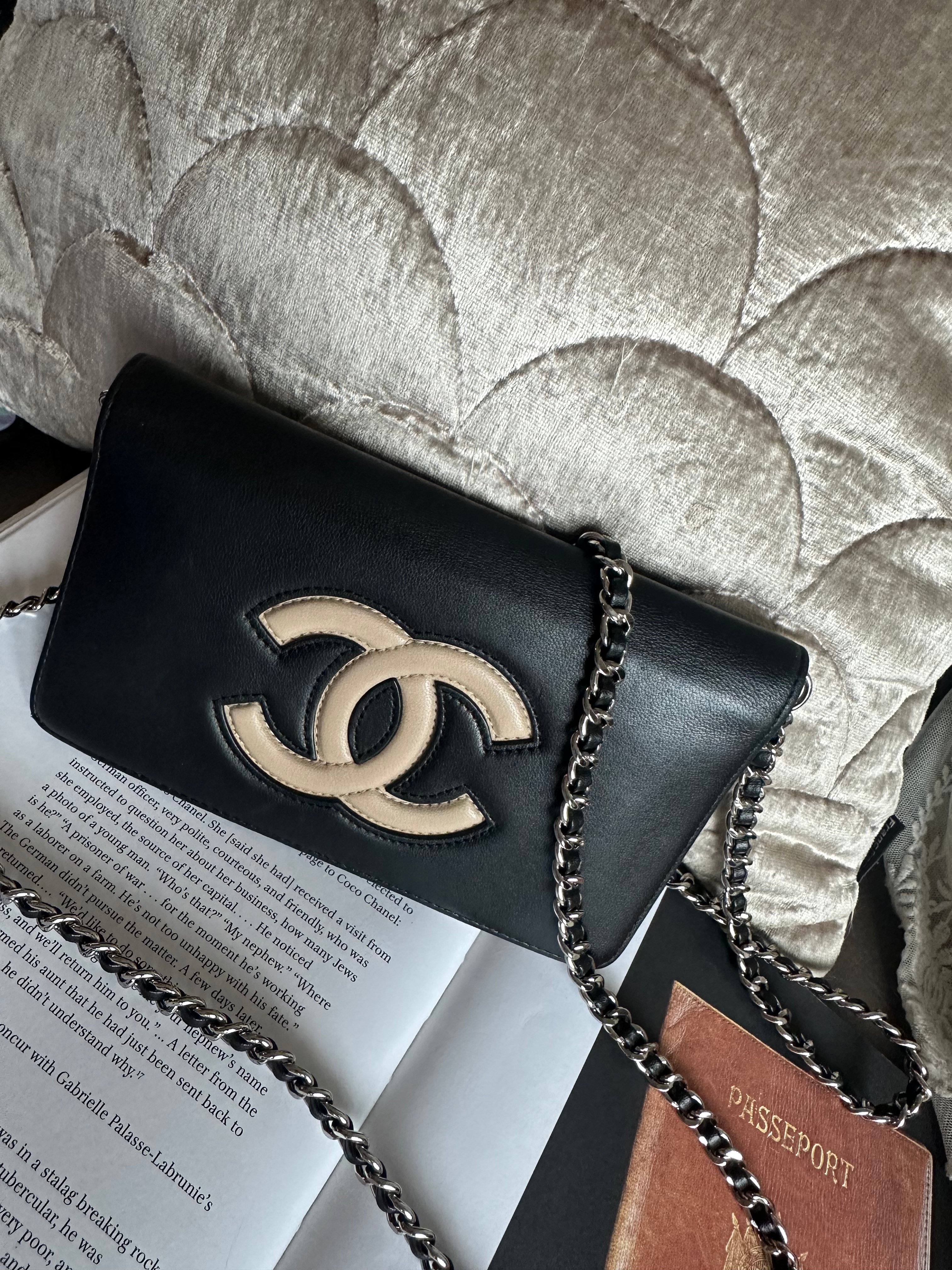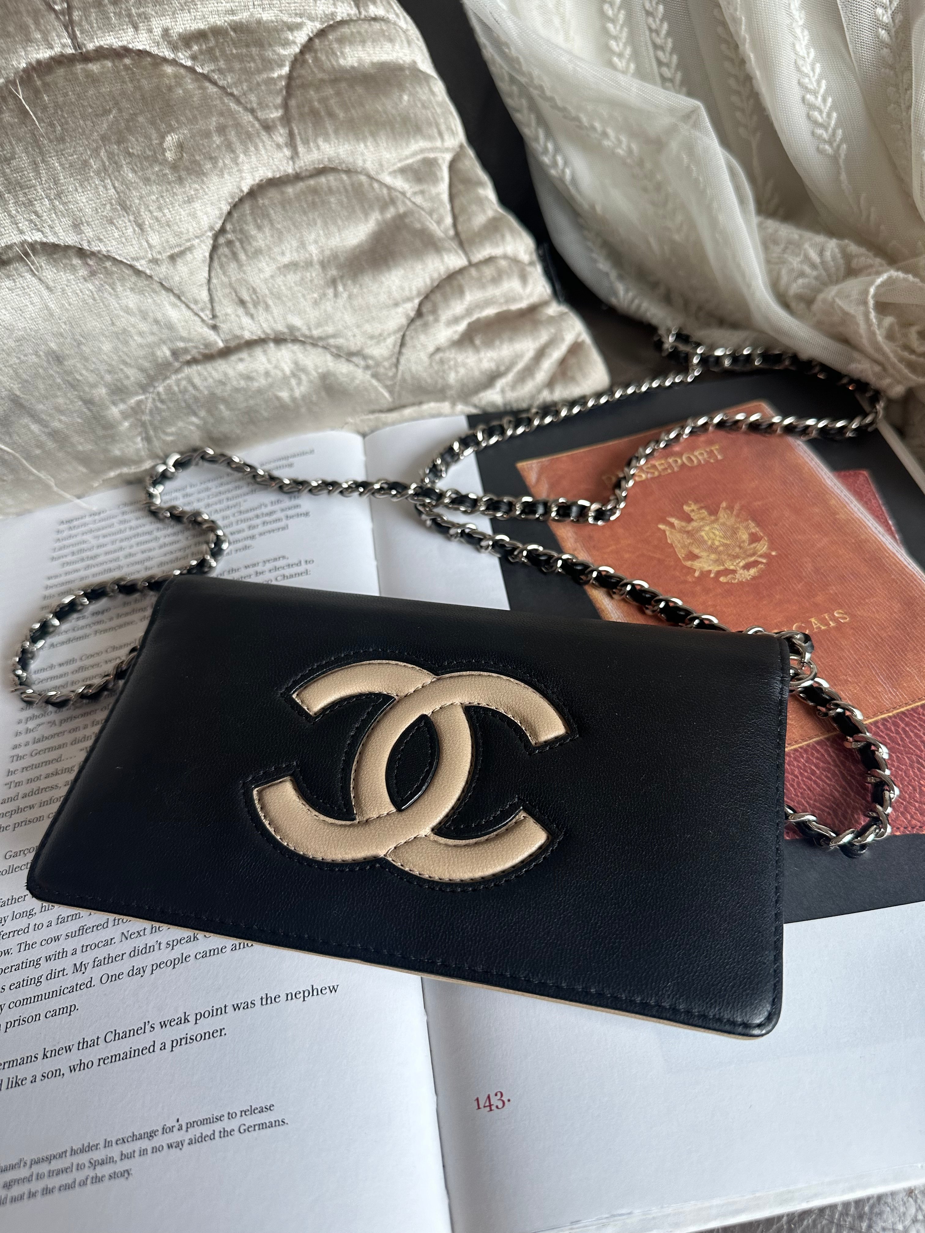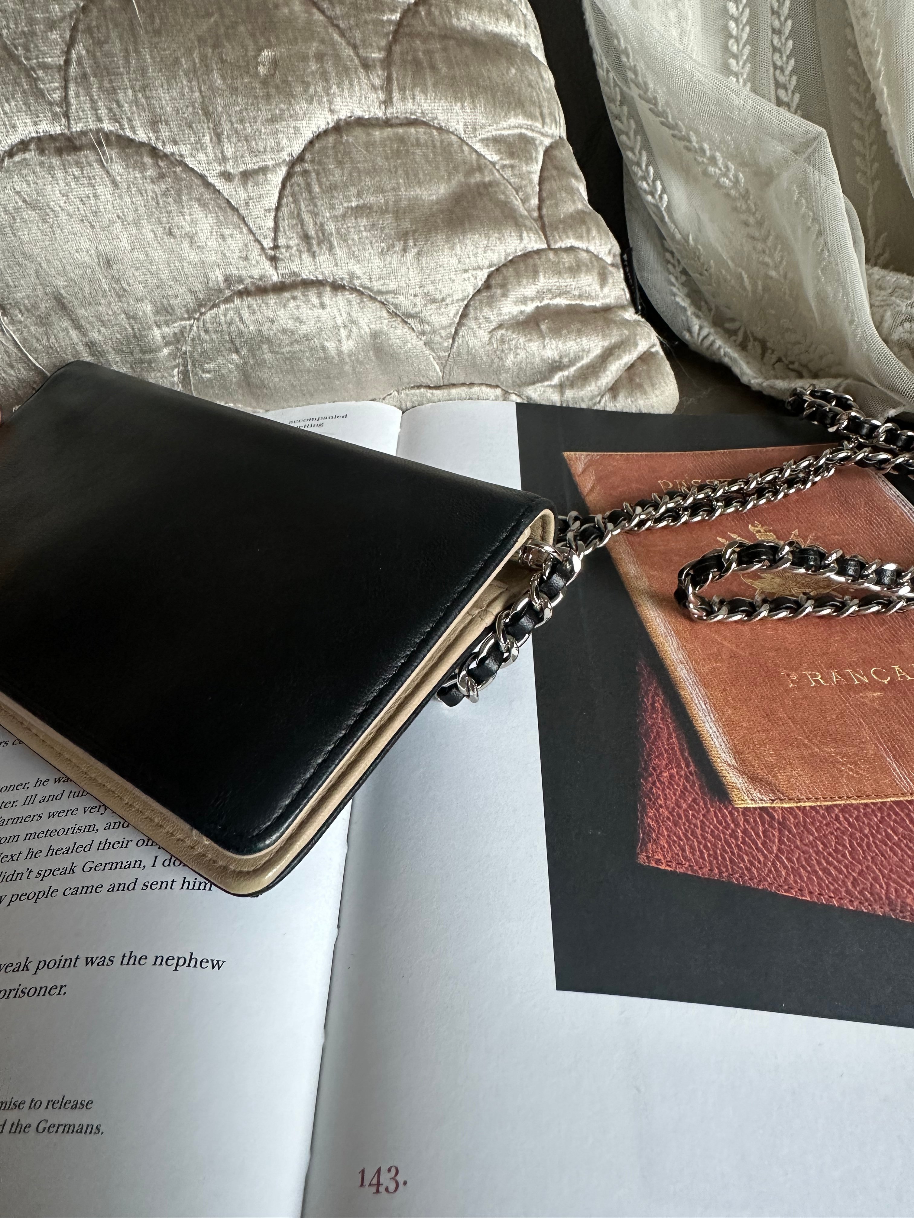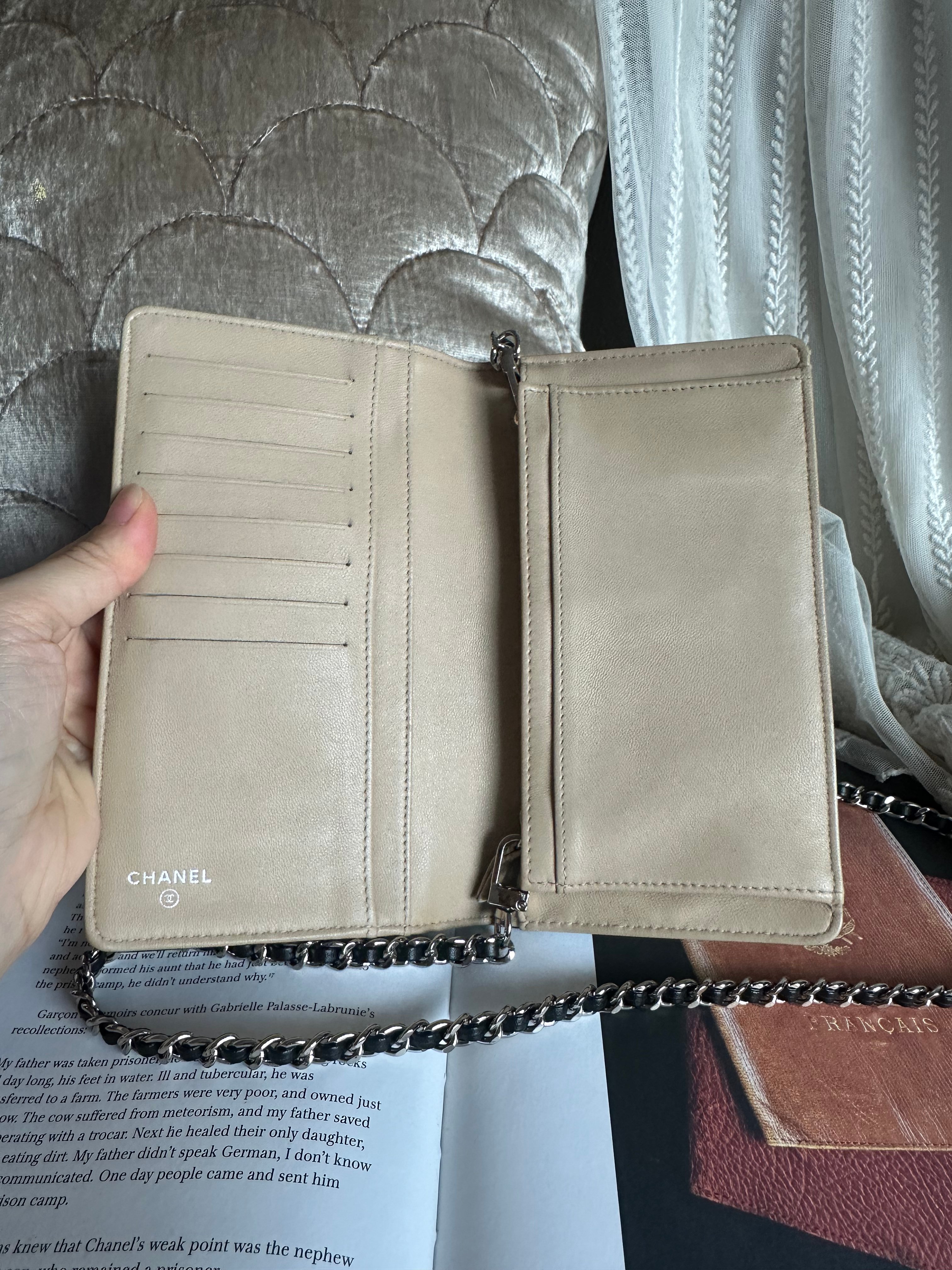 剛到港🇯🇵✈️🇭🇰 改裝款 cc黑色長銀包❤️beige & black 勁新淨22字頭有貼貼數字清晰可見♥️保存超新淨 👑 改裝的 🌸原裝冇鏈❤️ 免費安裝埋可變Woc扣同沒品牌長鏈俾你加上去當woc用 (安裝不傷皮革可拆除) 美品chanel beige black long wallet 配件:貼 免費改裝成袋用扣/沒品牌長鏈一條(見尾圖) Item has been modified, free non branded chain/non brand hook (see photo ) (以上是免費贈送原裝並沒有全部可隨意拆除不傷皮革) Dimensions:19x10x2cm 狀態:外觀95新/内95新 Vintage chanel black beige long wallet Accessories: authenticity sticker Dimensions: 19x10x2cm Condition: outside very good /inside very good Item has been modified, free non branded chain/non brand hook (see last photo )⚠️its a long wallet originally without chain 🖤本店為香港零售管理協會會員/門市已開業9年連續多年正版正貨商戶2025編號 001176 付款方法:VISA / MASTER / AE / 銀聯 / UNION PAY /現金 /alipay ❤️門市提供恒生💳渣打💳滙豐💳AE 💳DBS 💳Citibank💳mox 信用卡✅免息分期✅ 📢本店只出售正版貨📢 ❤️歡迎親臨銅鑼灣門市😍 ❤️ 本門市已搬到銅鑼灣記利佐治街2-10號銅鑼灣地帶2樓237號鋪 Shop 237, 2/f, causeway place, 2 great george street, causeway bay