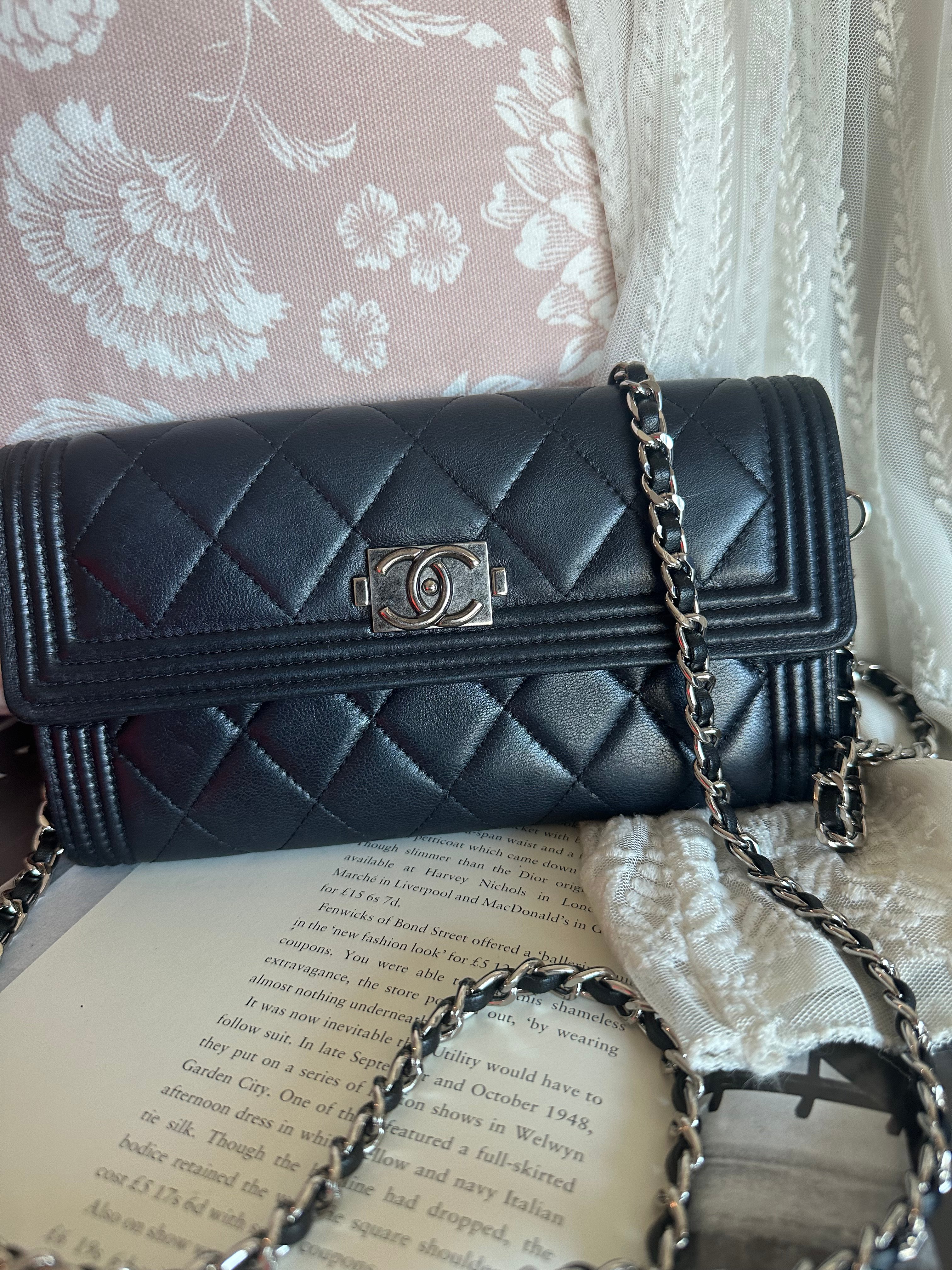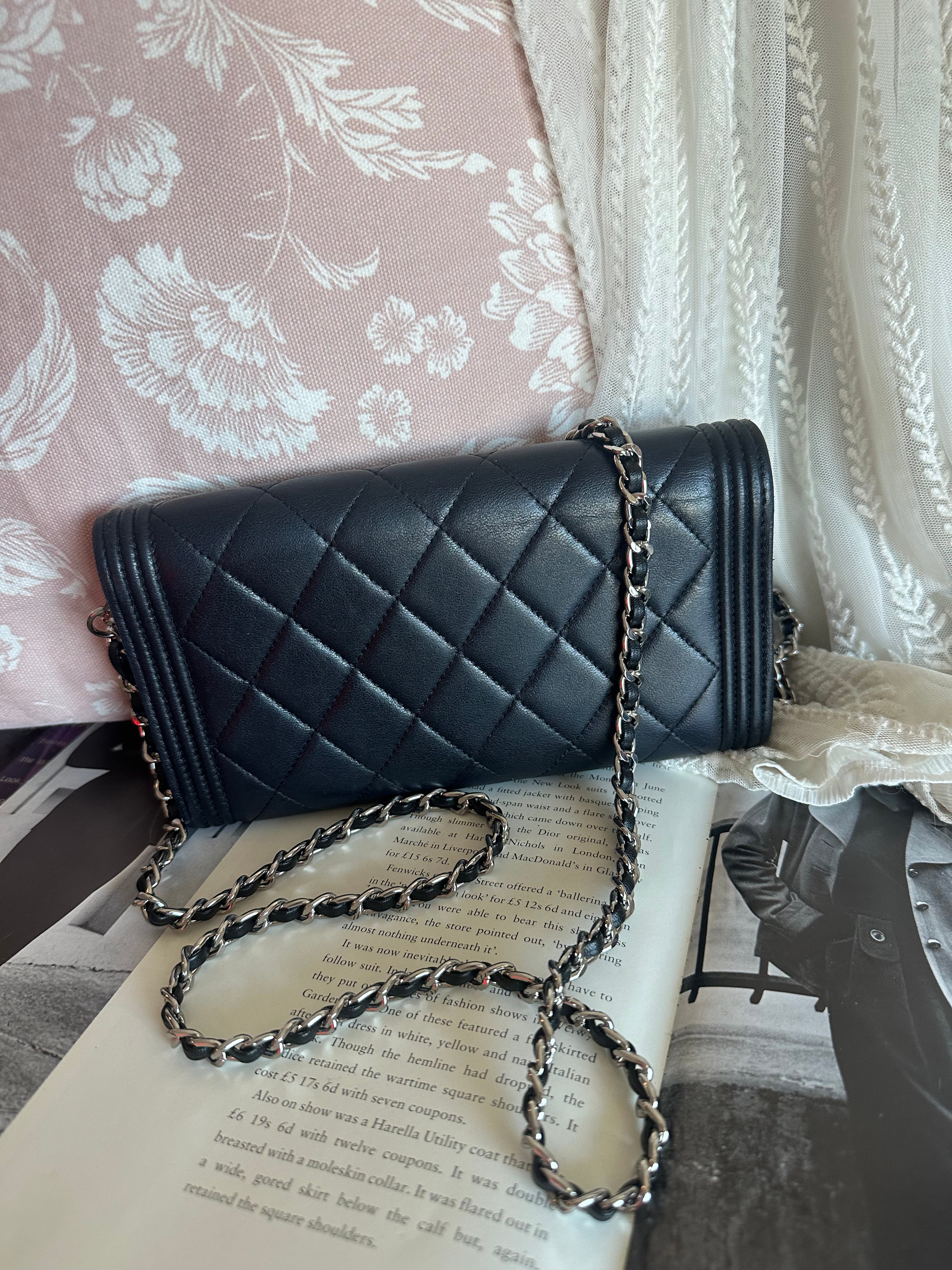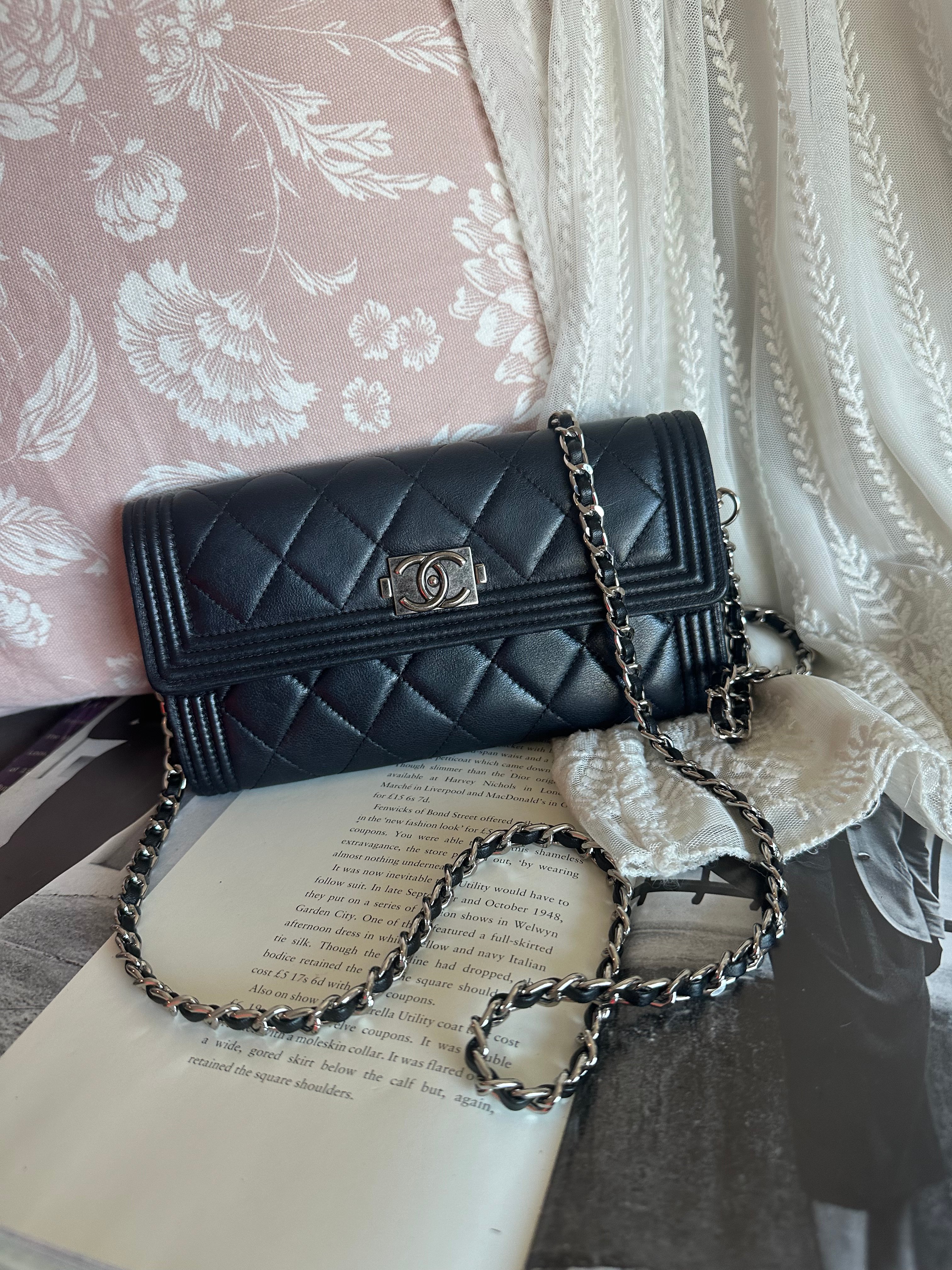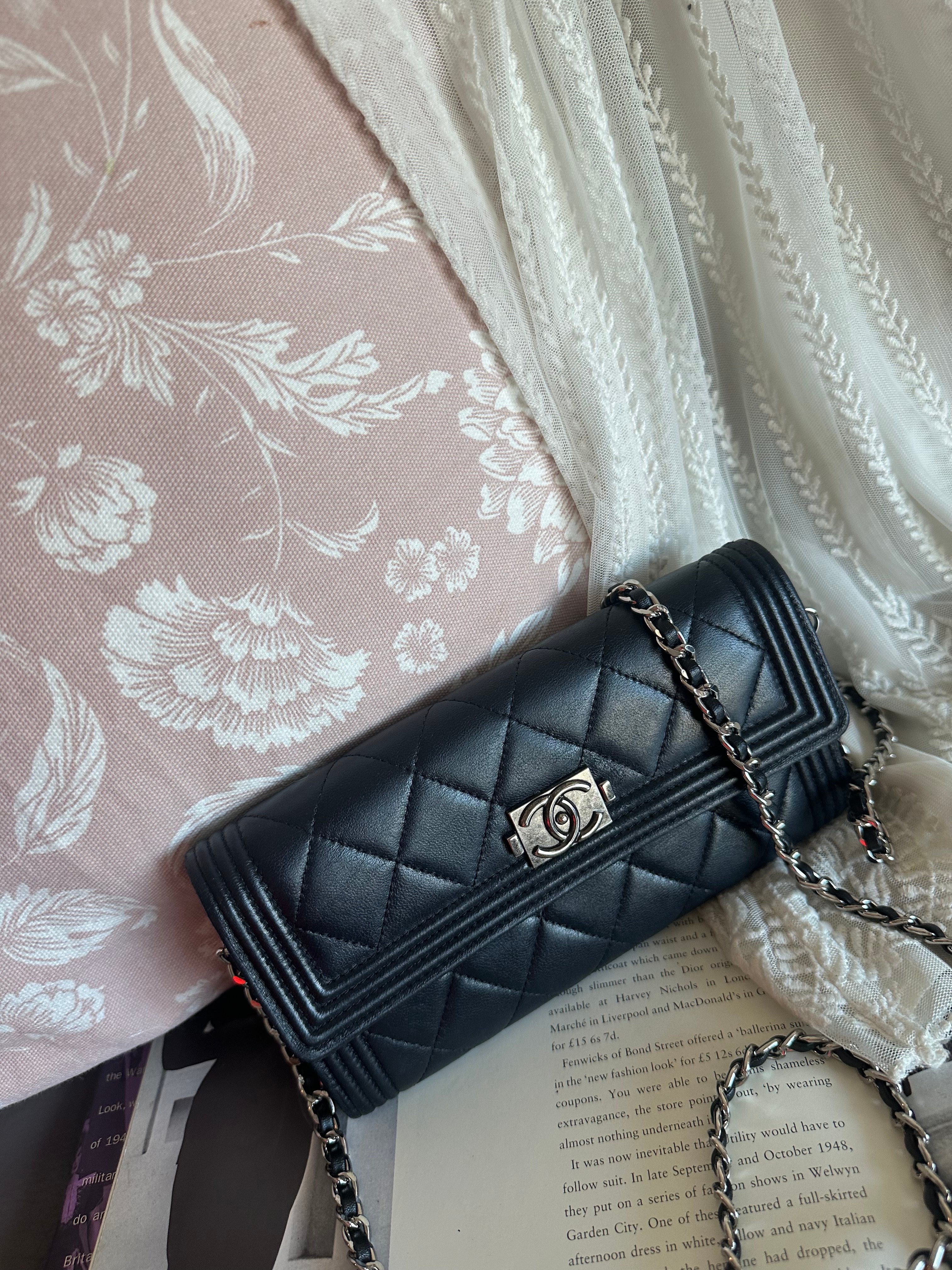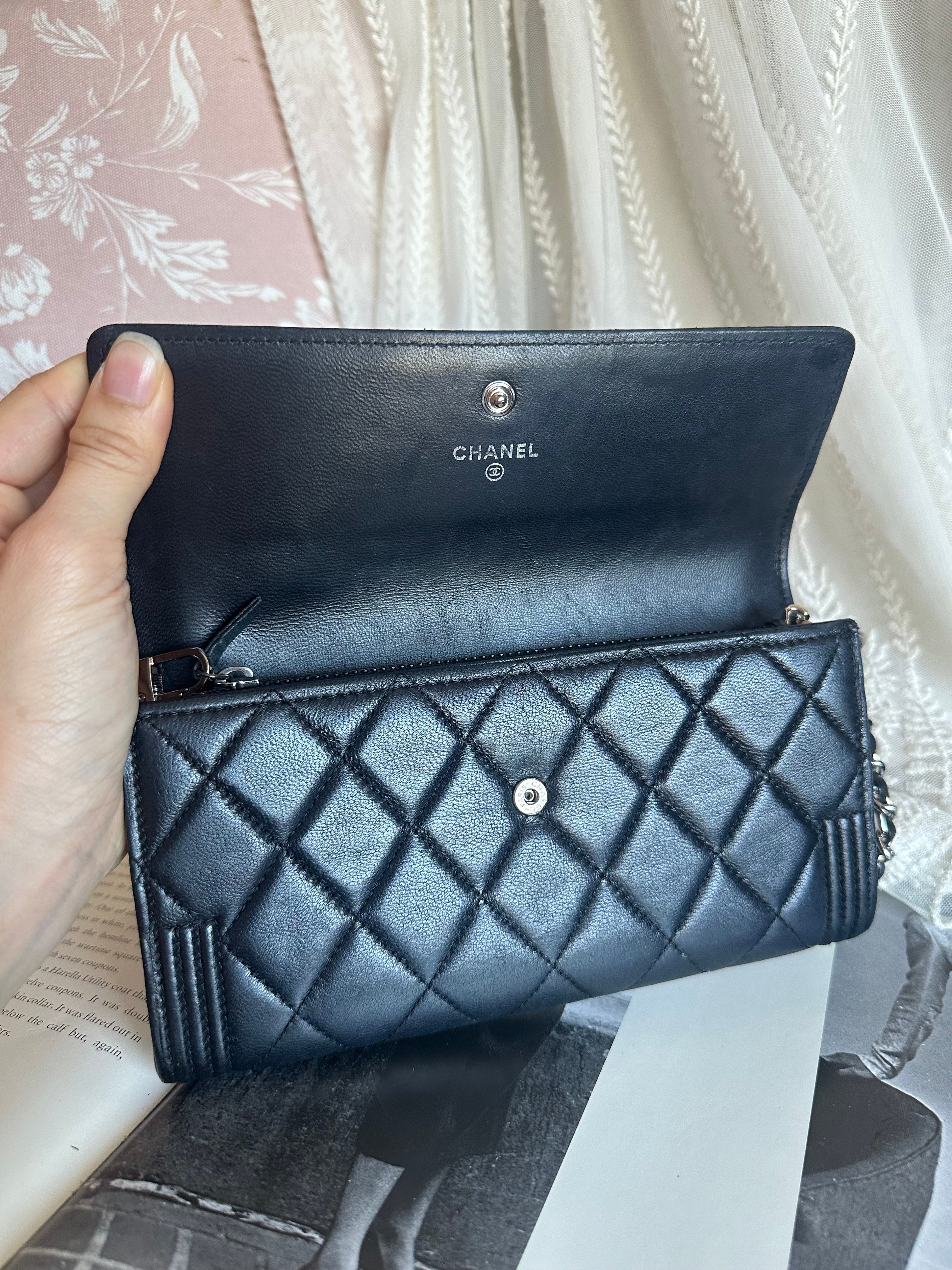 己改裝chanel cc boy matelasse black long wallet 🖤黑羊16字頭2012年 金屬係造舊扣 有貼貼數字清晰可見 原裝就係一個長銀包冇鏈 改裝的 ☑️免費改裝埋扣一對☑️沒品牌長鏈一條就可以當woc用 全部可以隨意拆除 原裝chain勁貴最少都20,000up 改裝款價錢差好遠☑️💰4500帶走🔥 美品chanel cc matelasse black boy long wallet 狀態:外90新/袋內90新 尺寸:19x10x2cm 午份:2012 配件:貼 送埋免費改裝埋扣一對/沒品牌長鏈一條 (以上是免費贈送原裝並沒有全部可以隨意拆除) chanel cc matelasse black boy long wallet ghw Dimensions :19x10x2cm Year:2012 Accessories:authenticity sticker Item has been modified, installed non branded hook and non branded chain 🖤本店為香港零售管理協會會員/門市已開業9年連續多年正版正貨商戶2025編號 001176 付款方法:VISA / MASTER / AE / 銀聯 / UNION PAY /現金 /alipay ❤️門市提供恒生💳渣打💳滙豐💳AE 💳DBS 💳Citibank💳mox 信用卡✅免息分期✅ 📢本店只出售正版貨📢 ❤️歡迎親臨銅鑼灣門市😍 地址🏠銅鑼灣記利佐治街2-10號銅鑼灣地帶2樓237號鋪 Shop 237, 2/f, causeway place, 2 great george street, causeway bay 📞65230308