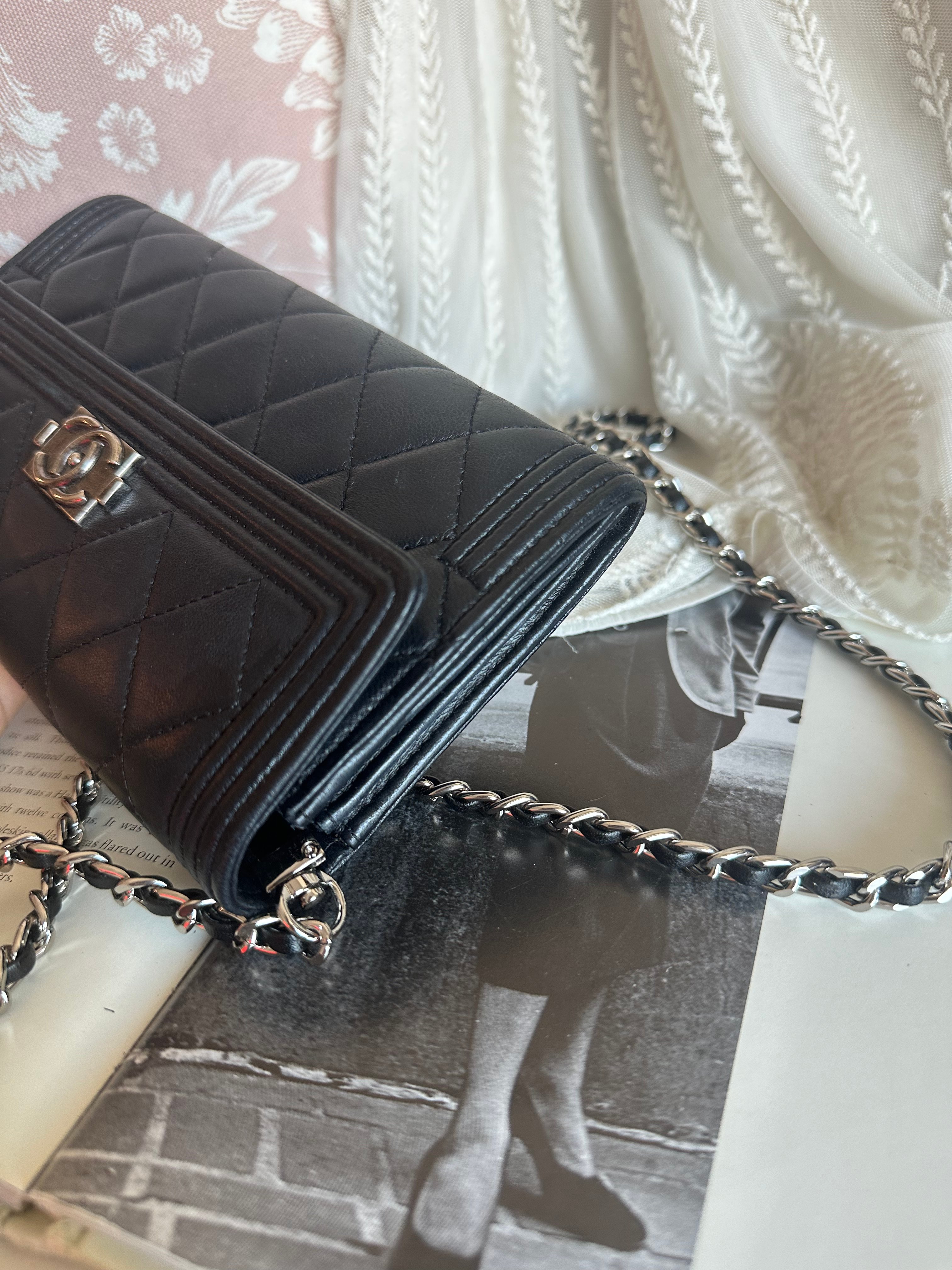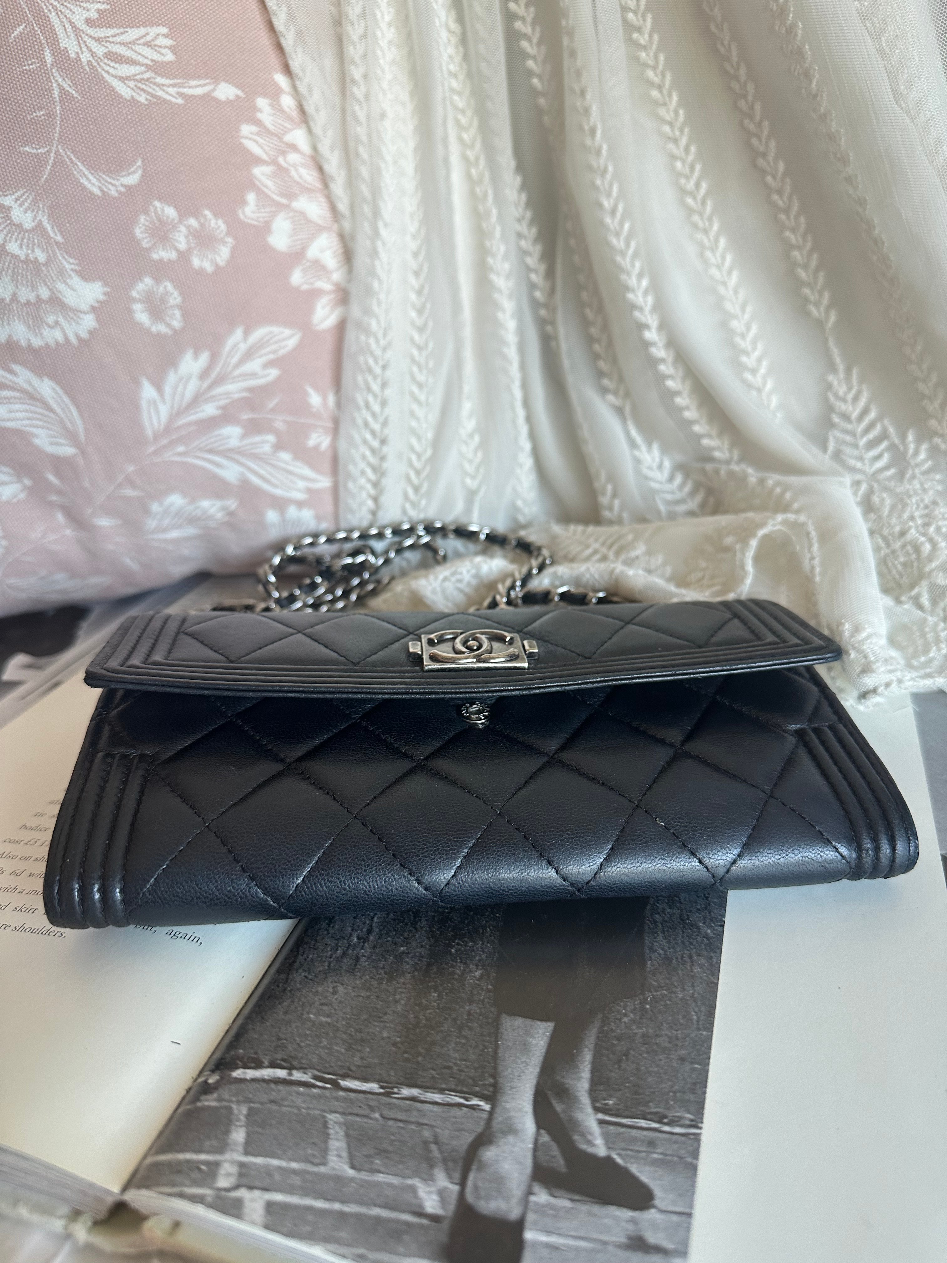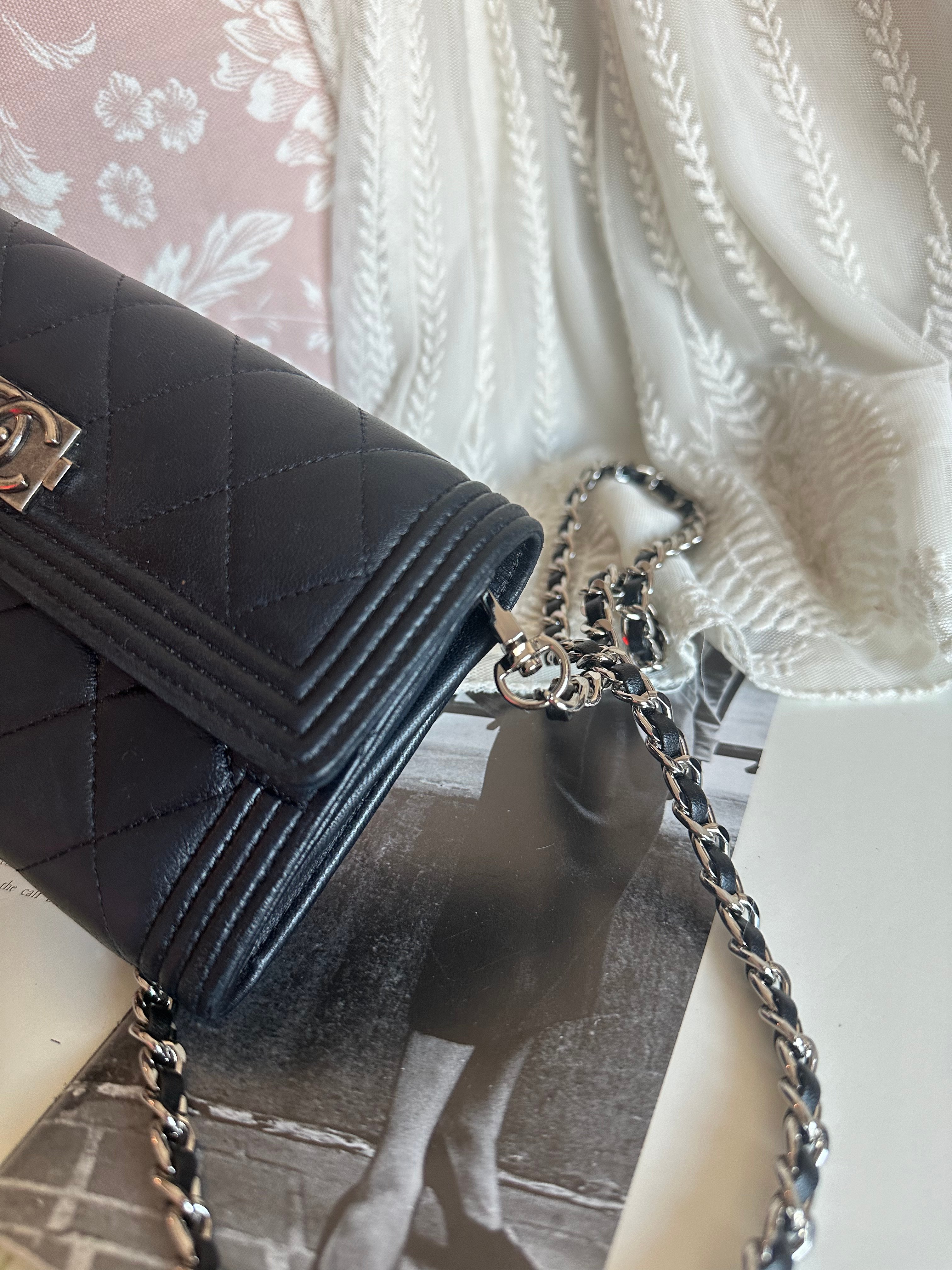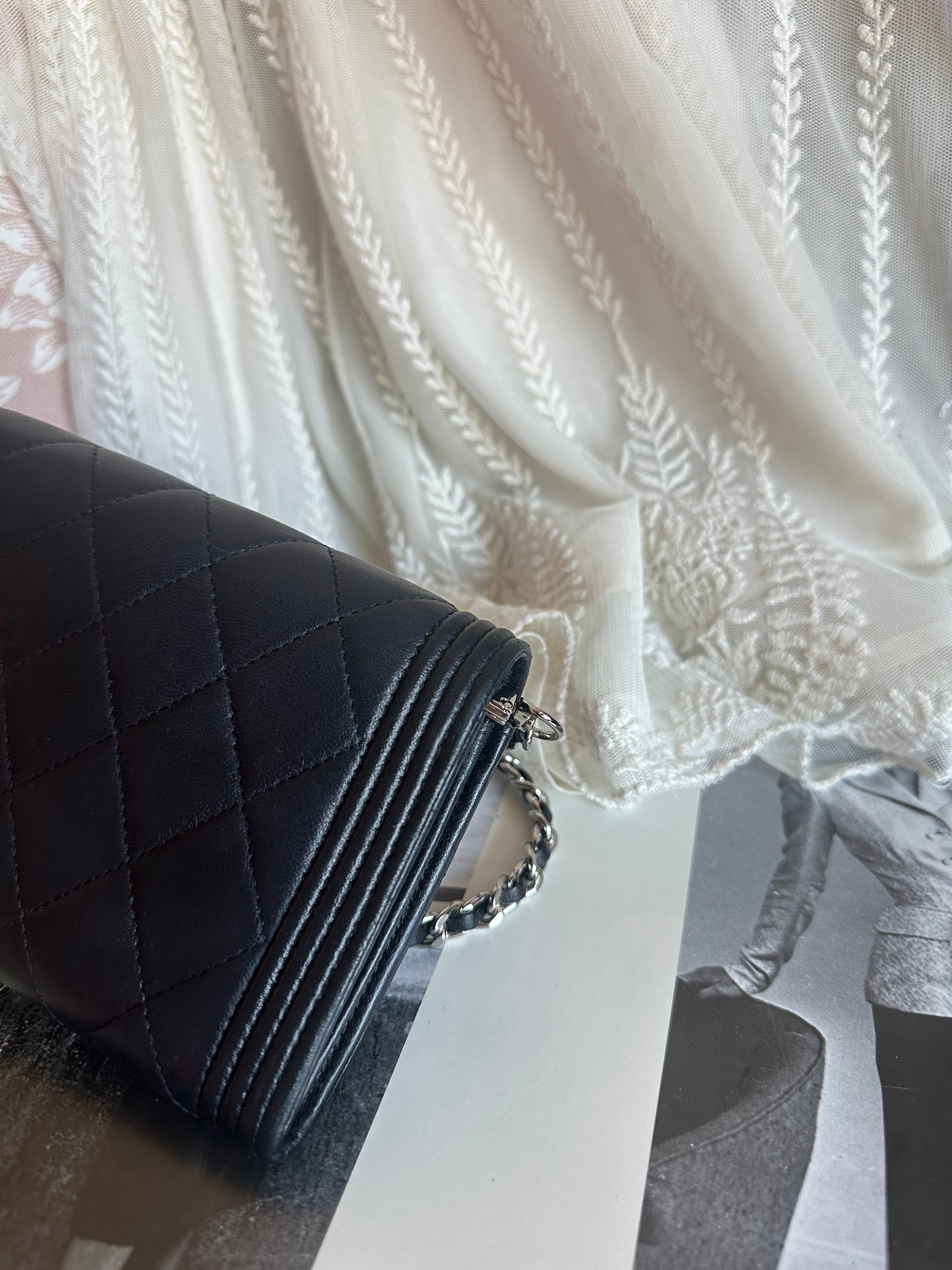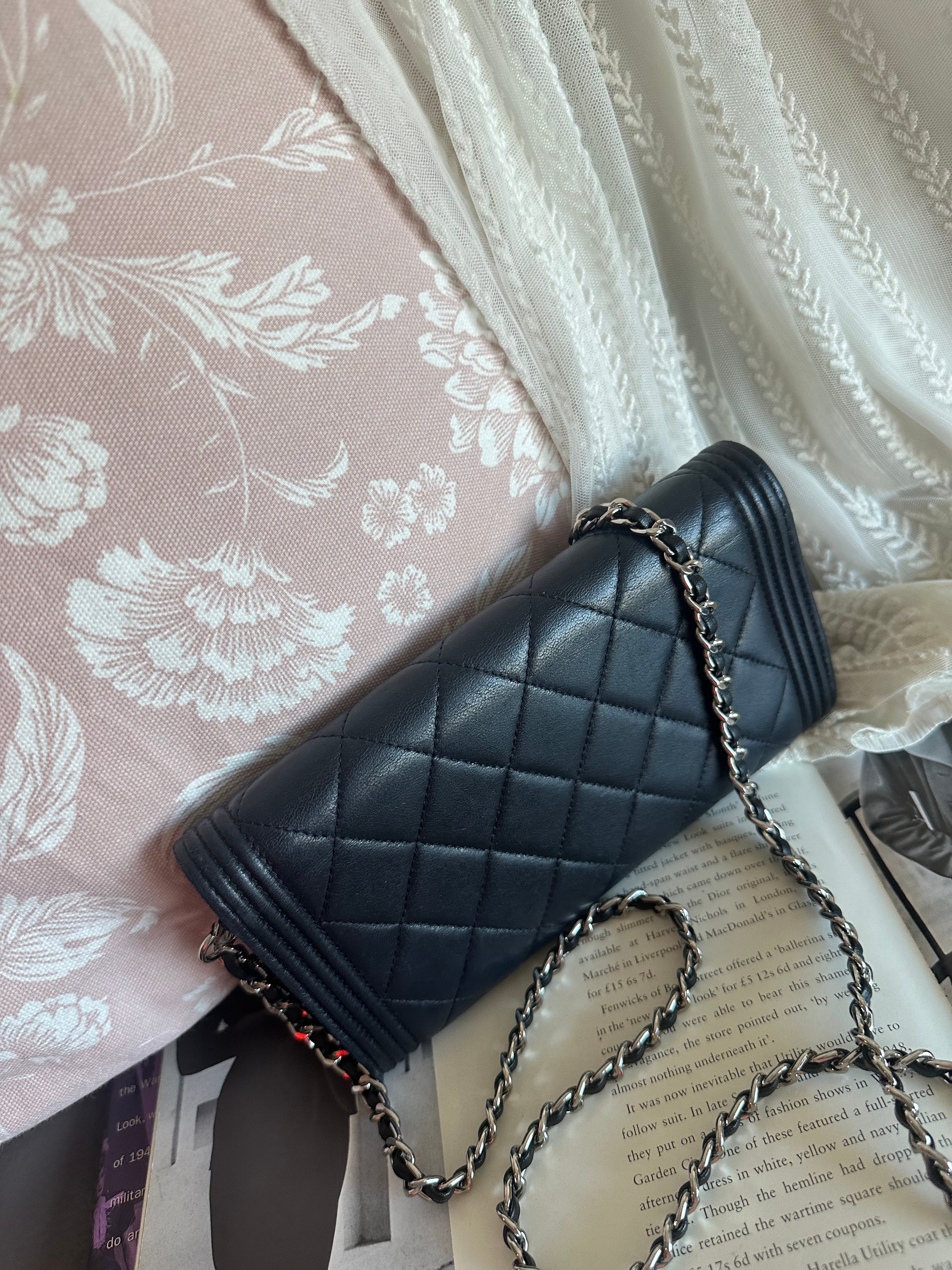 己改裝chanel cc boy matelasse black long wallet 🖤黑羊16字頭2012年 金屬係造舊扣 有貼貼數字清晰可見 原裝就係一個長銀包冇鏈 改裝的 ☑️免費改裝埋扣一對☑️沒品牌長鏈一條就可以當woc用 全部可以隨意拆除 原裝chain勁貴最少都20,000up 改裝款價錢差好遠☑️💰4500帶走🔥 美品chanel cc matelasse black boy long wallet 狀態:外90新/袋內90新 尺寸:19x10x2cm 午份:2012 配件:貼 送埋免費改裝埋扣一對/沒品牌長鏈一條 (以上是免費贈送原裝並沒有全部可以隨意拆除) chanel cc matelasse black boy long wallet ghw Dimensions :19x10x2cm Year:2012 Accessories:authenticity sticker Item has been modified, installed non branded hook and non branded chain 🖤本店為香港零售管理協會會員/門市已開業9年連續多年正版正貨商戶2025編號 001176 付款方法:VISA / MASTER / AE / 銀聯 / UNION PAY /現金 /alipay ❤️門市提供恒生💳渣打💳滙豐💳AE 💳DBS 💳Citibank💳mox 信用卡✅免息分期✅ 📢本店只出售正版貨📢 ❤️歡迎親臨銅鑼灣門市😍 地址🏠銅鑼灣記利佐治街2-10號銅鑼灣地帶2樓237號鋪 Shop 237, 2/f, causeway place, 2 great george street, causeway bay 📞65230308