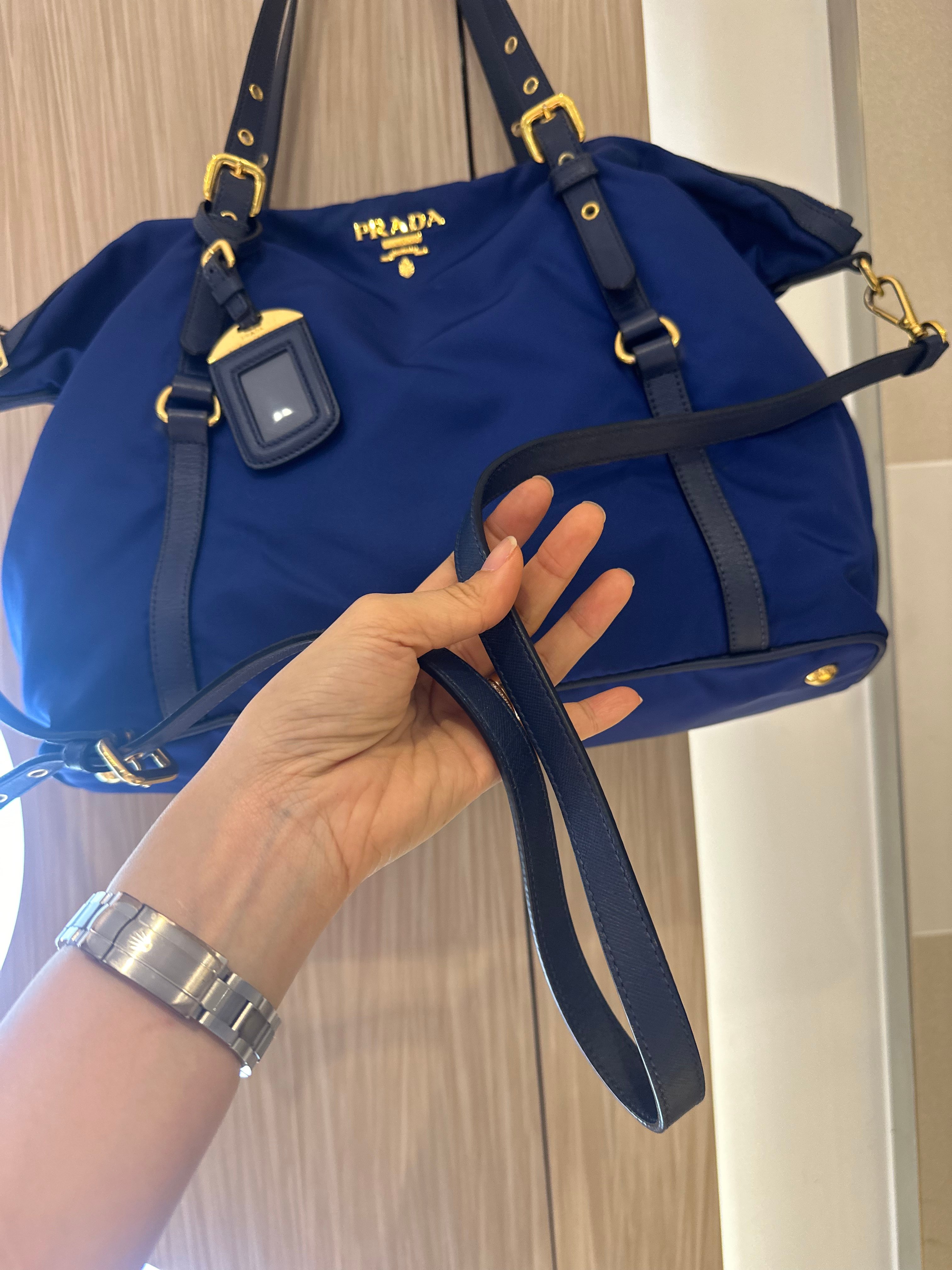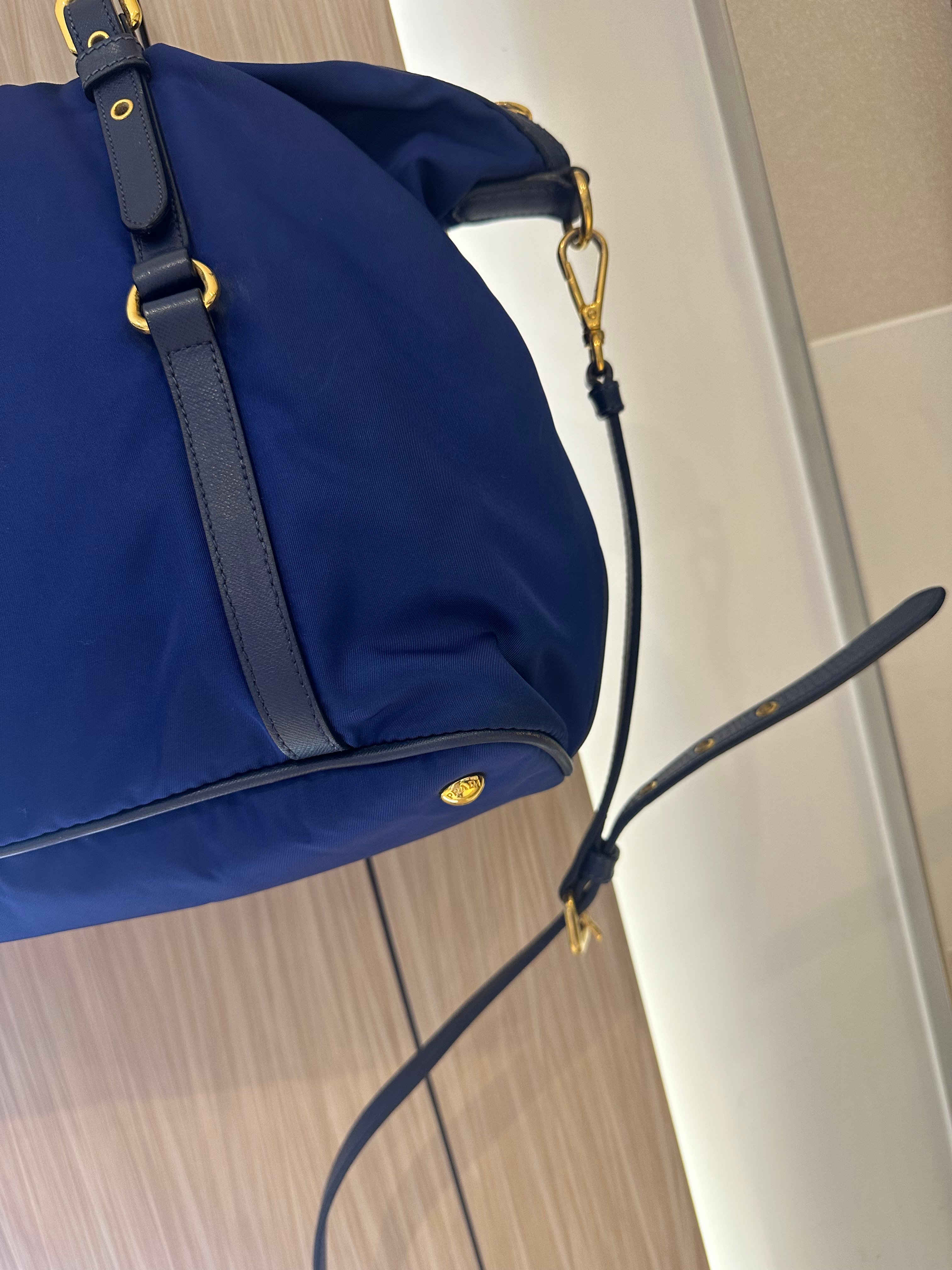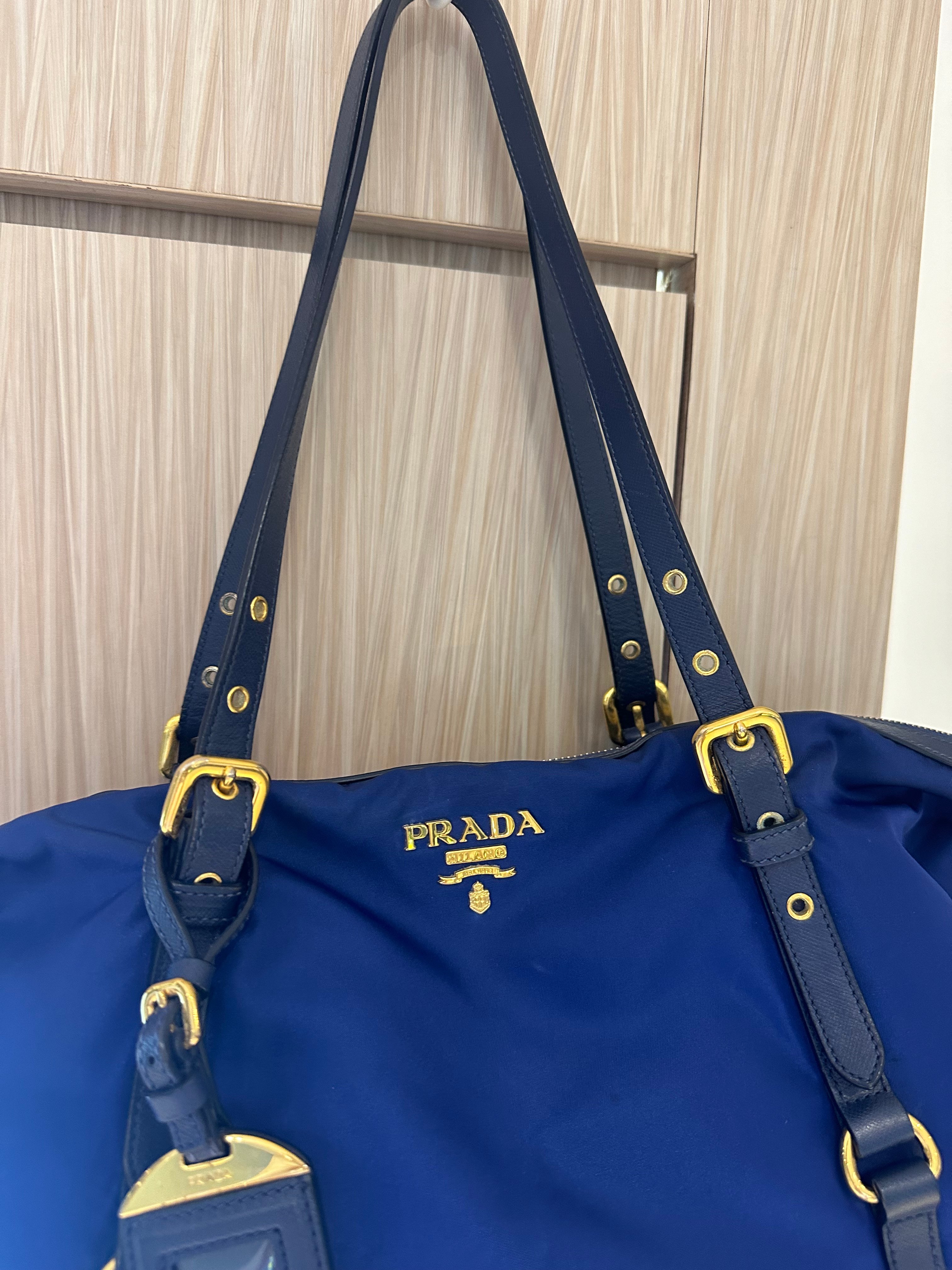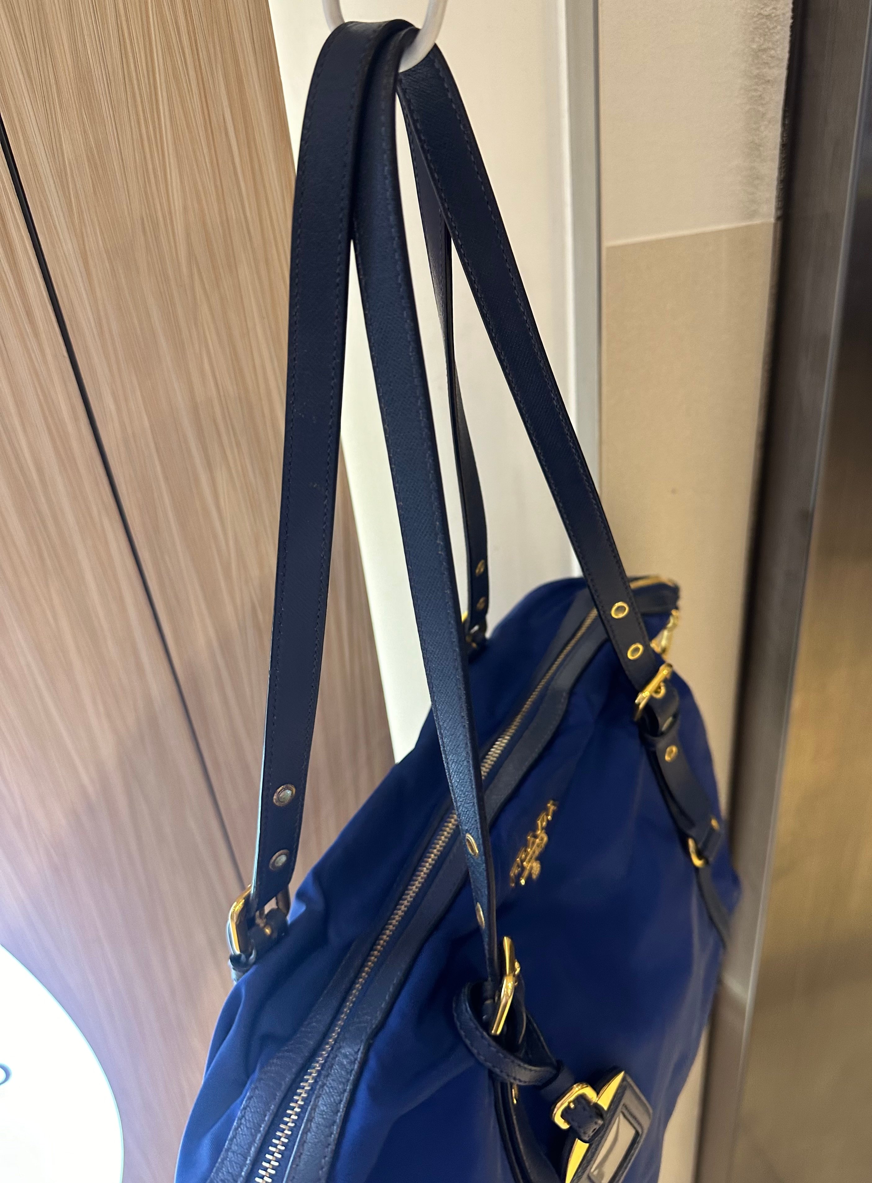 美品prada navy blue 尼龍x皮tote bag with original strap