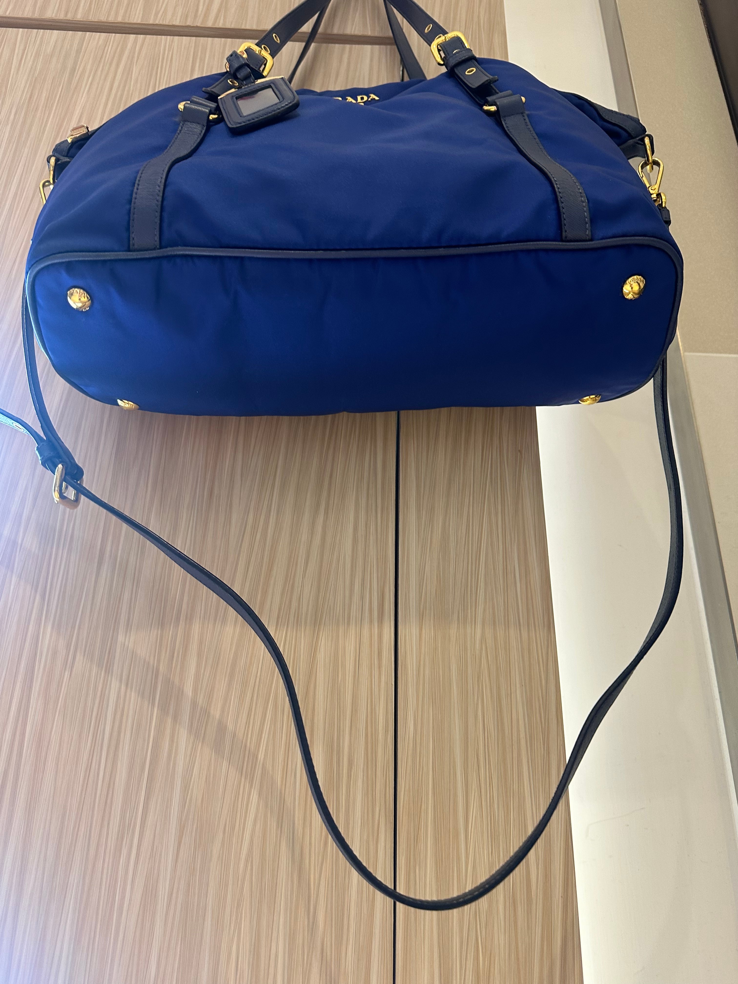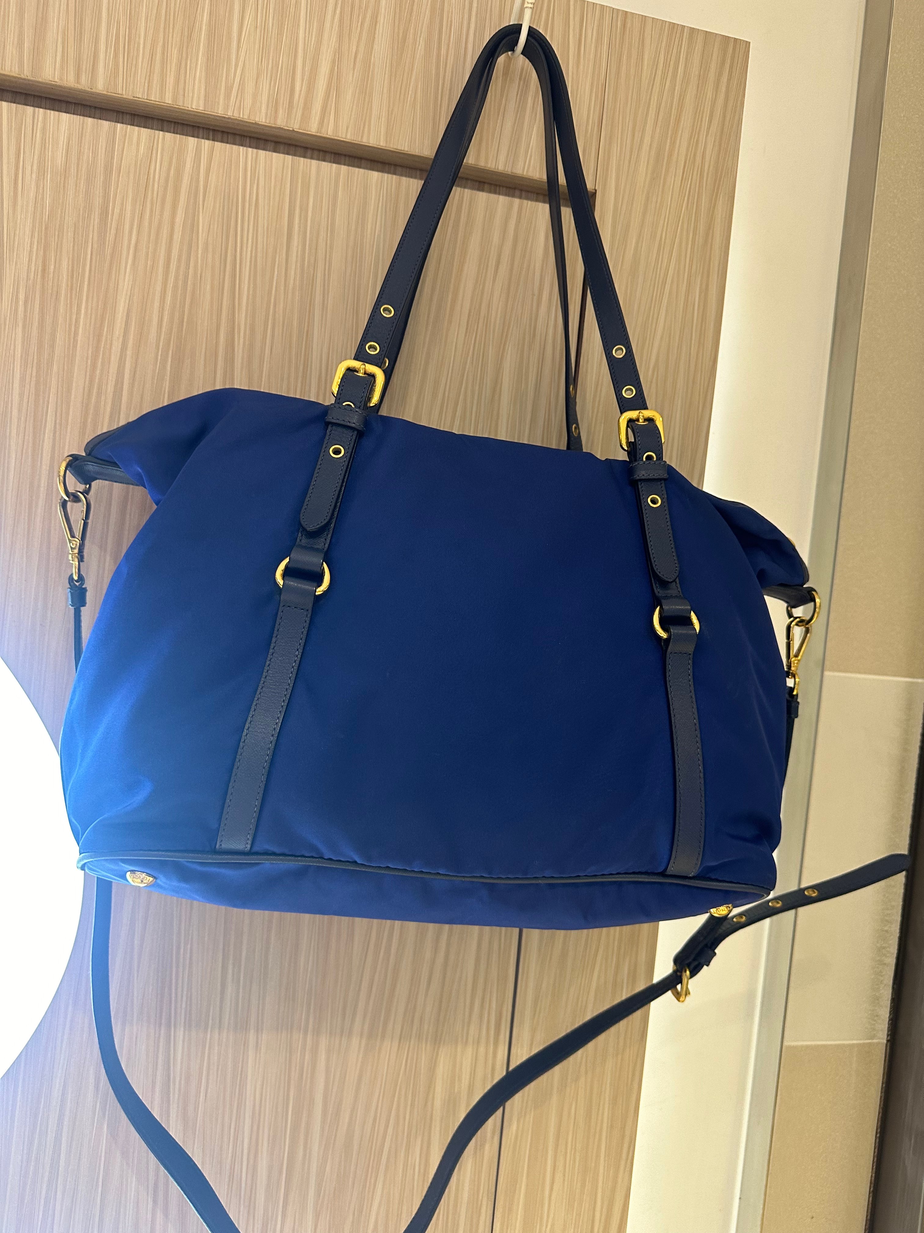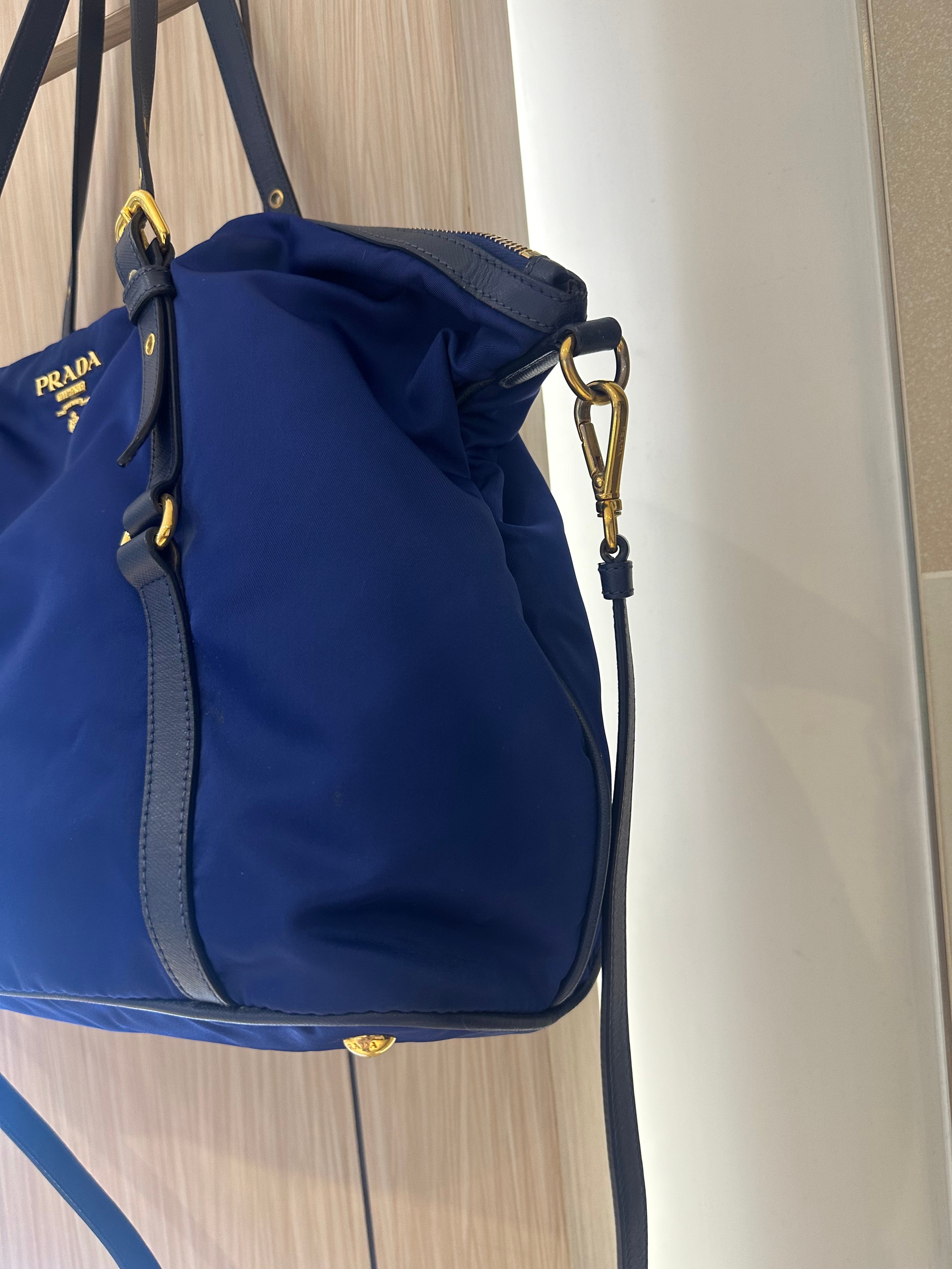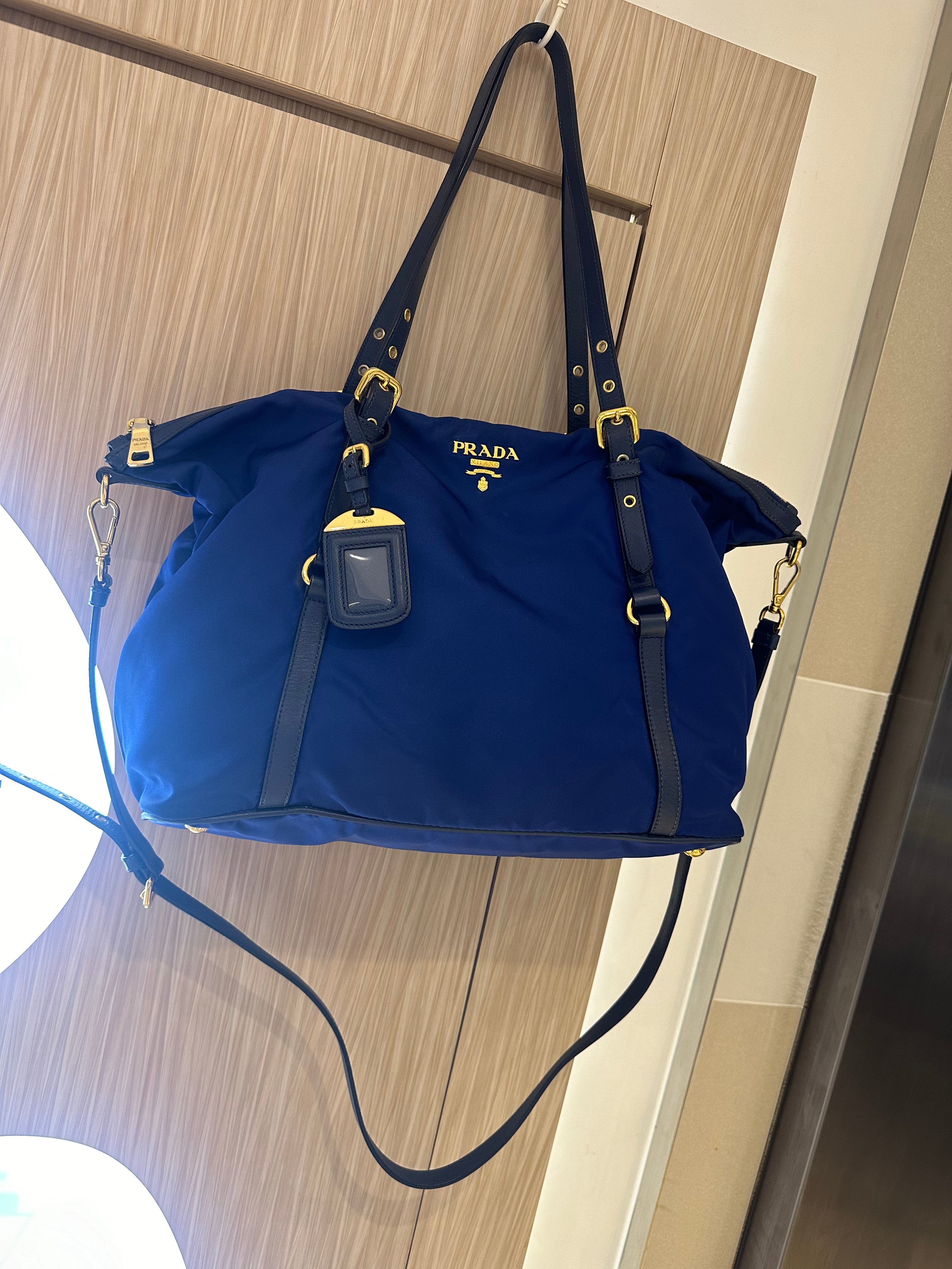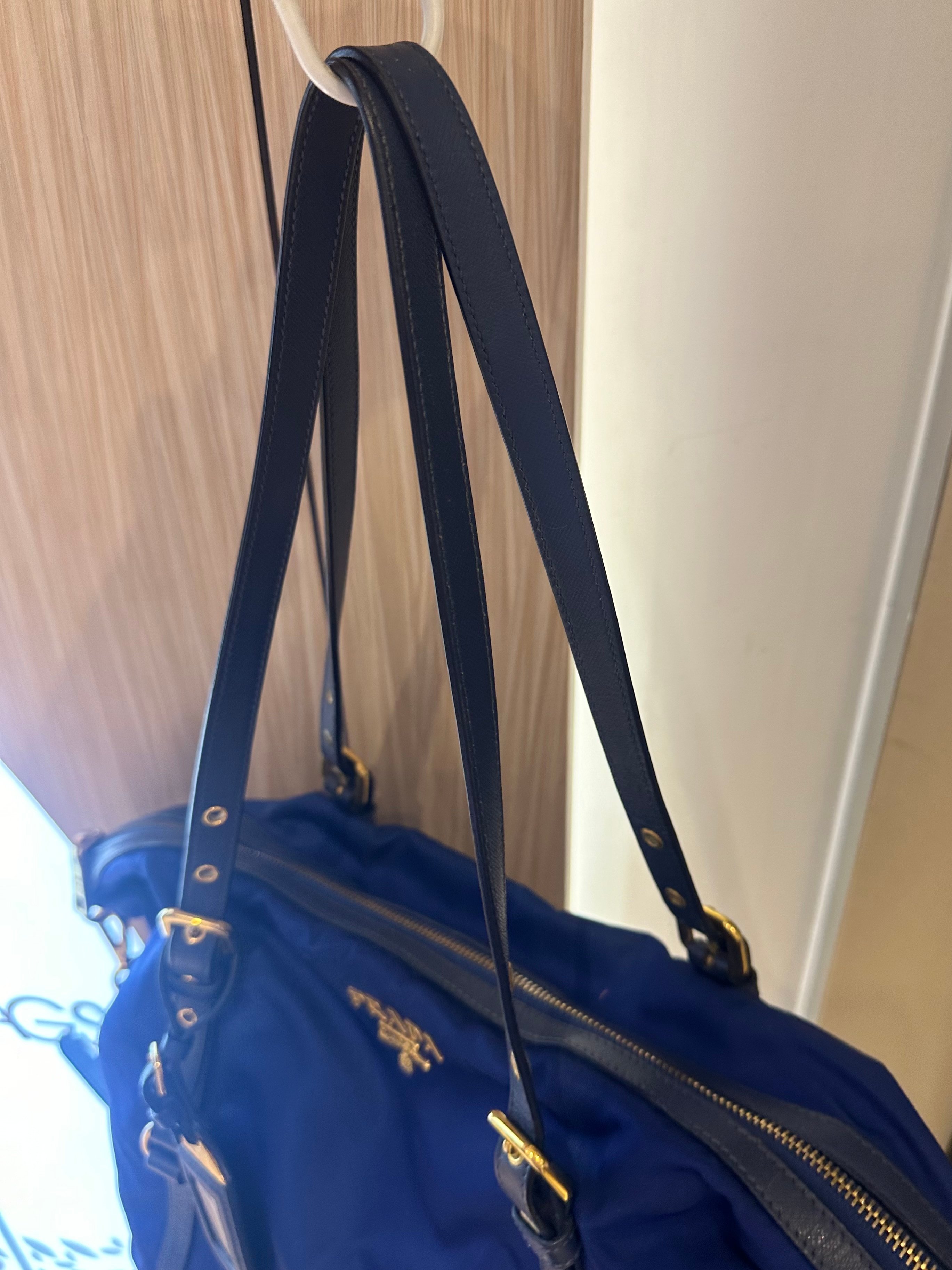 美品prada navy blue 尼龍x皮tote bag with original strap