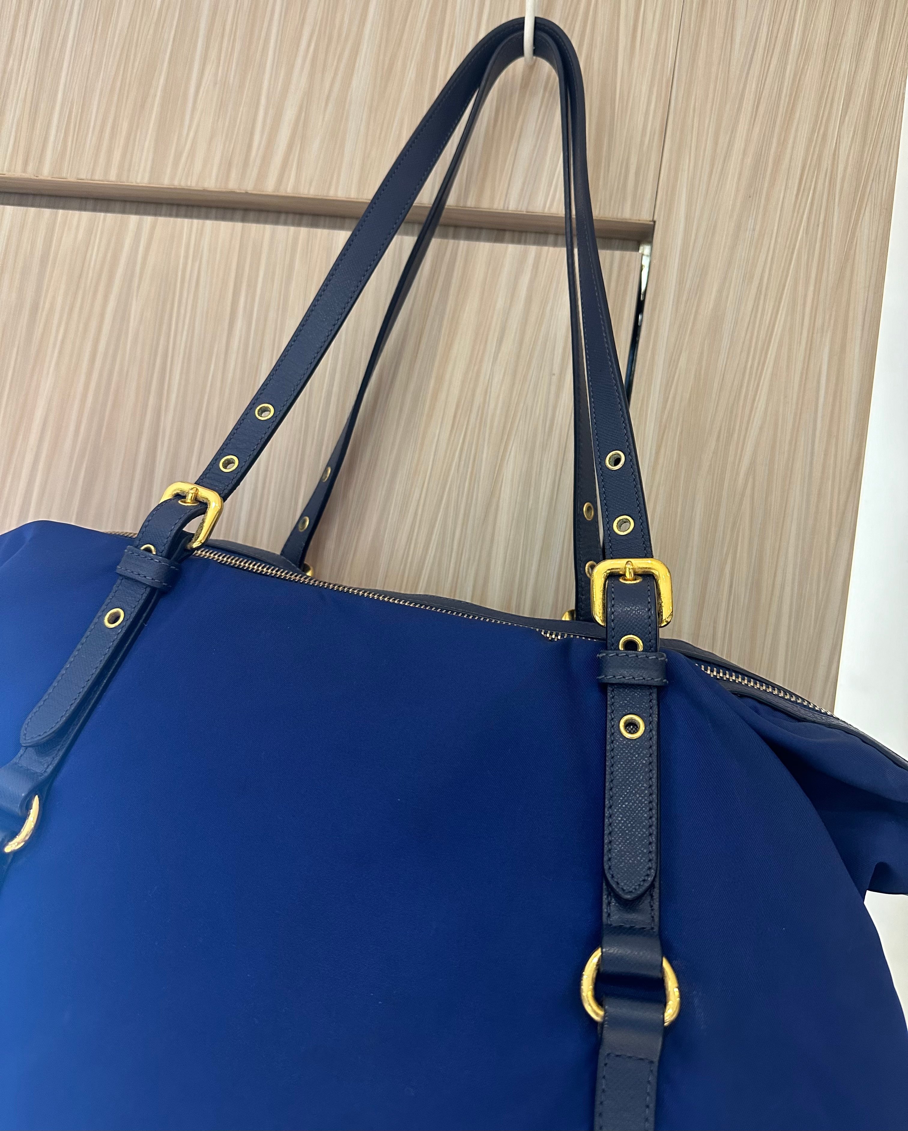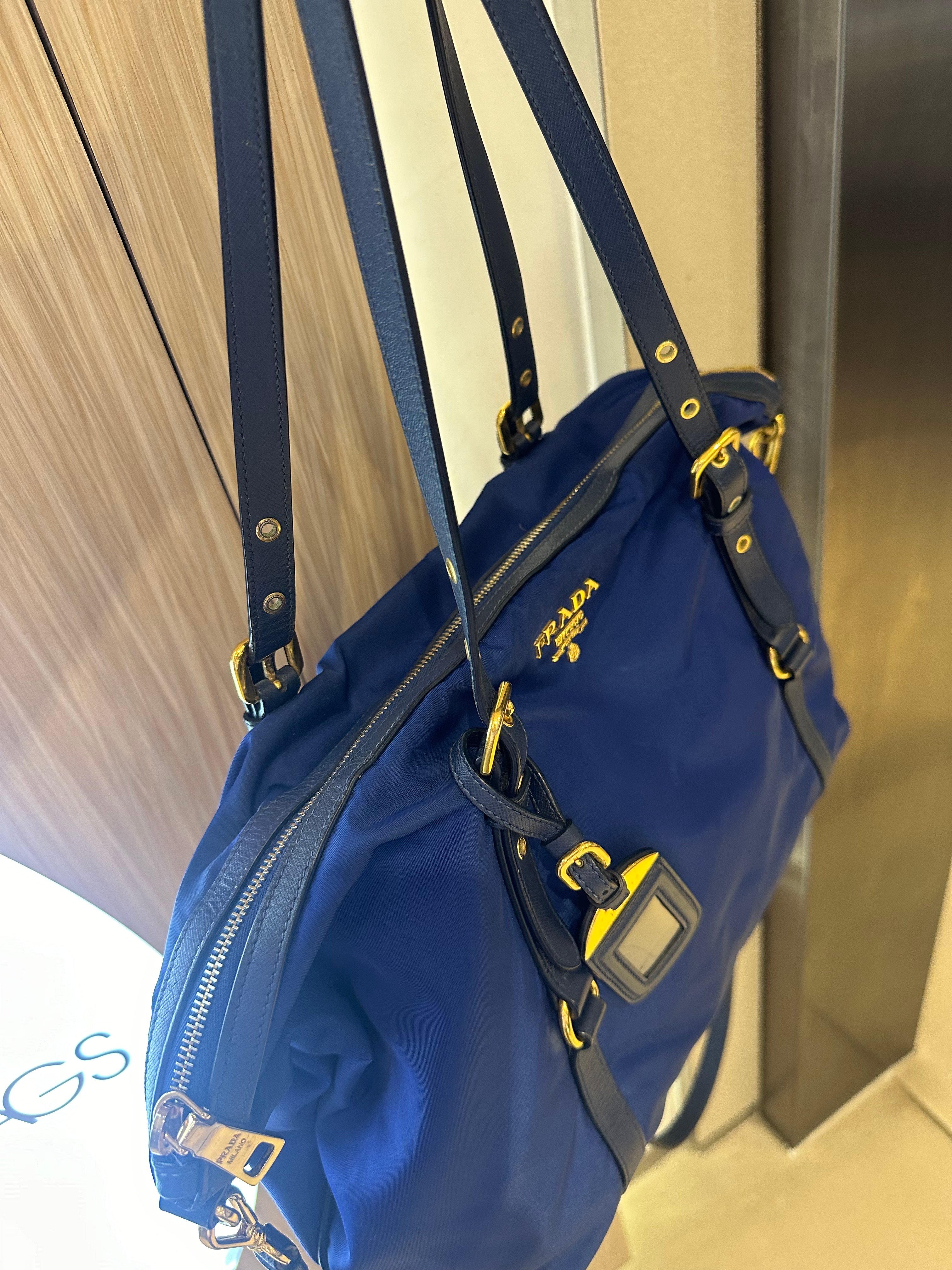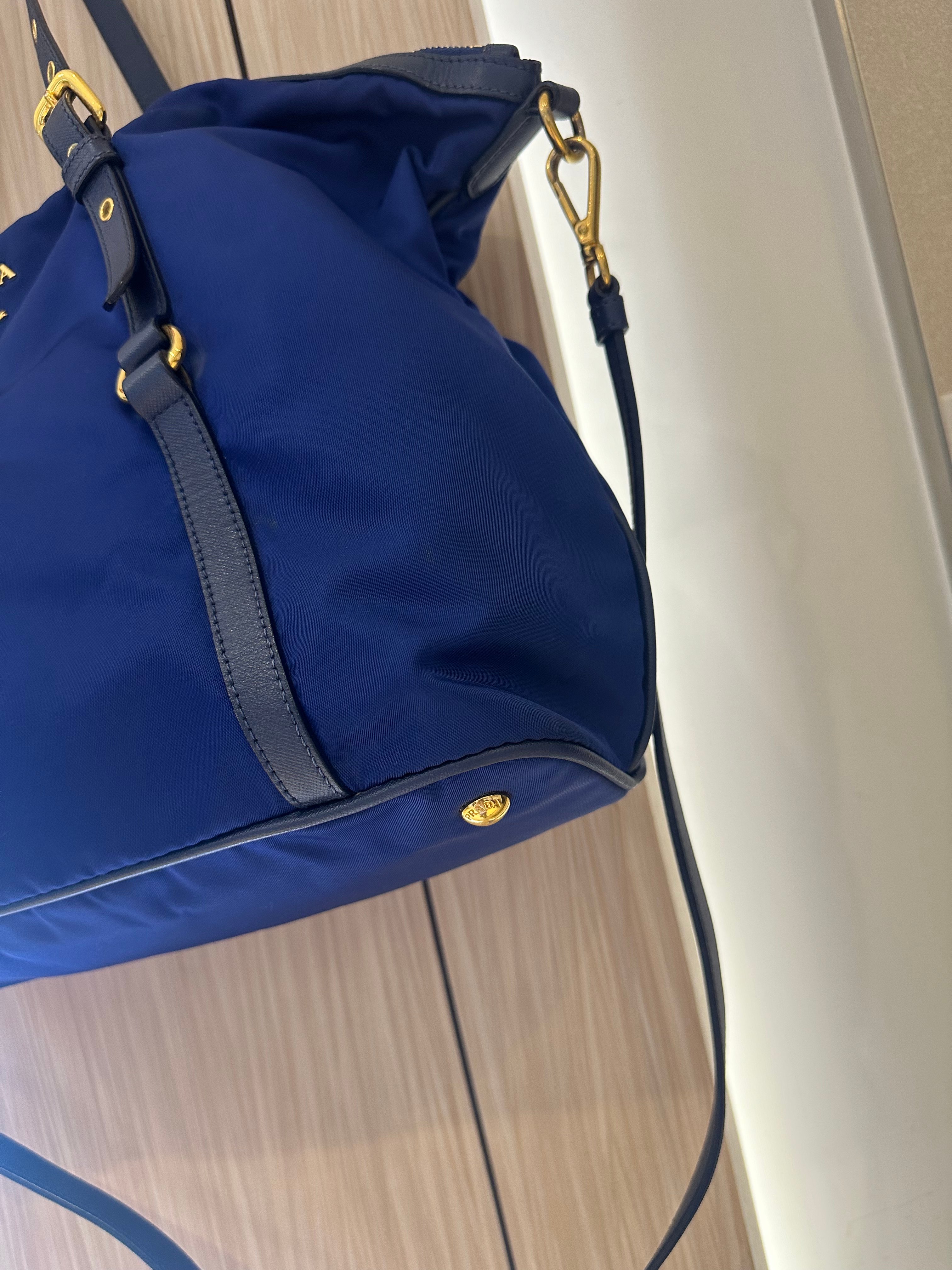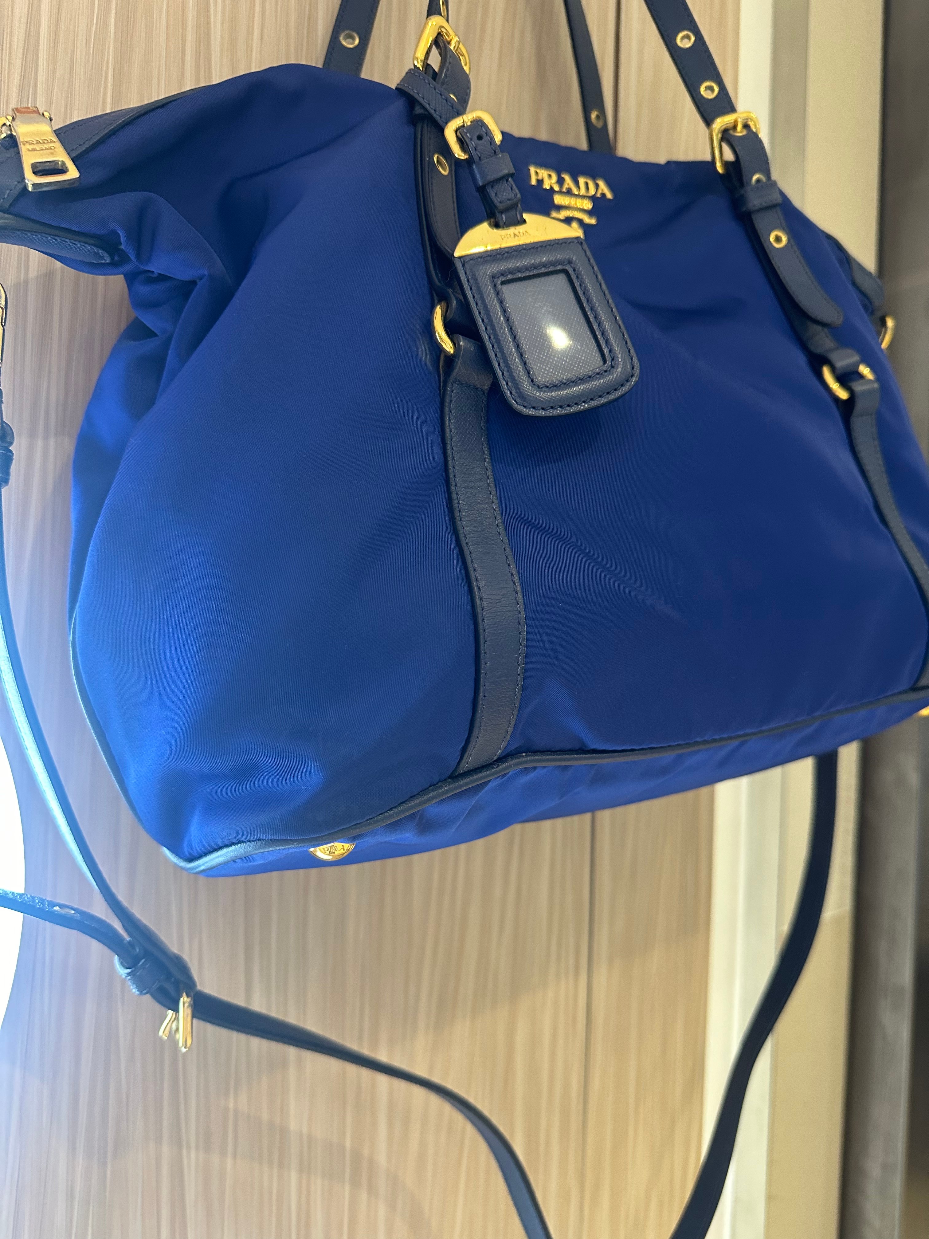 美品prada navy blue 尼龍x皮tote bag with original strap