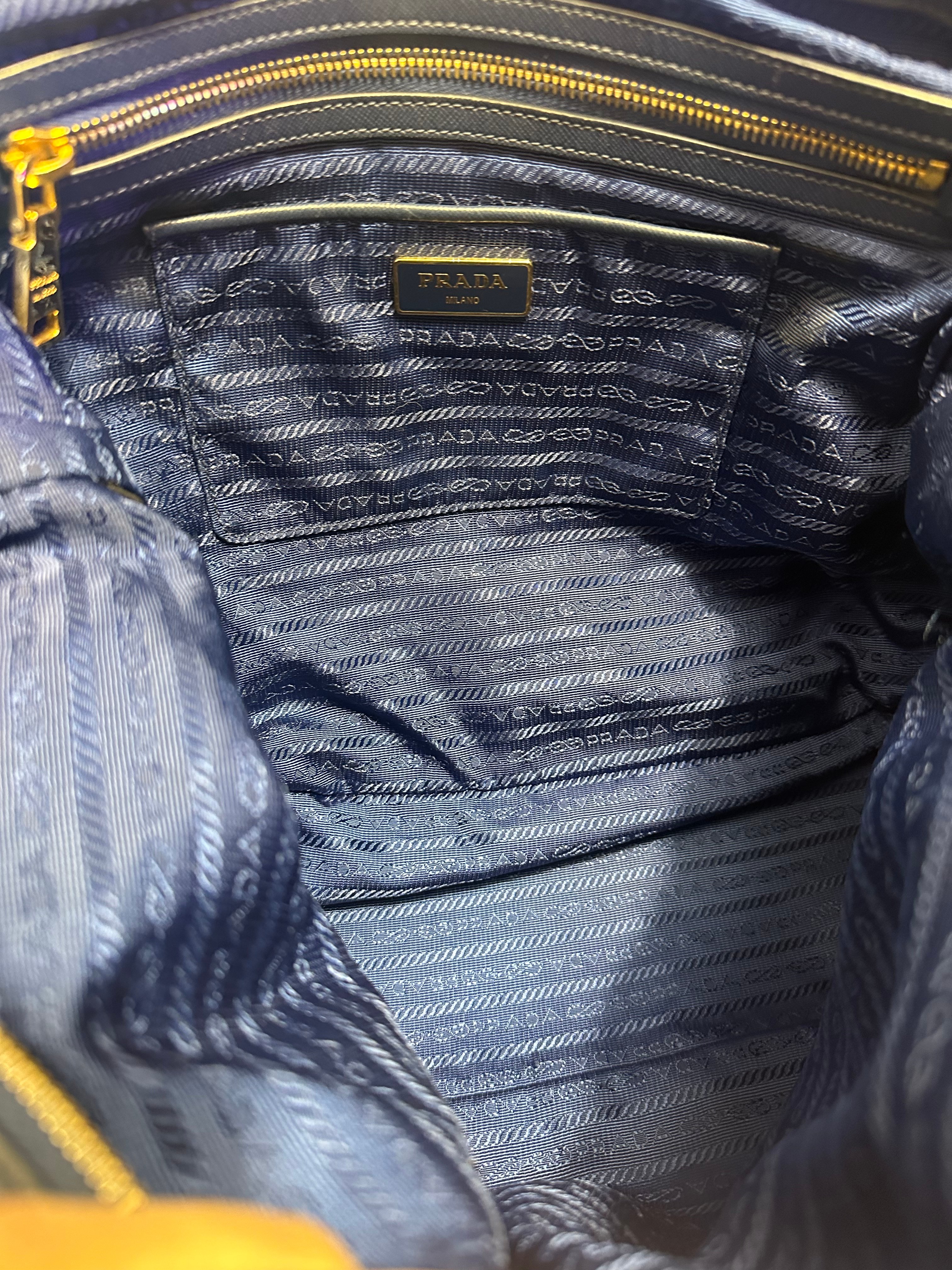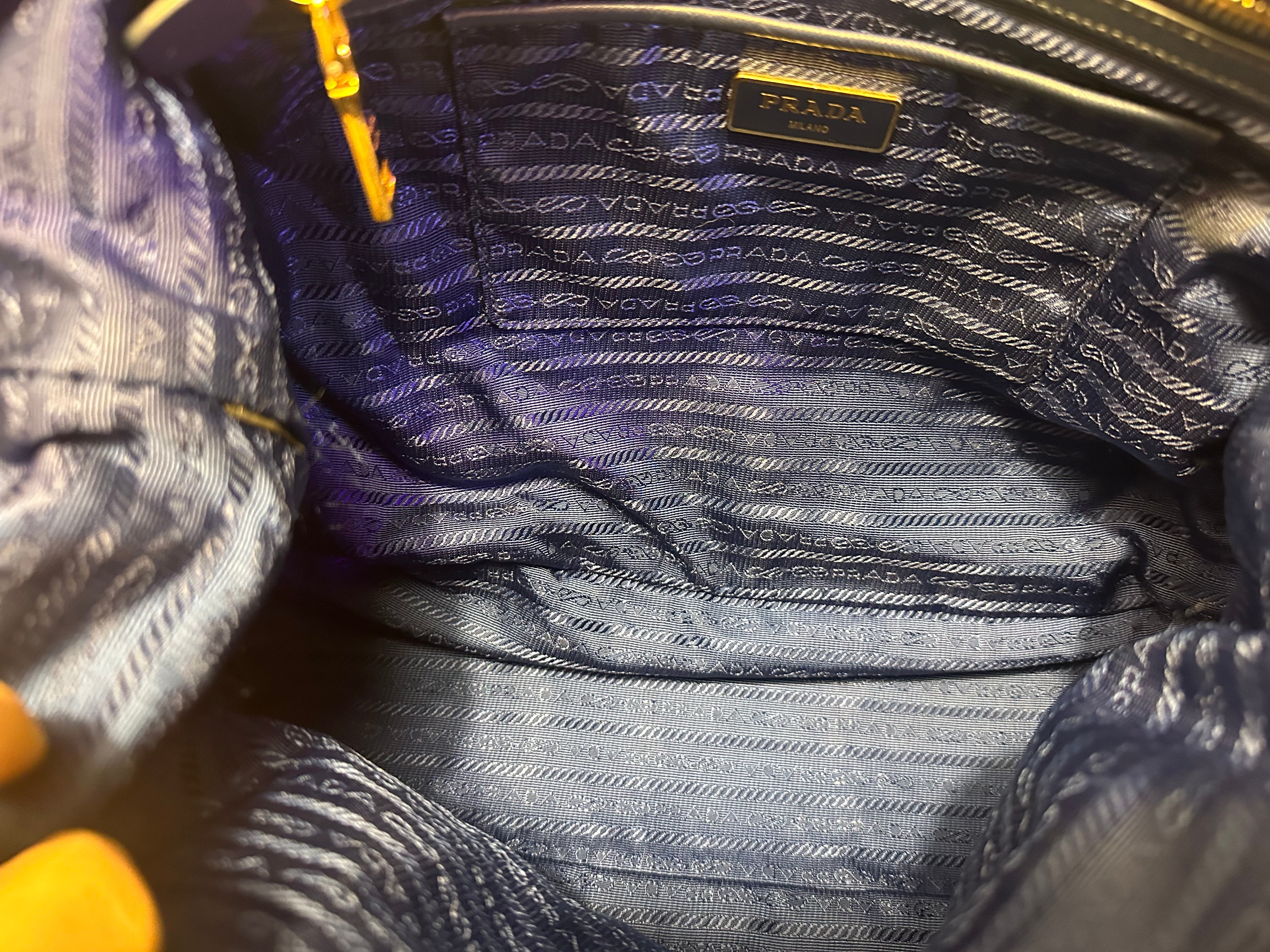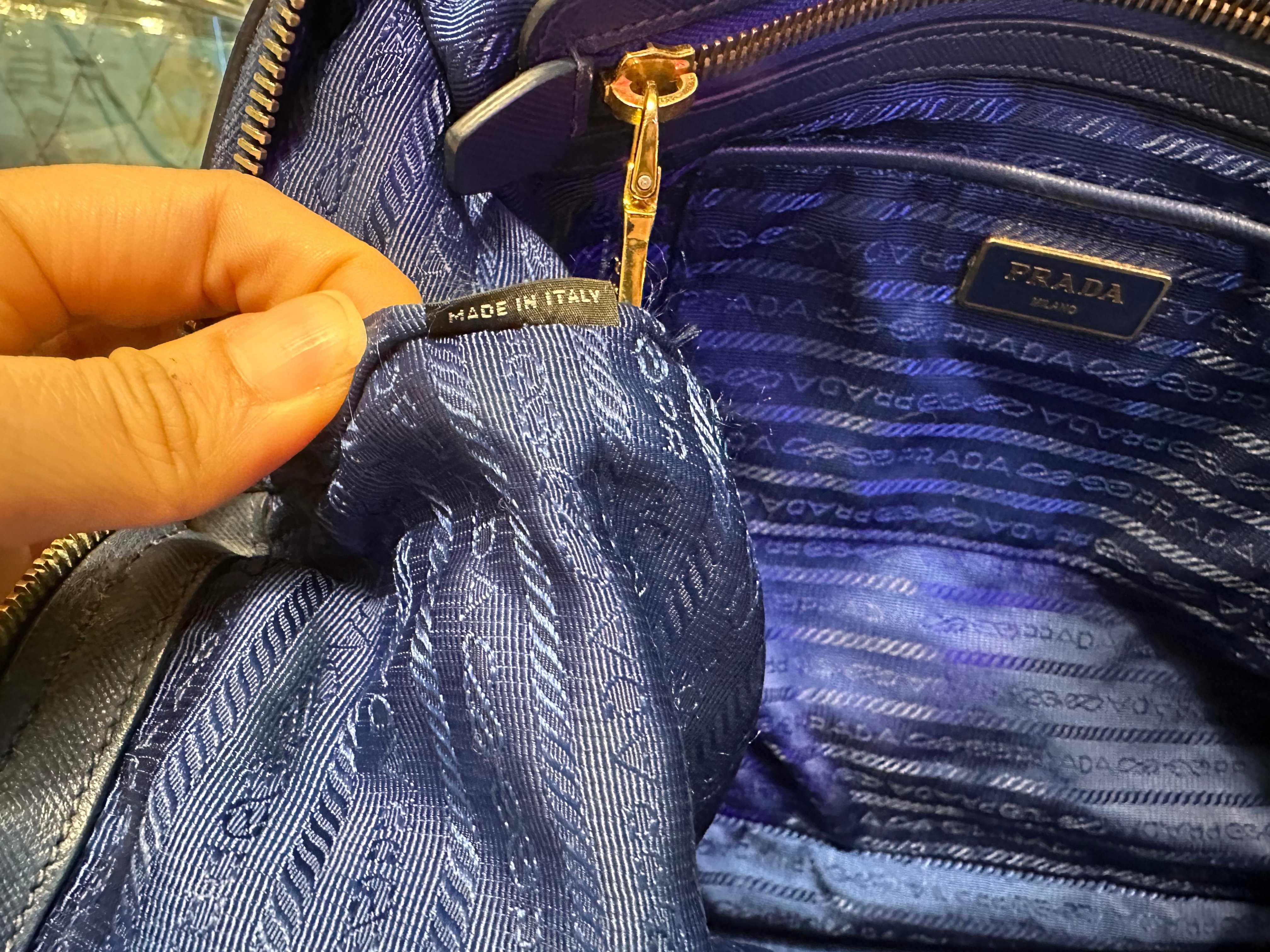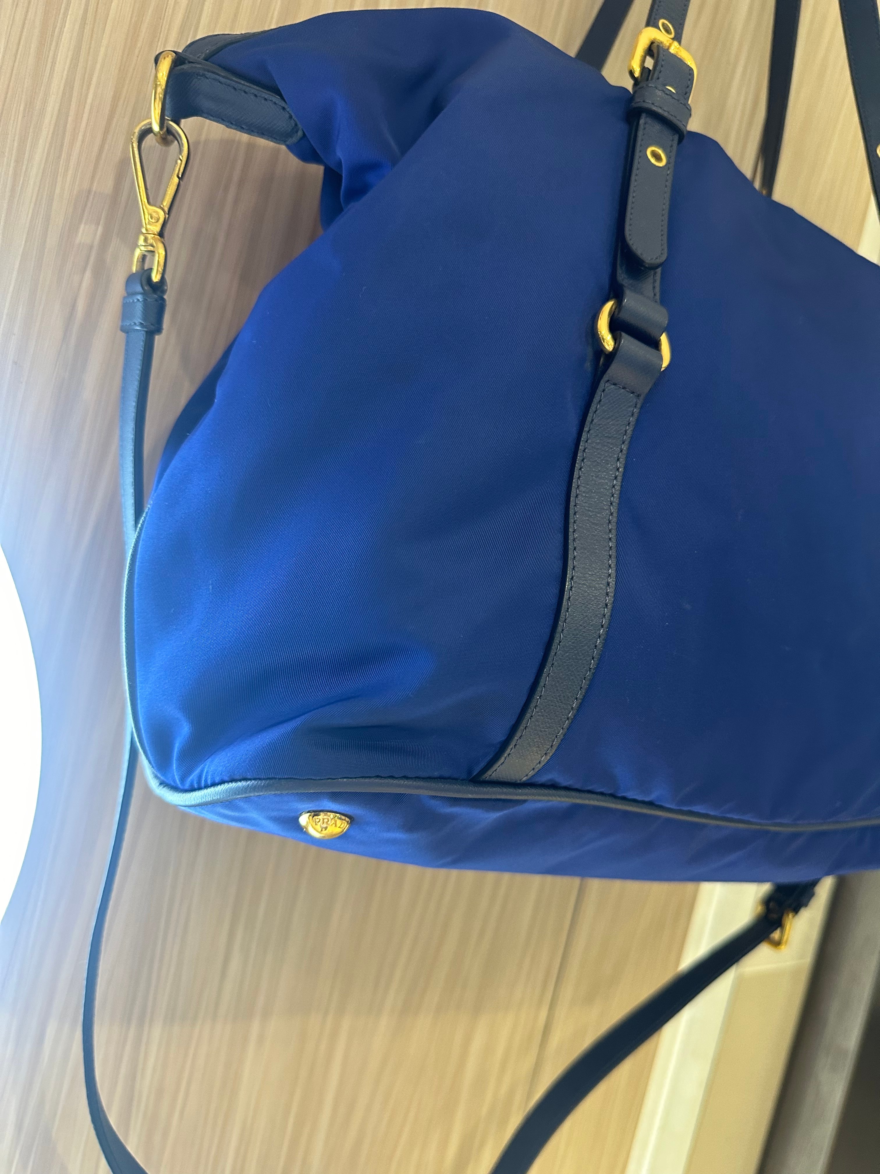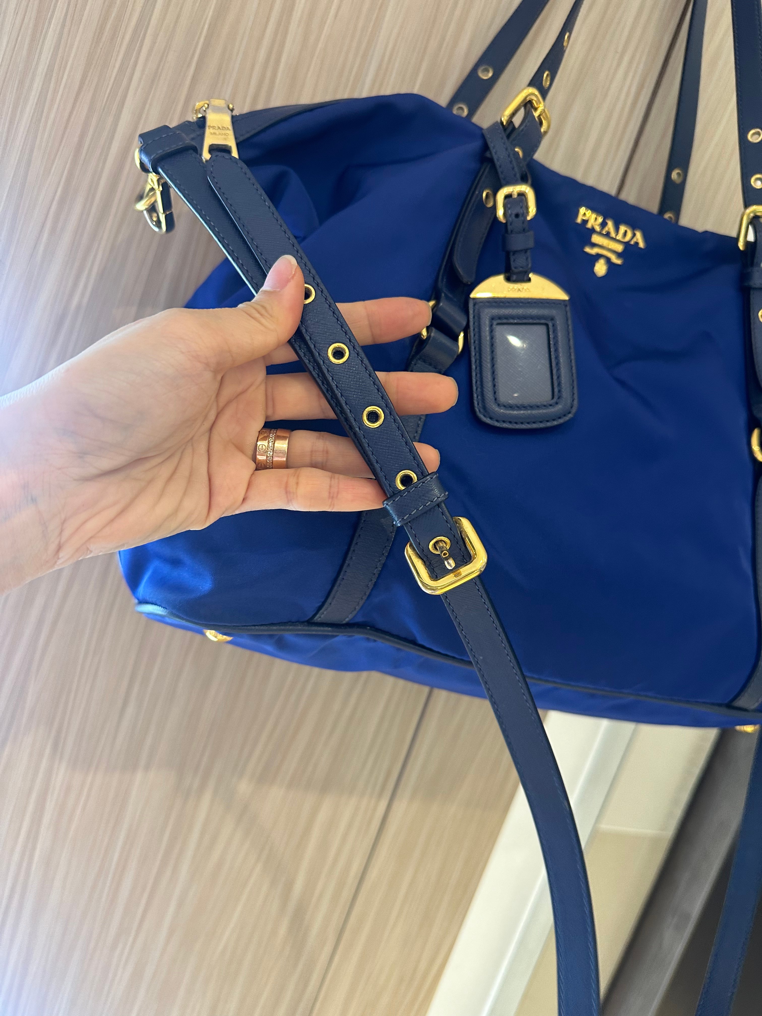 美品prada navy blue 尼龍x皮tote bag with original strap