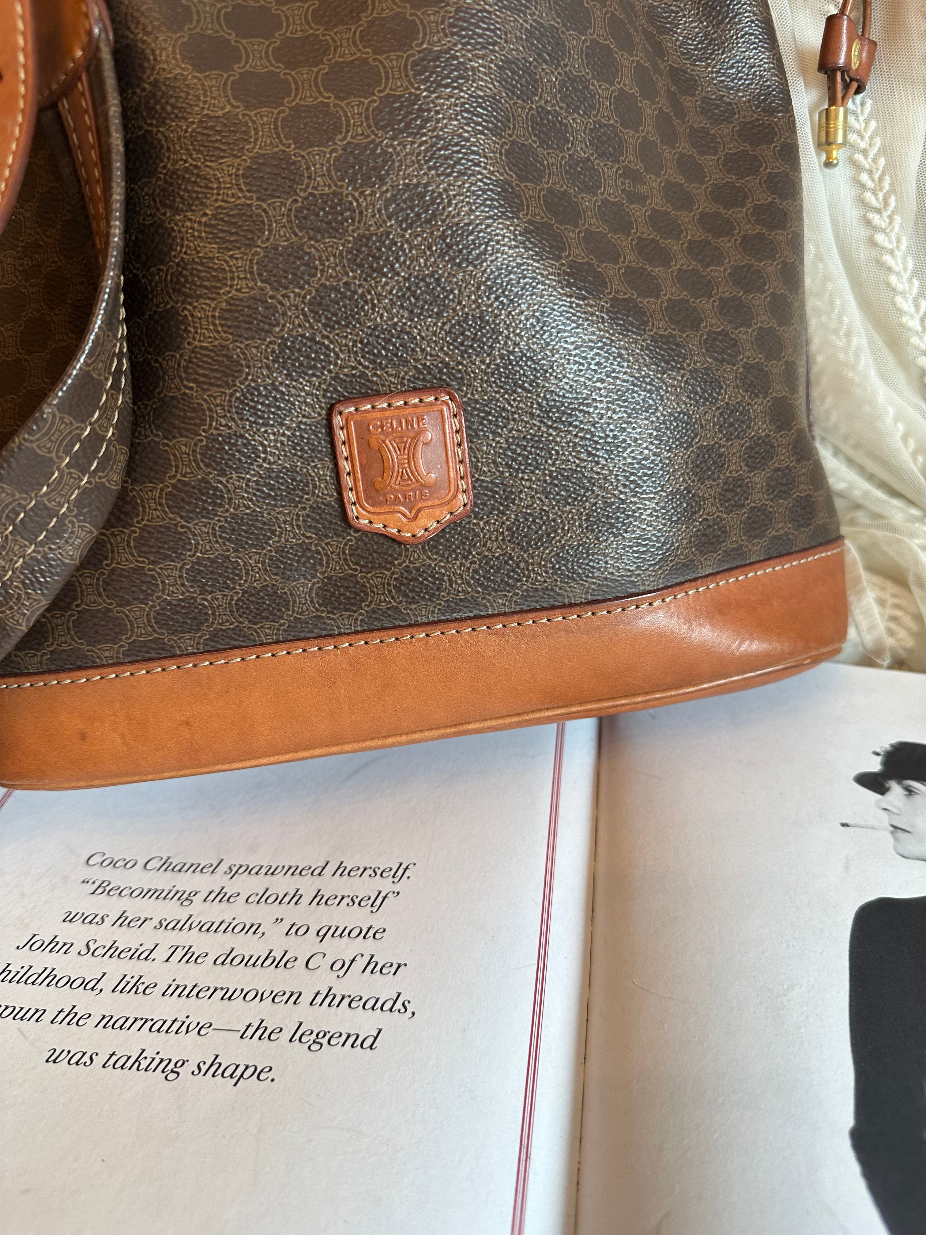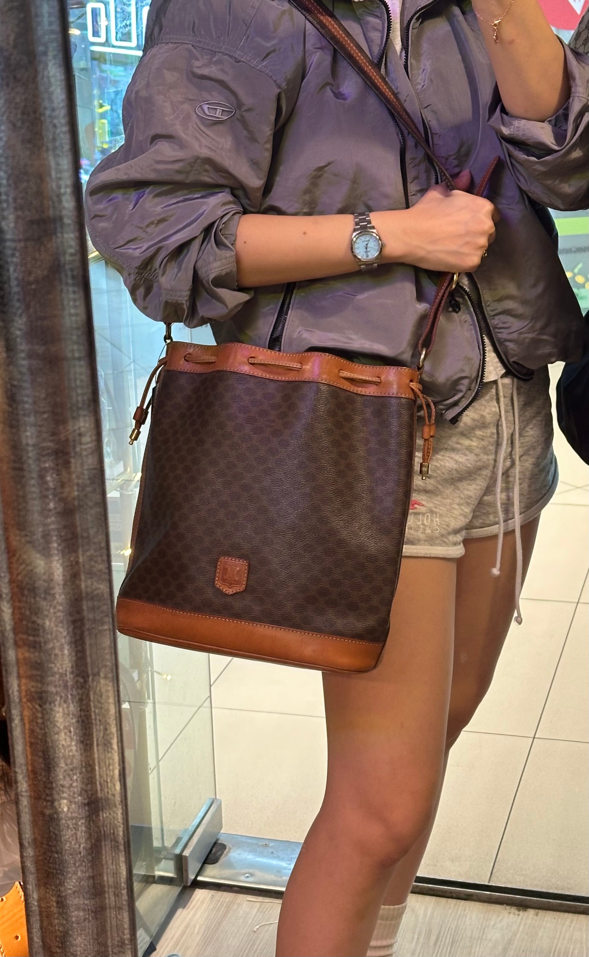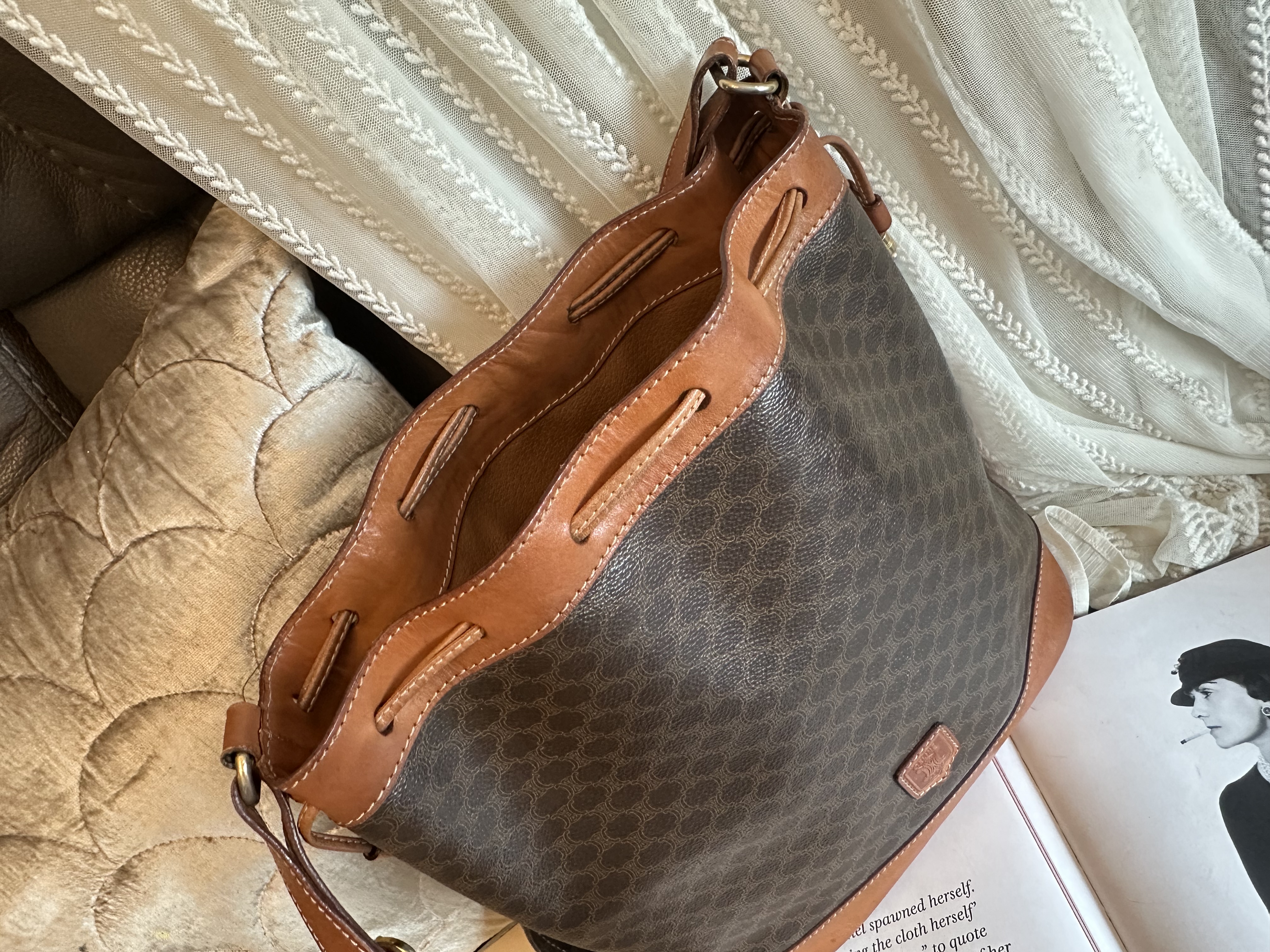 美品vintage celine brown triomphe bucket bag 水桶袋