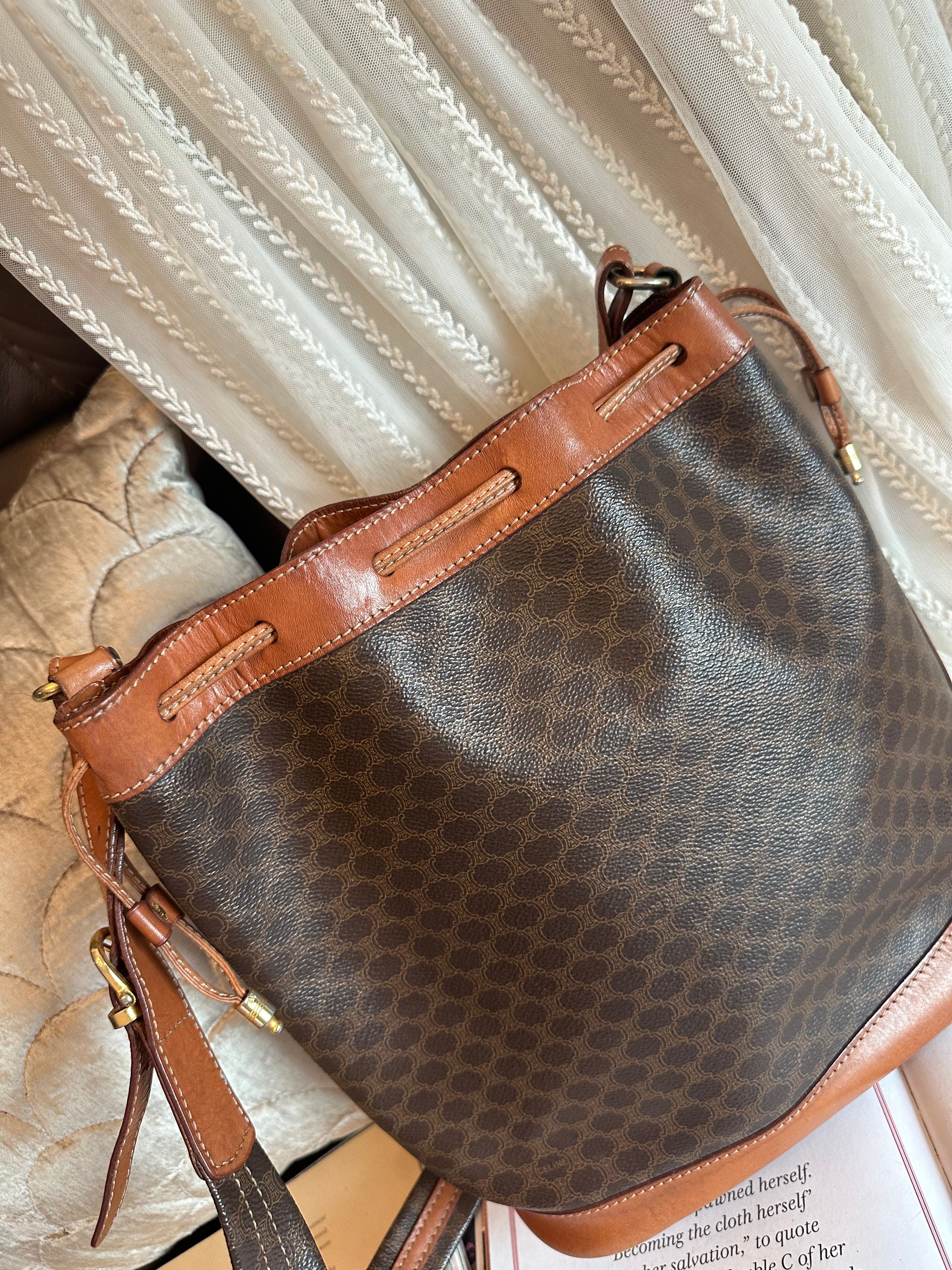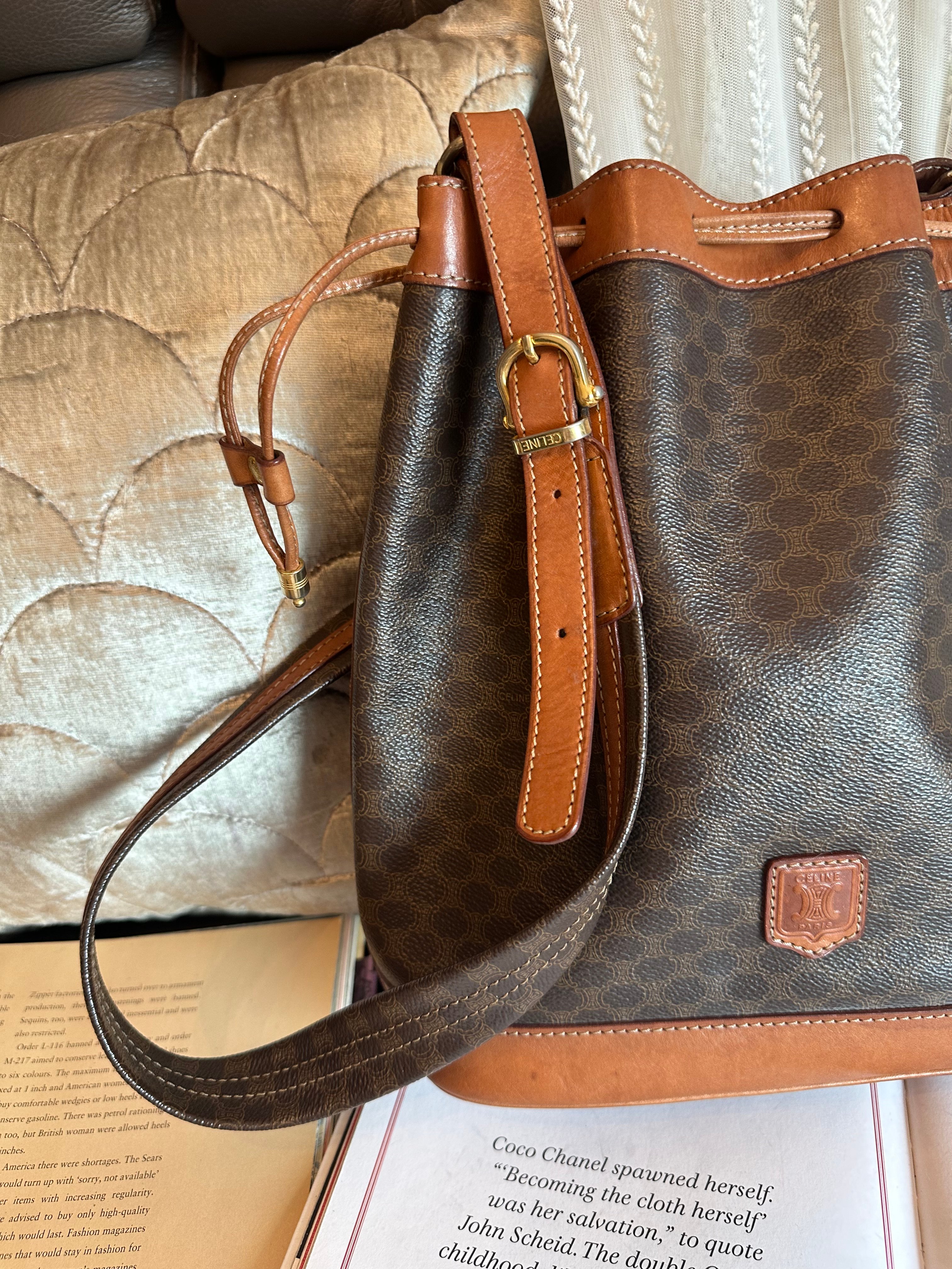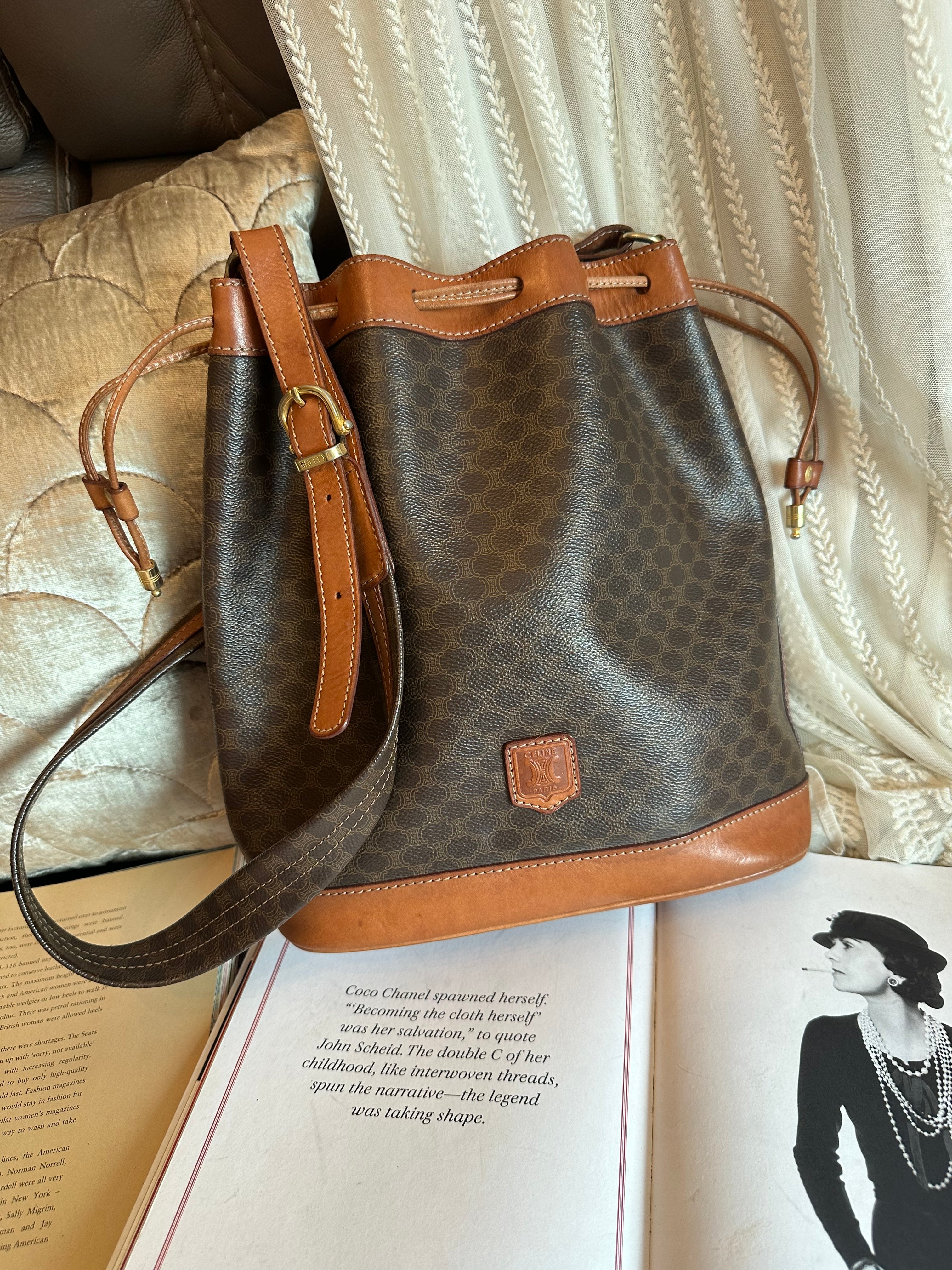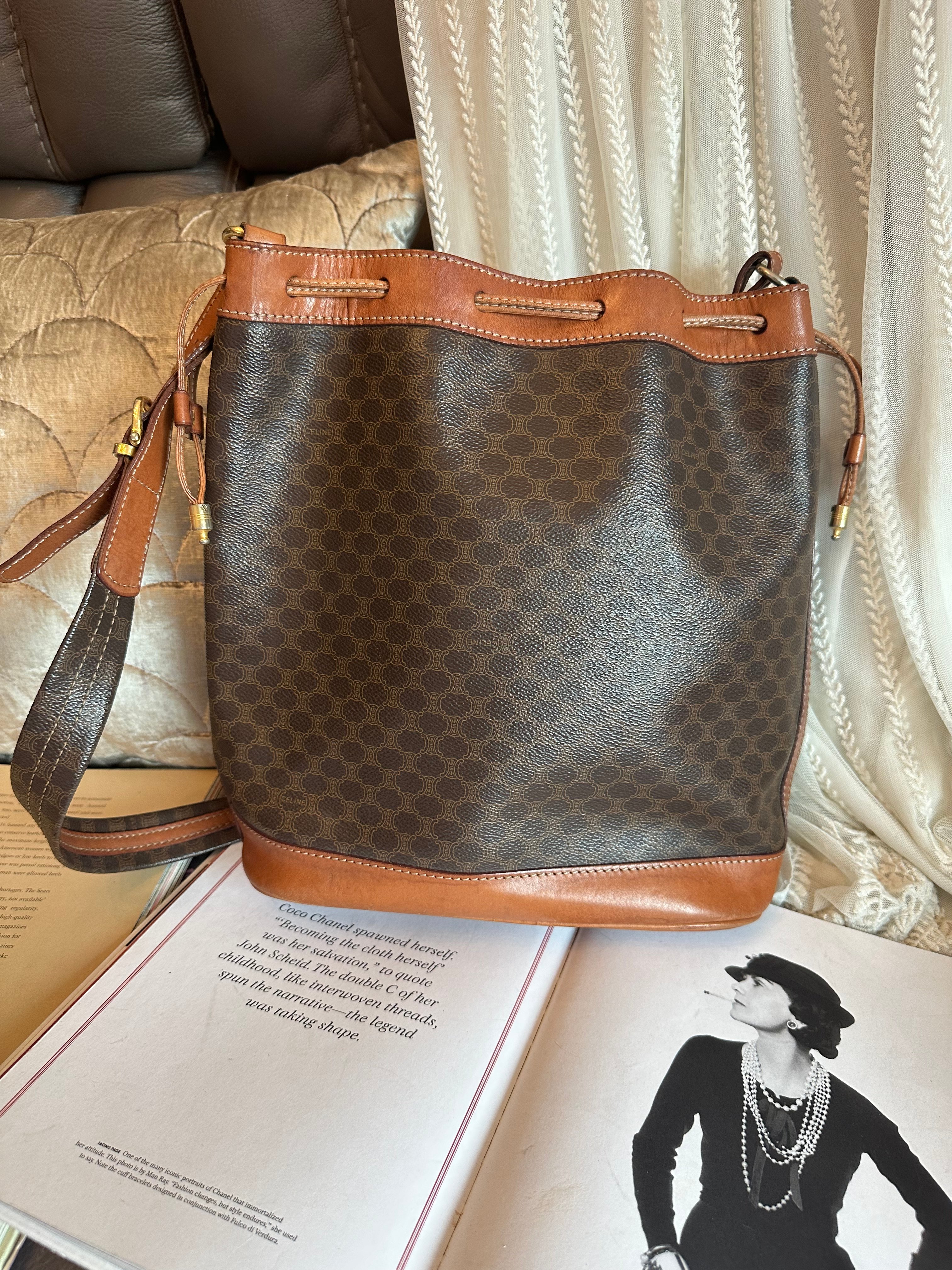 美品vintage celine brown triomphe bucket bag 水桶袋