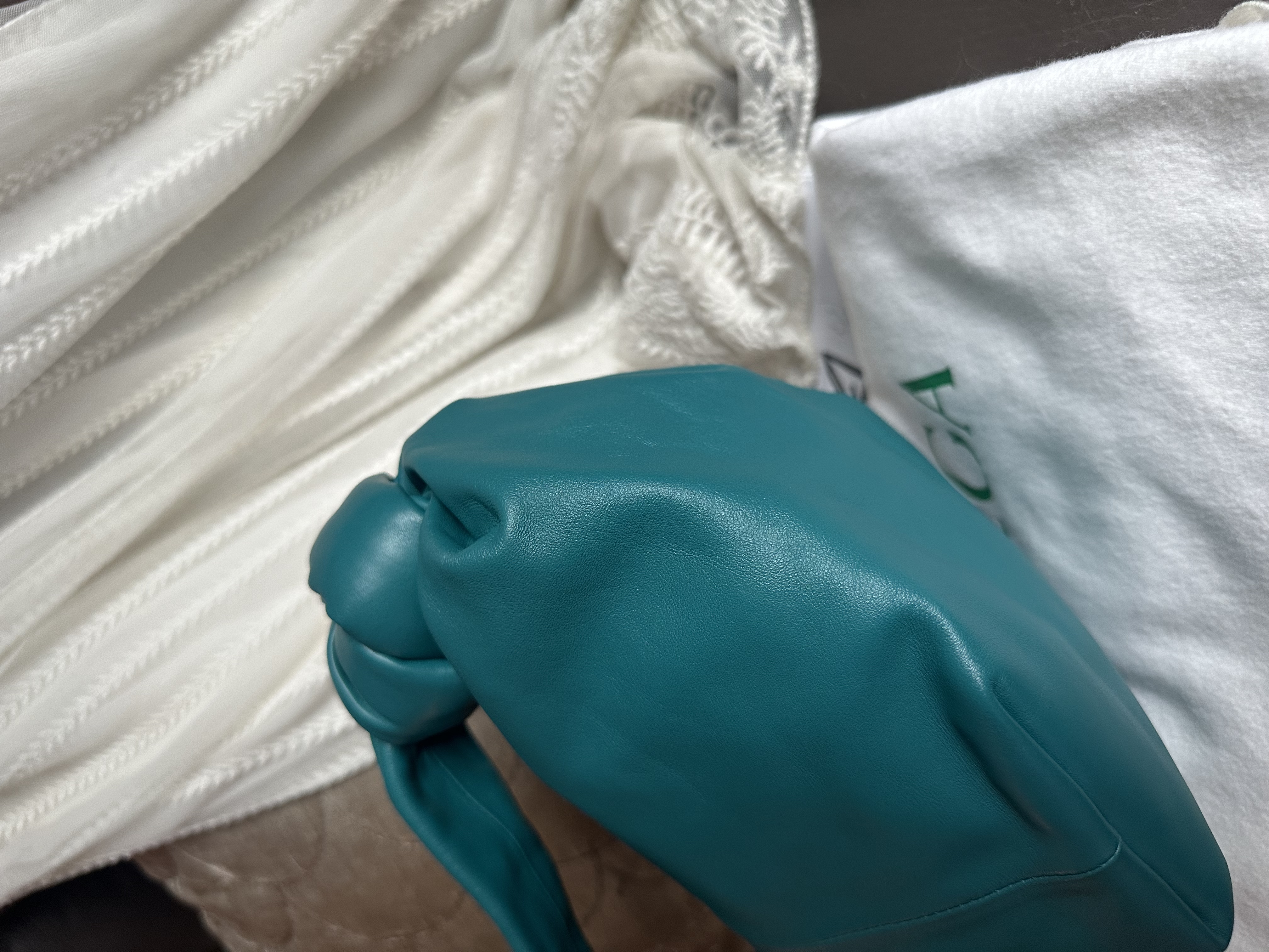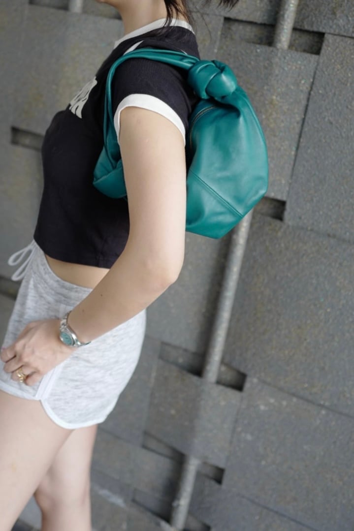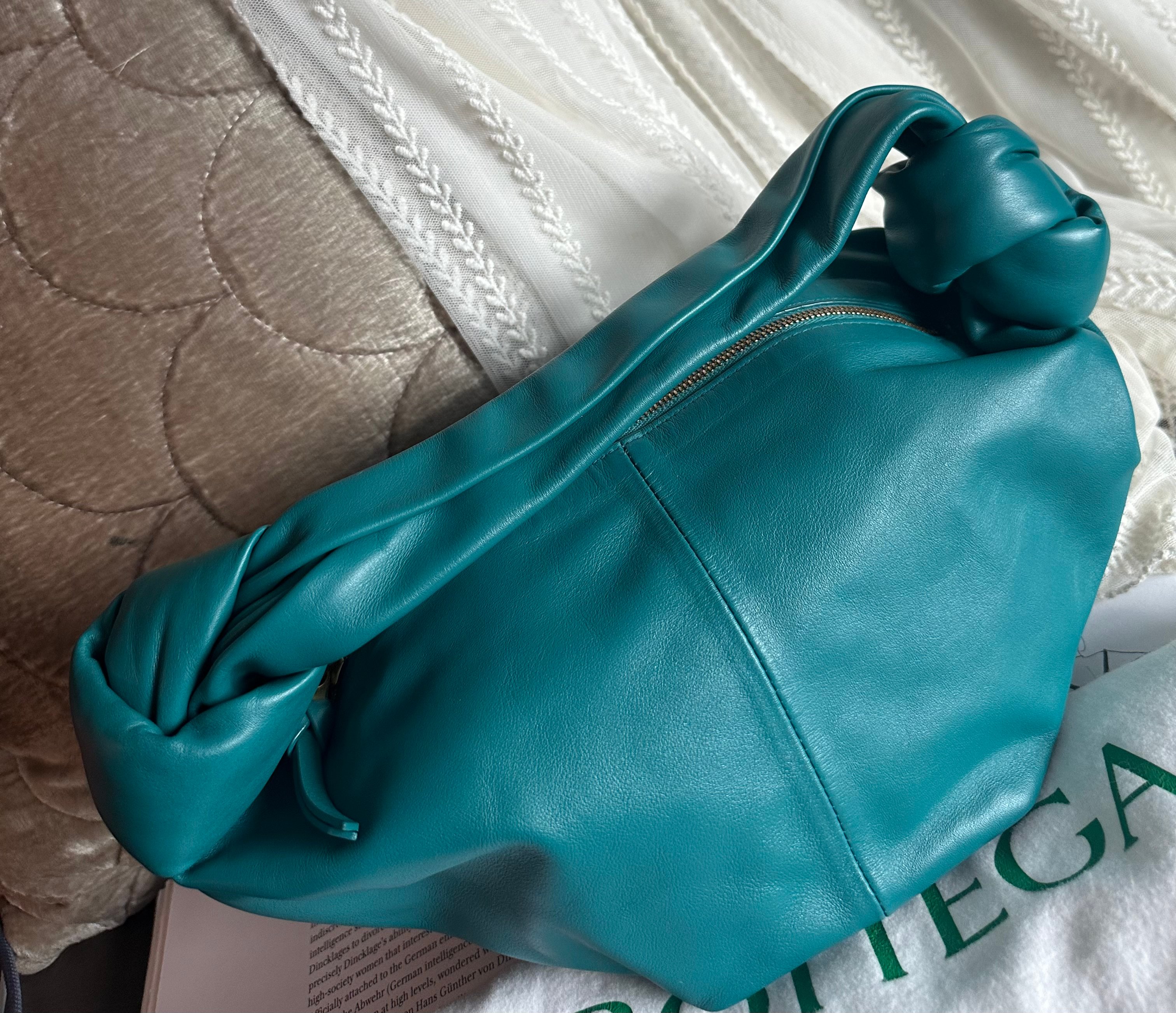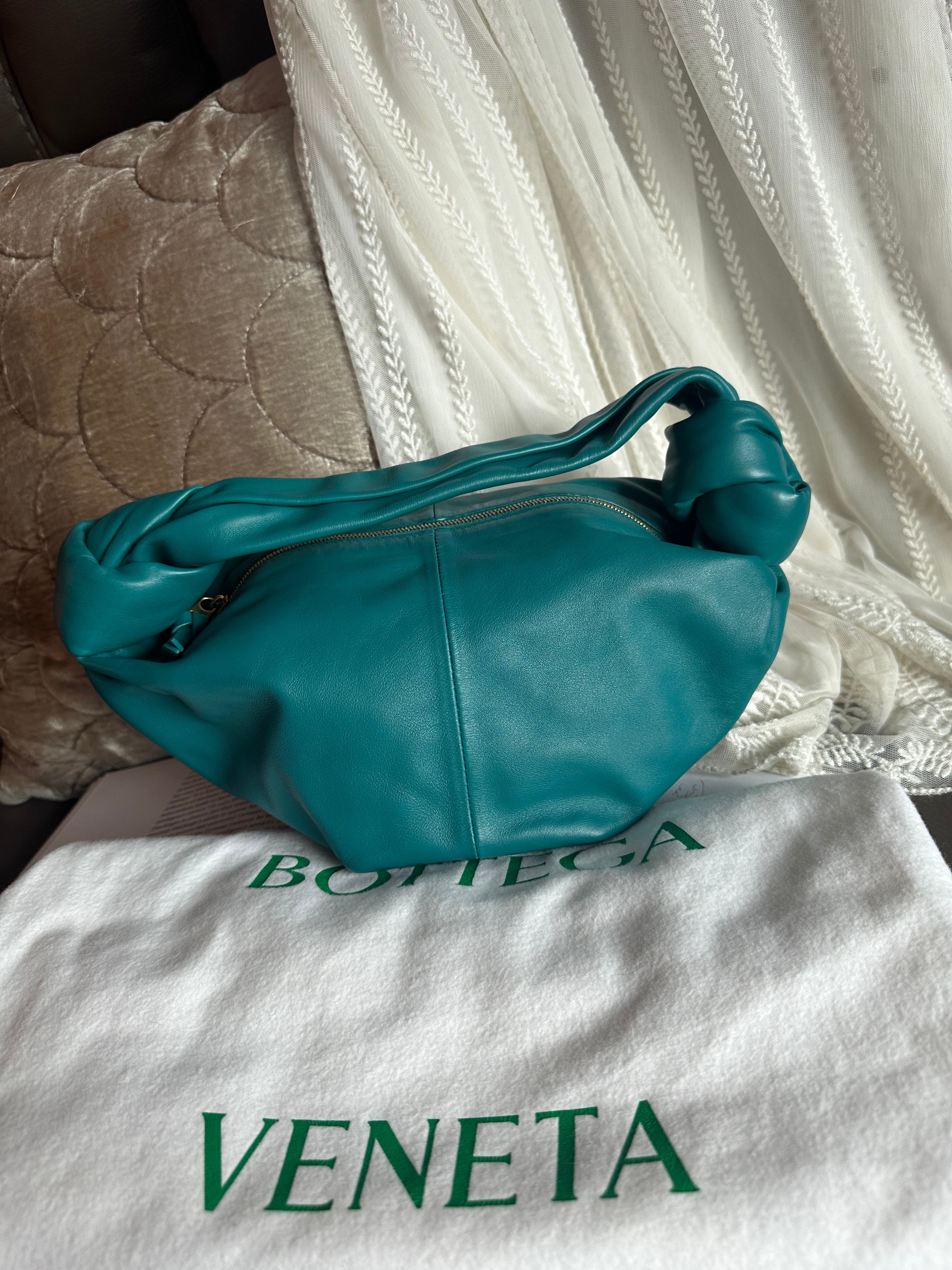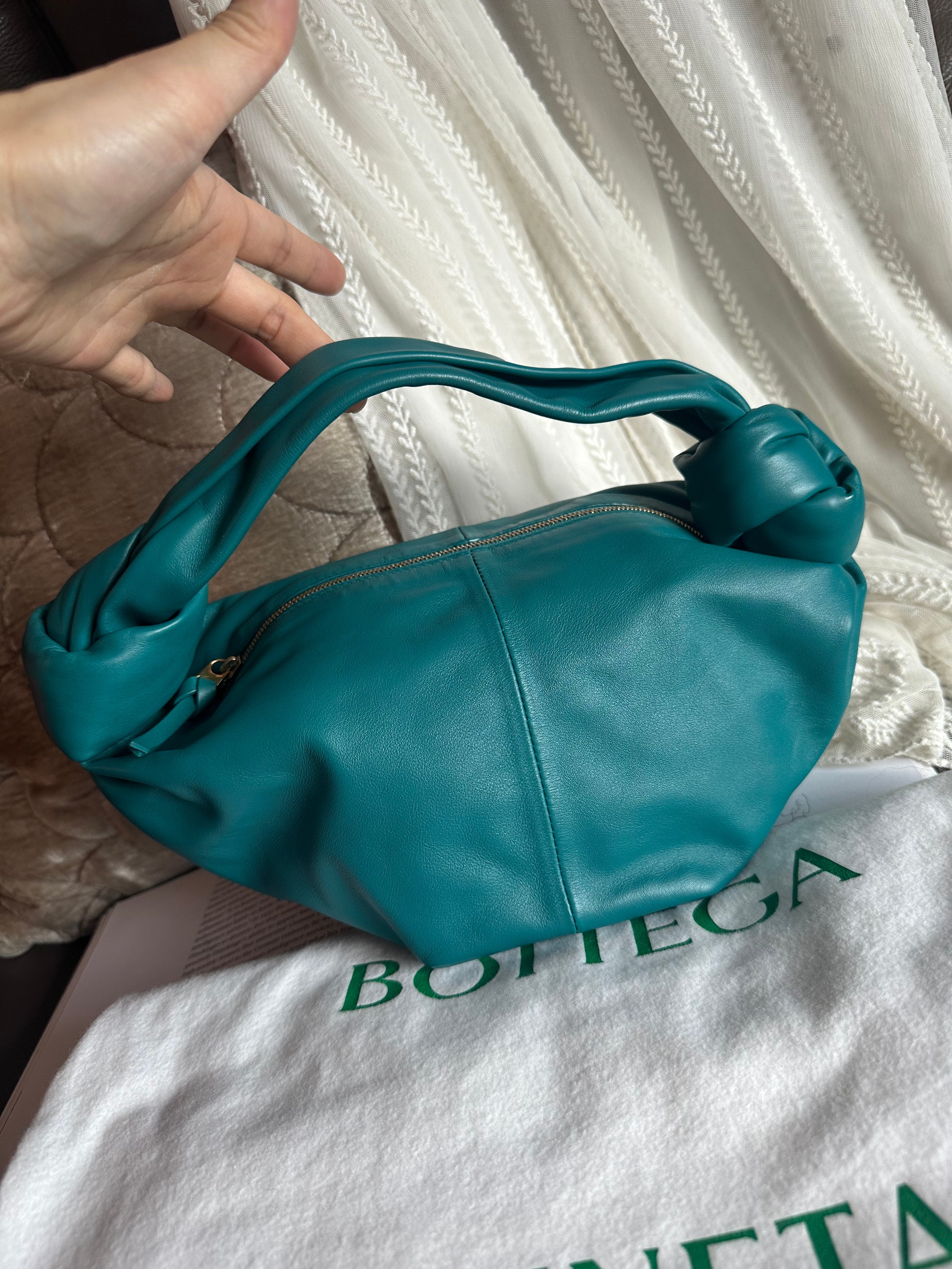 閑置品99新Bottega Veneta mini jodie Double green Knot Leather Handbag