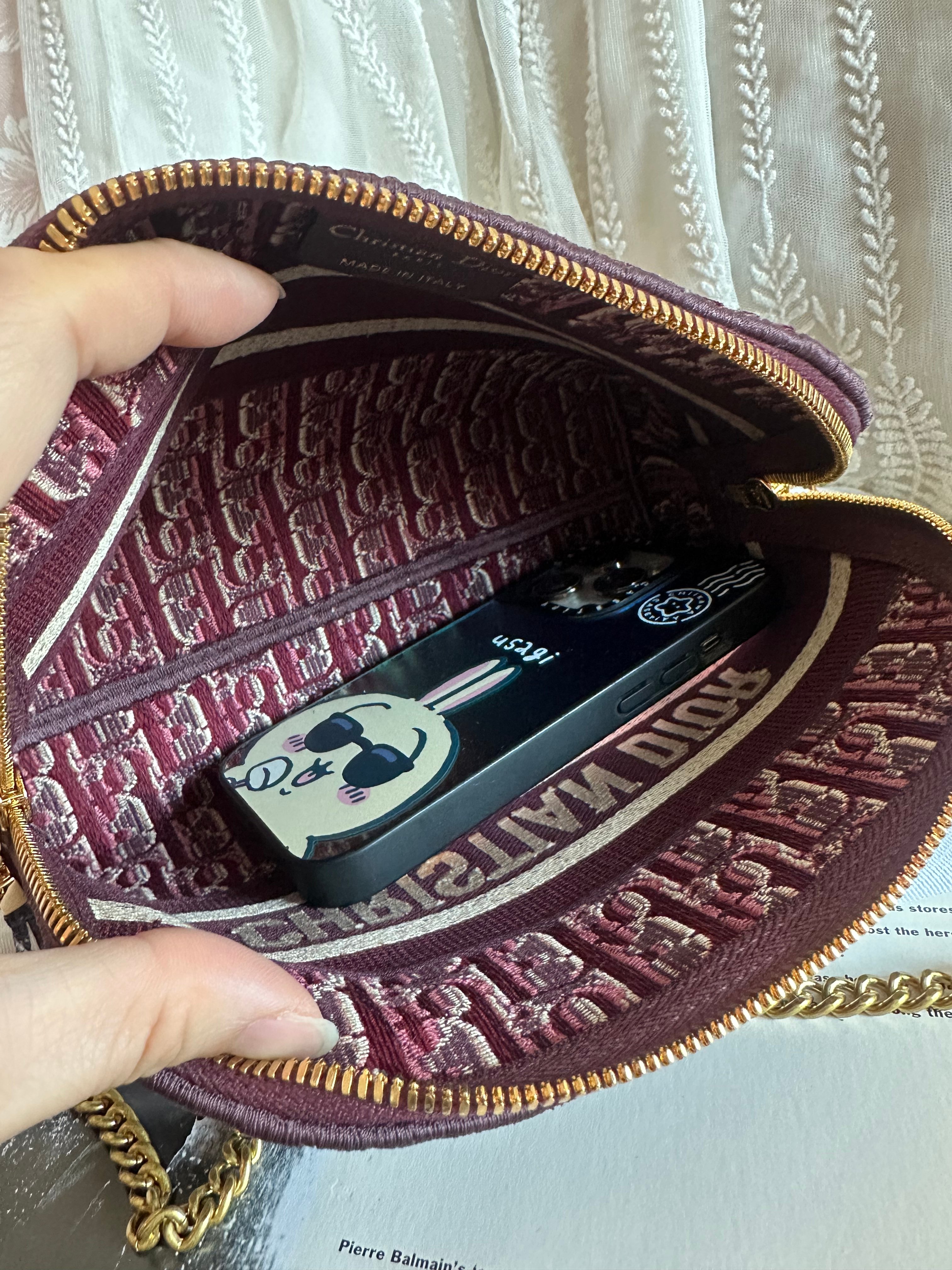 閑置品99新DIOR 刺繡款 Monogram burgundy vanity Bag 🖤 放到iphone pro/max長銀包短縮骨遮都放到非常實用 原裝就係一個VANITY手拿包 閑置狀態99新 有塵袋吊牌如圖 ☑️免費改裝埋扣一對☑️沒品牌長鏈一條就可以當crossbody用 全部可以隨意拆除 🎄聖誕節自用送禮一流 ☑️💰5200帶走🔥 閑置品99新DIOR 刺繡款 Monogram burgundy Velvet Oblique Cosmetic Pouch vanity Bag 狀態:外99新/袋內99新 尺寸:23x14x8cm 配件:塵袋/吊牌 送埋免費改裝埋扣一對/沒品牌長鏈一條 (以上是免費贈送原裝並沒有全部可以隨意拆除 DIOr Monogram burgundy Velvet Oblique Cosmetic Pouch vanity Bag Dimensions :23x14x8cm Accessories:tag/dust bag Item has been modified, installed non branded hook and non branded chain Condition:like new