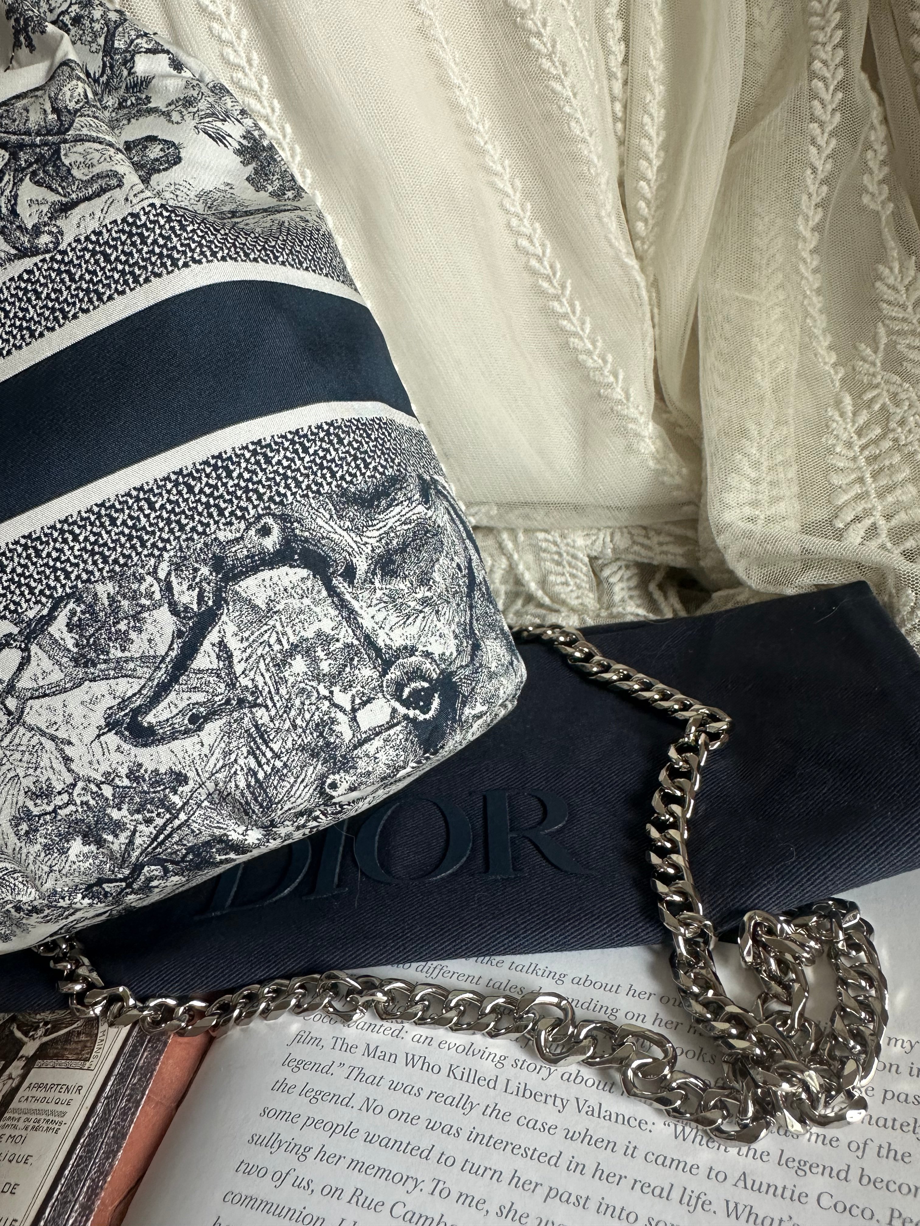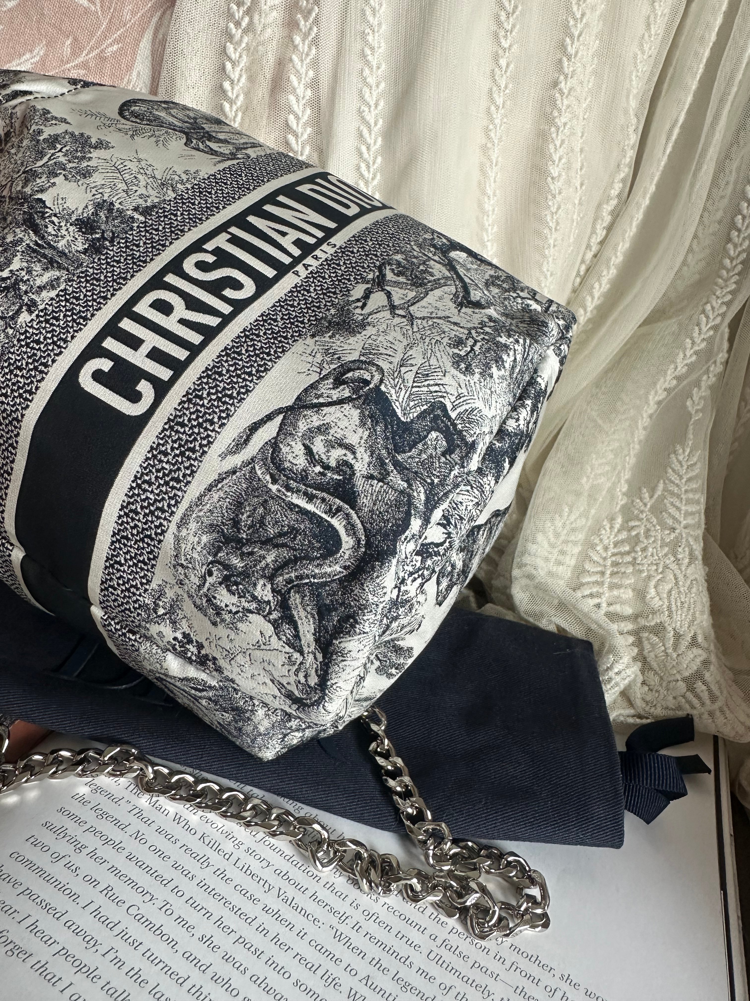 閑置接近全新 CHRISTIAN DIOR Technical Fabric Embroidered Toile De Jouy Sauvage Travel Pouch navy 2021