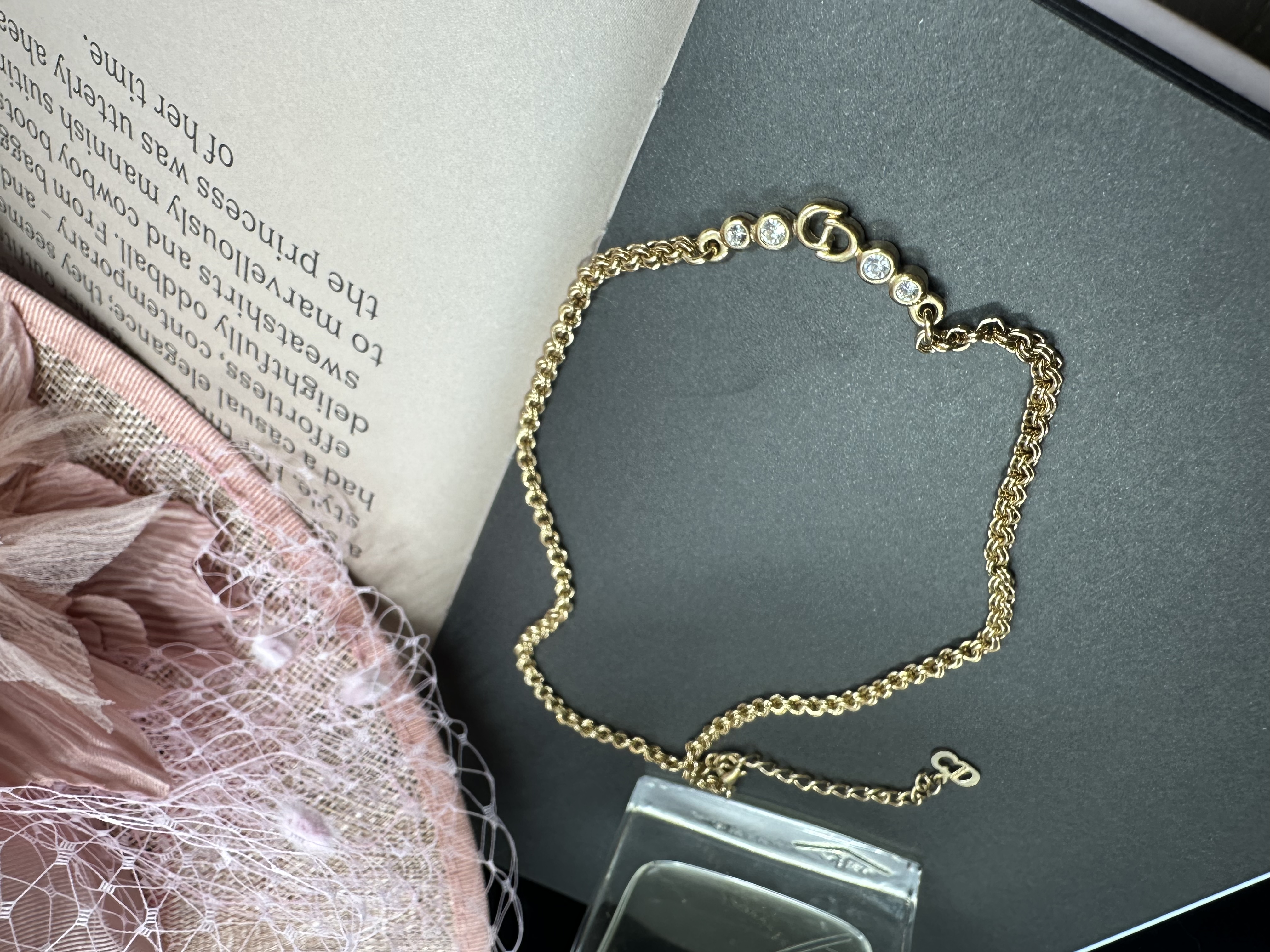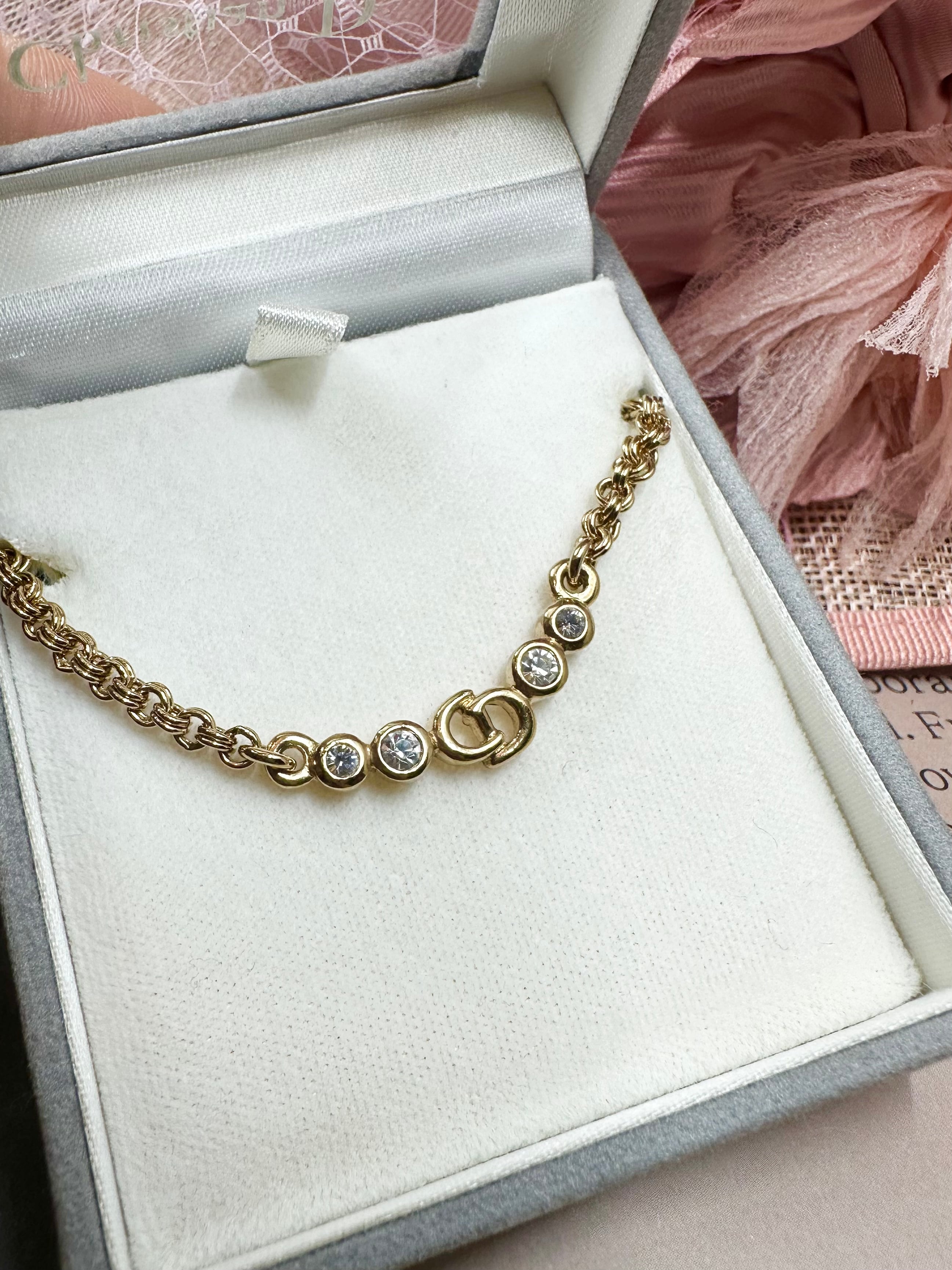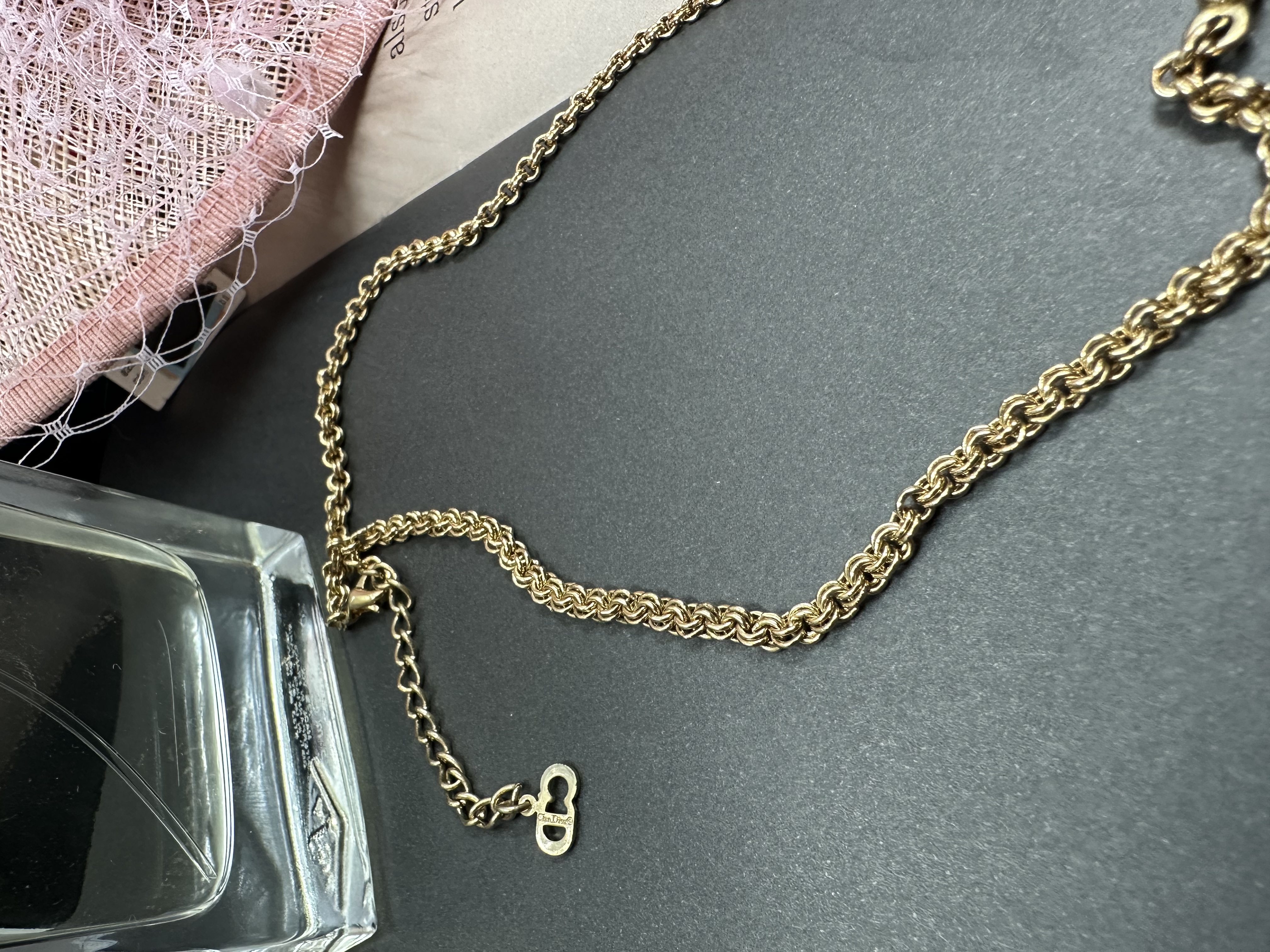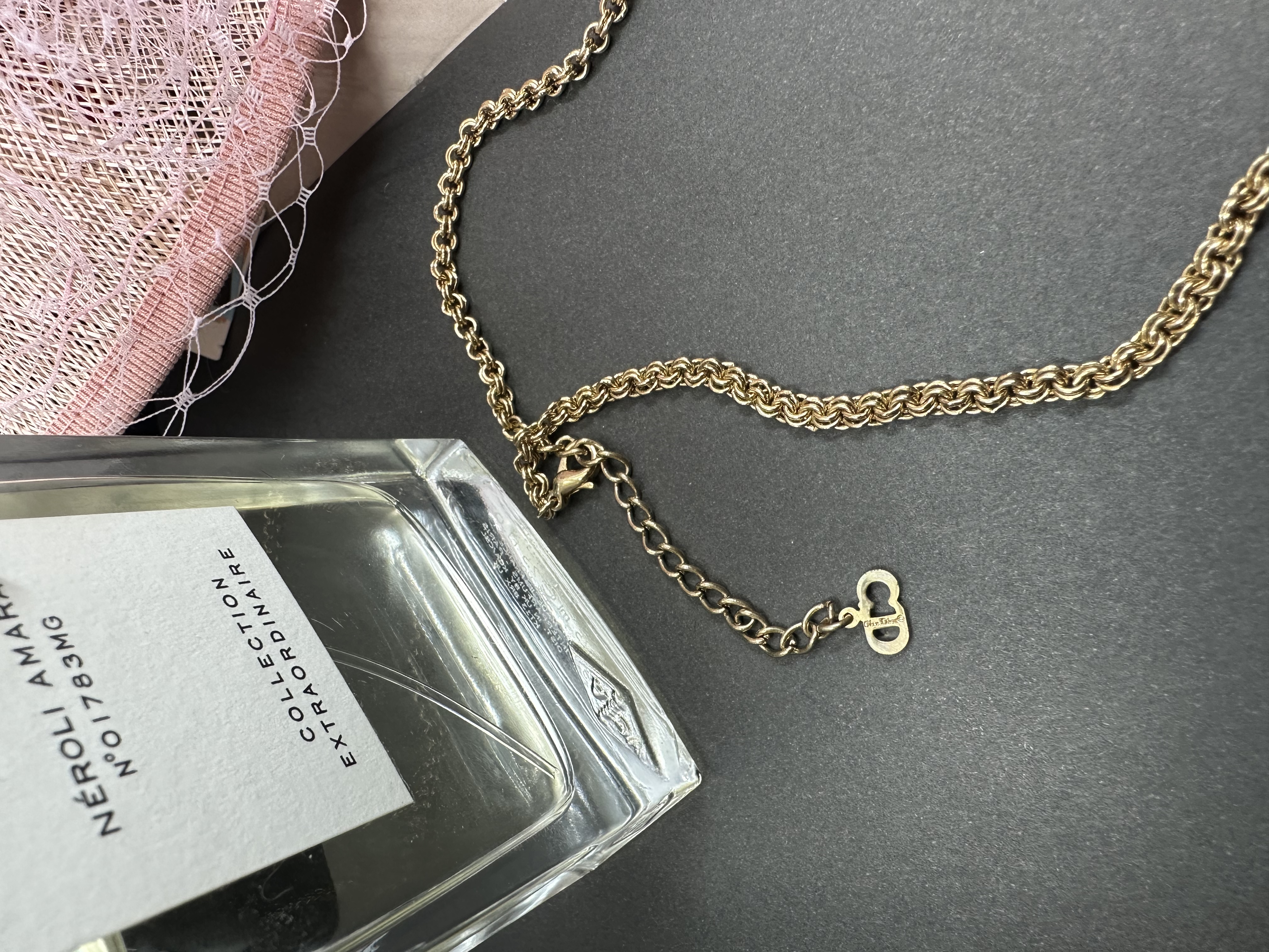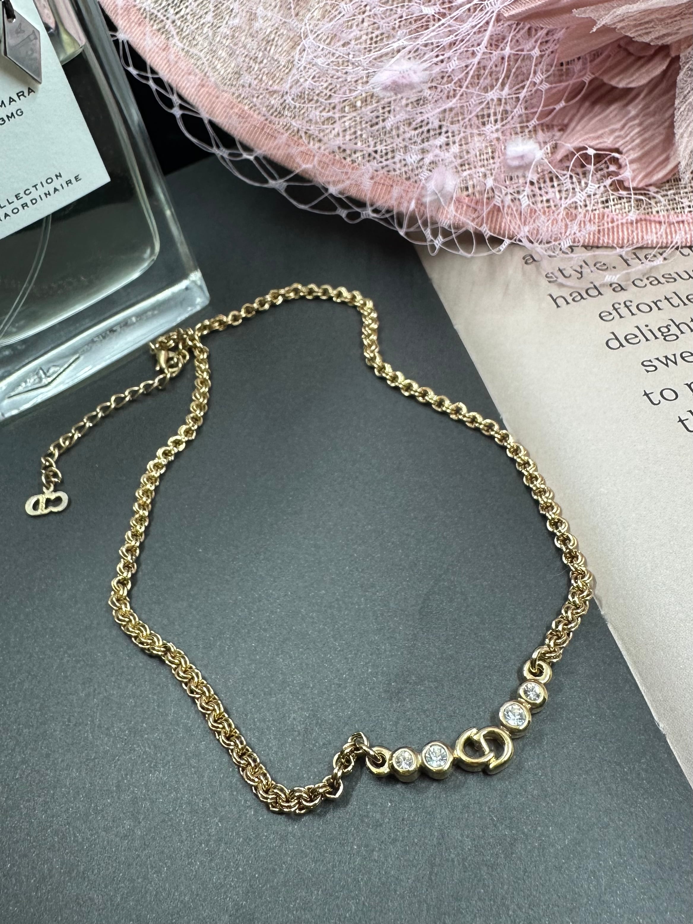 Vintage dior choker / necklace 閑置級別💓連盒 勁靚💓閃石好閃但唔會太浮誇 閑置 vintage dior gold metal necklace 配件: box 狀態: 閑置 98新 Dimensions :全長36cm 可調節距離共6cm ❤️本店為香港零售管理協會會員/門市已開業9年連續多年正版正貨商戶2025編號001176 付款方法:VISA / MASTER / AE / 銀聯 / UNION PAY /現金 /alipay ❤️另提供 AE 信用卡12個月免息分期 /恆生信用卡12個月免息分期/hsbc 12個月免息分期/渣打12個月免息分期 📢本店只出售正版貨📢 ❤️歡迎親臨銅鑼灣門市😍 ❤️ 本門市已搬到銅鑼灣記利佐治街2-10號銅鑼灣地帶2樓237號鋪 Shop 237, 2/f, causeway place, 2 great george street, causeway bay 門市電話:27808868 WhatsApp :📞65230308