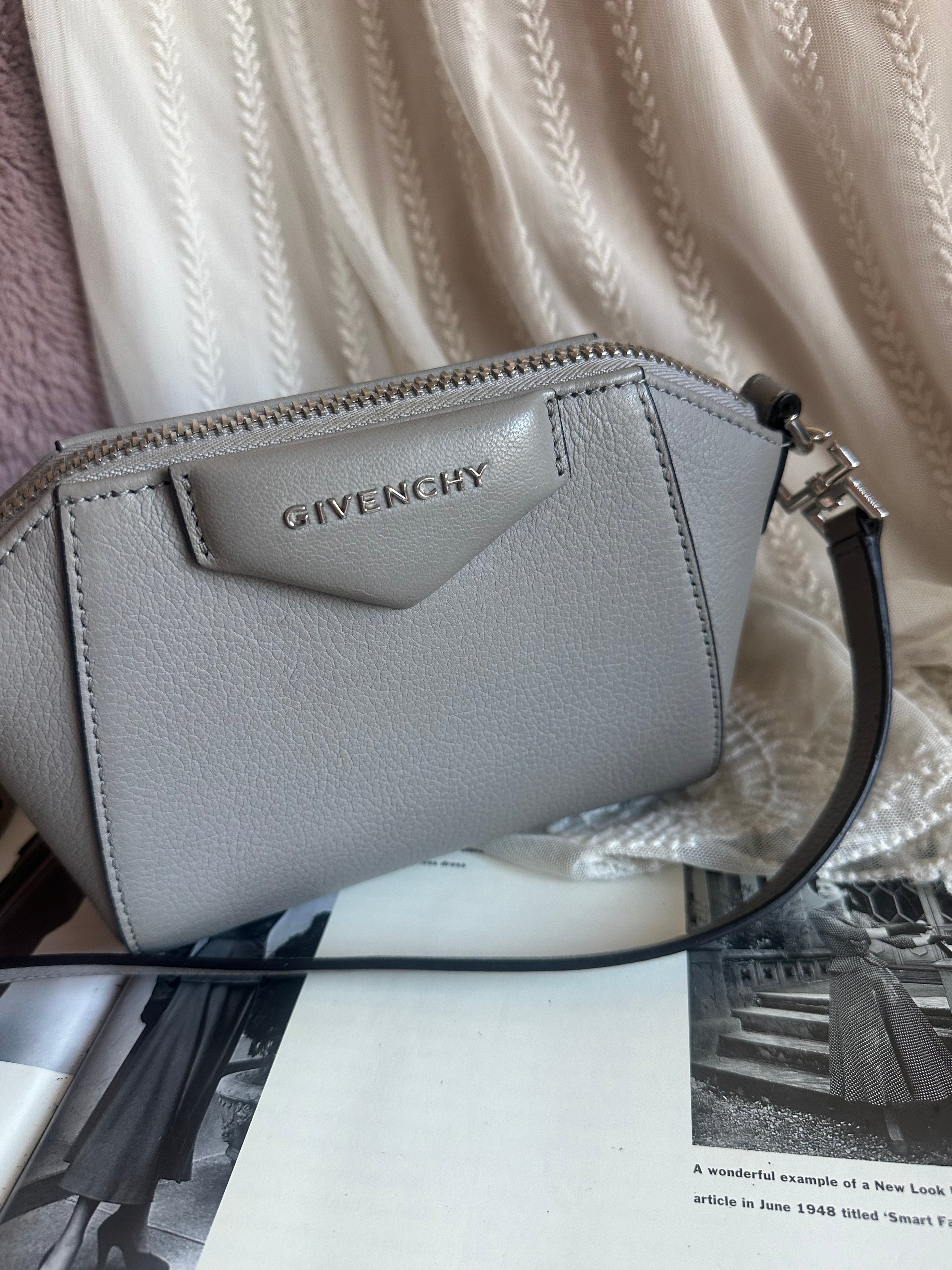 閑置99新 givenchy antigona 珍珠灰crossbody bag 呢款正 入邊放到iphone pro ☑️亦都放到紙巾鎖匙唇膏短銀包 四四方方實用 原裝長帶可以拆當clutch用都👌 閑置99新 GIVENCHY Antigona light grey crossbody bag. 尺寸21x13x6.5cm 配件:原裝長帶 狀態:外觀99新/内99新 GIVENCHY Antigona grey Crossbody bag Dimensions 21x13x6.5cm Accessories :original strap Condition:like new 🖤本店為香港零售管理協會會員/門市已開業9年連續多年正版正貨商戶2025編號 001176 付款方法:VISA / MASTER / AE / 銀聯 / UNION PAY /現金 /alipay ❤️門市提供恒生💳渣打💳滙豐💳AE 💳DBS 💳Citibank💳mox 信用卡✅免息分期✅ 📢本店只出售正版貨📢 ❤️歡迎親臨銅鑼灣門市😍 ❤️ 本門市已搬到銅鑼灣記利佐治街2-10號銅鑼灣地帶2樓237號鋪 Shop 237, 2/f, causeway place, 2 great george street, causeway bay 📞65230308