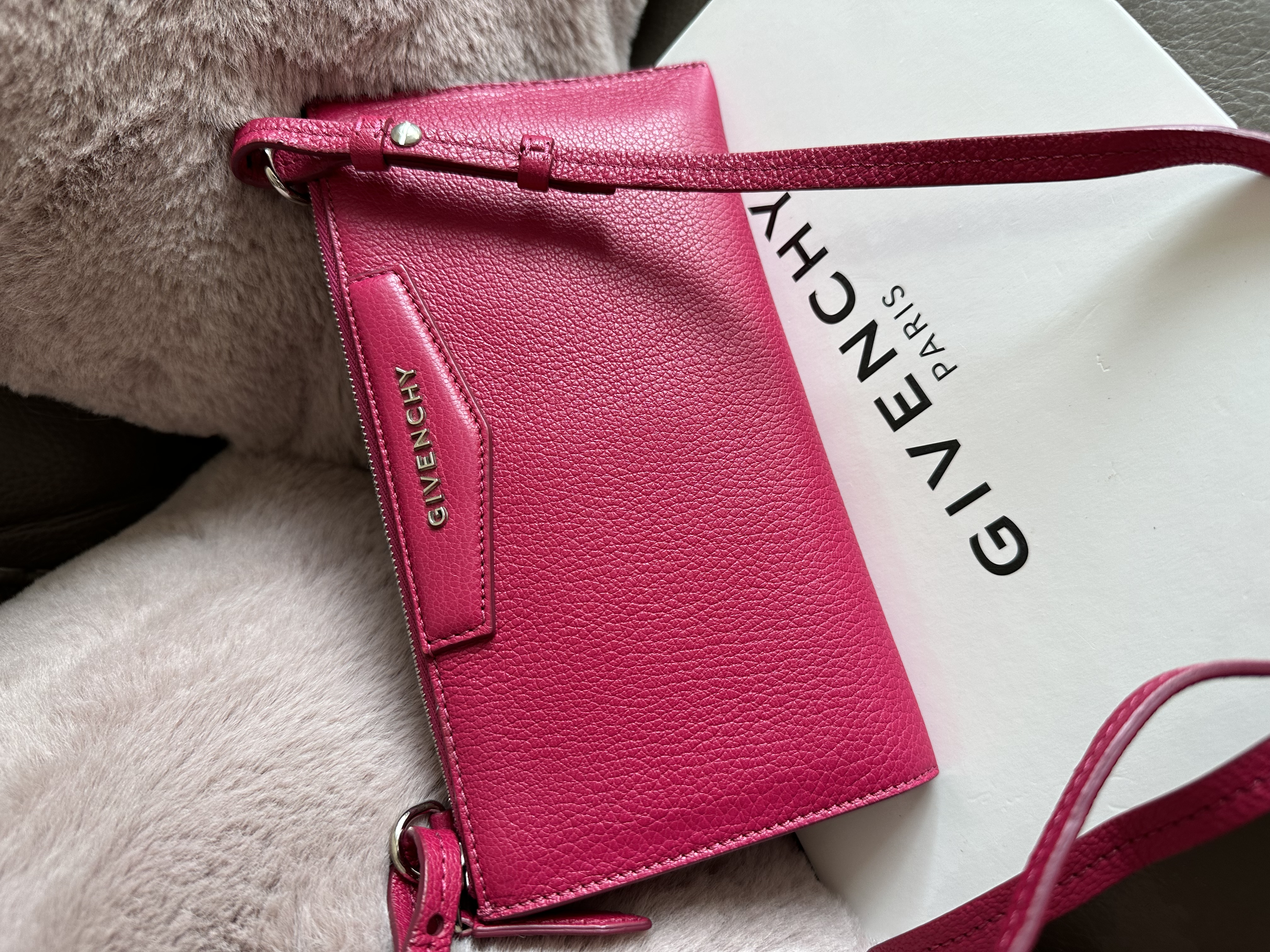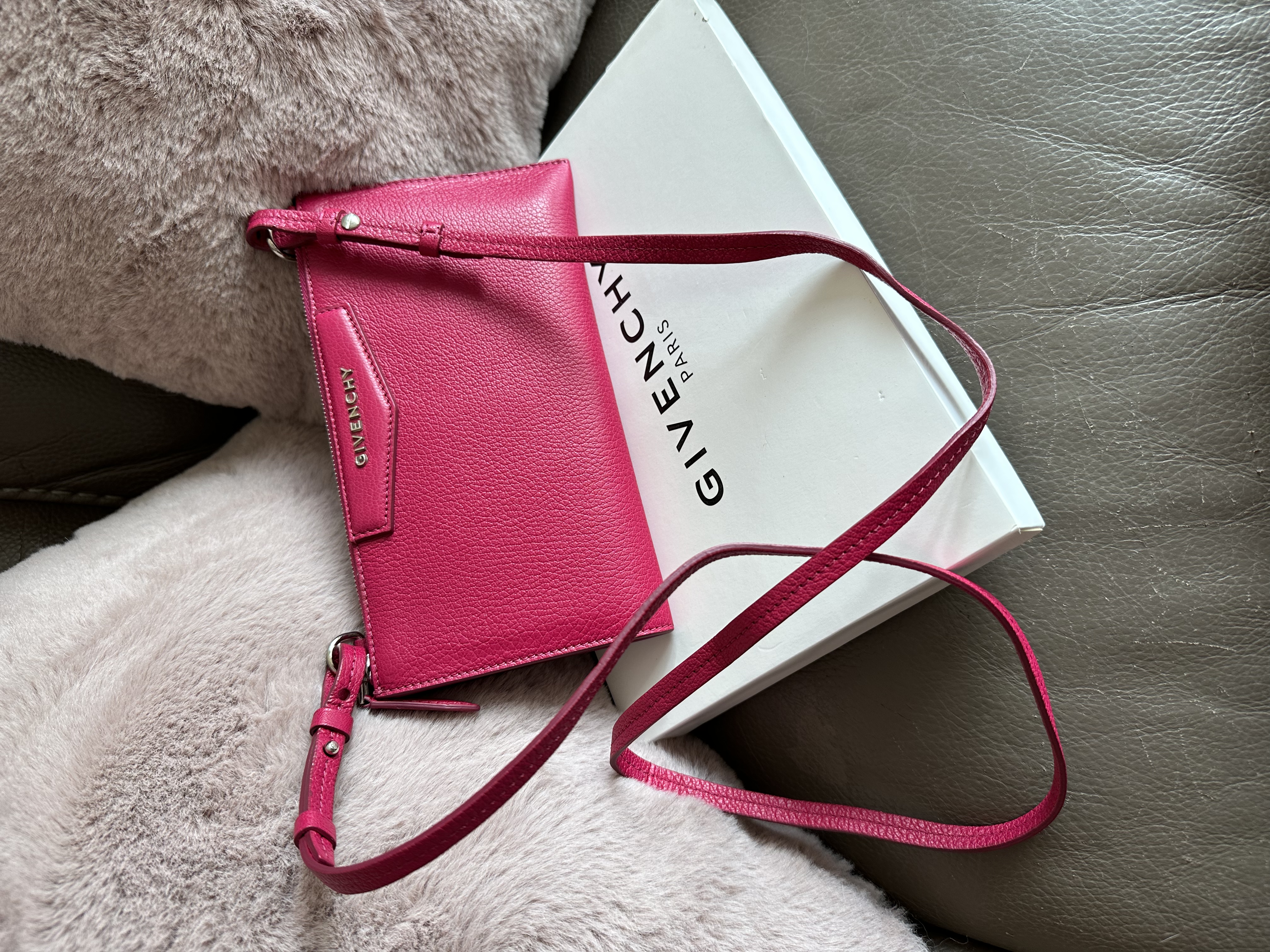閑置99新 GIVENCHY Grained Goatskin Antigona pochette Crossbody bag in fuchsia Pink.