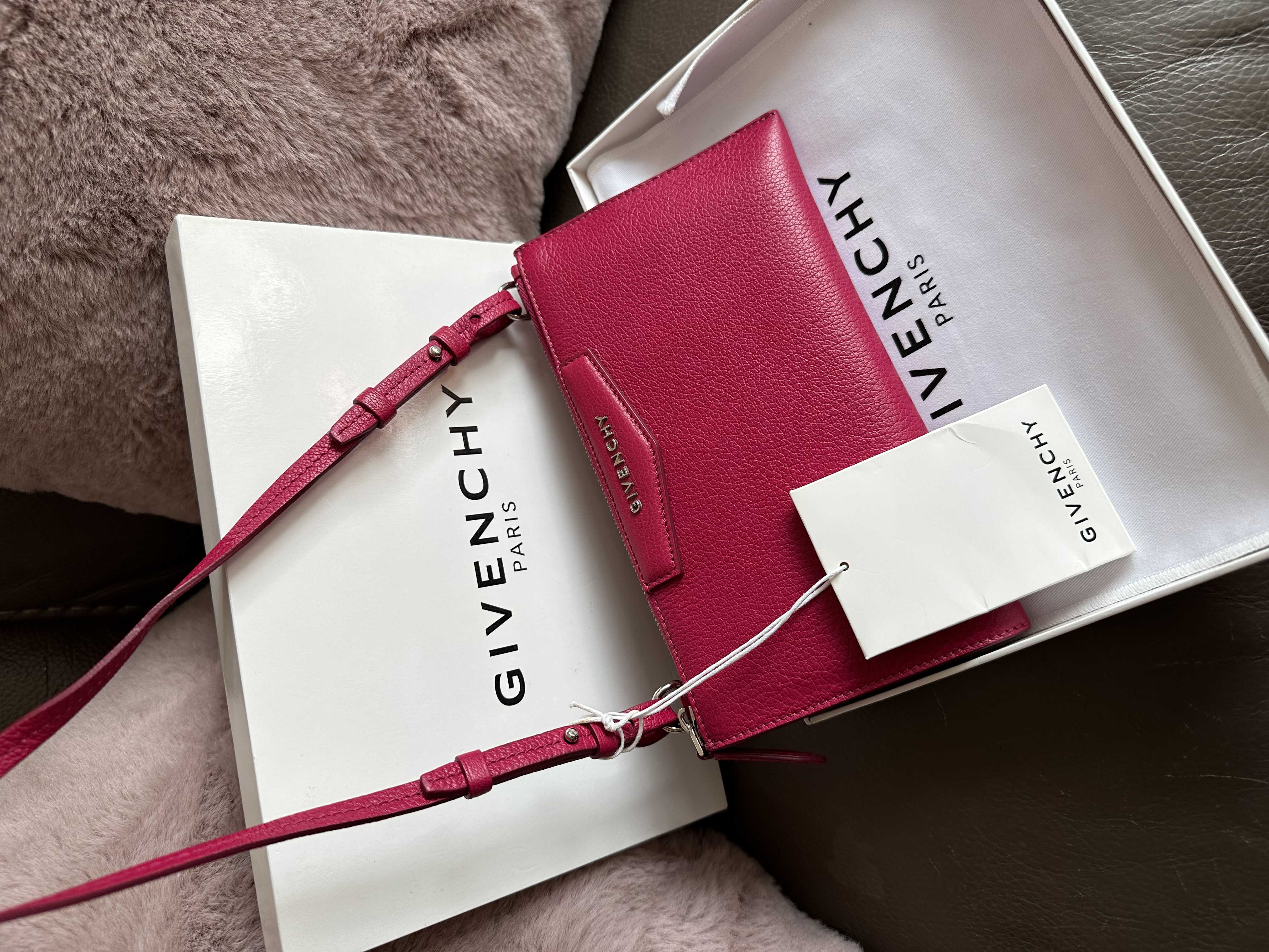 閑置99新 有齊盒/吊牌/原裝長帶 呢個款正在入邊有卡位亦都可以放到電話當woc用又得/銀包用都得💓 桃紅色🔥年頭旺到年尾 閑置99新 GIVENCHY Grained Goatskin Antigona pochette Crossbody bag in fuchsia Pink. 尺寸22x14x2cm 配件:原裝長帶/盒/吊牌 狀態:外觀99新/内99新 GIVENCHY Grained Goatskin Antigona pochette Crossbody bag in fuchsia Pink. Dimensions 22x14x2cm Accessories :original strap/box/tag Condition:like new 🖤本店為香港零售管理協會會員/門市已開業9年連續多年正版正貨商戶2025編號 001176 付款方法:VISA / MASTER / AE / 銀聯 / UNION PAY /現金 /alipay ❤️門市提供恒生💳渣打💳滙豐💳AE 💳DBS 💳Citibank💳mox 信用卡✅免息分期✅ 📢本店只出售正版貨📢 ❤️歡迎親臨銅鑼灣門市😍 ❤️ 本門市已搬到銅鑼灣記利佐治街2-10號銅鑼灣地帶2樓237號鋪 Shop 237, 2/f, causeway place, 2 great george street, causeway bay