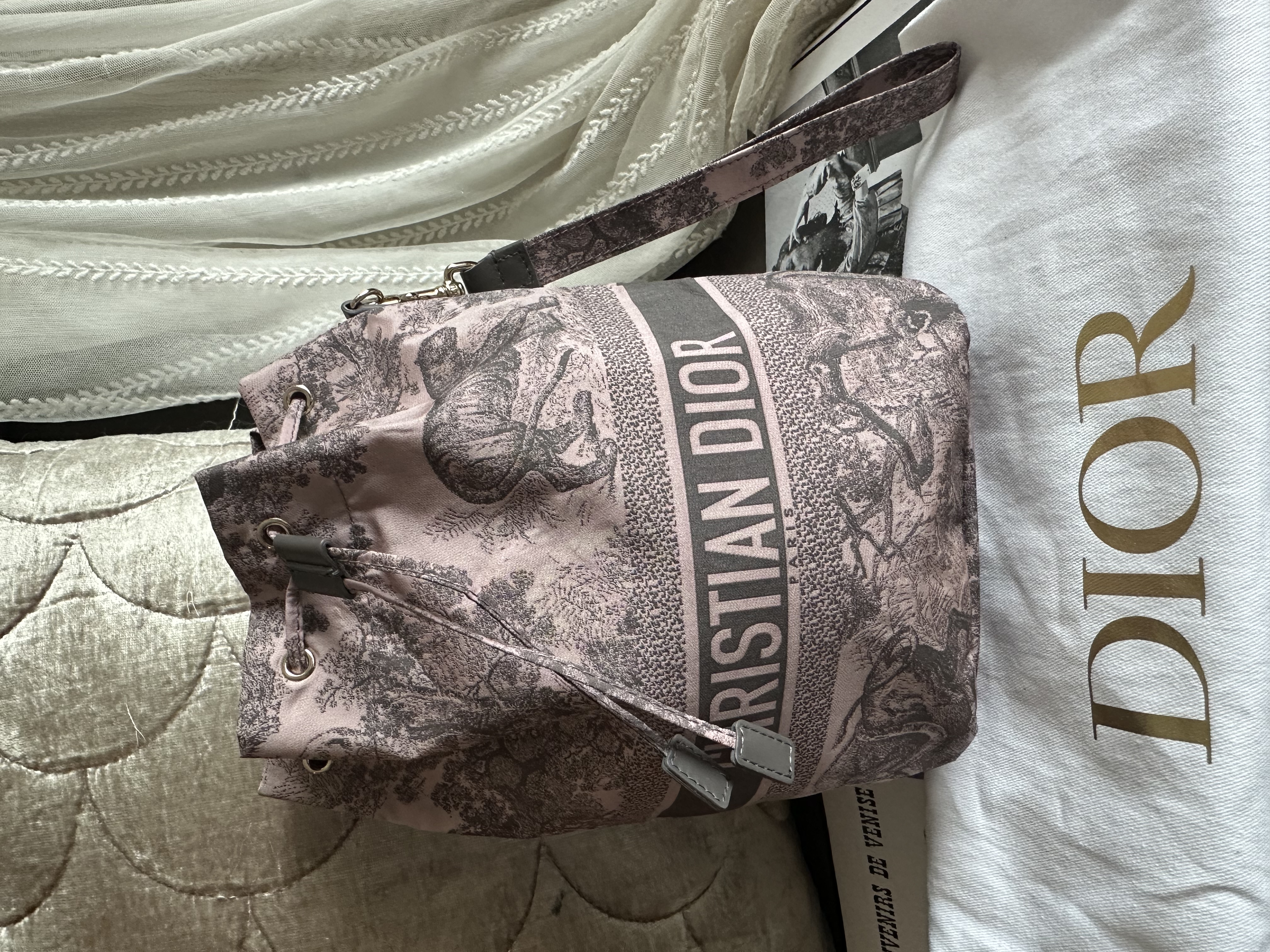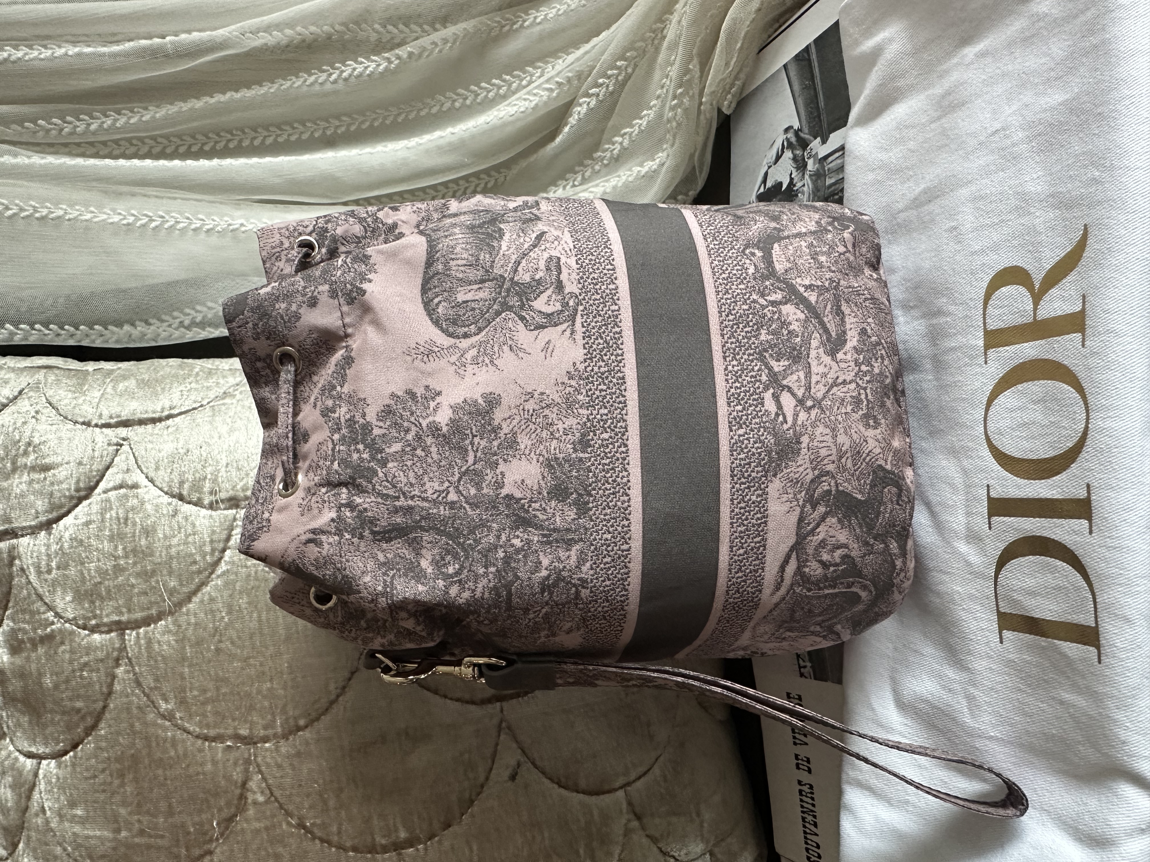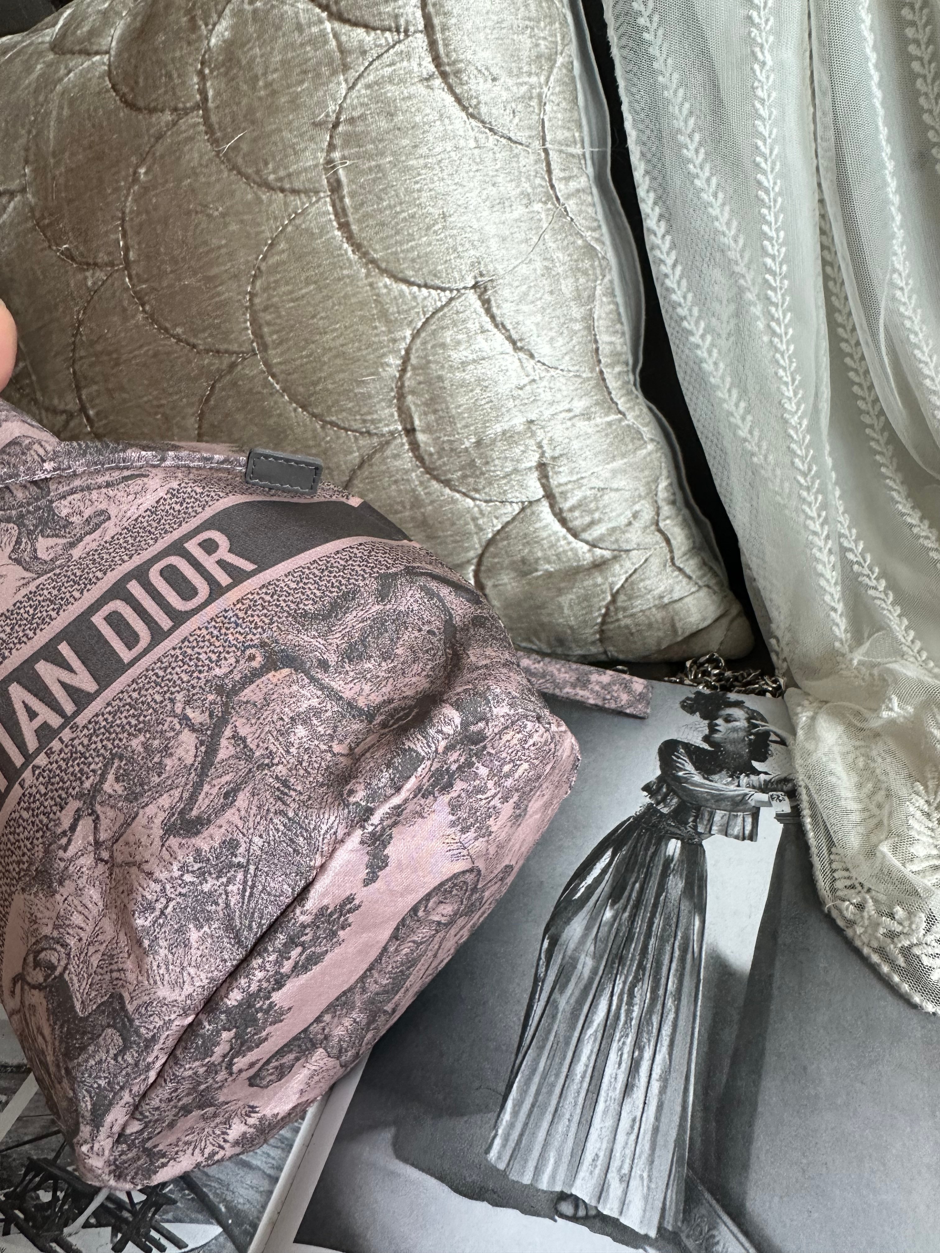 閑置接近全新 99新2023 Collection not vintage 💓 Dior Technical Fabric Embroidered Toile De Jouy Sauvage vanity bag Bucket仔非常好裝 連原裝短帶 /塵袋 另送一條沒品牌長鏈可斜咩用(原裝冇長鏈的) 閑置Dior Technical Fabric Embroidered Toile De Jouy Sauvage vanity bag pink grey 配件:原裝短帶 /塵袋 另送一條沒品牌長鏈可斜咩用(原裝冇長鏈的) 狀態:外觀99新/内99新 尺寸:14x21x9cm Dior Technical Fabric Embroidered Toile De Jouy Sauvage vanity bag pink grey Accessories :original short strap/dust bag Free non branded chain as a gift (no long chain originally ) Condition :like new Dimensions :14x21x9cm CHRISTIAN DIOR CD Canvas Embroidered Medium Brocart Book Tote Metallic Blue bag/travel bag/gym bag From the 2022 Collection by Maria Grazia Chiuri Accessories:dust bag Not included twilly /bag charm in the photo Dimensions:36.5x28x17.5 Condition: outside almost new /inside almost new 🖤本店為香港零售管理協會會員/門市已開業9年連續多年正版正貨商戶2025編號 001176 付款方法:VISA / MASTER / AE / 銀聯 / UNION PAY /現金 /alipay ❤️門市提供恒生💳渣打💳滙豐💳AE 💳DBS 💳Citibank💳mox 信用卡✅免息分期✅ 📢本店只出售正版貨📢 ❤️歡迎親臨銅鑼灣門市😍 ❤️ 本門市已搬到銅鑼灣記利佐治街2-10號銅鑼灣地帶2樓237號鋪 Shop 237, 2/f, causeway place, 2 great george street, causeway bay