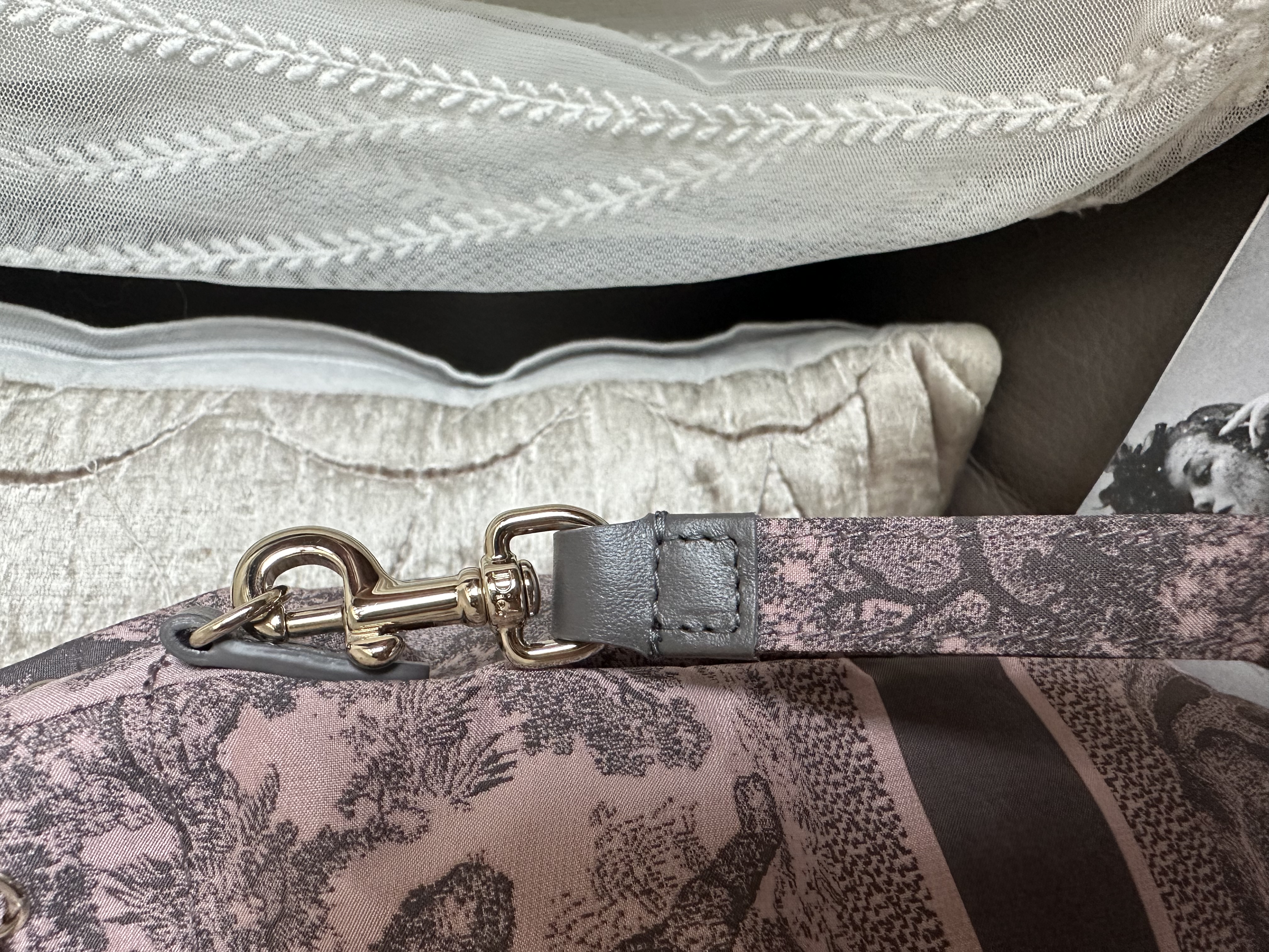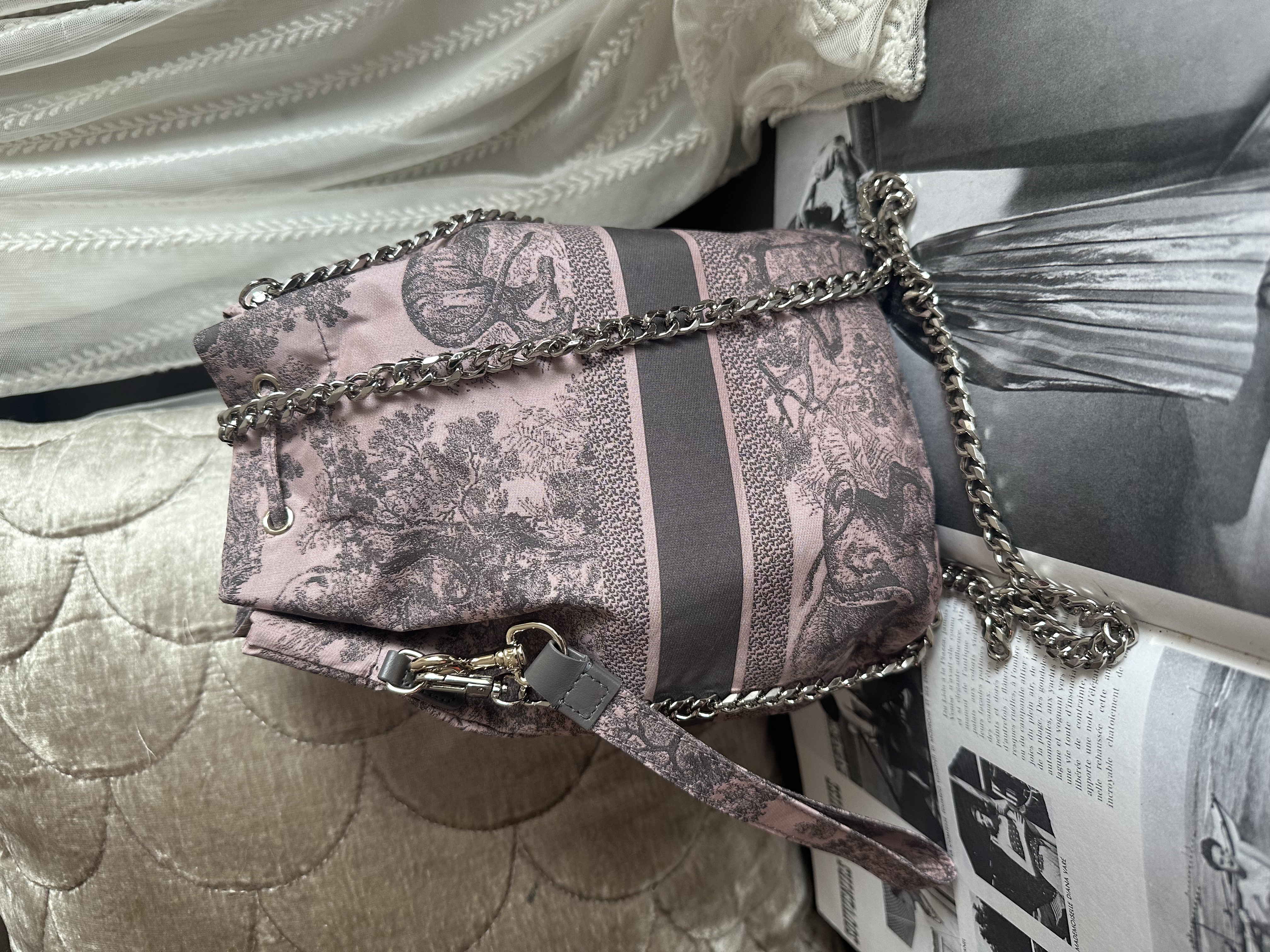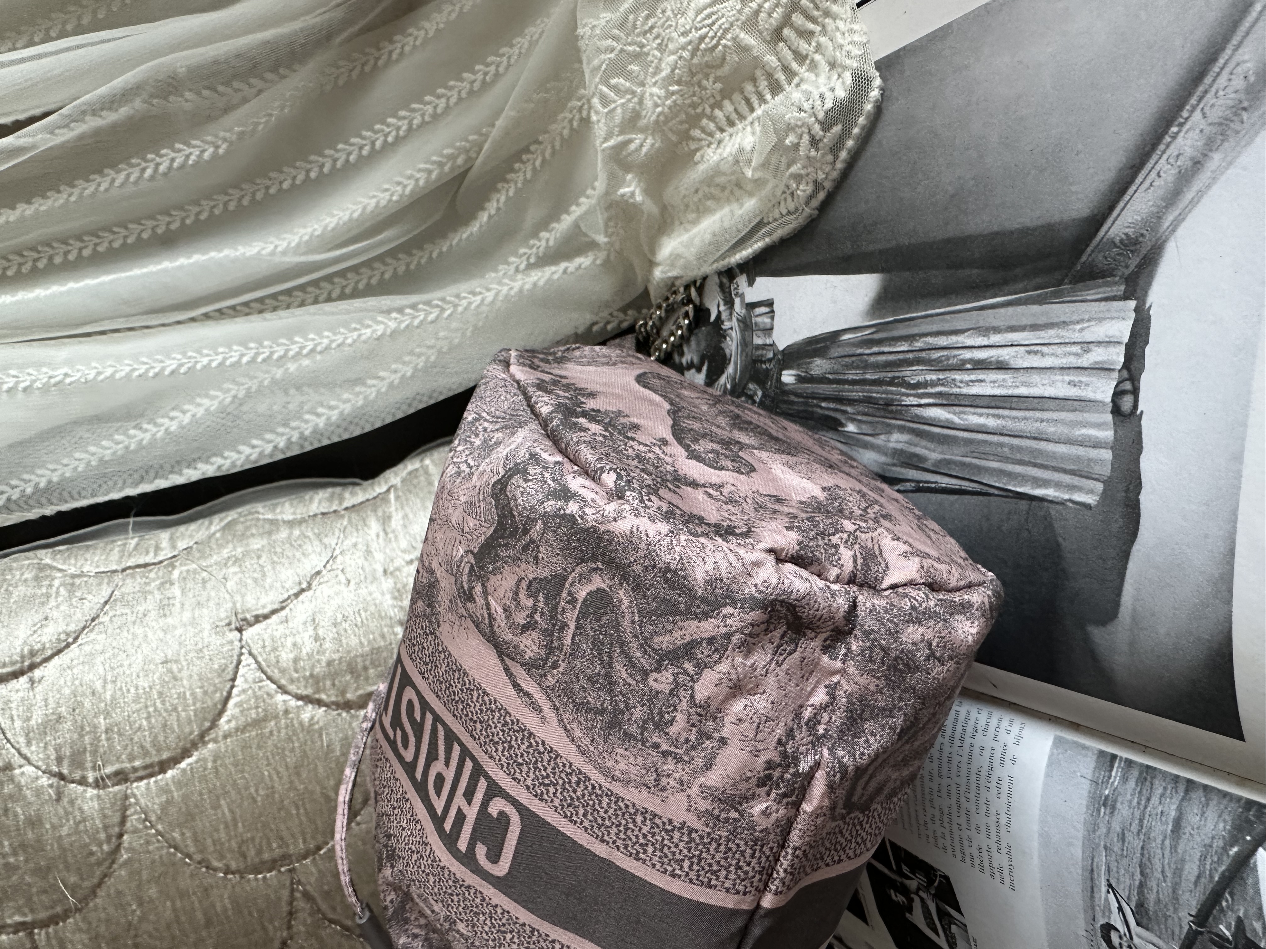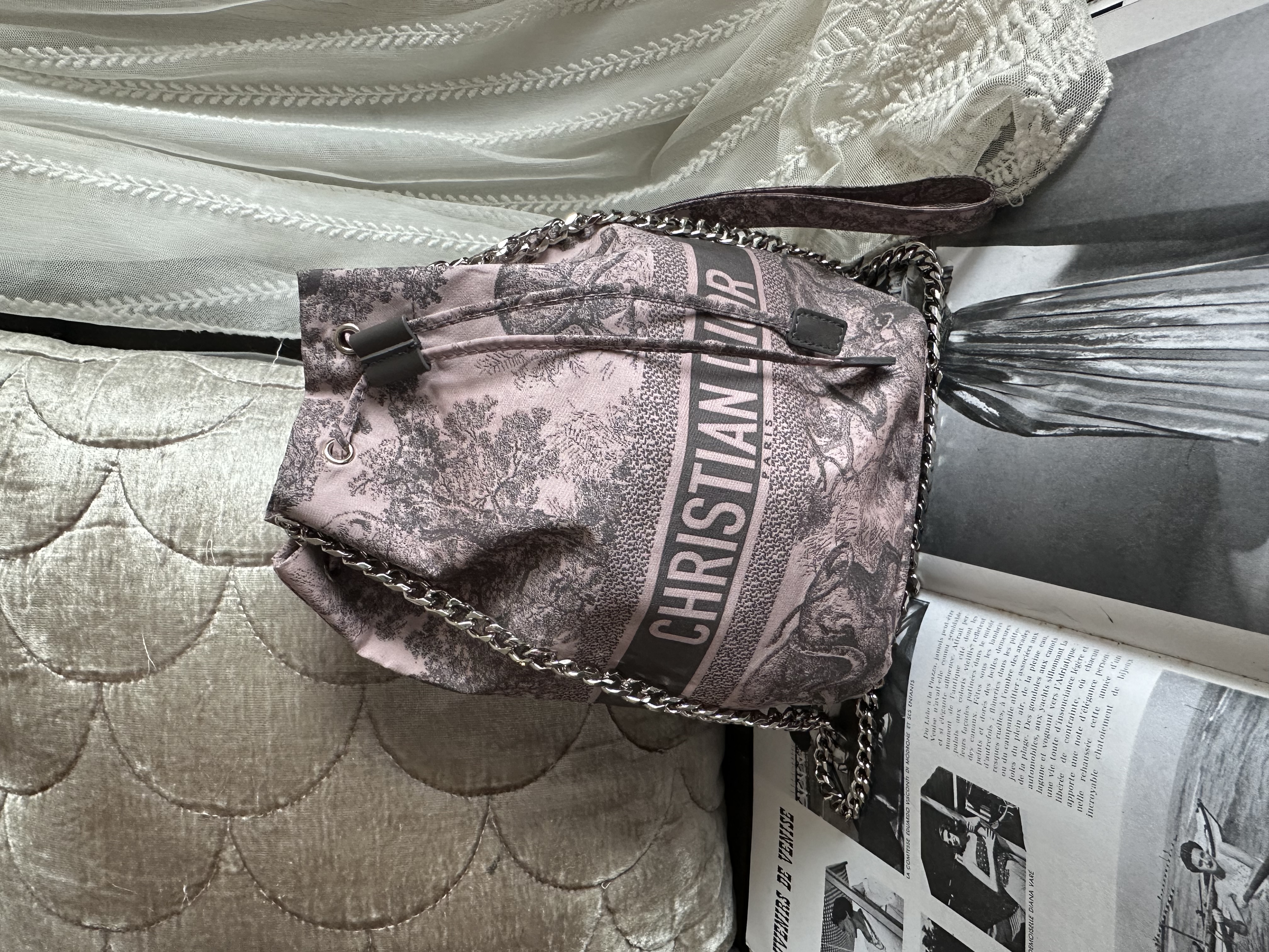 閑置接近全新 99新2023 Collection not vintage 💓 Dior Technical Fabric Embroidered Toile De Jouy Sauvage vanity bag Bucket仔非常好裝 連原裝短帶 /塵袋 另送一條沒品牌長鏈可斜咩用(原裝冇長鏈的) 閑置Dior Technical Fabric Embroidered Toile De Jouy Sauvage vanity bag pink grey 配件:原裝短帶 /塵袋 另送一條沒品牌長鏈可斜咩用(原裝冇長鏈的) 狀態:外觀99新/内99新 尺寸:14x21x9cm Dior Technical Fabric Embroidered Toile De Jouy Sauvage vanity bag pink grey Accessories :original short strap/dust bag Free non branded chain as a gift (no long chain originally ) Condition :like new Dimensions :14x21x9cm CHRISTIAN DIOR CD Canvas Embroidered Medium Brocart Book Tote Metallic Blue bag/travel bag/gym bag From the 2022 Collection by Maria Grazia Chiuri Accessories:dust bag Not included twilly /bag charm in the photo Dimensions:36.5x28x17.5 Condition: outside almost new /inside almost new 🖤本店為香港零售管理協會會員/門市已開業9年連續多年正版正貨商戶2025編號 001176 付款方法:VISA / MASTER / AE / 銀聯 / UNION PAY /現金 /alipay ❤️門市提供恒生💳渣打💳滙豐💳AE 💳DBS 💳Citibank💳mox 信用卡✅免息分期✅ 📢本店只出售正版貨📢 ❤️歡迎親臨銅鑼灣門市😍 ❤️ 本門市已搬到銅鑼灣記利佐治街2-10號銅鑼灣地帶2樓237號鋪 Shop 237, 2/f, causeway place, 2 great george street, causeway bay