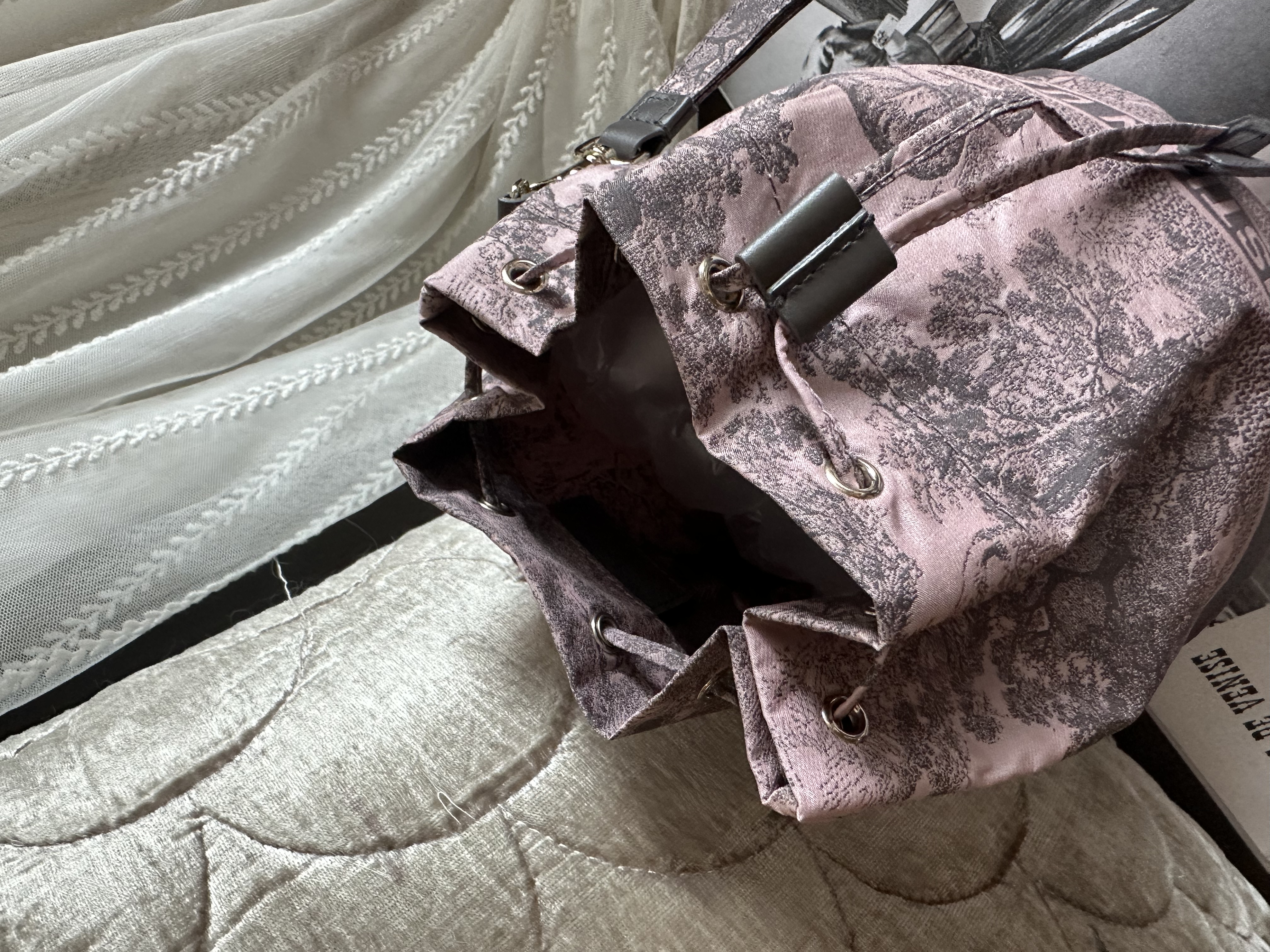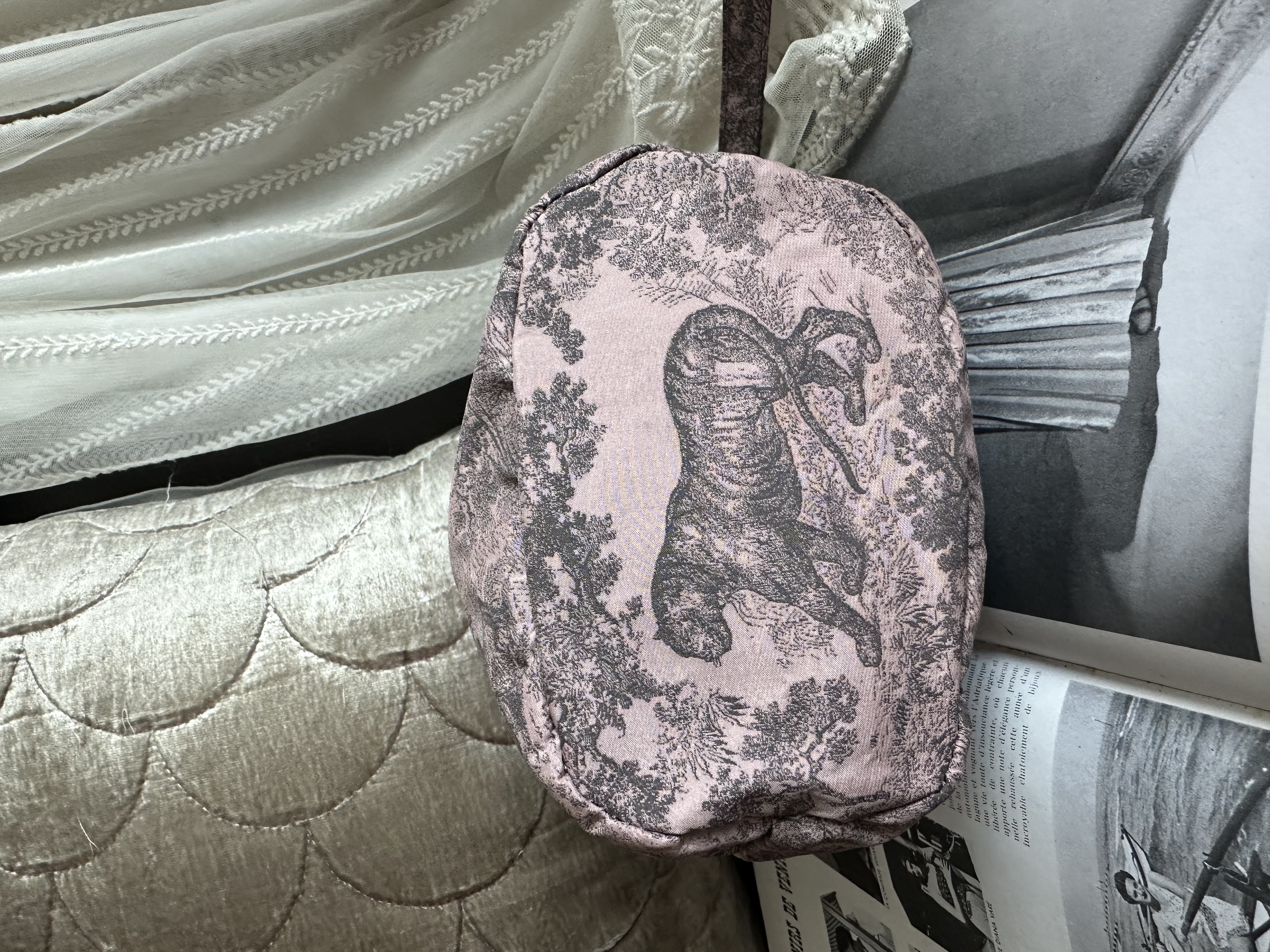 閑置Dior Technical Fabric Embroidered Toile De Jouy Sauvage vanity bag pink grey