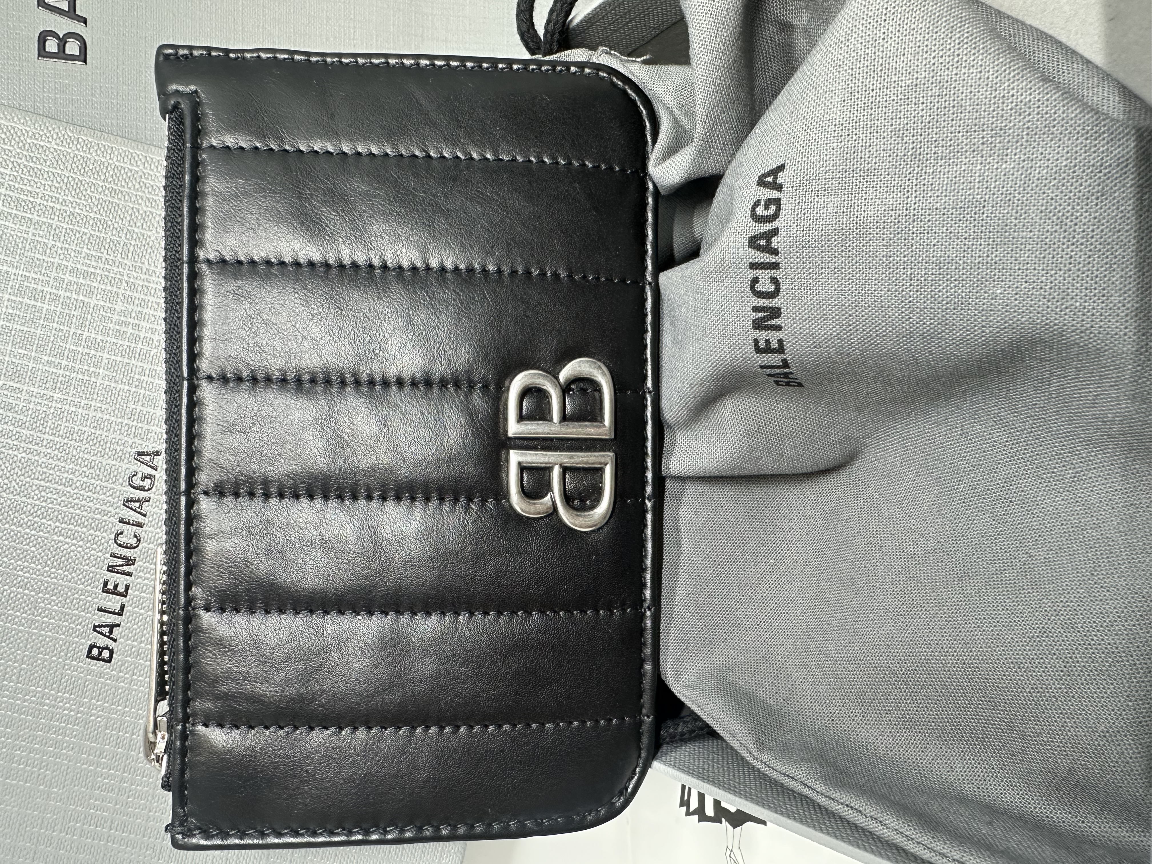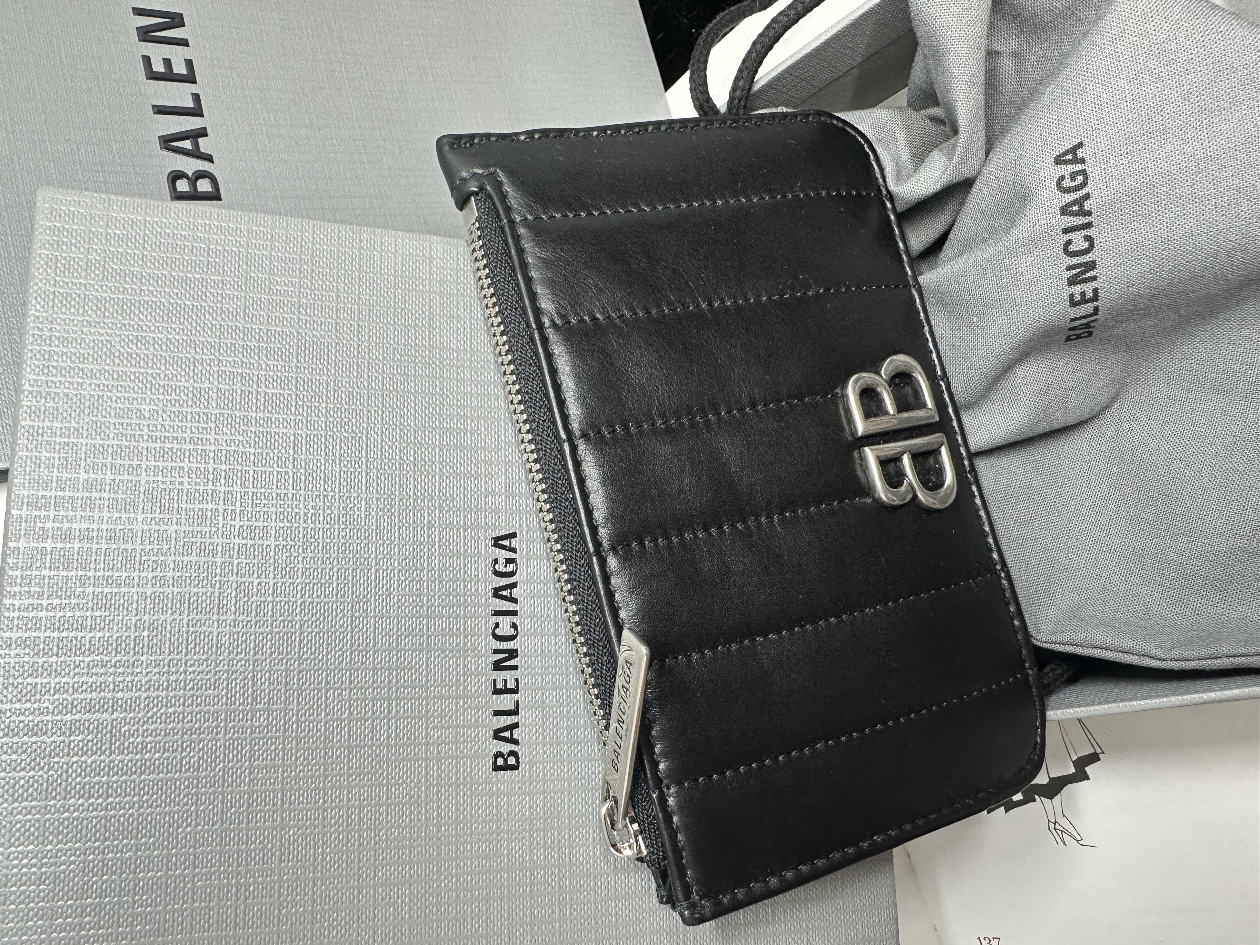 100%new 全新 未使用品 巴黎世家balenciaga black leather bb logo card holder