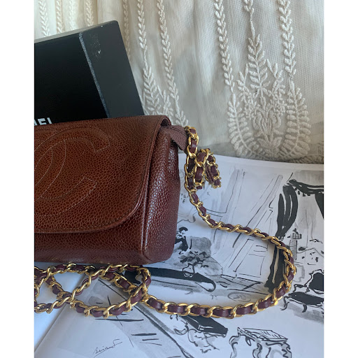 1997-1999 vintage chanel brown caviar leather vanity bag
