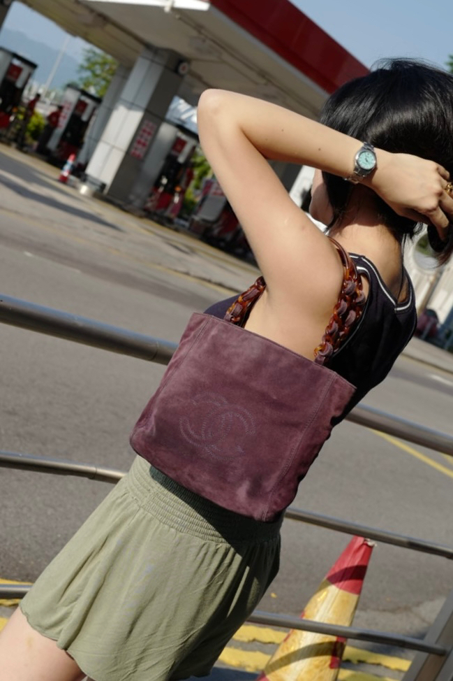 極稀少中古玳瑁扣cc tote bag 五字頭🌸 97-99年 有卡有貼 💜數字清晰可見 多年都保存新淨🌸實物比相新淨 猄皮好難影😂 玳瑁扣一向都少見仲要拼上紫色猄皮❤️❤️ vintage chanel purple suede Tortoise Shell Style Strap Tote Bag Dimensions:23x22x6cm 狀態外觀90新/內95新 配件:卡/貼 🖤本店為香港零售管理協會會員/門市已開業9年連續多年正版正貨商戶2025編號 001176 付款方法:VISA / MASTER / AE / 銀聯 / UNION PAY /現金 /alipay ❤️門市提供恒生💳渣打💳滙豐💳AE 💳DBS 💳Citibank💳mox 信用卡✅免息分期✅ 📢本店只出售正版貨📢 ❤️歡迎親臨銅鑼灣門市😍 ❤️ 本門市已搬到銅鑼灣記利佐治街2-10號銅鑼灣地帶2樓237號鋪 Shop 237, 2/f, causeway place, 2 great george street, causeway bay
