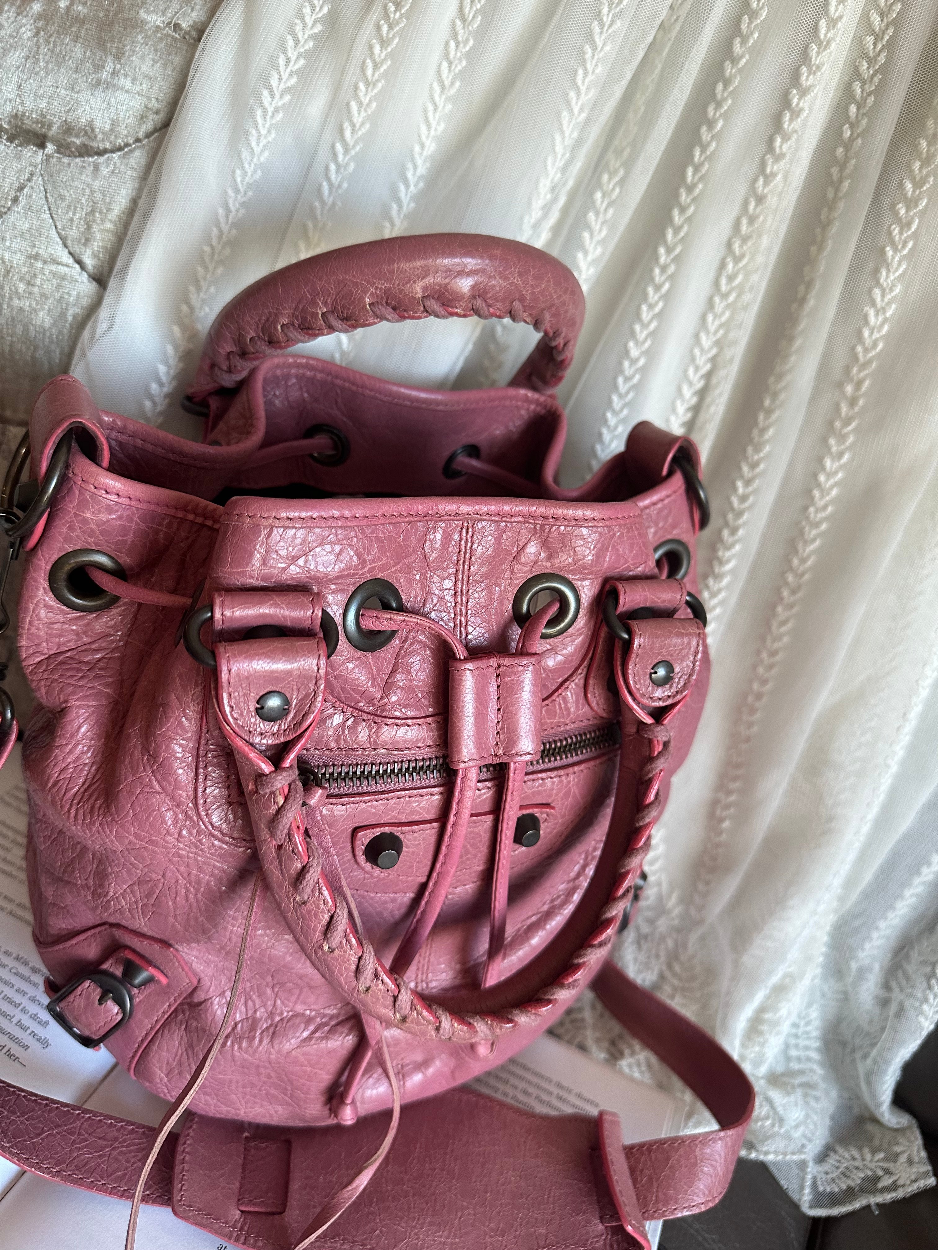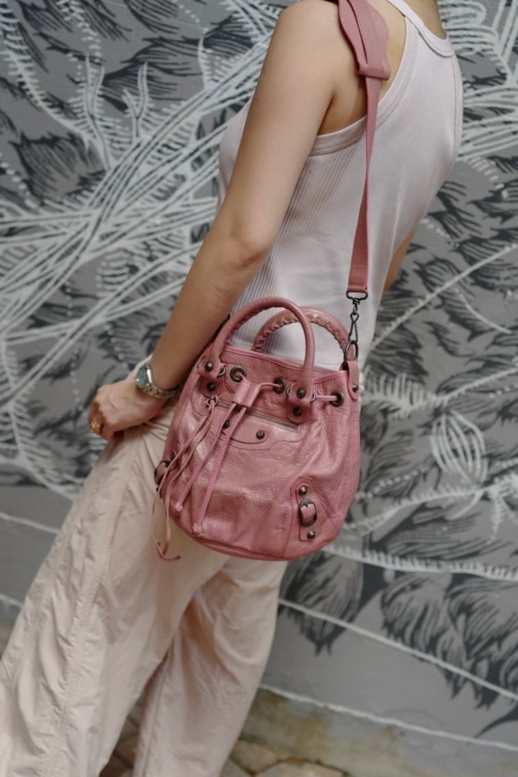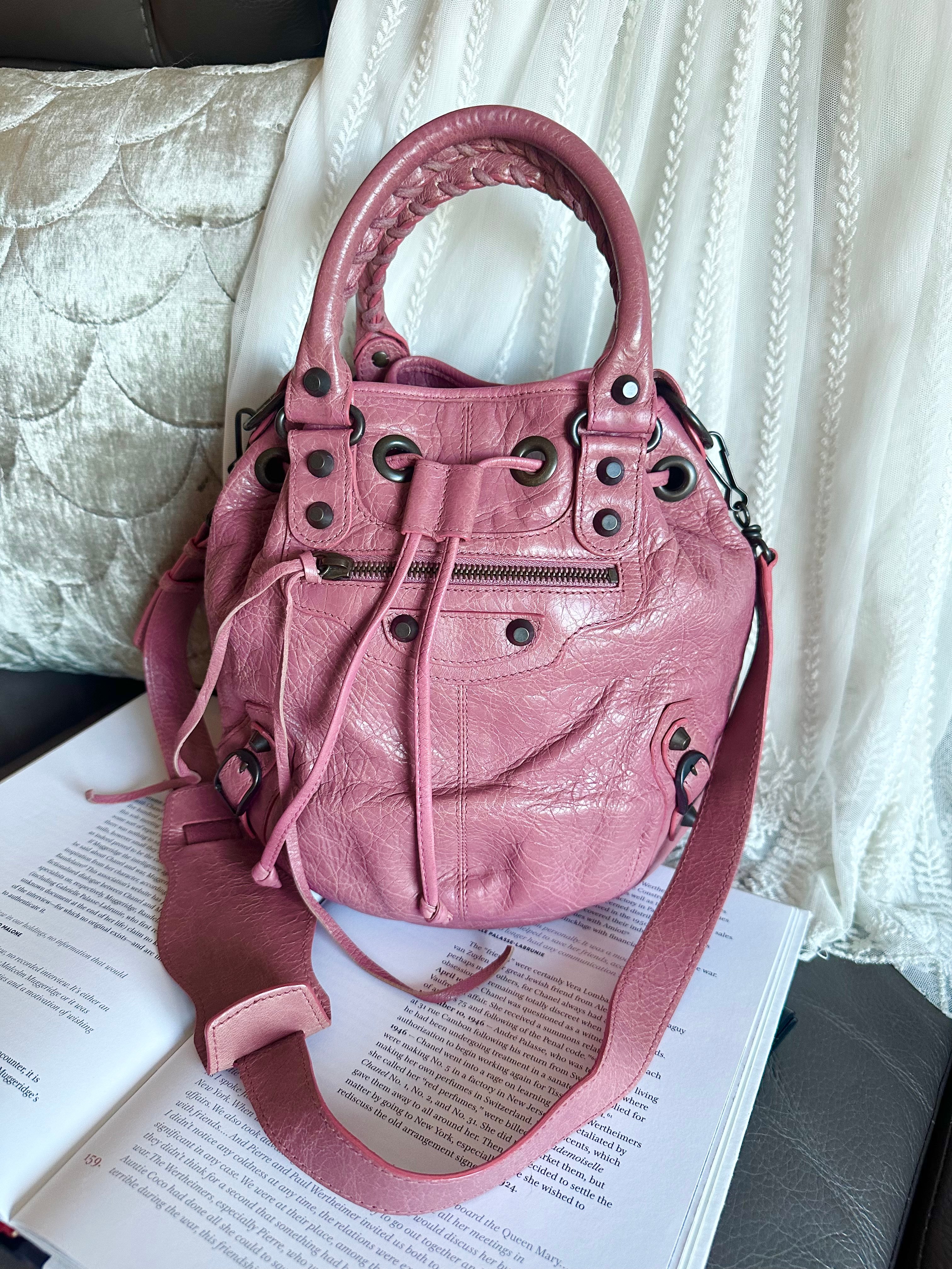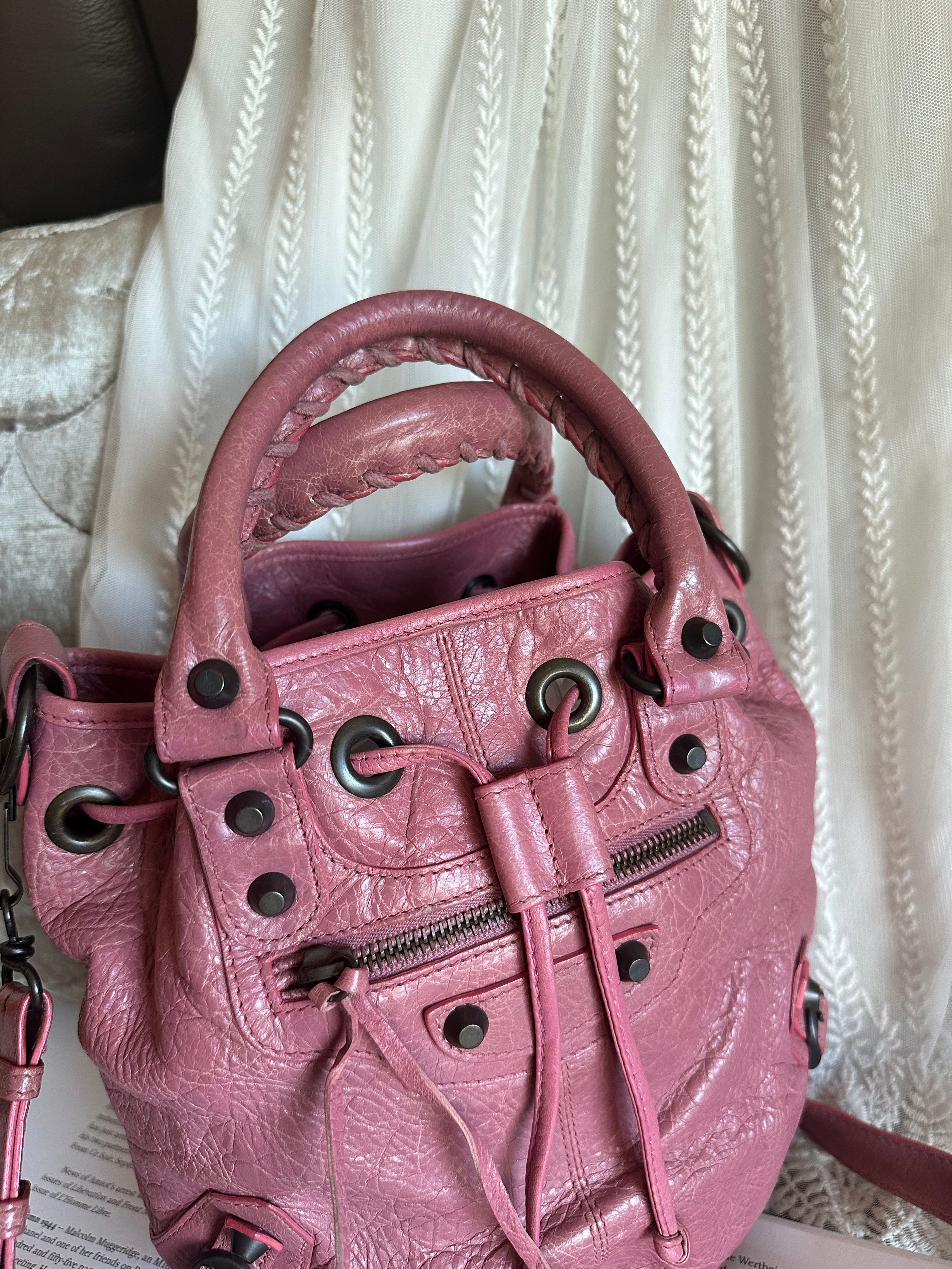 Balenciaga Motocross Classic Covered drawstring Mini Pompon bucket Bag Dusty pink💓勁可愛💓 ✅有鏡✅原裝長帶 條帶可以crossbody or 橋二圈做腋下包 Balenciaga Motocross Classic Covered drawstring Mini Pompon bucket Bag 尺寸:24x24x15cm 配件: 鏡/原裝長帶 圖中公仔吊飾不包括 狀態:袋外90新(邊角皮革位置已進行專業修復 )袋内93新 Balenciaga Motocross Classic Covered drawstring Mini Pompon bucket Bag Dimensions :24x24x15cm Accessories : mirror/originl strap Bag charm in photo not included Condition:outside very good /The outer leather corners have been carefully maintained /SPA by skilled and experienced craftsmen Inside very good 🖤本店為香港零售管理協會會員/門市已開業9年連續多年正版正貨商戶2025編號 001176 付款方法:VISA / MASTER / AE / 銀聯 / UNION PAY /現金 /alipay ❤️門市提供恒生💳渣打💳滙豐💳AE 💳DBS 💳Citibank💳mox 信用卡✅免息分期✅ 📢本店只出售正版貨📢 ❤️歡迎親臨銅鑼灣門市😍 ❤️ 本門市已搬到銅鑼灣記利佐治街2-10號銅鑼灣地帶2樓237號鋪 Shop 237, 2/f, causeway place, 2 great george street, causeway bay