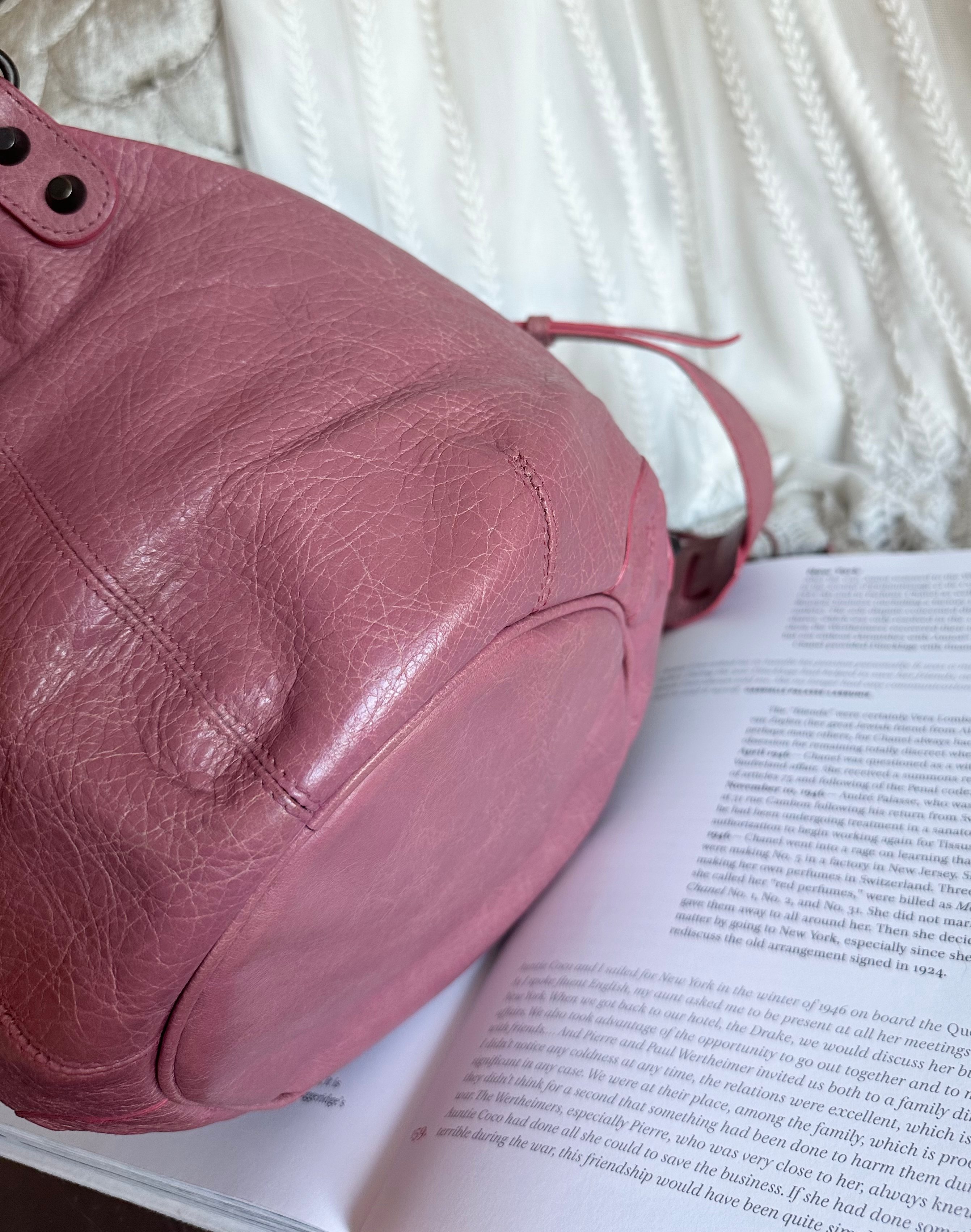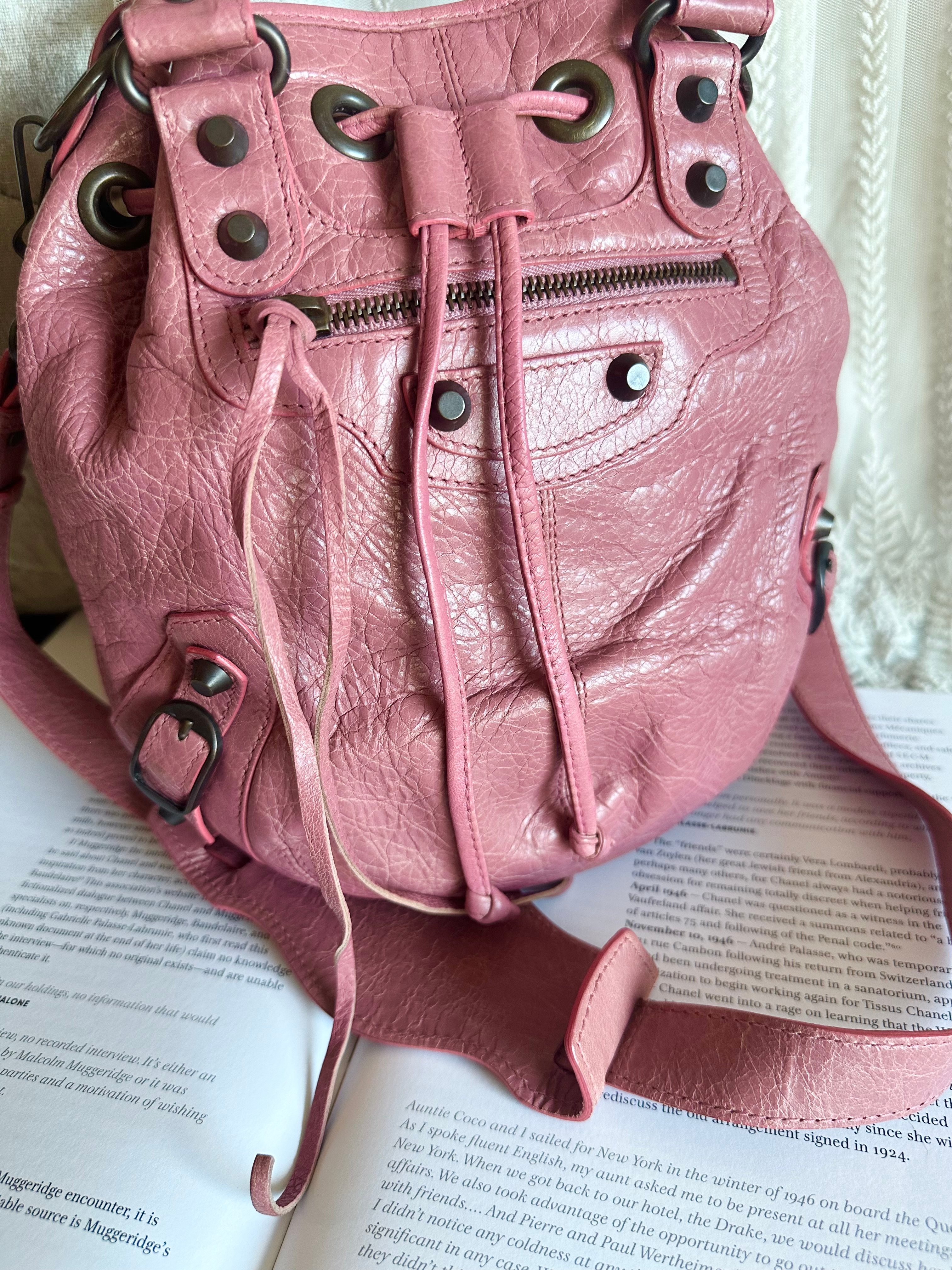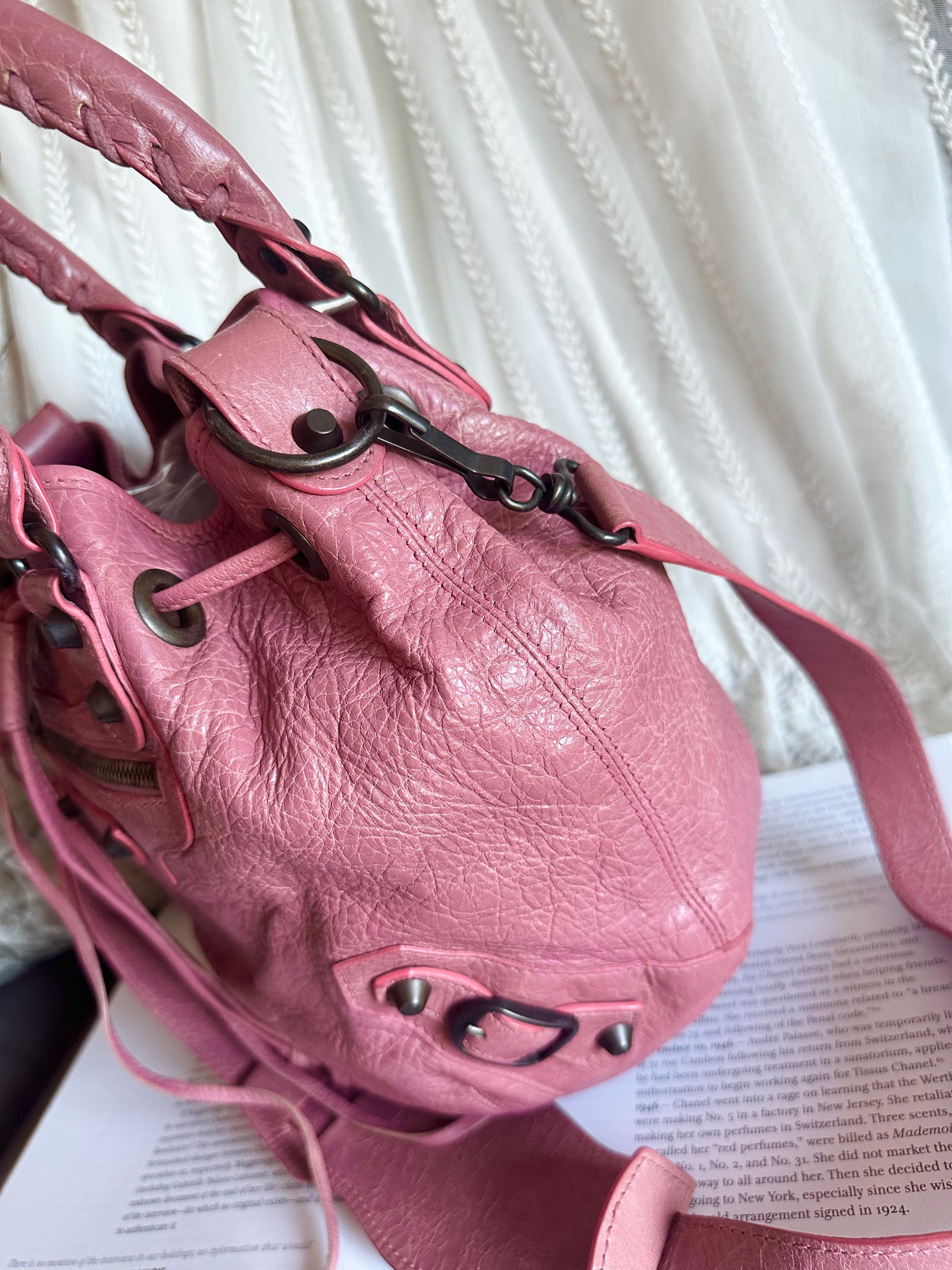 Balenciaga Motocross Classic Covered drawstring Mini Pompon bucket Bag Dusty pink💓勁可愛💓 ✅有鏡✅原裝長帶 條帶可以crossbody or 橋二圈做腋下包 Balenciaga Motocross Classic Covered drawstring Mini Pompon bucket Bag 尺寸:24x24x15cm 配件: 鏡/原裝長帶 圖中公仔吊飾不包括 狀態:袋外90新(邊角皮革位置已進行專業修復 )袋内93新 Balenciaga Motocross Classic Covered drawstring Mini Pompon bucket Bag Dimensions :24x24x15cm Accessories : mirror/originl strap Bag charm in photo not included Condition:outside very good /The outer leather corners have been carefully maintained /SPA by skilled and experienced craftsmen Inside very good 🖤本店為香港零售管理協會會員/門市已開業9年連續多年正版正貨商戶2025編號 001176 付款方法:VISA / MASTER / AE / 銀聯 / UNION PAY /現金 /alipay ❤️門市提供恒生💳渣打💳滙豐💳AE 💳DBS 💳Citibank💳mox 信用卡✅免息分期✅ 📢本店只出售正版貨📢 ❤️歡迎親臨銅鑼灣門市😍 ❤️ 本門市已搬到銅鑼灣記利佐治街2-10號銅鑼灣地帶2樓237號鋪 Shop 237, 2/f, causeway place, 2 great george street, causeway bay