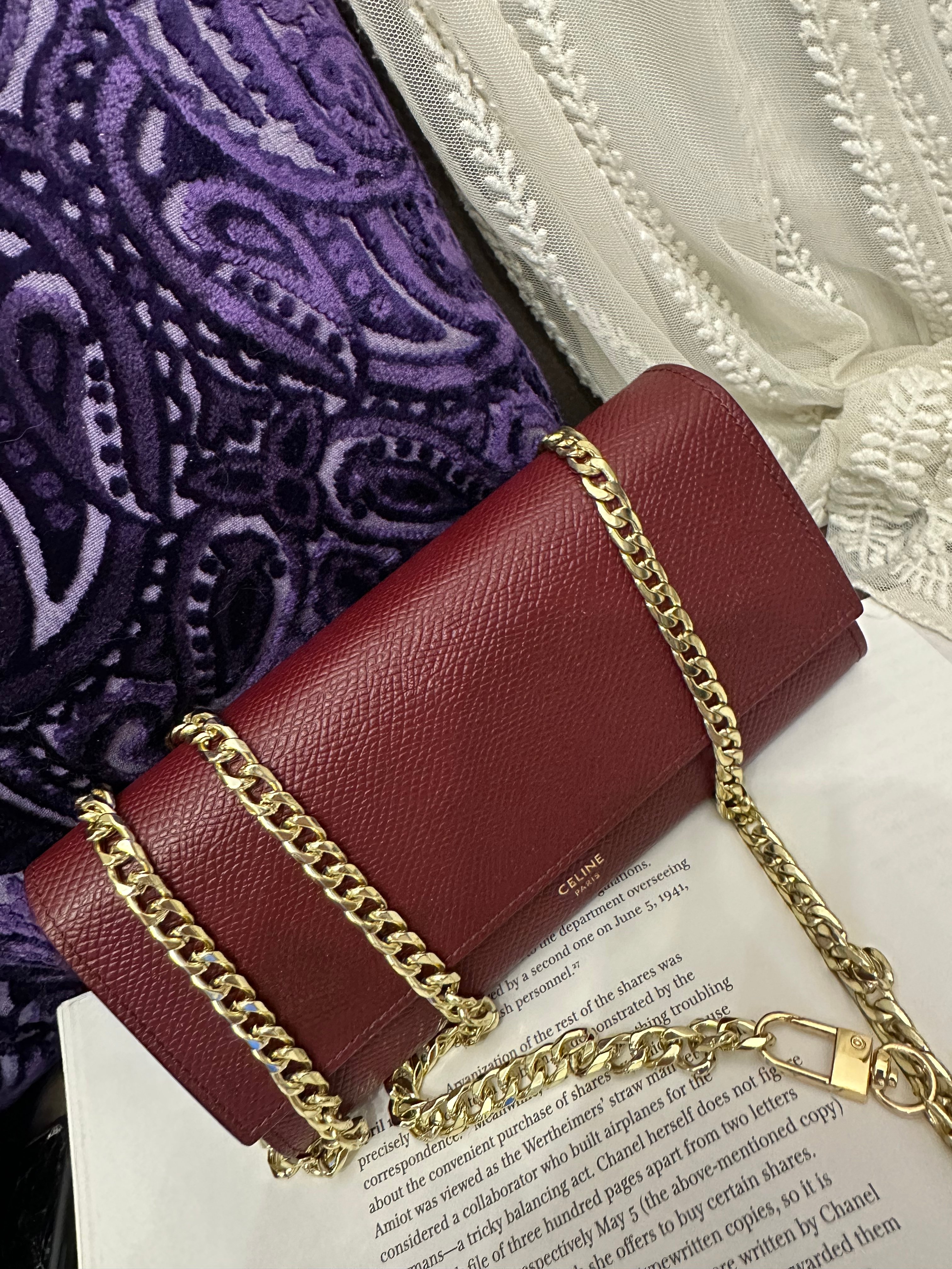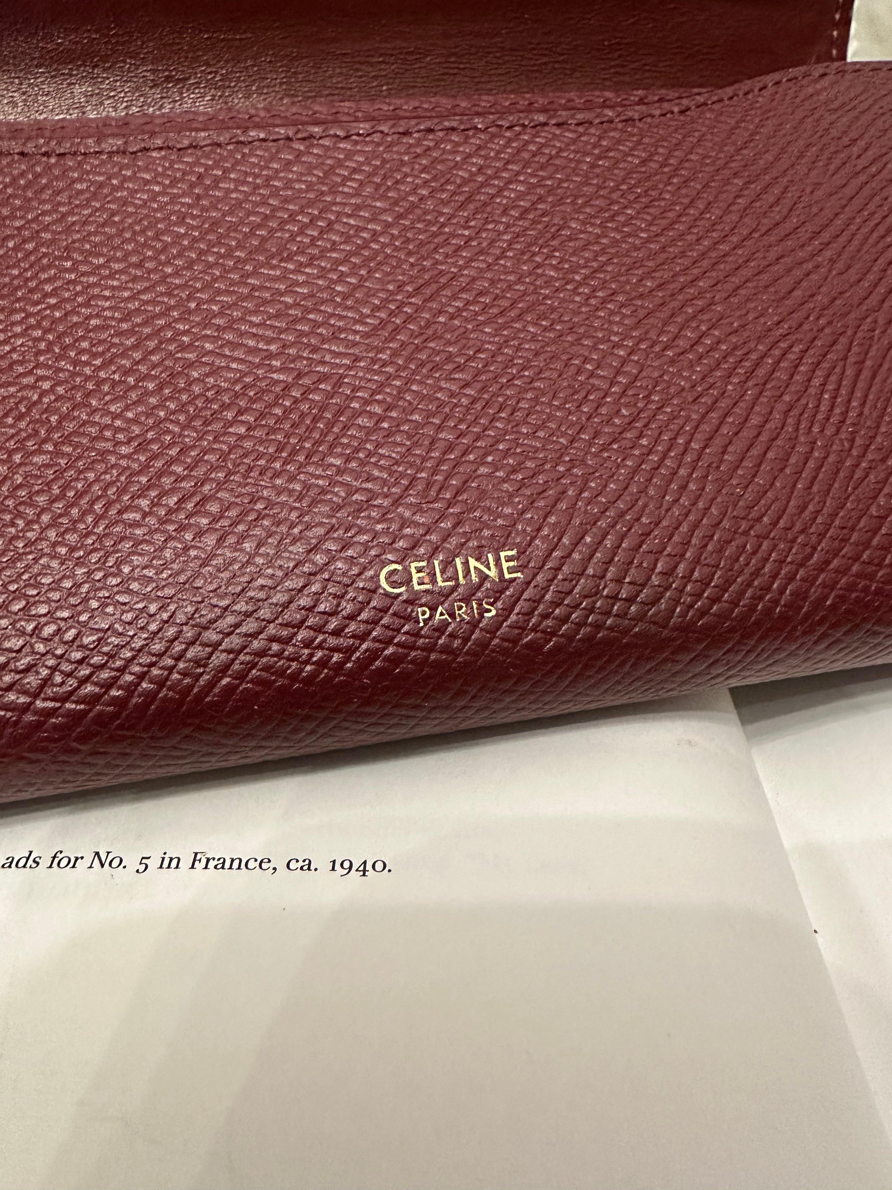 Celine burgundy long wallet