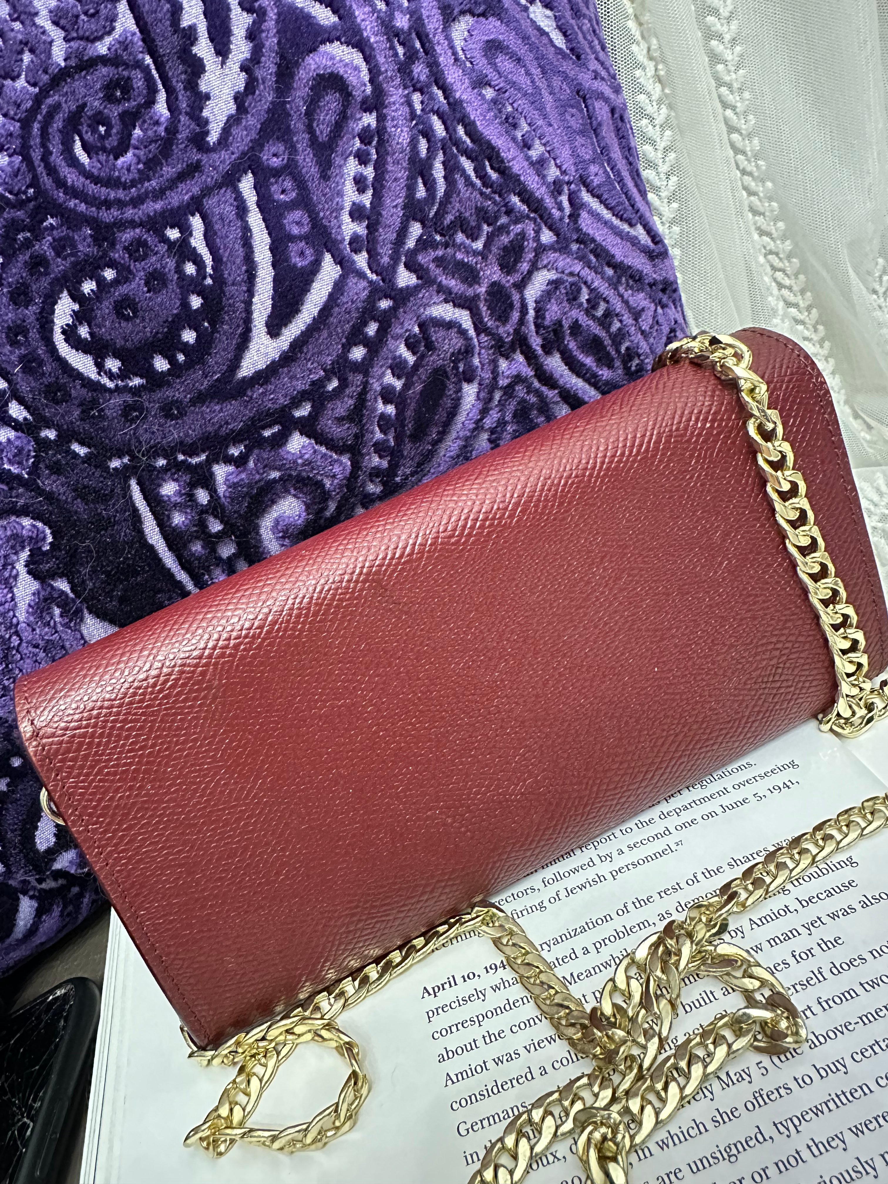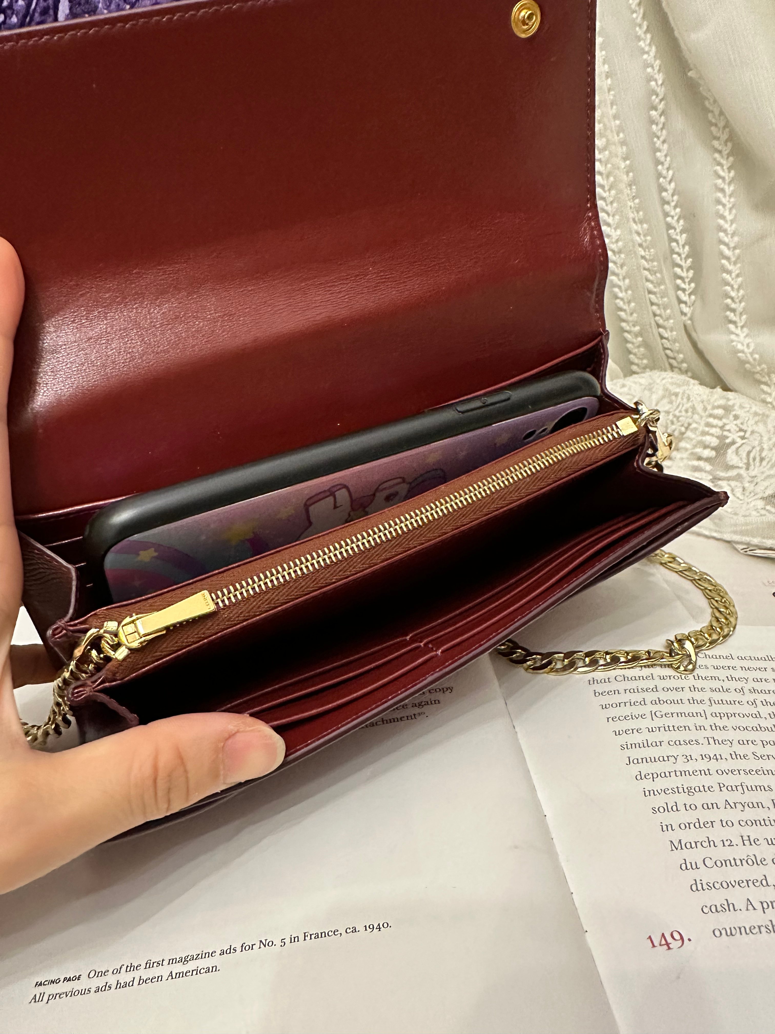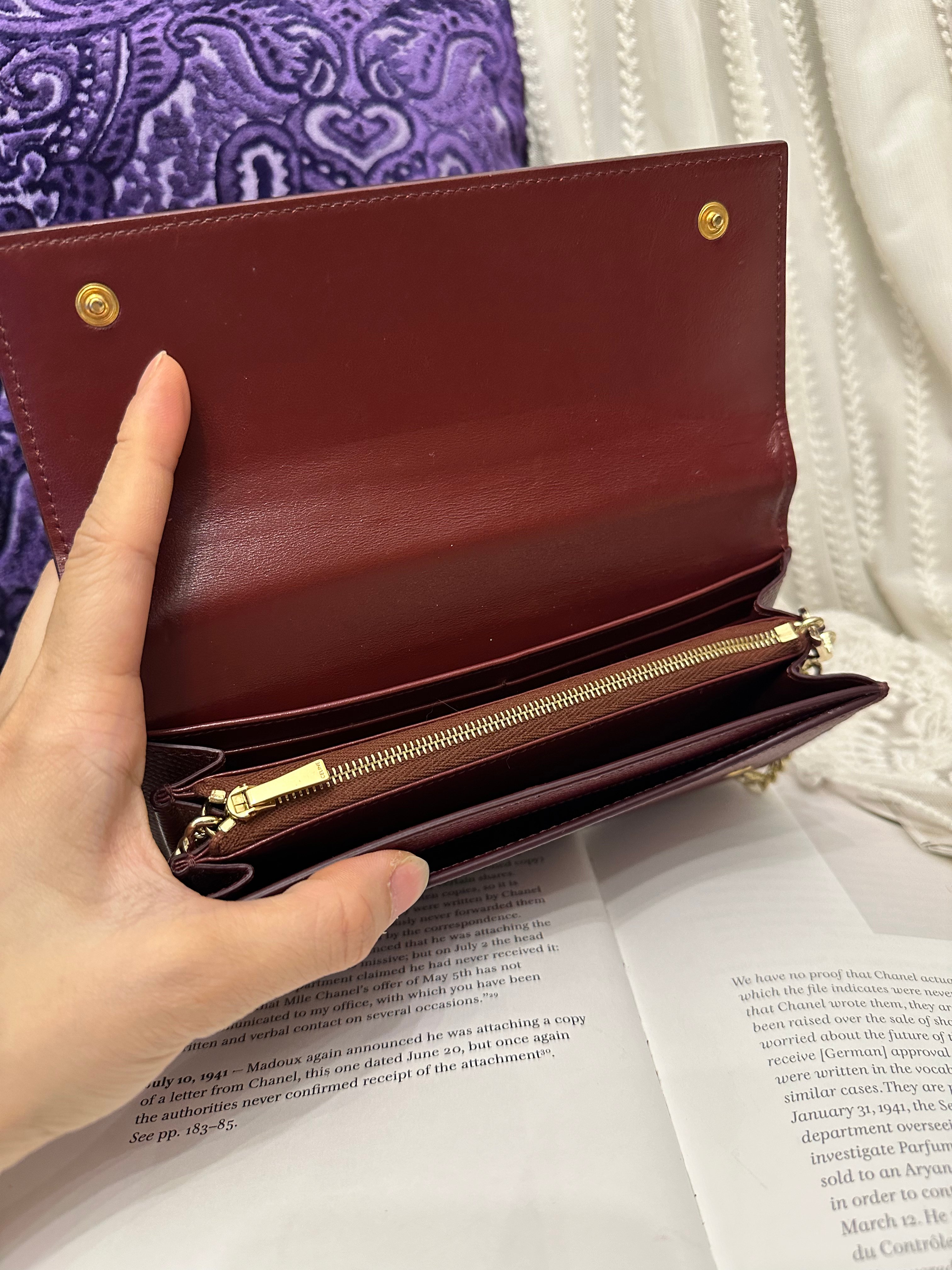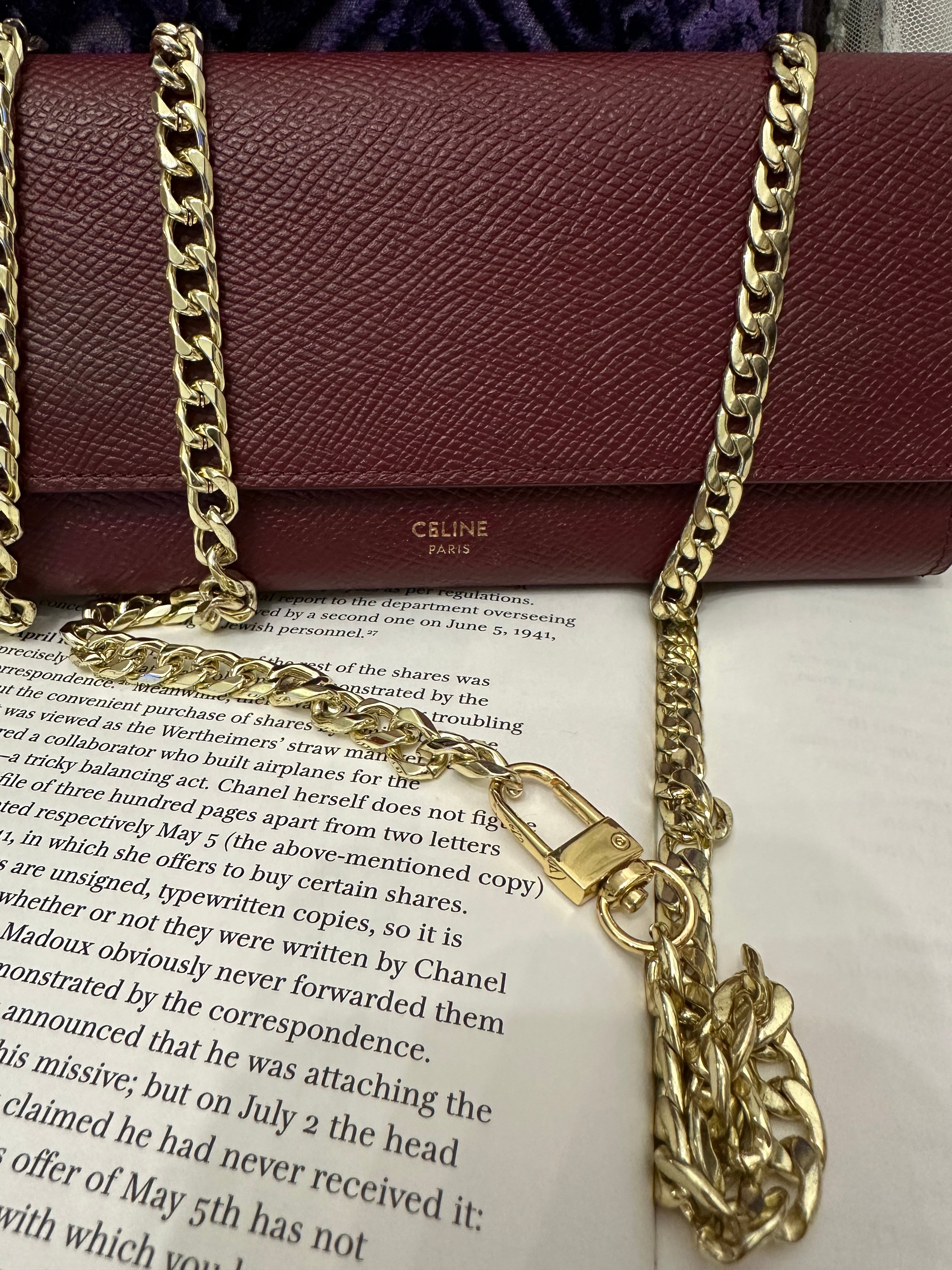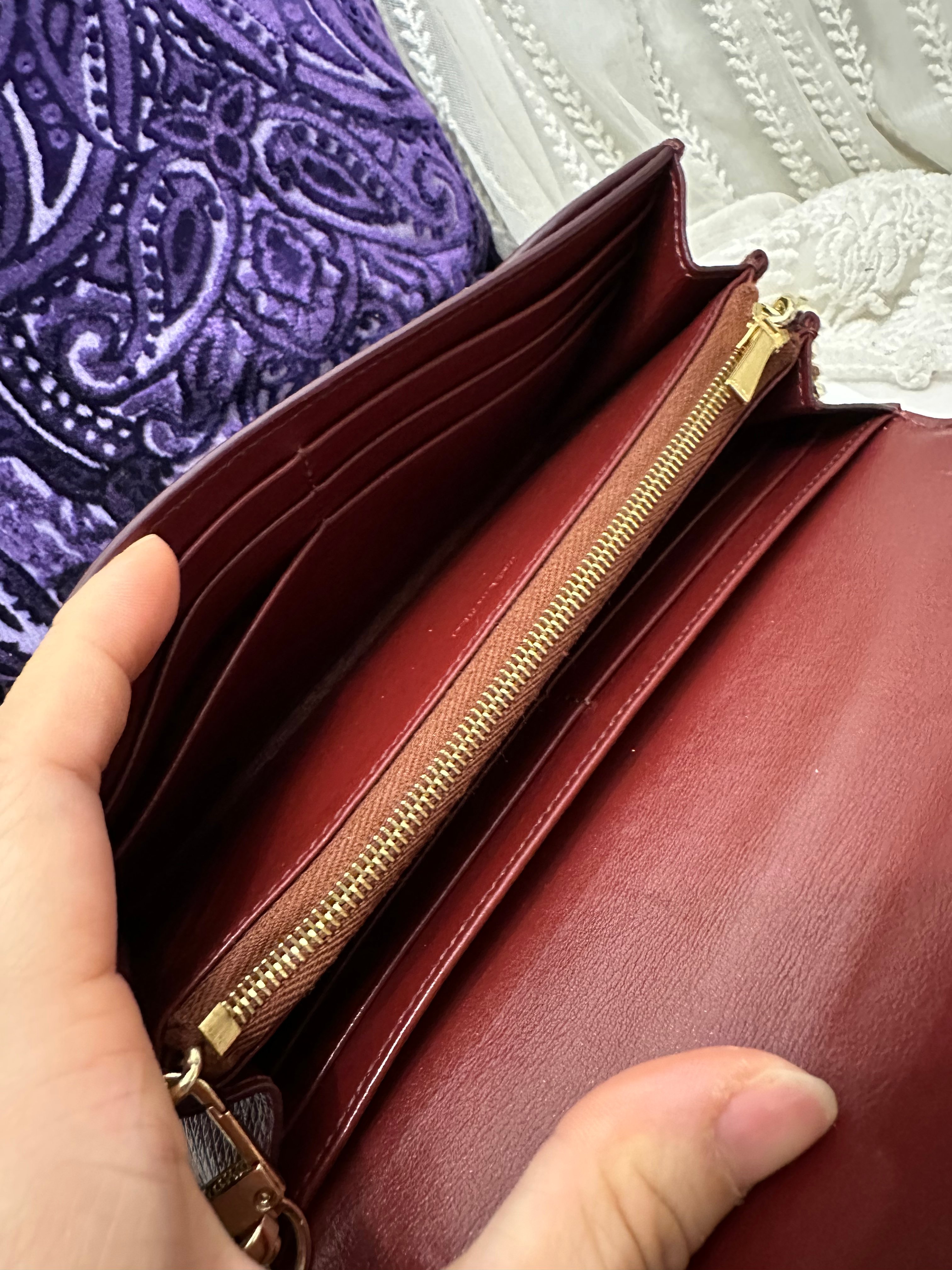 Celine burgundy long wallet 改裝的 後加左扣同chain 可crossbody Celine burgundy wallet 狀態:袋外88新/內98新 尺寸:19x10x2 配件:沒有 己改裝成袋用扣一對/沒品牌長鏈一條(見圖) Celine burgundy long wallet Dimensions:19x10x2cm Accessories :none Item has been modified, installed non branded hook / non branded chain (removable) (see photo ) so you can wear as a crossbody bag Condition: Very Good condition 🖤本店為香港零售管理協會會員/門市已開業9年連續多年正版正貨商戶2025編號 001176 付款方法:VISA / MASTER / AE / 銀聯 / UNION PAY /現金 /alipay ❤️門市提供恒生💳渣打💳滙豐💳AE 💳DBS 💳Citibank💳mox 信用卡✅免息分期✅ 📢本店只出售正版貨📢 ❤️歡迎親臨銅鑼灣門市😍 ❤️ 本門市已搬到銅鑼灣記利佐治街2-10號銅鑼灣地帶2樓237號鋪 Shop 237, 2/f, causeway place, 2 great george street, causeway bay 📞65230308