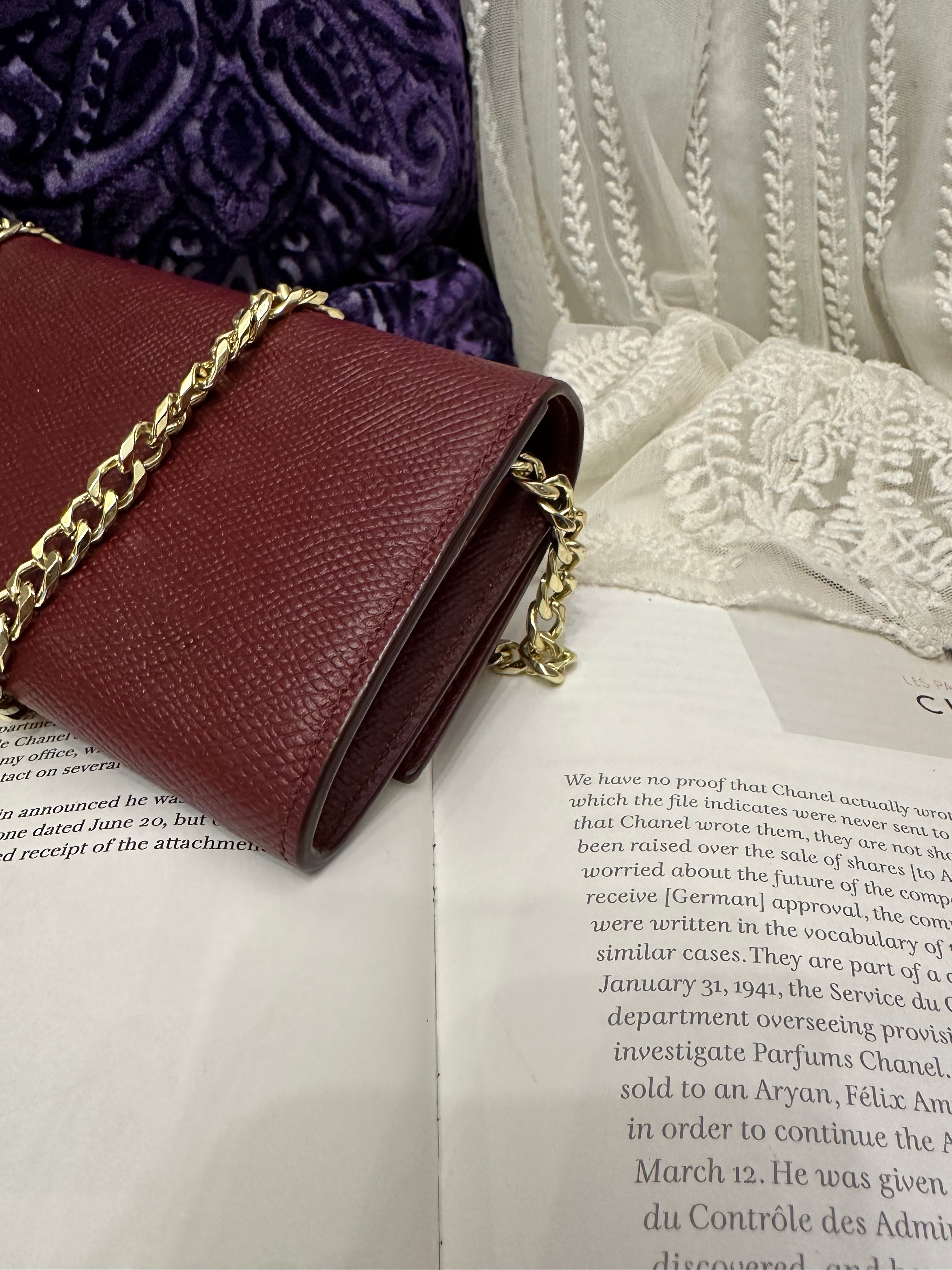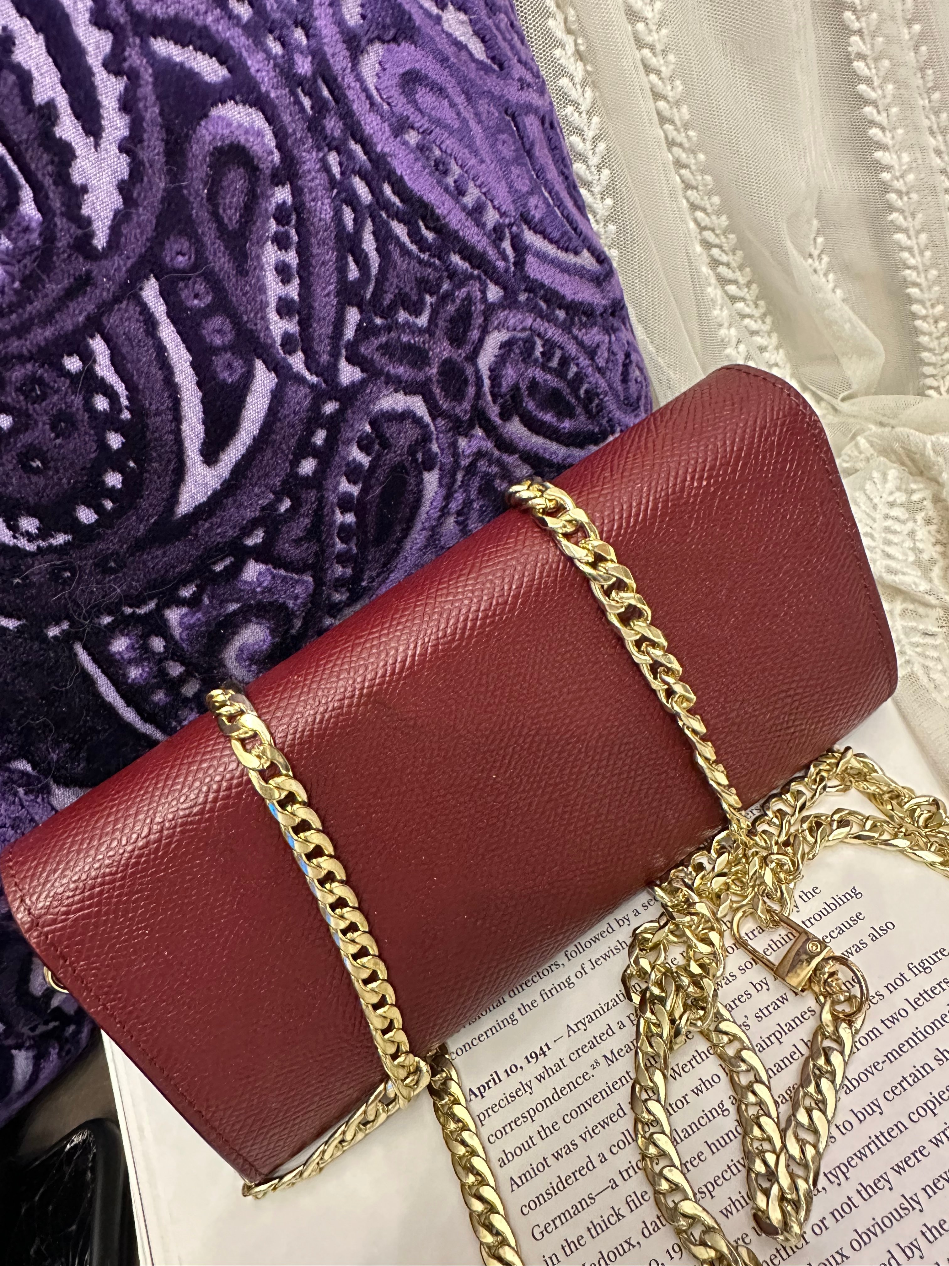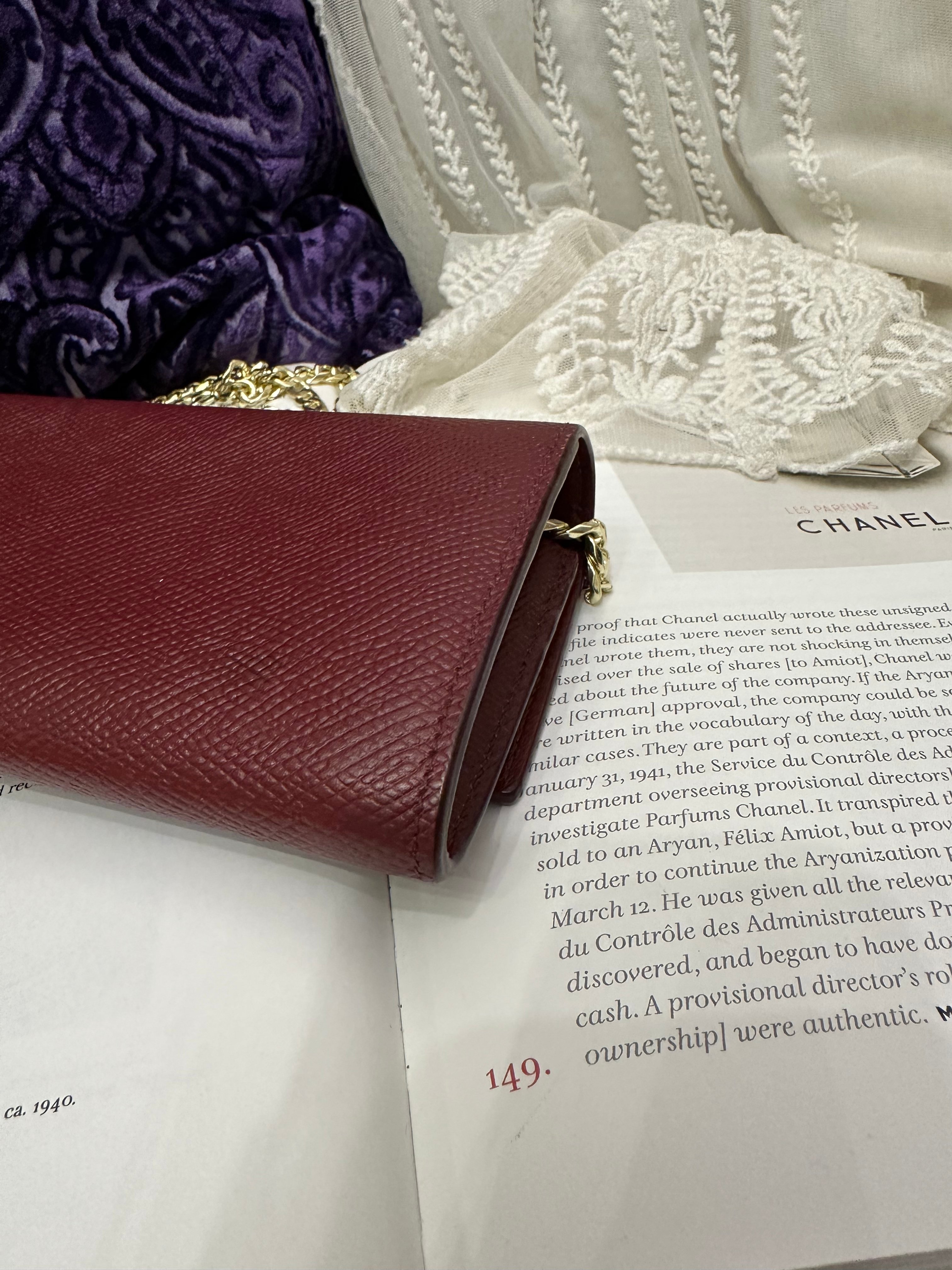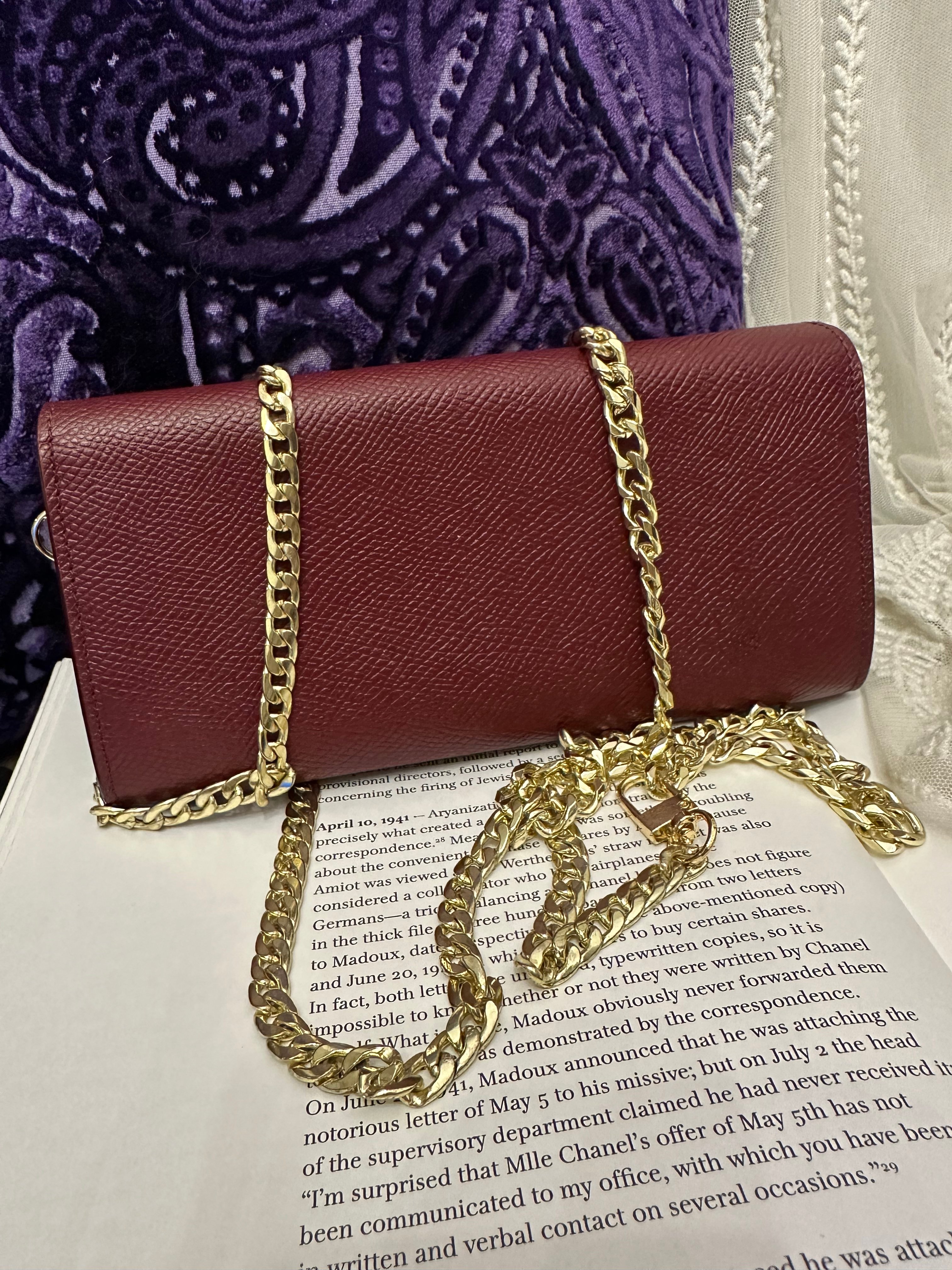 Celine burgundy long wallet 改裝的 後加左扣同chain 可crossbody Celine burgundy wallet 狀態:袋外88新/內98新 尺寸:19x10x2 配件:沒有 己改裝成袋用扣一對/沒品牌長鏈一條(見圖) Celine burgundy long wallet Dimensions:19x10x2cm Accessories :none Item has been modified, installed non branded hook / non branded chain (removable) (see photo ) so you can wear as a crossbody bag Condition: Very Good condition 🖤本店為香港零售管理協會會員/門市已開業9年連續多年正版正貨商戶2025編號 001176 付款方法:VISA / MASTER / AE / 銀聯 / UNION PAY /現金 /alipay ❤️門市提供恒生💳渣打💳滙豐💳AE 💳DBS 💳Citibank💳mox 信用卡✅免息分期✅ 📢本店只出售正版貨📢 ❤️歡迎親臨銅鑼灣門市😍 ❤️ 本門市已搬到銅鑼灣記利佐治街2-10號銅鑼灣地帶2樓237號鋪 Shop 237, 2/f, causeway place, 2 great george street, causeway bay 📞65230308