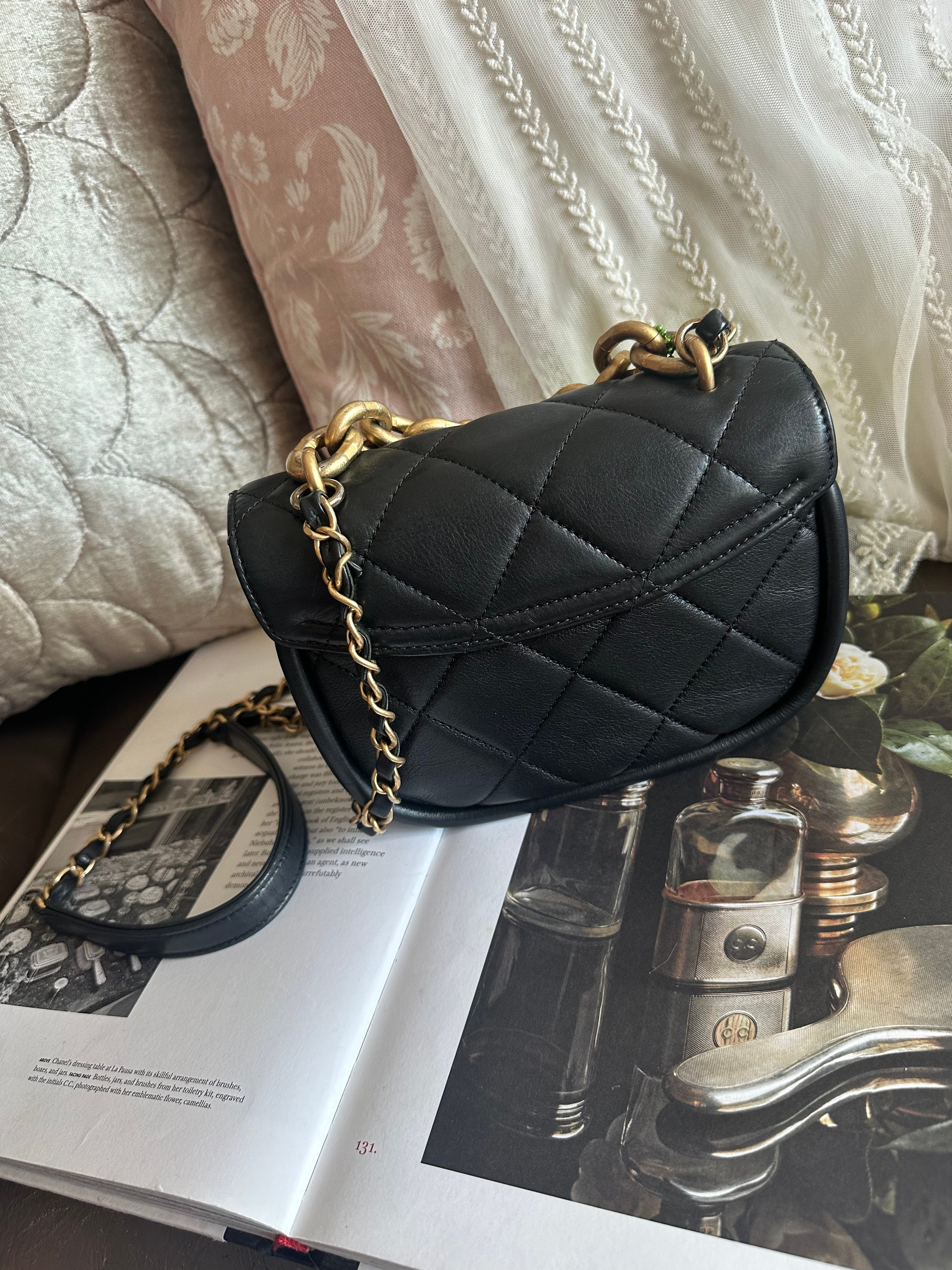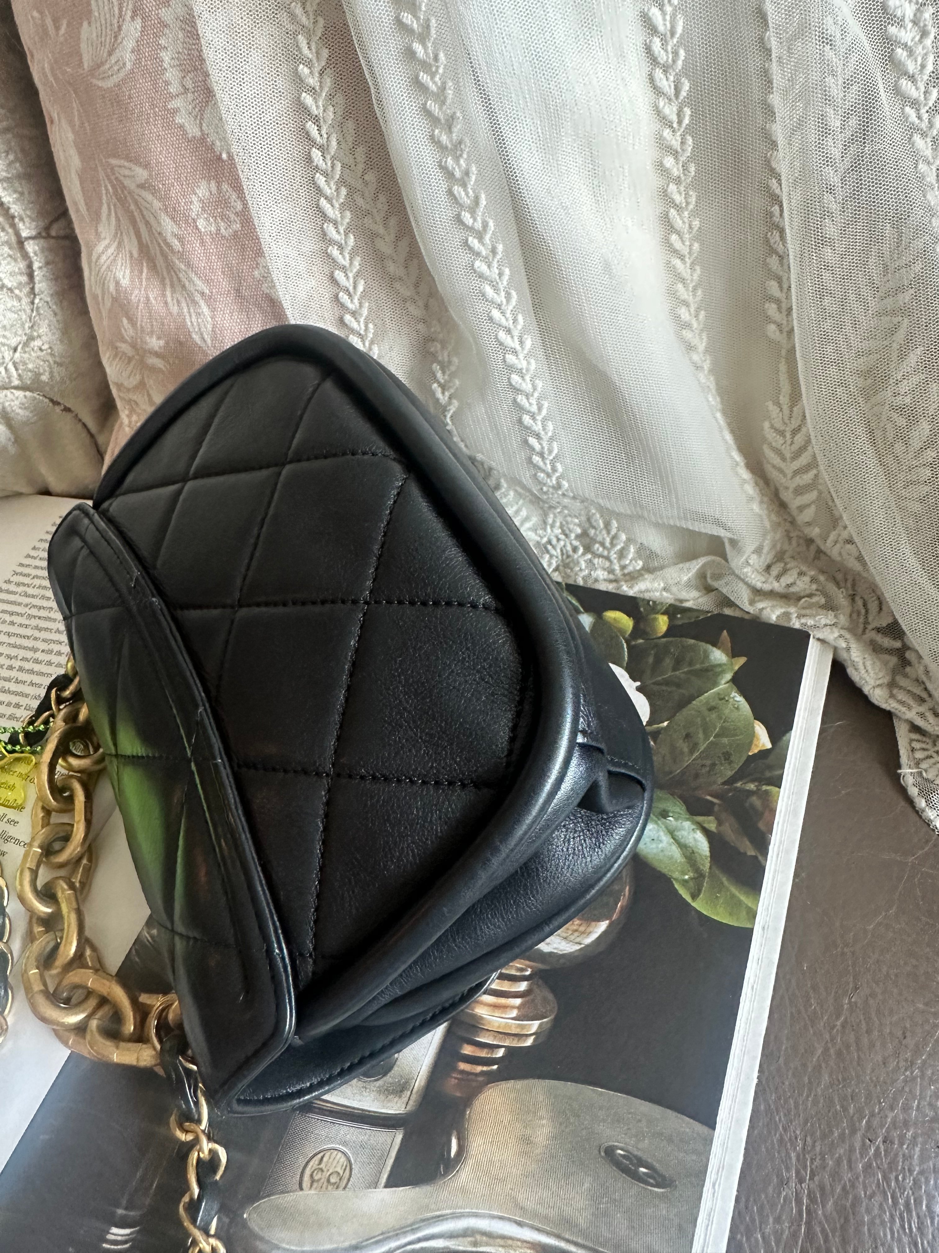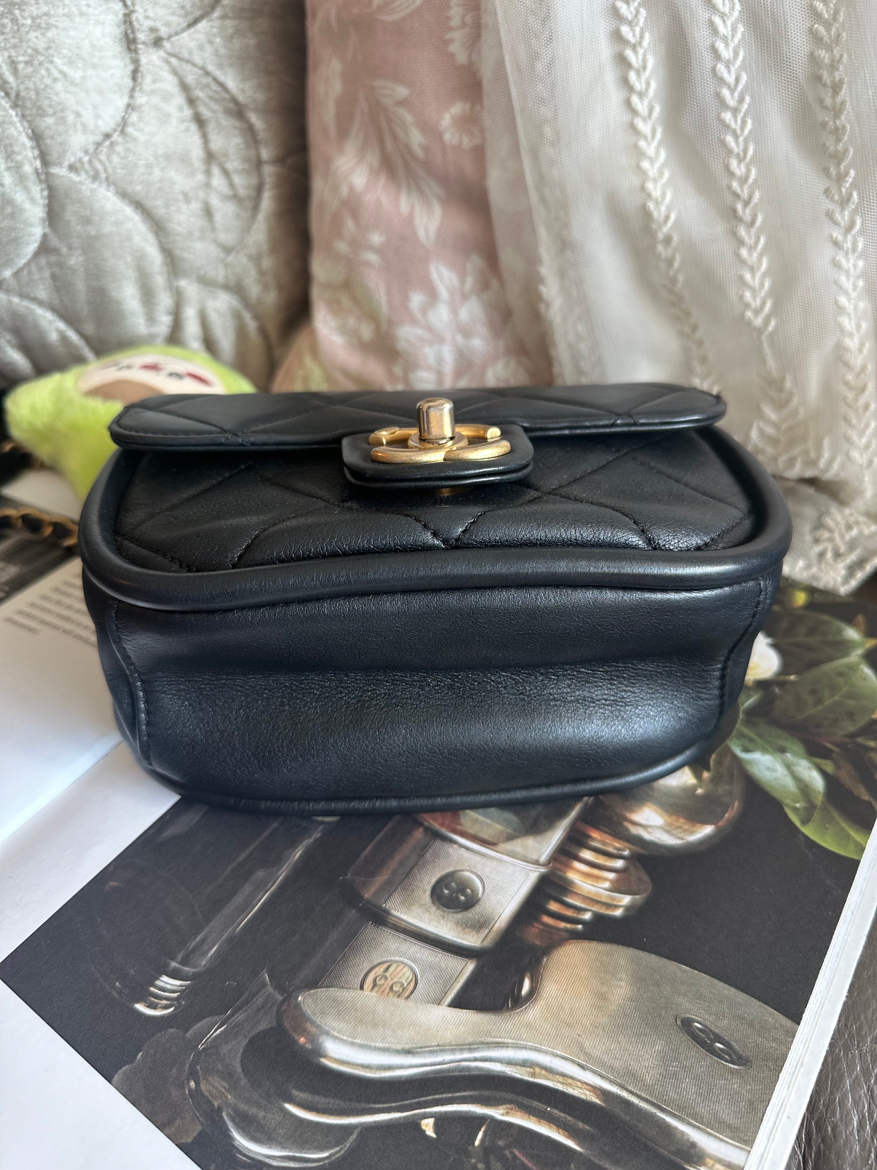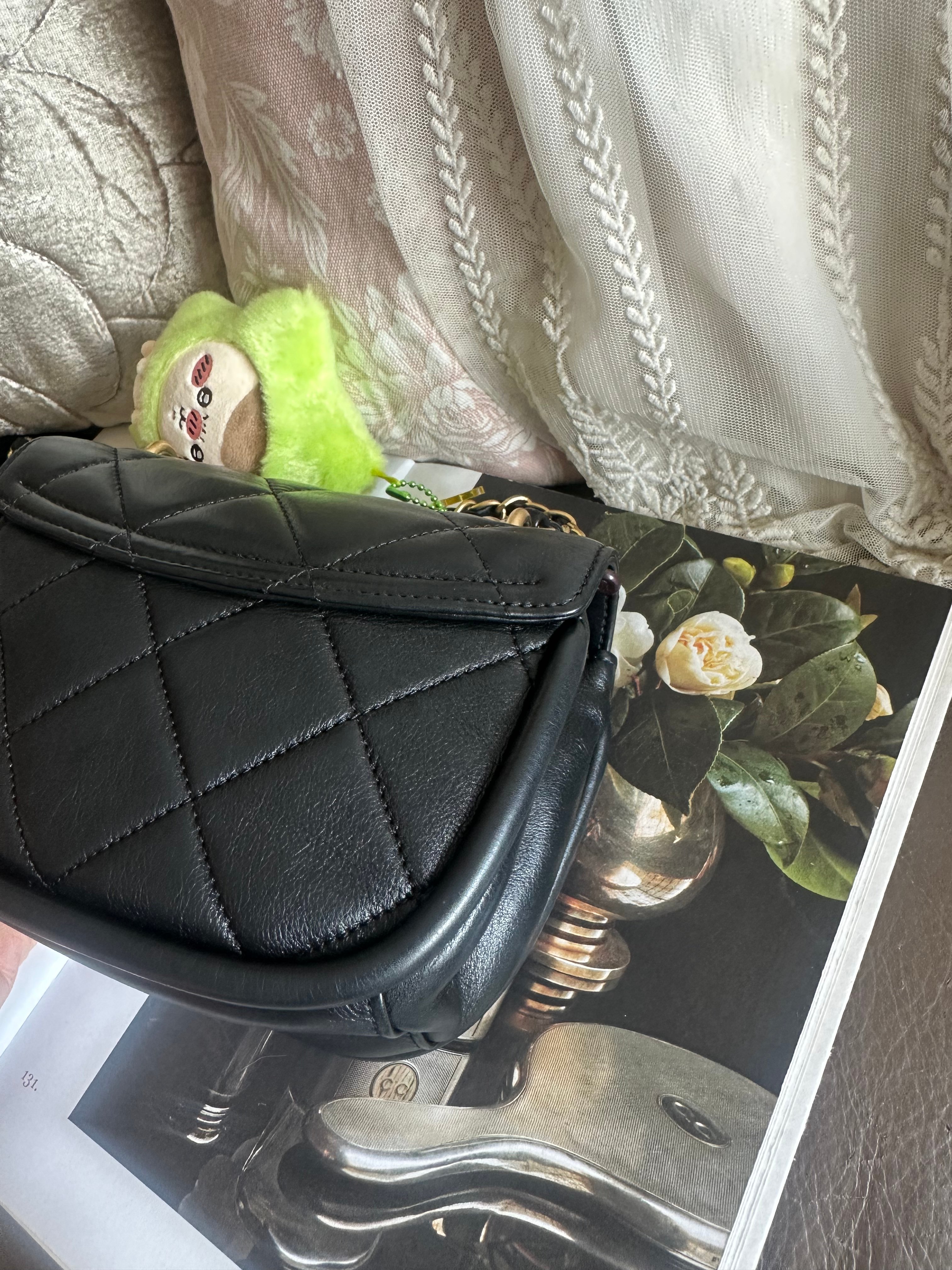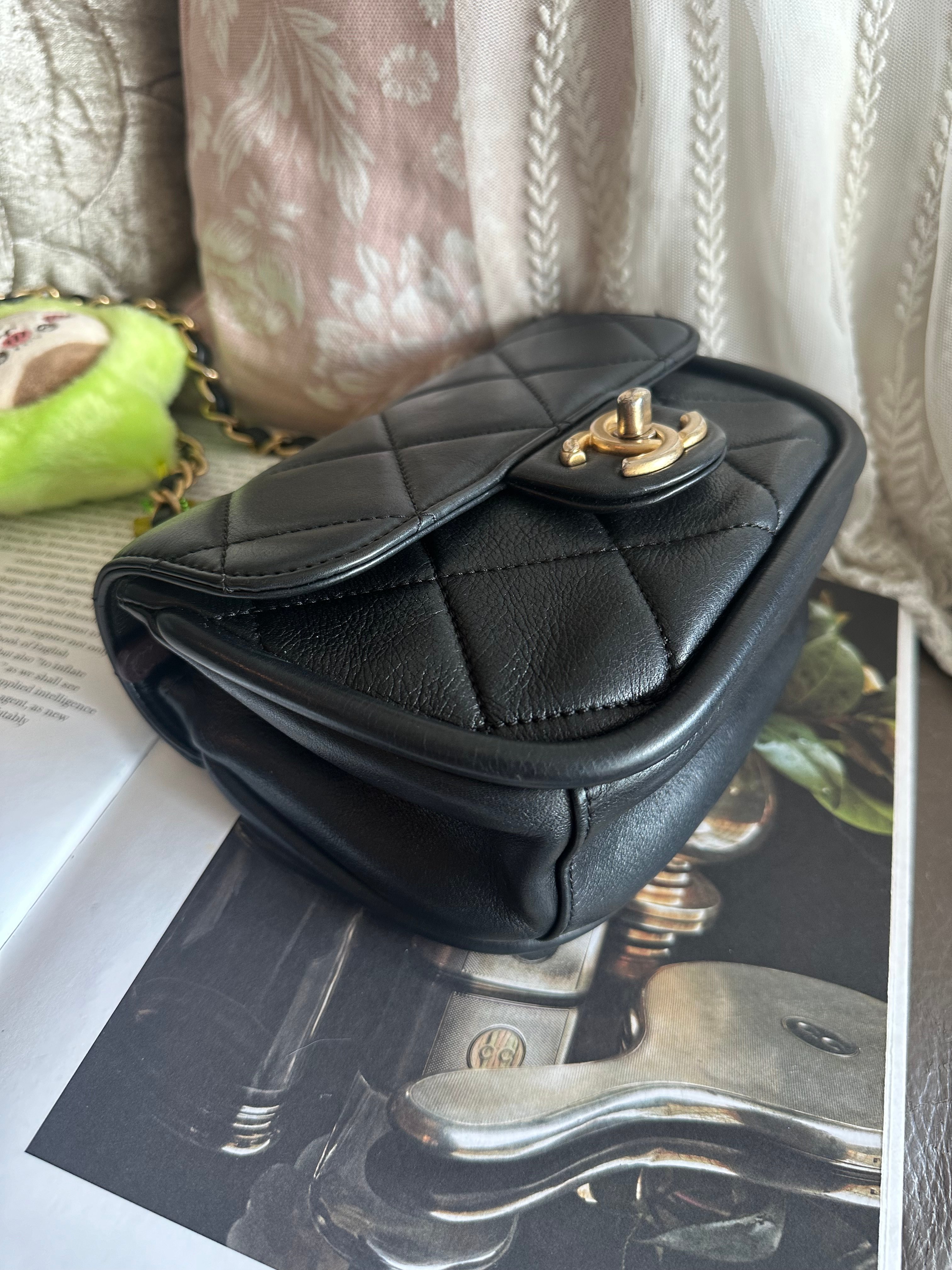 Chanel 黑金 Black Quilted mateless Mini Flap Messenger with Top Chain Handle /mini square / crossbody bag /handbag/bag/chain bag