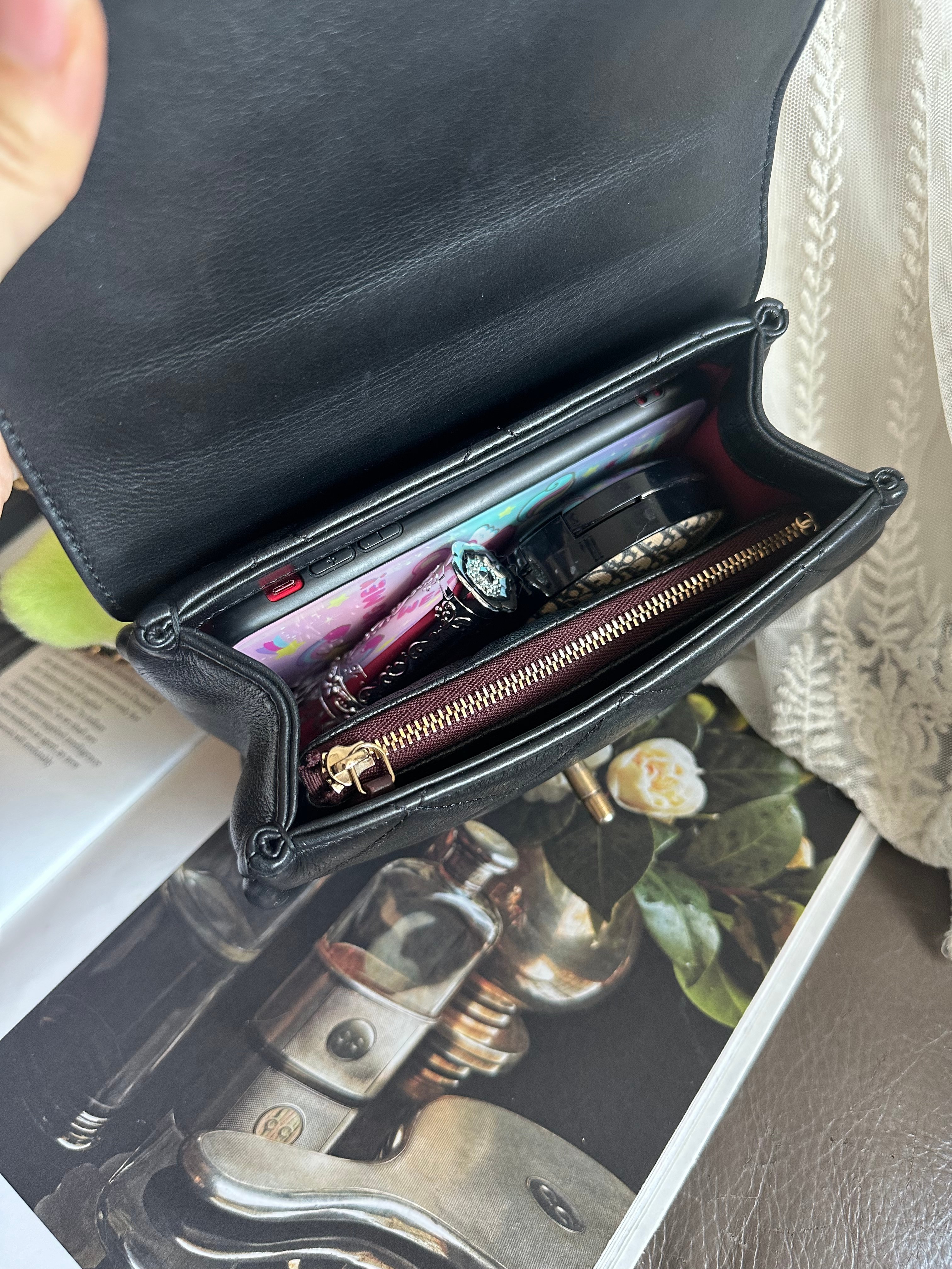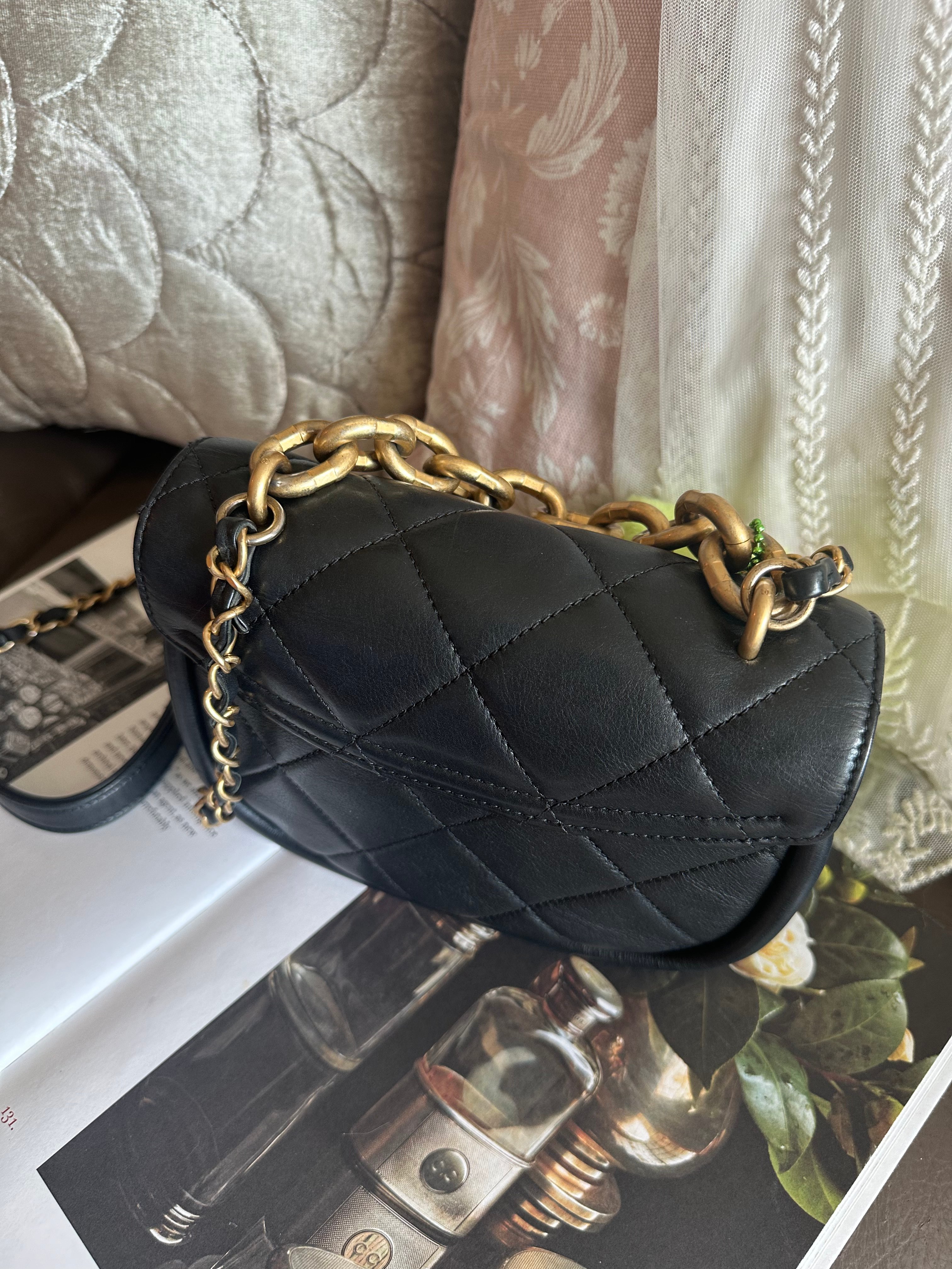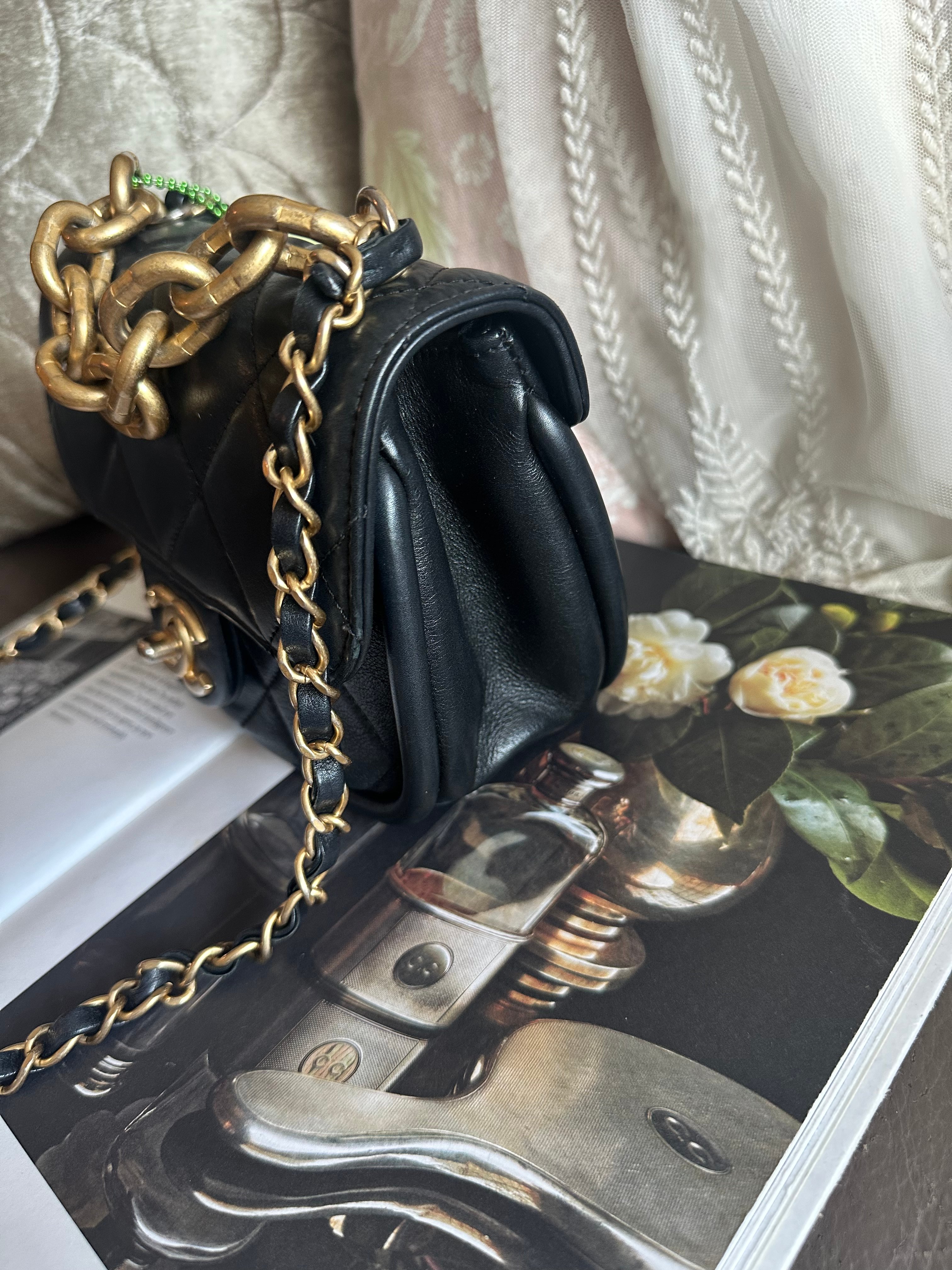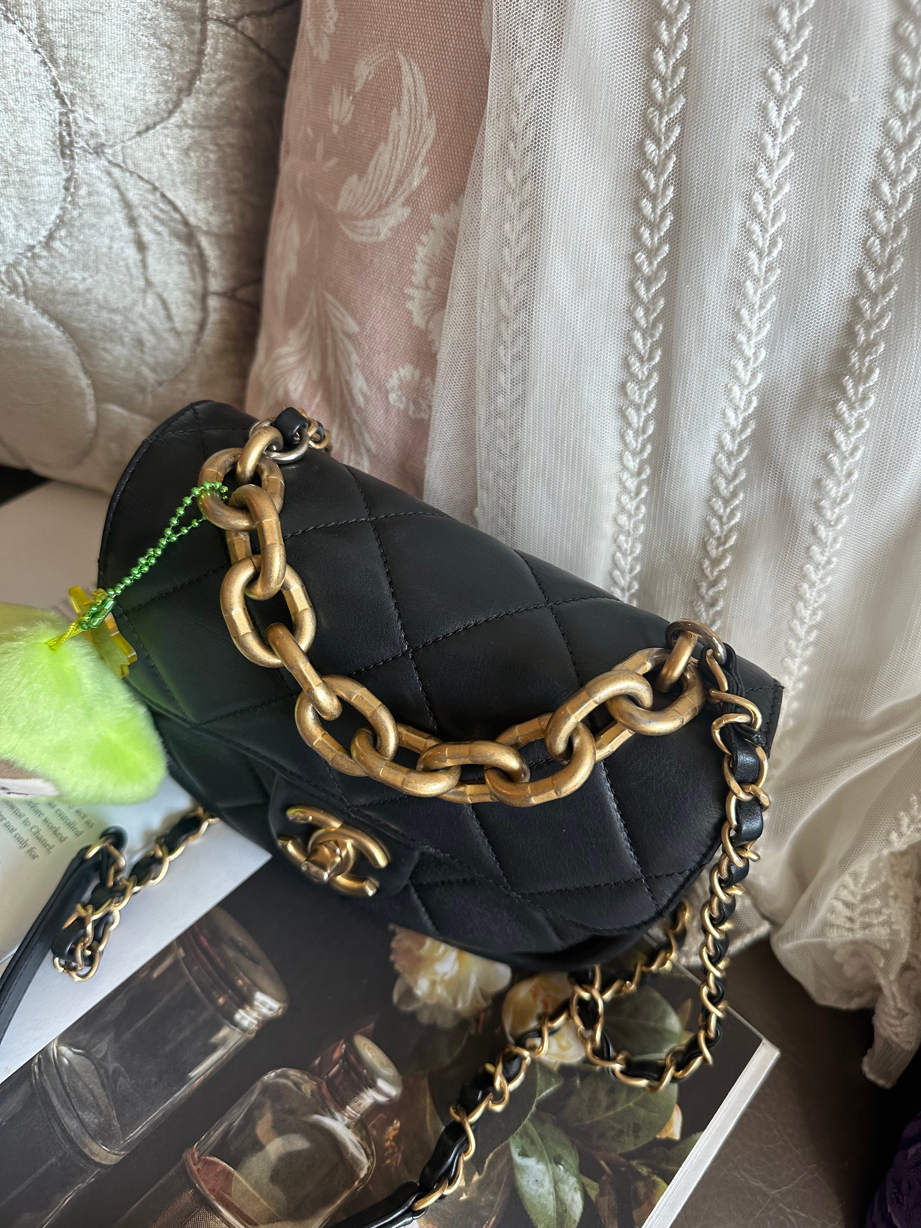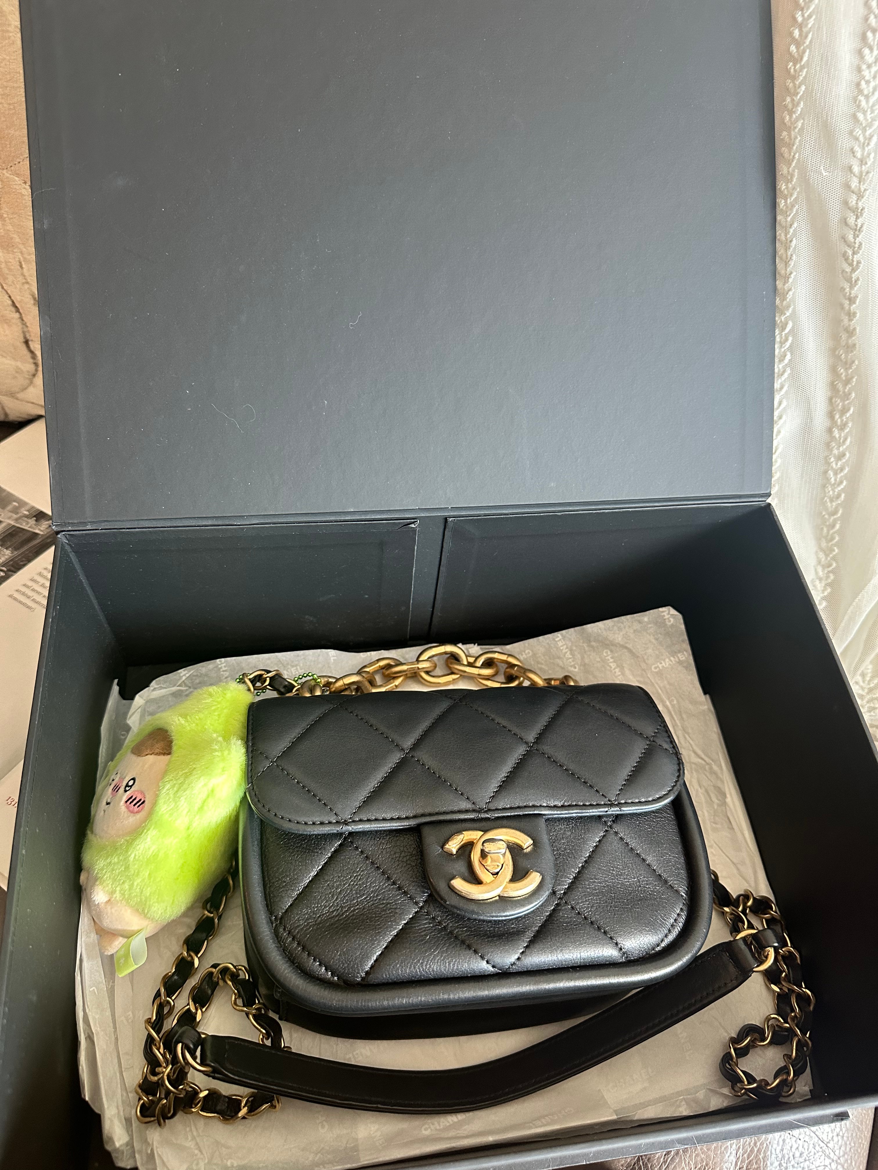 芯片款近代款not vintage Chanel 黑金 Black Quilted mateless Mini Flap Messenger with Top Chain Handle /mini square / crossbody bag /handbag/bag/chain bag 超靚 💓勁新淨 Chain係造舊啞金色⭐️ 連盒/麈袋 可handbag/crossbody 極美品 Chanel Black Quilted mateless Mini Flap Messenger with Top Chain Handle /mini square / crossbody bag /handbag/bag/chain bag Dimensions:19x16x10,cm 配件: 芯片款 /盒/麈袋 不連圖中公仔吊飾 狀態:外觀98新/內98新 年份:2021 Chanel Black Quilted mateless Mini Flap Messenger with Top Chain Handle /mini square / crossbody bag /handbag/bag/chain bag Dimensions:19x16x10,cm Accessories:serial/box/dust bag Toy bag charm in photo not included Year 2021 Condition:excellent 🖤本店為香港零售管理協會會員/門市已開業9年連續多年正版正貨商戶2025編號 001176 付款方法:VISA / MASTER / AE / 銀聯 / UNION PAY /現金 /alipay ❤️門市提供恒生💳渣打💳滙豐💳AE 💳DBS 💳Citibank💳mox 信用卡✅免息分期✅ 📢本店只出售正版貨📢 ❤️歡迎親臨銅鑼灣門市😍 ❤️ 本門市已搬到銅鑼灣記利佐治街2-10號銅鑼灣地帶2樓237號鋪 Shop 237, 2/f, causeway place, 2 great george street, causeway bay