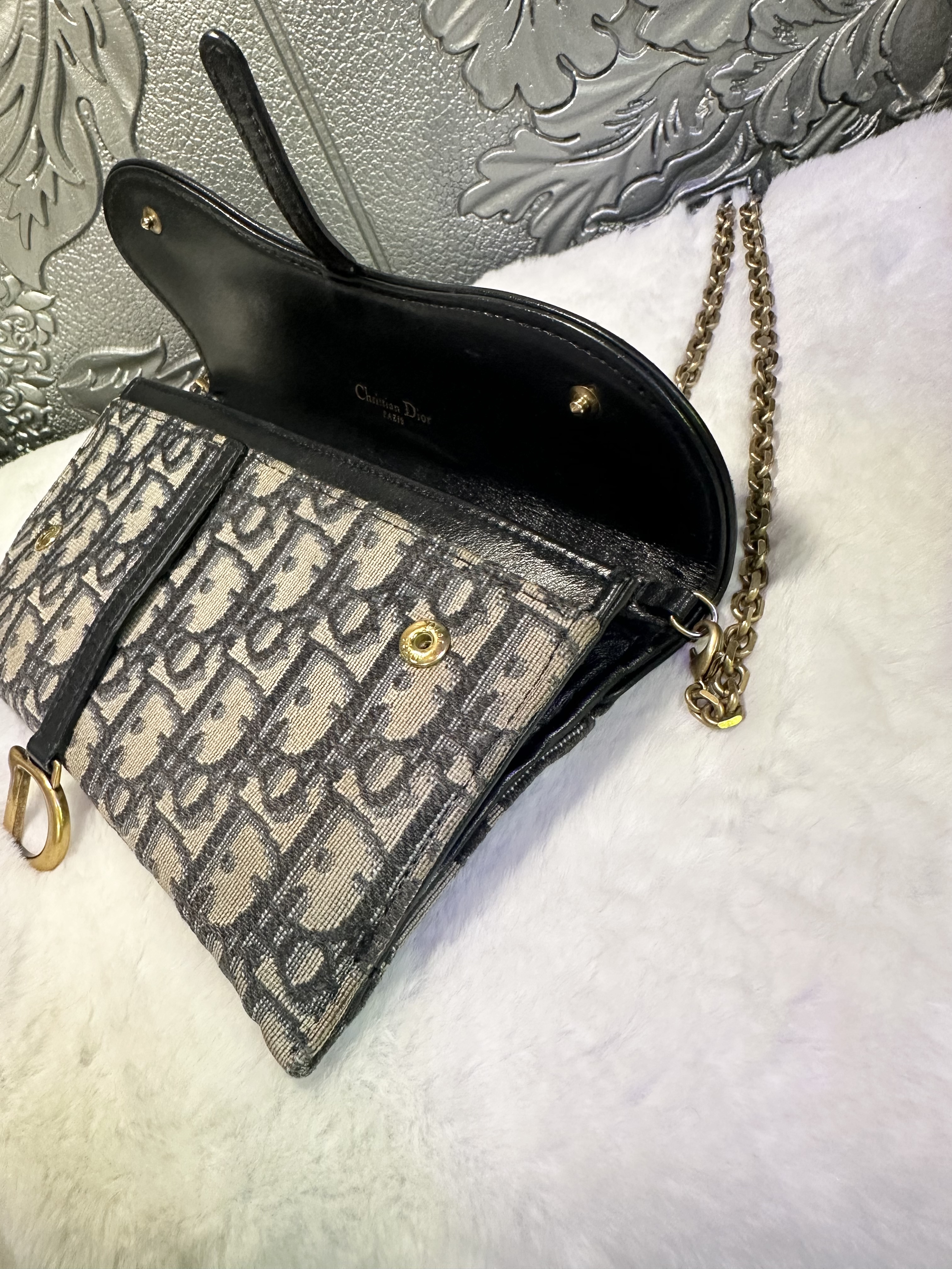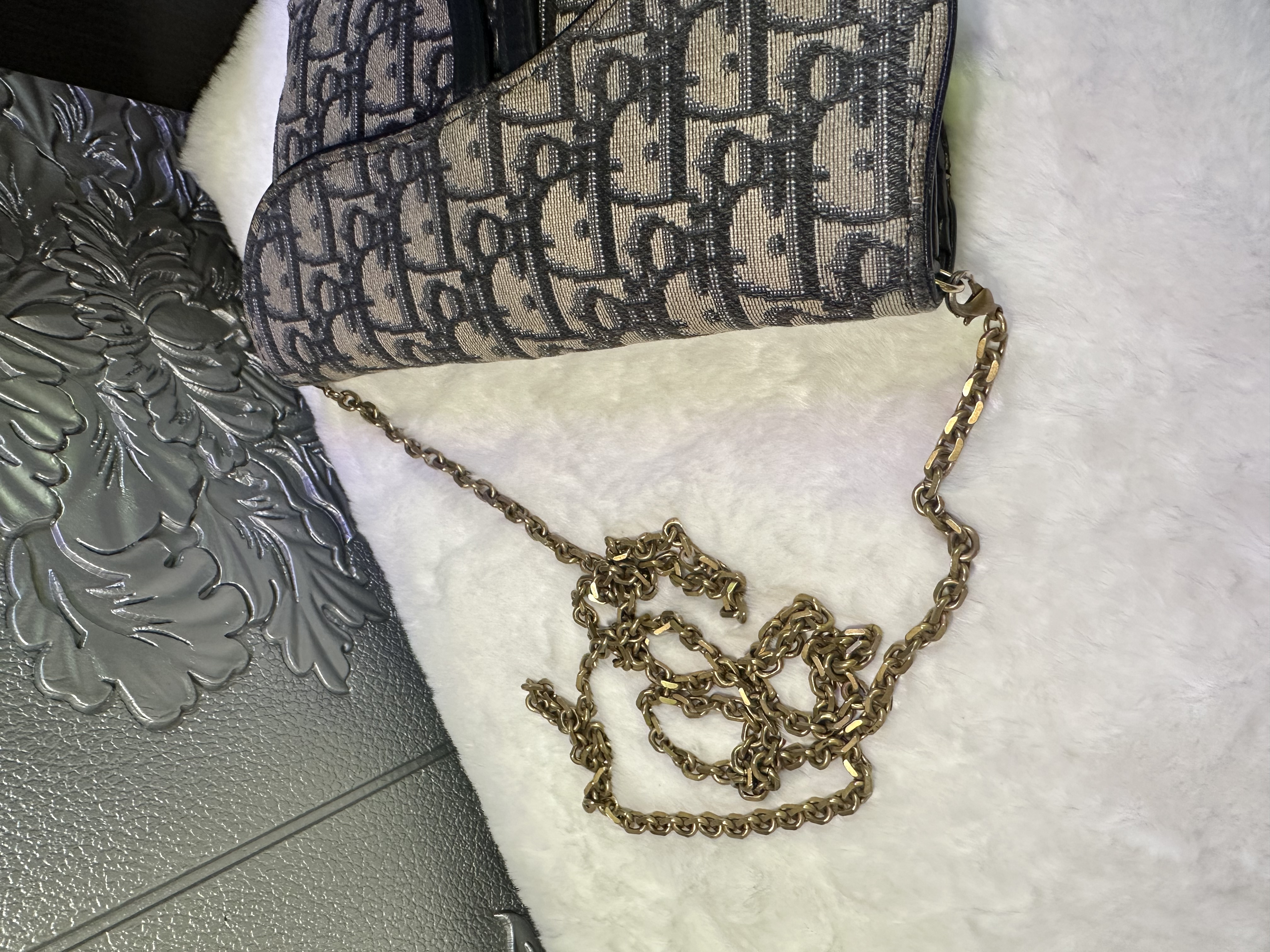 Dior Small Saddle Pouch with Chain Blue Dior Oblique Jacquard