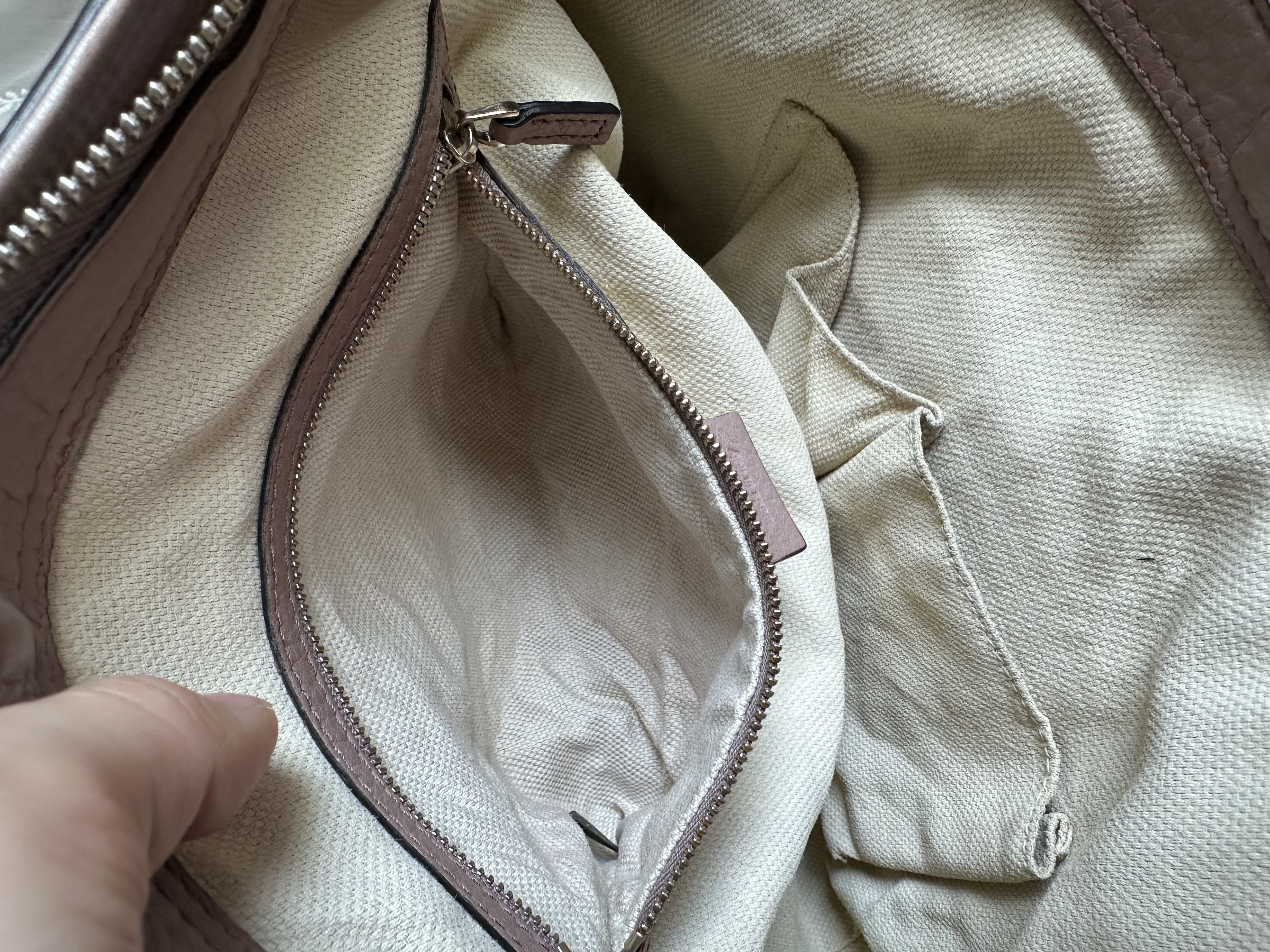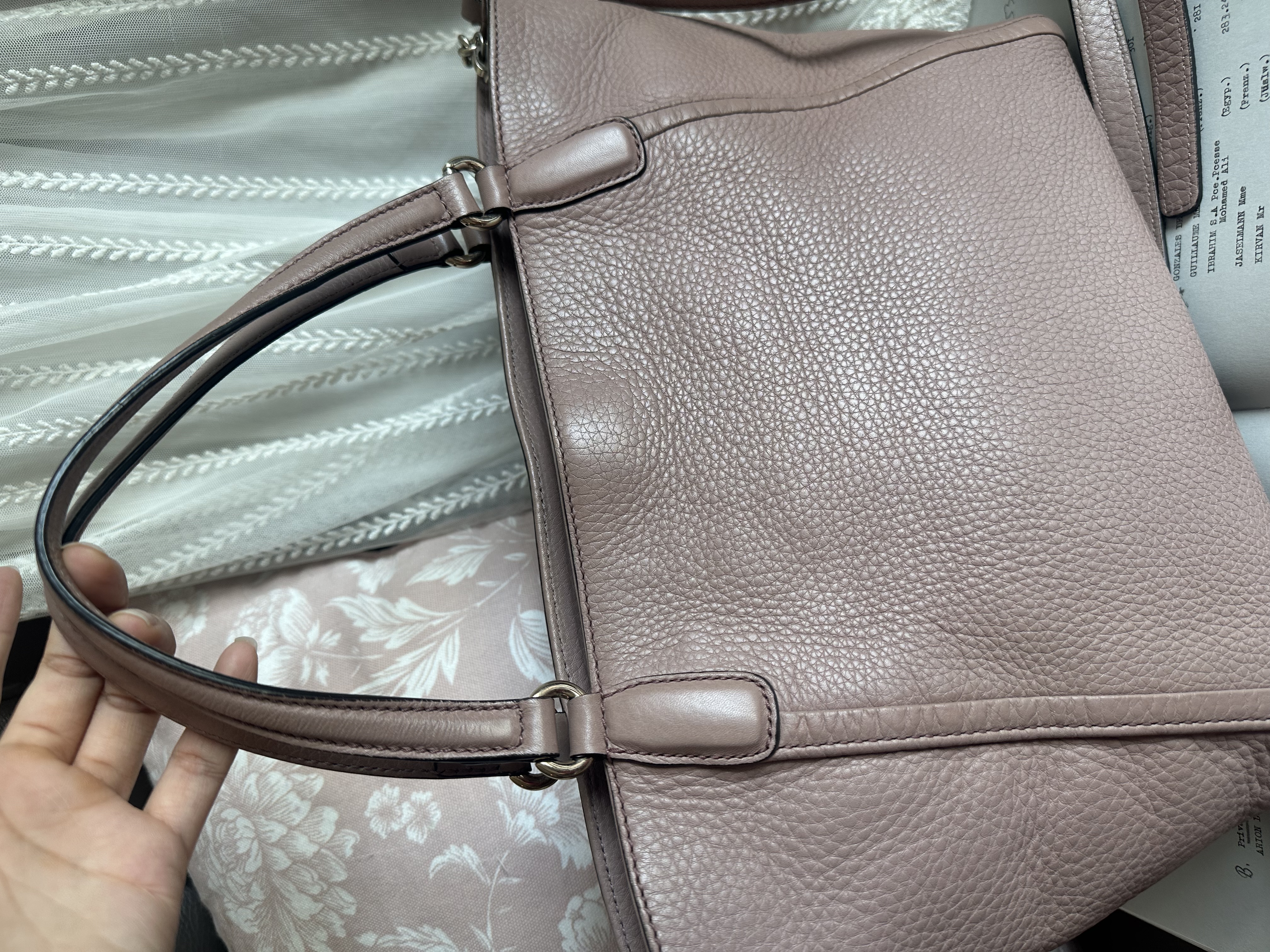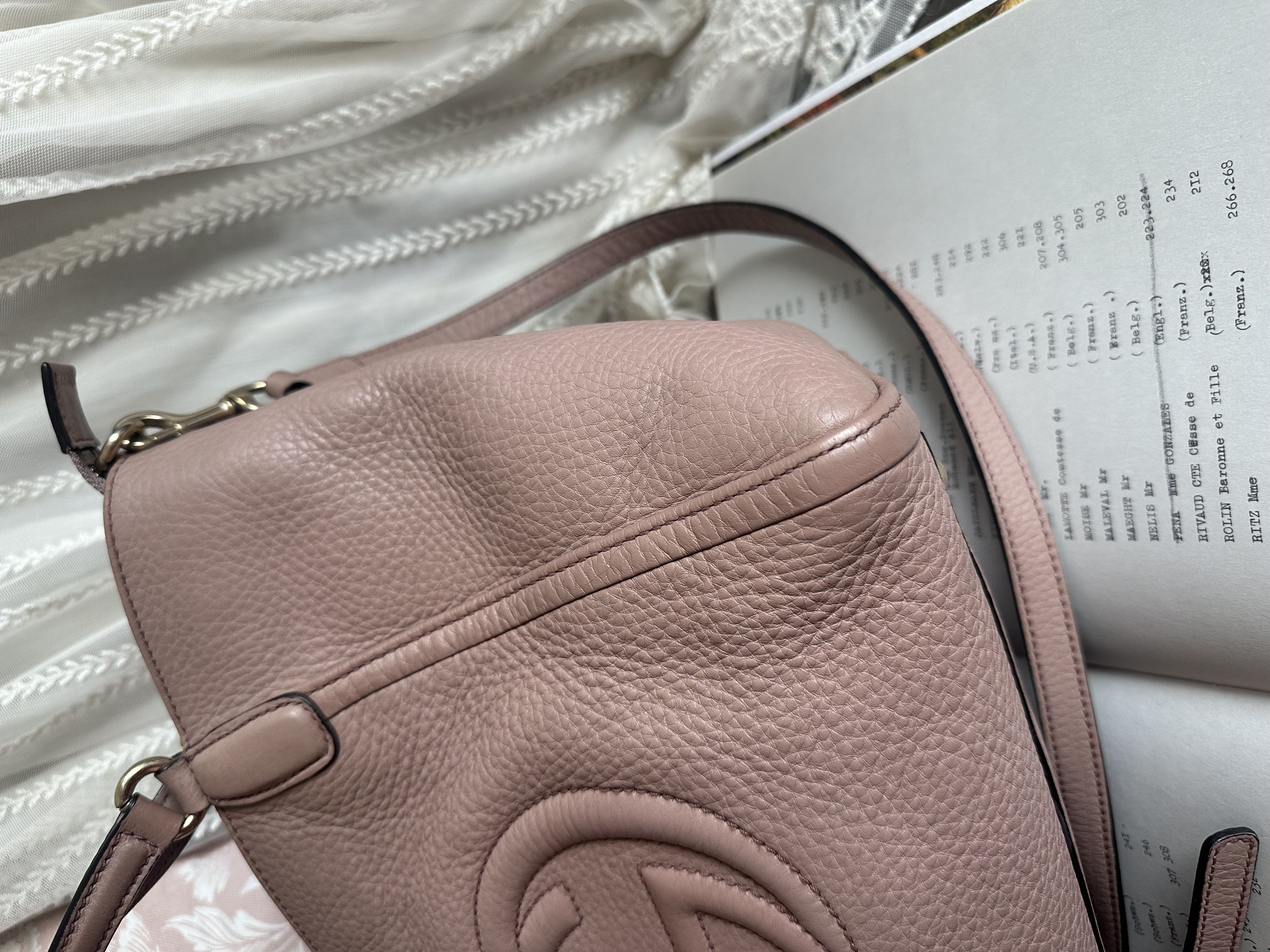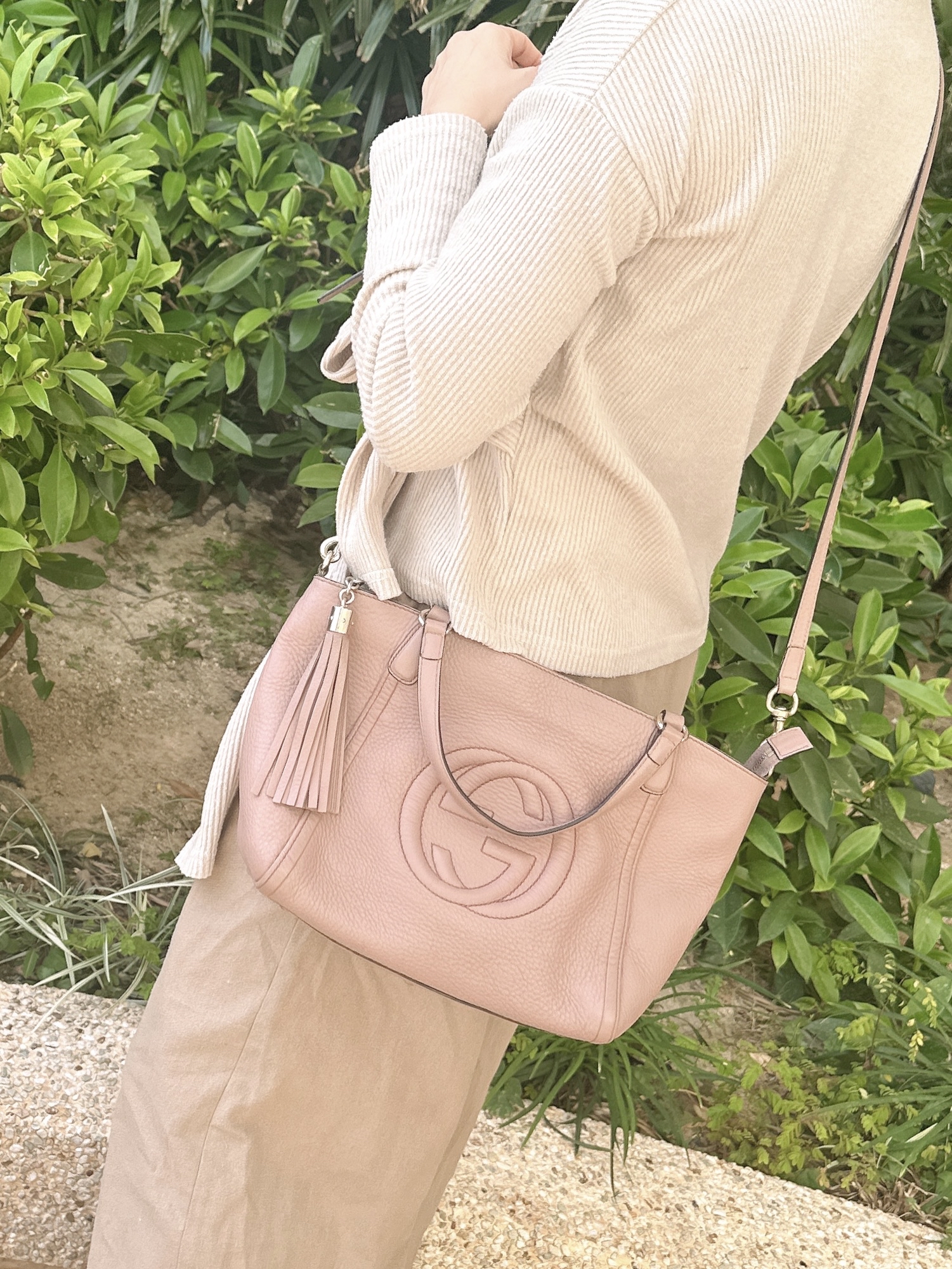 超靚櫻花粉Gucci Pink Soho Cellarius tassel tote bag 可上膊/crossbody💓🌸 非常新淨 Gucci Pink Soho Cellarius tassel tote bag 狀態:袋外93新/袋內93新 配件:原裝長帶 Dimensions:26x21x13cm 🖤本店為香港零售管理協會會員/門市已開業9年連續多年正版正貨商戶2025編號 001176 付款方法:VISA / MASTER / AE / 銀聯 / UNION PAY /現金 /alipay ❤️門市提供恒生💳渣打💳滙豐💳AE 💳DBS 💳Citibank💳mox 信用卡✅免息分期✅ 📢本店只出售正版貨📢 ❤️歡迎親臨銅鑼灣門市😍 ❤️ 本門市已搬到銅鑼灣記利佐治街2-10號銅鑼灣地帶2樓237號鋪 Shop 237, 2/f, causeway place, 2 great george street, causeway bay