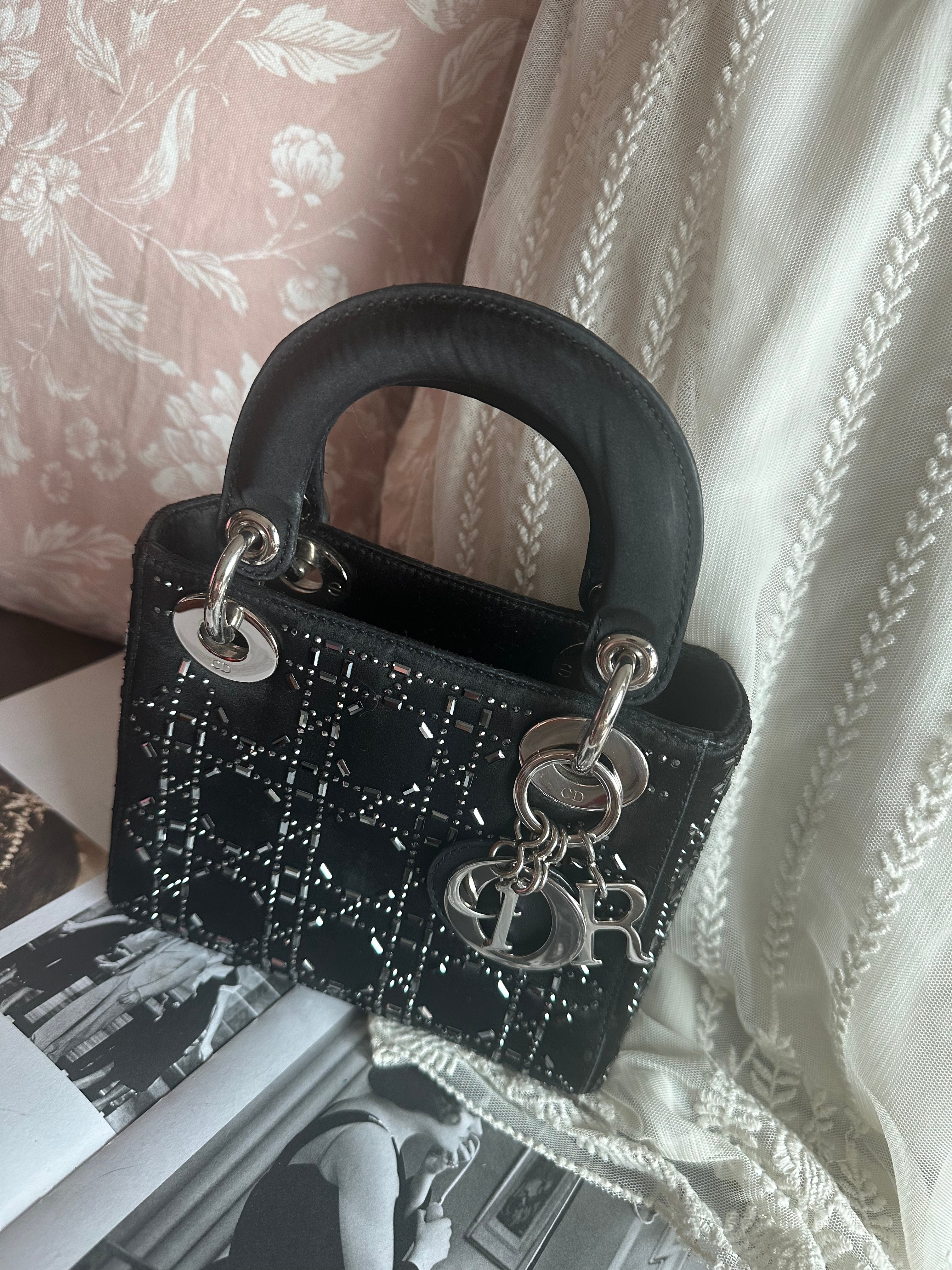 靚到喊勁閃黑色絲lady dior silk mini lady dior 17cm 實物閃到癲 ⭐️⭐️✨網頁有短片可以睇💓 背面同底部有輕微使用痕跡正面超級新淨 個袋太閃嘅關係社交距離完全睇唔到瑕疵位 原價42000 Now 10800 only 呢個價錢全港最平🔥價錢包括可以☑️網頁下載xpay免息分三期 ☑️門市12個月或六個月免息分期 恒生渣打滙豐AE DBS Citibank Mox 信用卡 Mini Lady Dior Bag Black Strass Cannage Satin 尺寸: 17 x 15 x 7 cm 配件:沒有 沒品牌長帶一條 狀態:袋外正面90新/背面88新 袋內95新 Mini Lady Dior Bag Black Strass Cannage Satin Dimensions : 17 x 15 x 7 cm Accessories :none Non branded strap Dimensions:excellent just some sign of use at the back and bottom but not noticeable Inside excellent 🖤本店為香港零售管理協會會員/門市已開業9年連續多年正版正貨商戶2025編號 001176 付款方法:VISA / MASTER / AE / 銀聯 / UNION PAY /現金 /alipay ❤️門市提供恒生💳渣打💳滙豐💳AE 💳DBS 💳Citibank💳mox 💳信用卡✅免息分期✅ 📢本店只出售正版貨📢 ❤️歡迎親臨銅鑼灣門市😍 ❤️ 本門市已搬到銅鑼灣記利佐治街2-10號銅鑼灣地帶2樓237號鋪 Shop 237, 2/f, causeway place, 2 great george street, causeway bay 📞WhatsApp 65230308