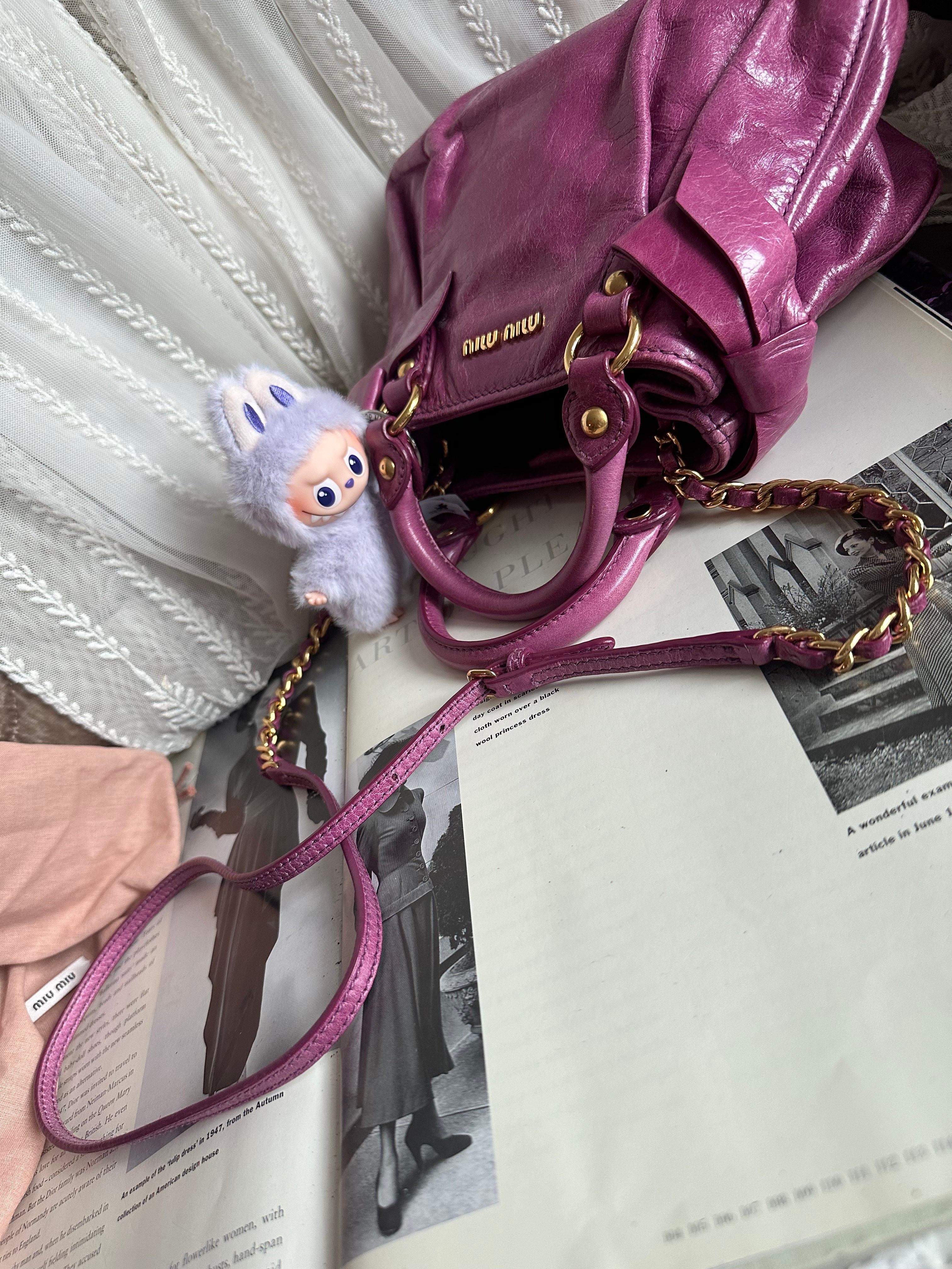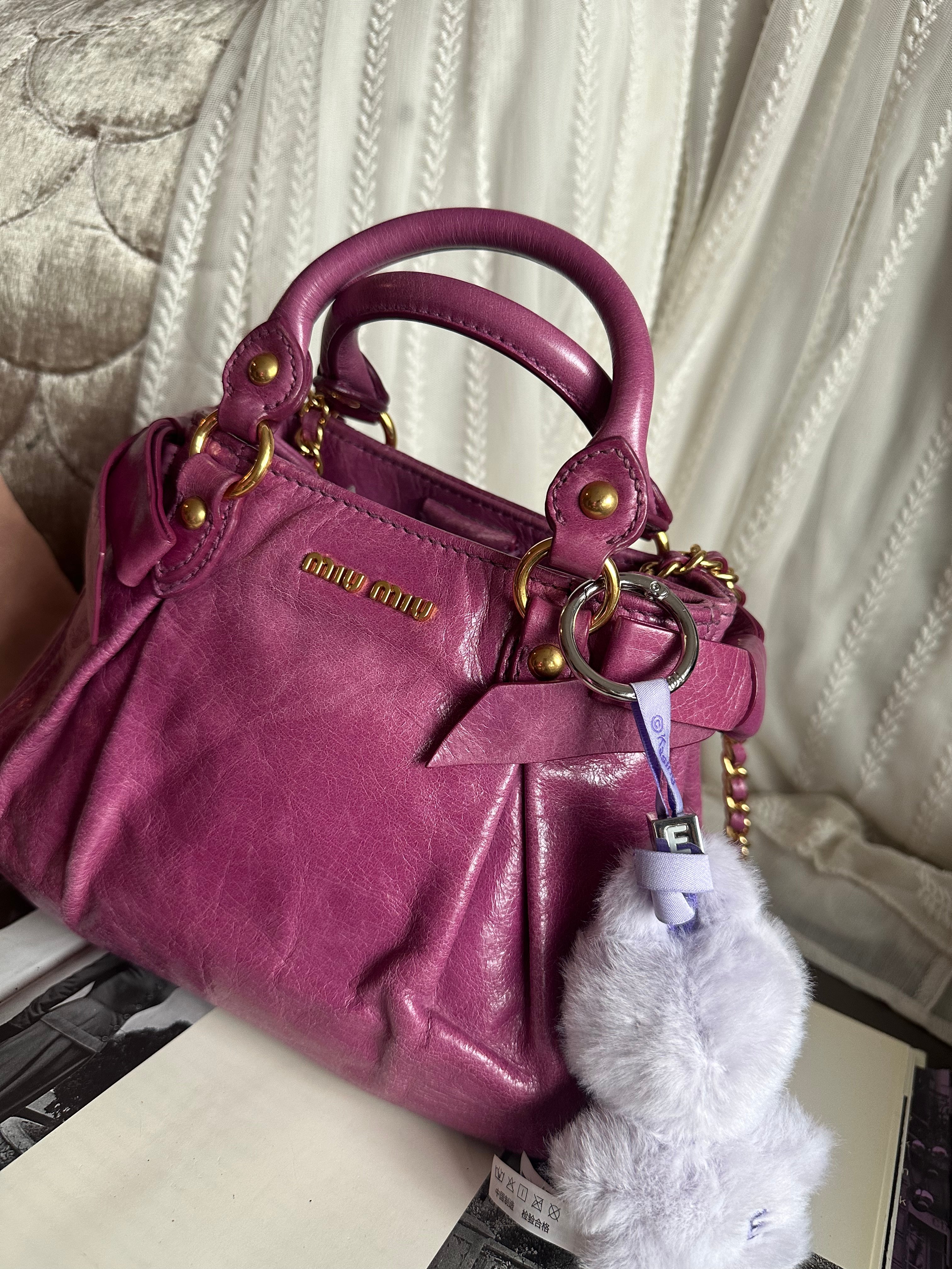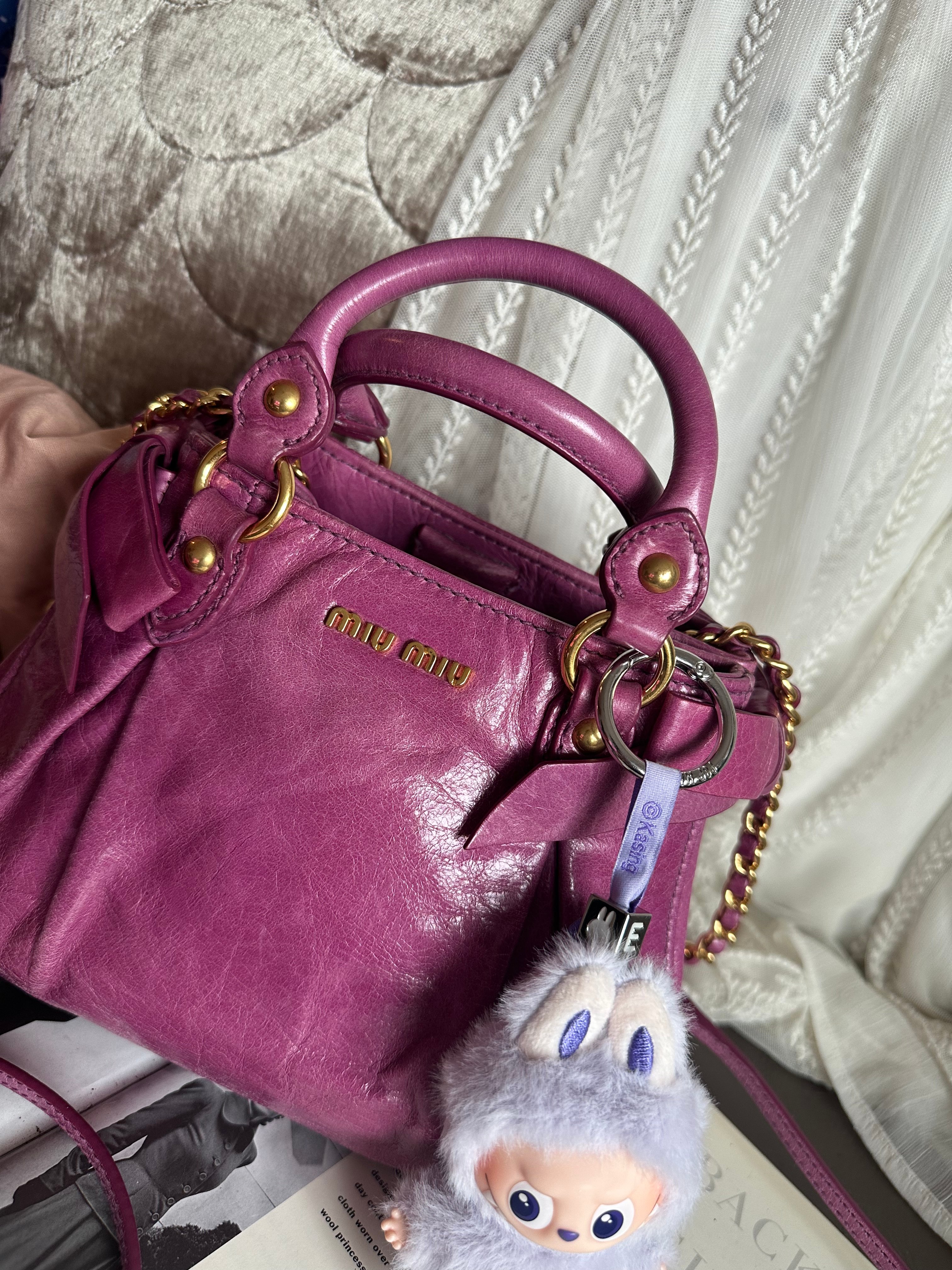 經典super cute 💜超y2k miu miu bow bag 玫瑰粉紅色 油立皮超Y2K 勁可愛真係🎀連麈袋 Miu miu pink mini bow bag 尺寸:23x16x10cm 配件:麈袋 不連圖中公仔吊飾 狀態:外觀95新/內95新 Miu miu pink mini bow bag Dimensions:23x16x10 cm Accessories :dust bag Bag charm in photo not included Condition:excellent 🖤本店為香港零售管理協會會員/門市已開業9年連續多年正版正貨商戶2025編號 001176 付款方法:VISA / MASTER / AE / 銀聯 / UNION PAY /現金 /alipay ❤️門市提供恒生💳渣打💳滙豐💳AE 💳DBS 💳Citibank💳mox 信用卡✅免息分期✅ 📢本店只出售正版貨📢 ❤️歡迎親臨銅鑼灣門市😍 ❤️ 本門市已搬到銅鑼灣記利佐治街2-10號銅鑼灣地帶2樓237號鋪 Shop 237, 2/f, causeway place, 2 great george street, causeway bay
