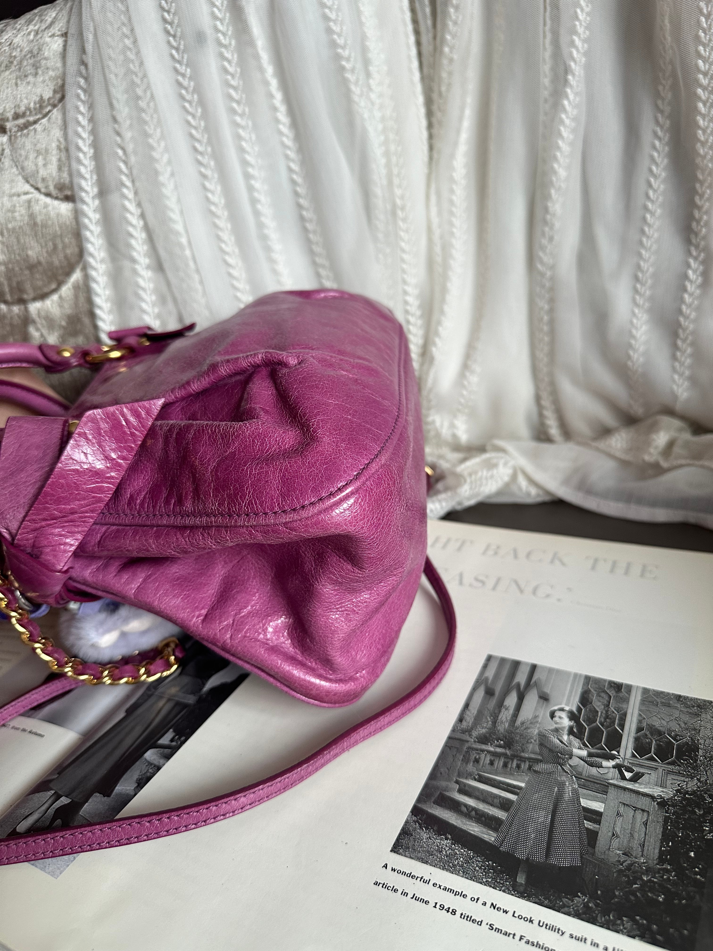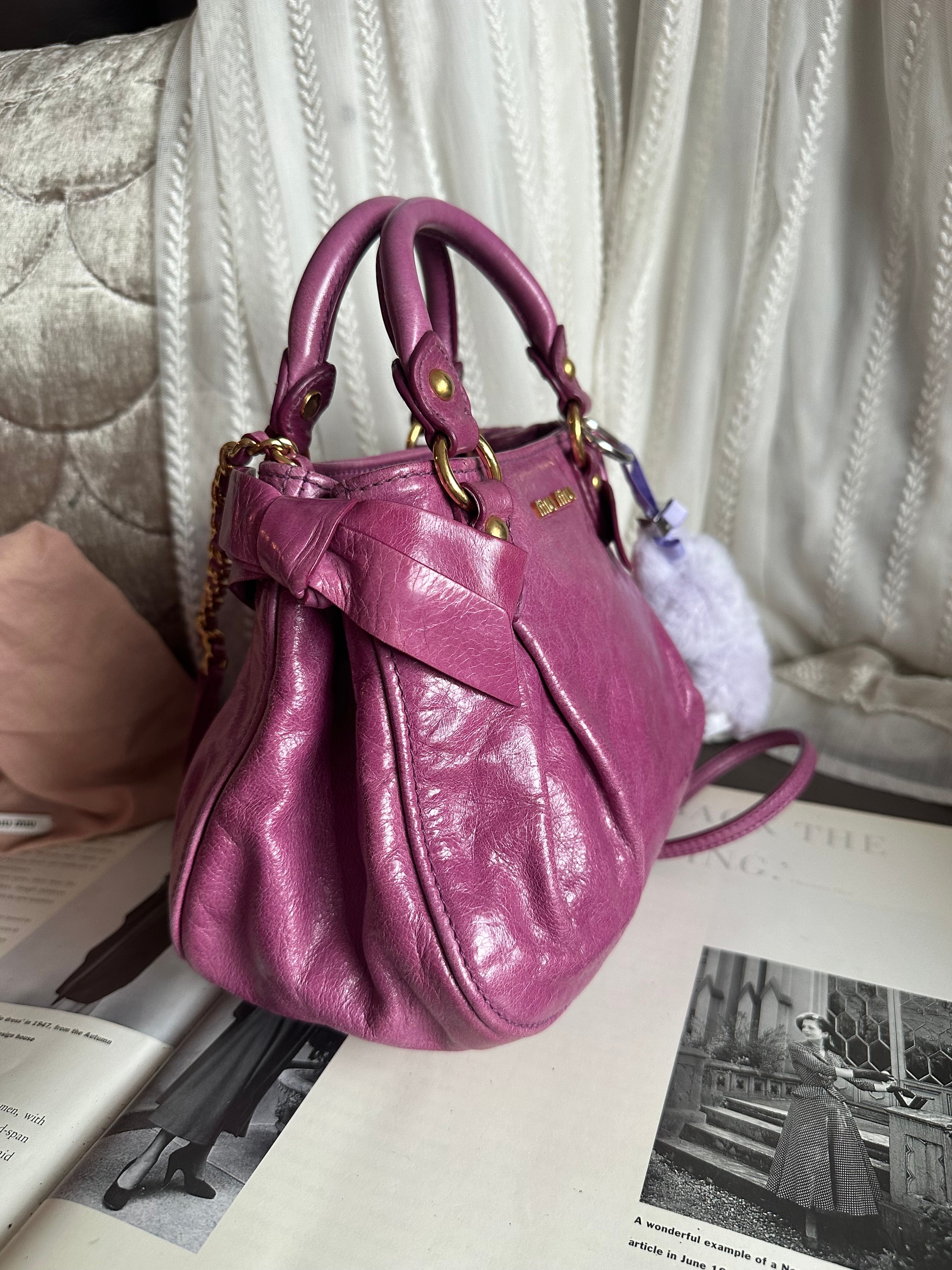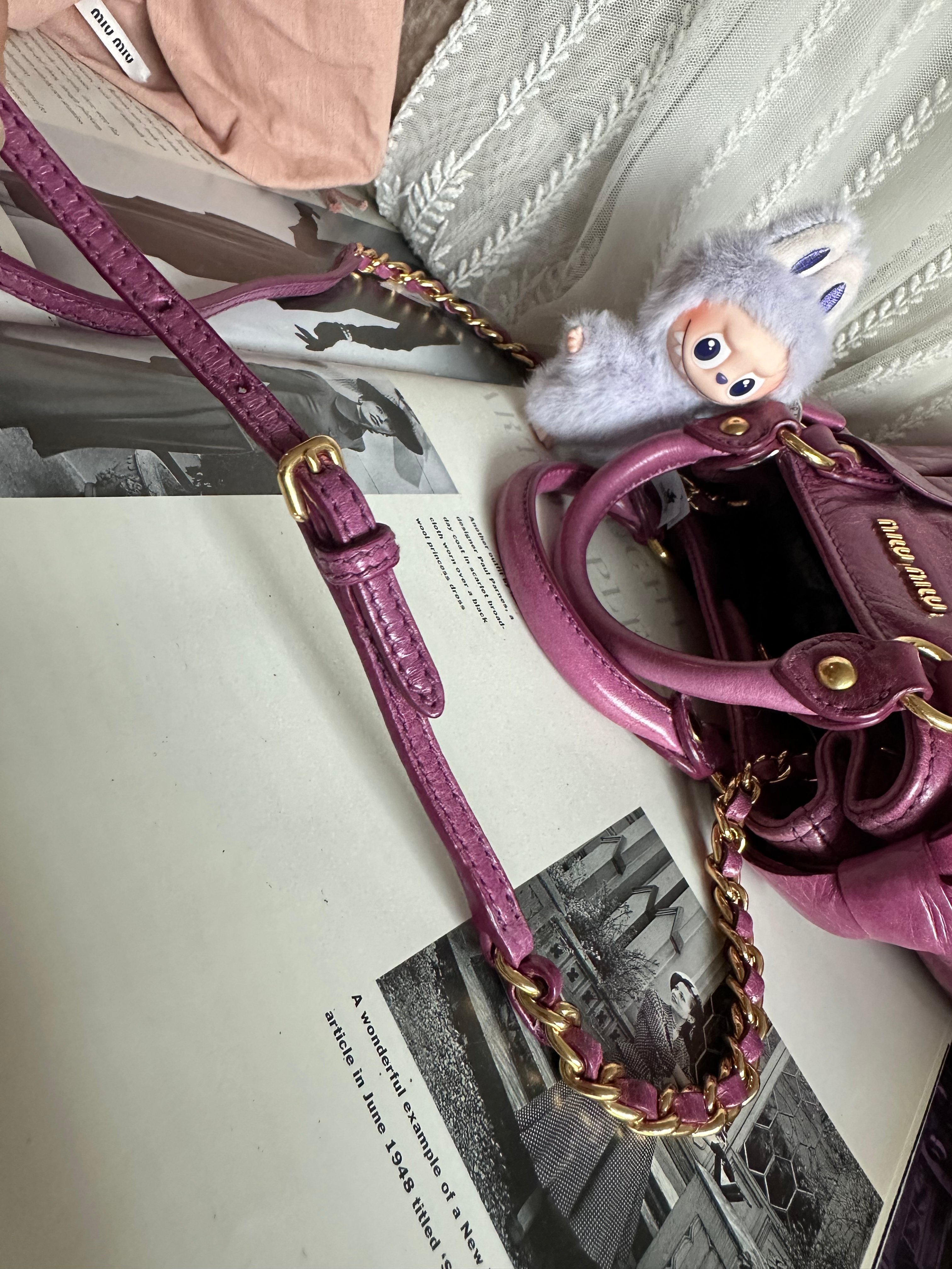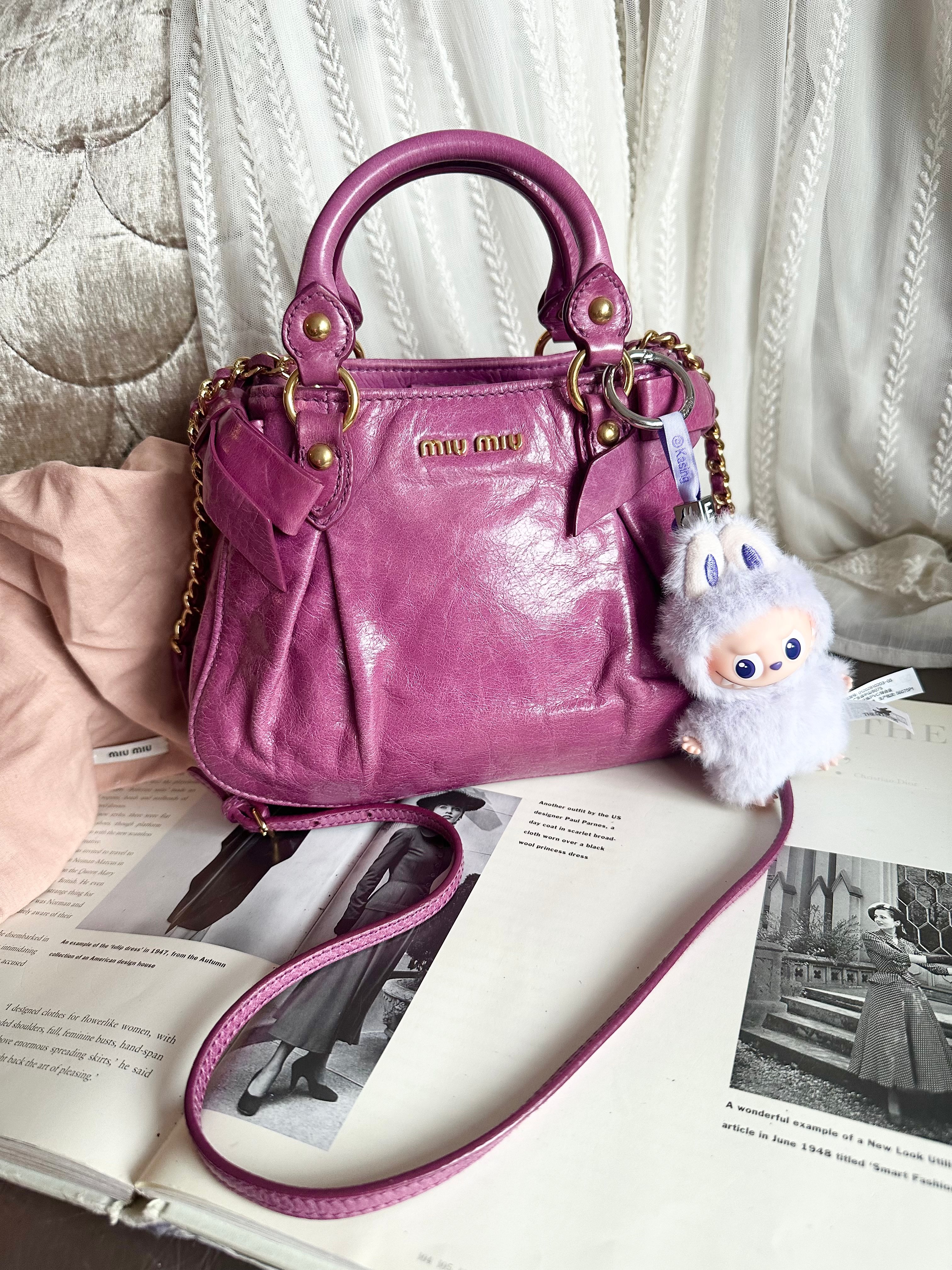 經典super cute 💜超y2k miu miu bow bag 玫瑰粉紅色 油立皮超Y2K 勁可愛真係🎀連麈袋 Miu miu pink mini bow bag 尺寸:23x16x10cm 配件:麈袋 不連圖中公仔吊飾 狀態:外觀95新/內95新 Miu miu pink mini bow bag Dimensions:23x16x10 cm Accessories :dust bag Bag charm in photo not included Condition:excellent 🖤本店為香港零售管理協會會員/門市已開業9年連續多年正版正貨商戶2025編號 001176 付款方法:VISA / MASTER / AE / 銀聯 / UNION PAY /現金 /alipay ❤️門市提供恒生💳渣打💳滙豐💳AE 💳DBS 💳Citibank💳mox 信用卡✅免息分期✅ 📢本店只出售正版貨📢 ❤️歡迎親臨銅鑼灣門市😍 ❤️ 本門市已搬到銅鑼灣記利佐治街2-10號銅鑼灣地帶2樓237號鋪 Shop 237, 2/f, causeway place, 2 great george street, causeway bay