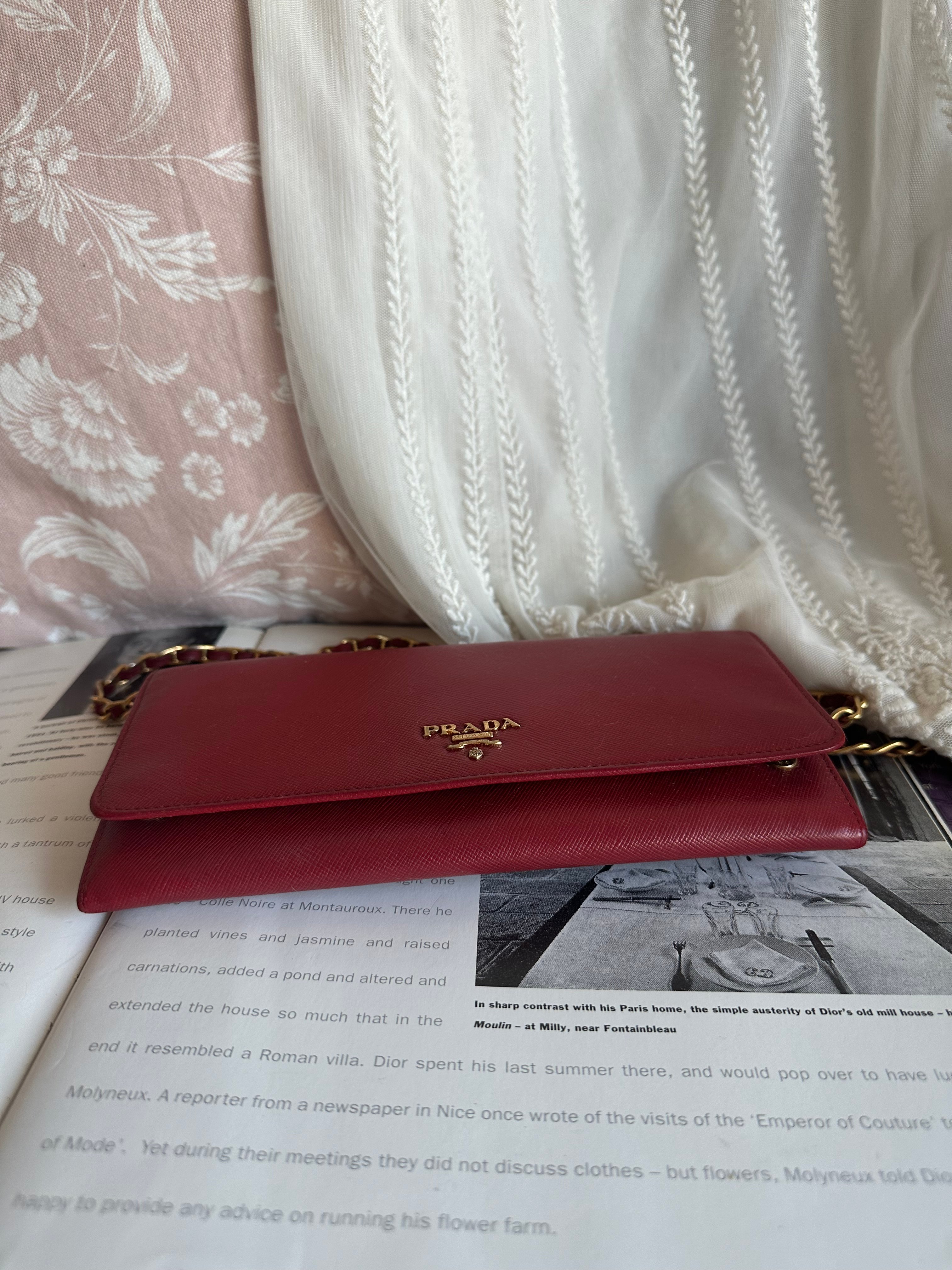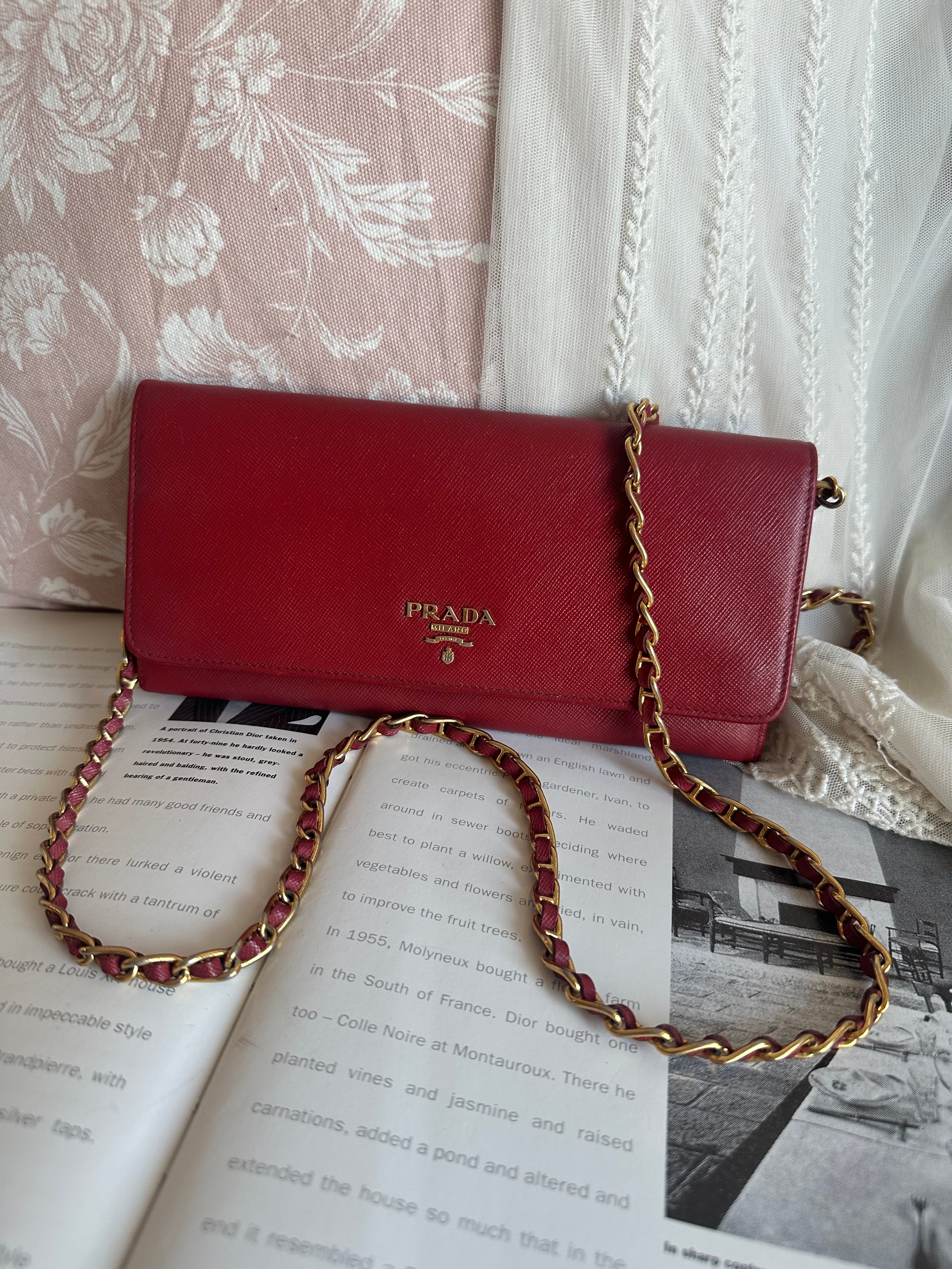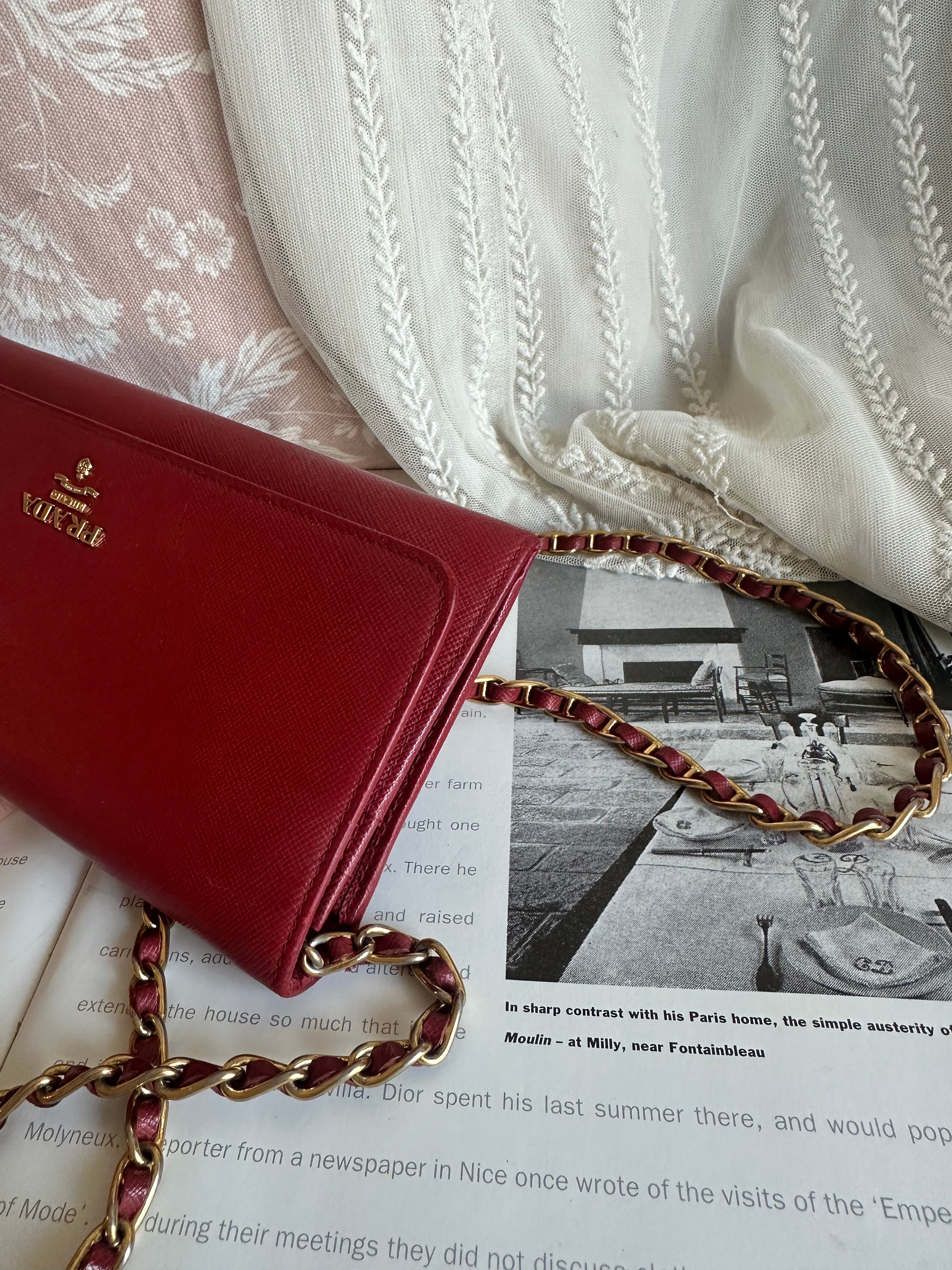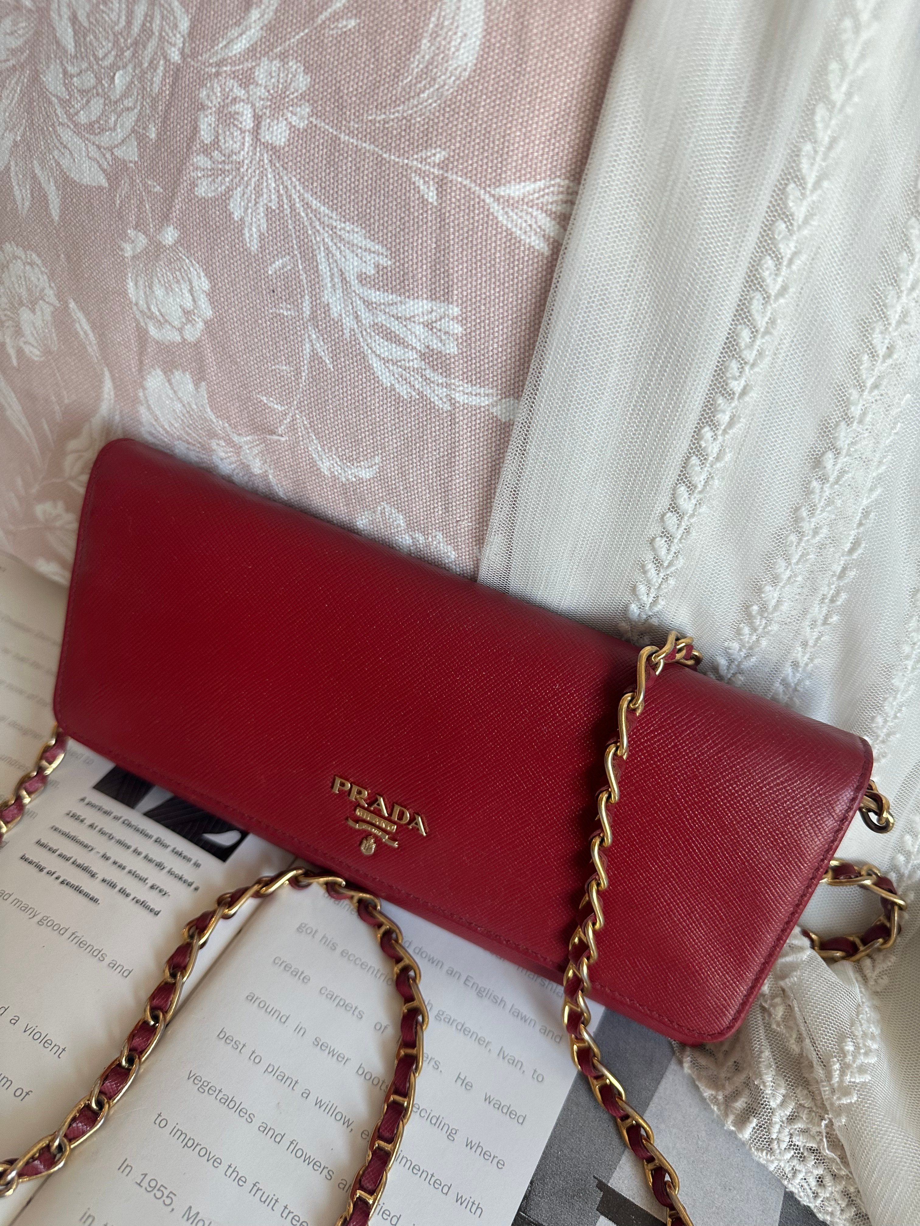 Prada red Saffiano Leather 🧧wallet on chain