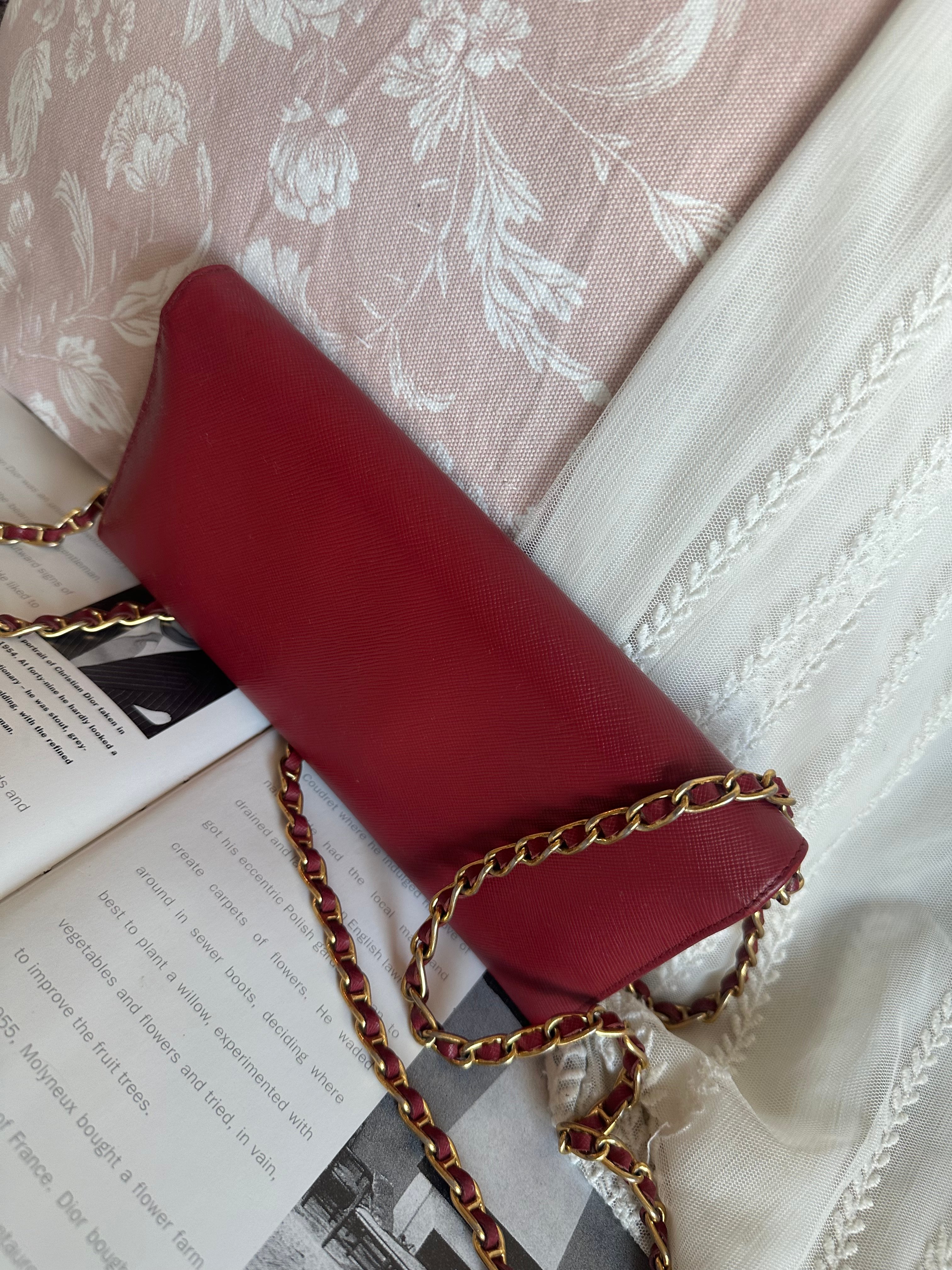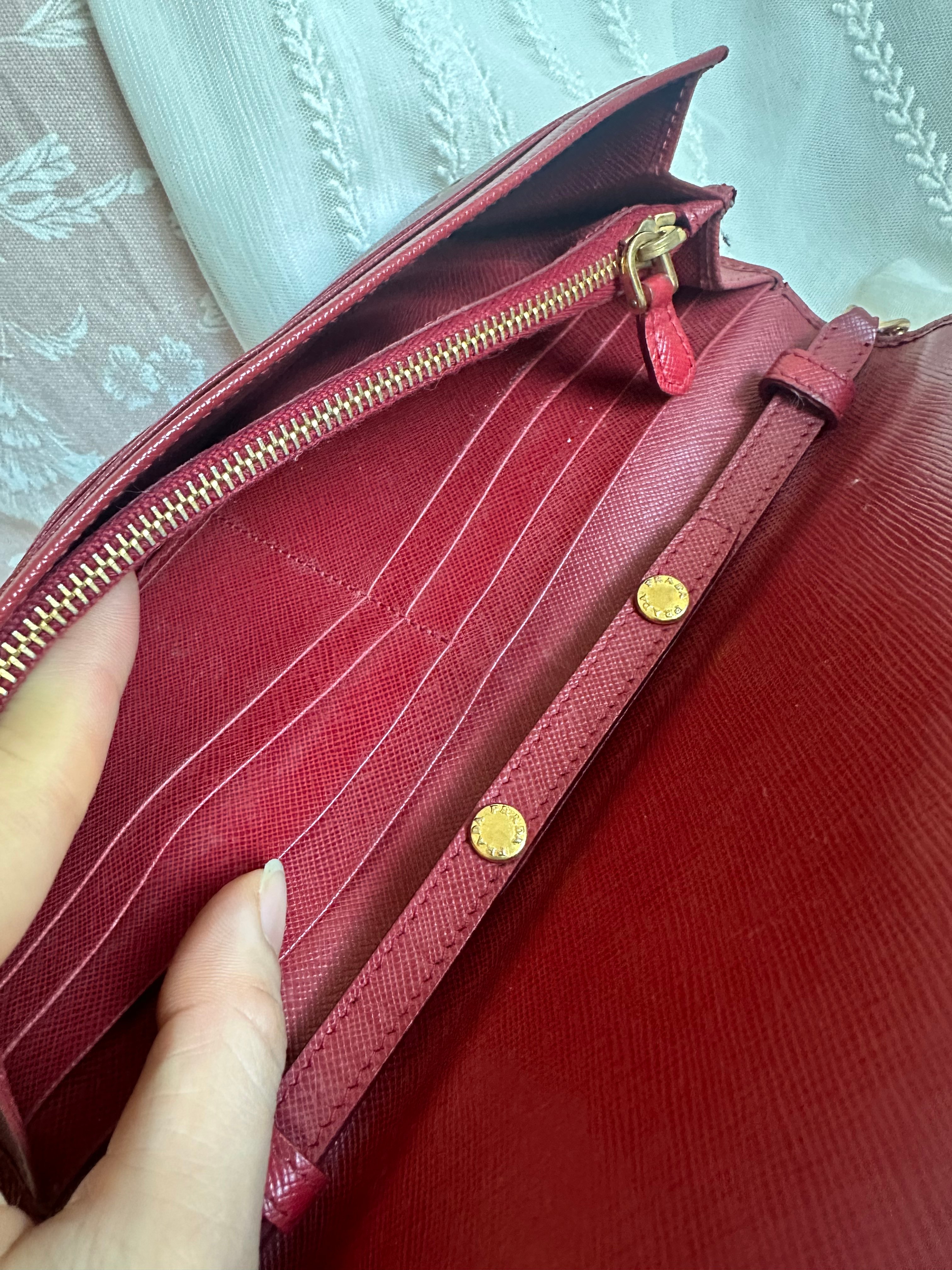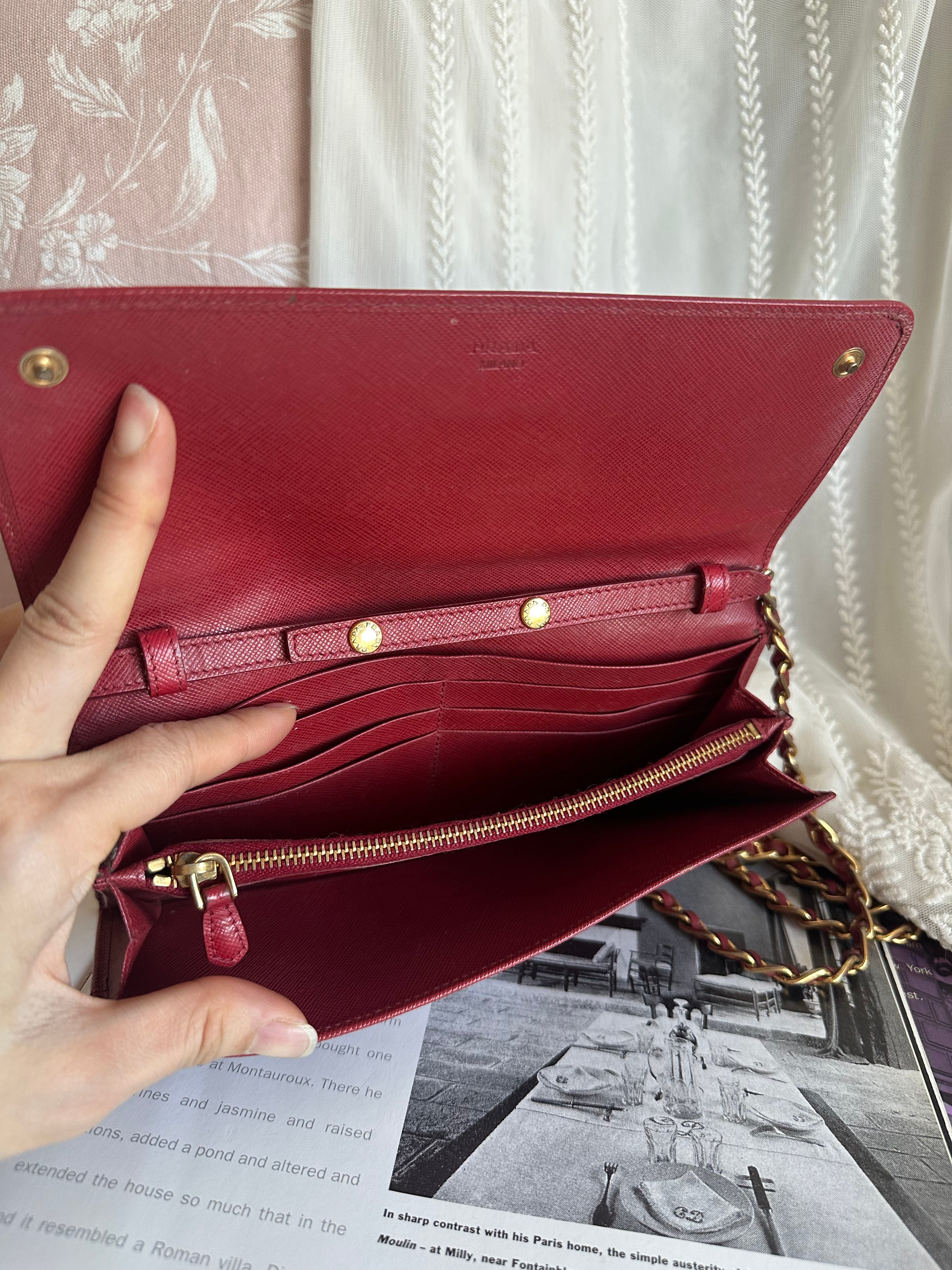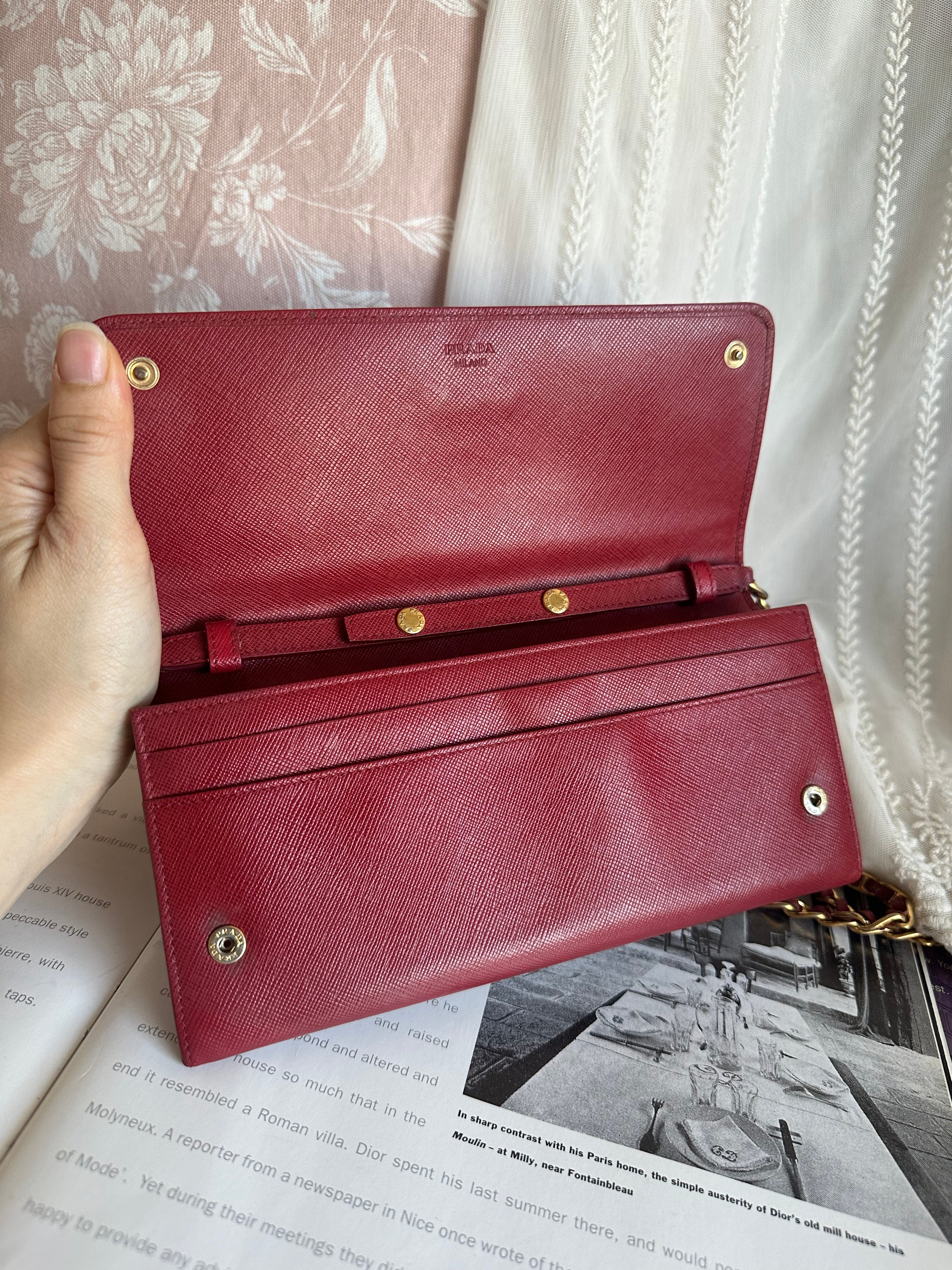 Prada red Saffiano Leather 🧧wallet on chain