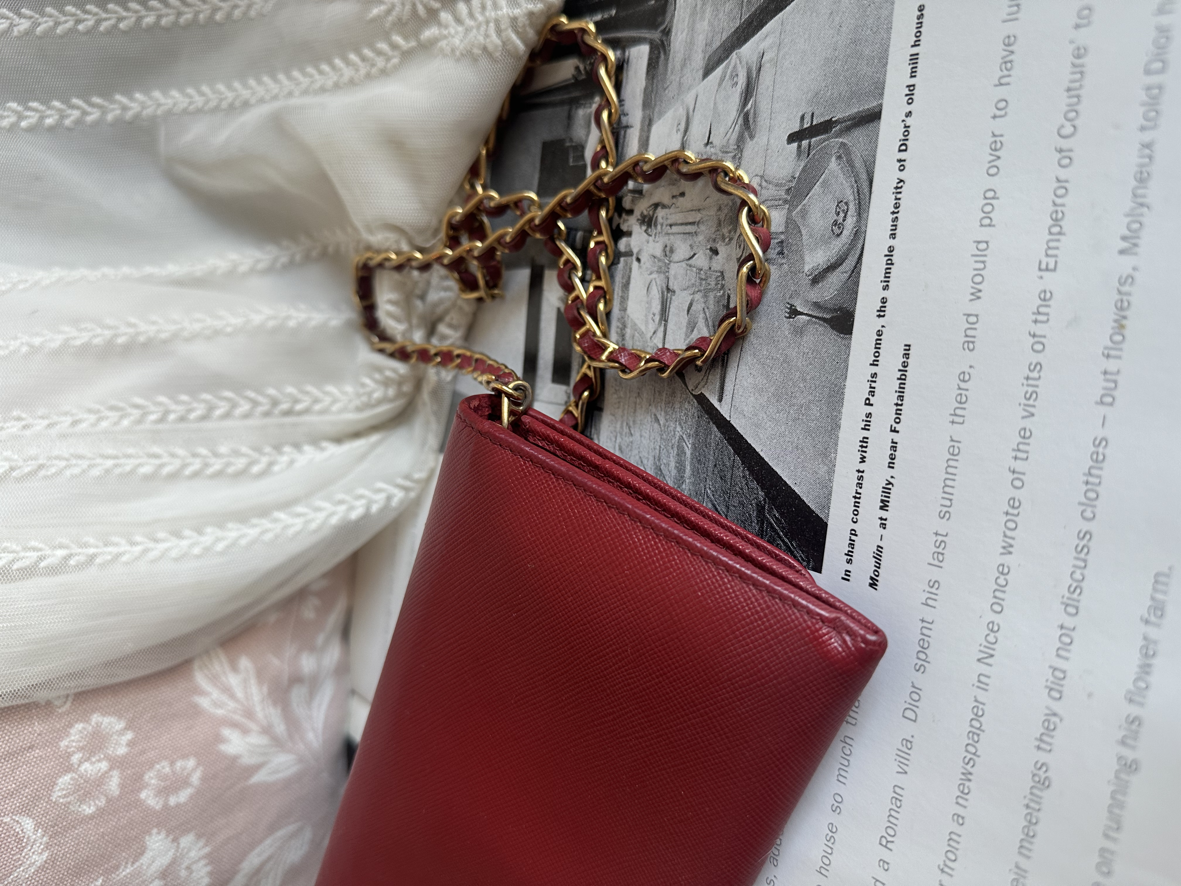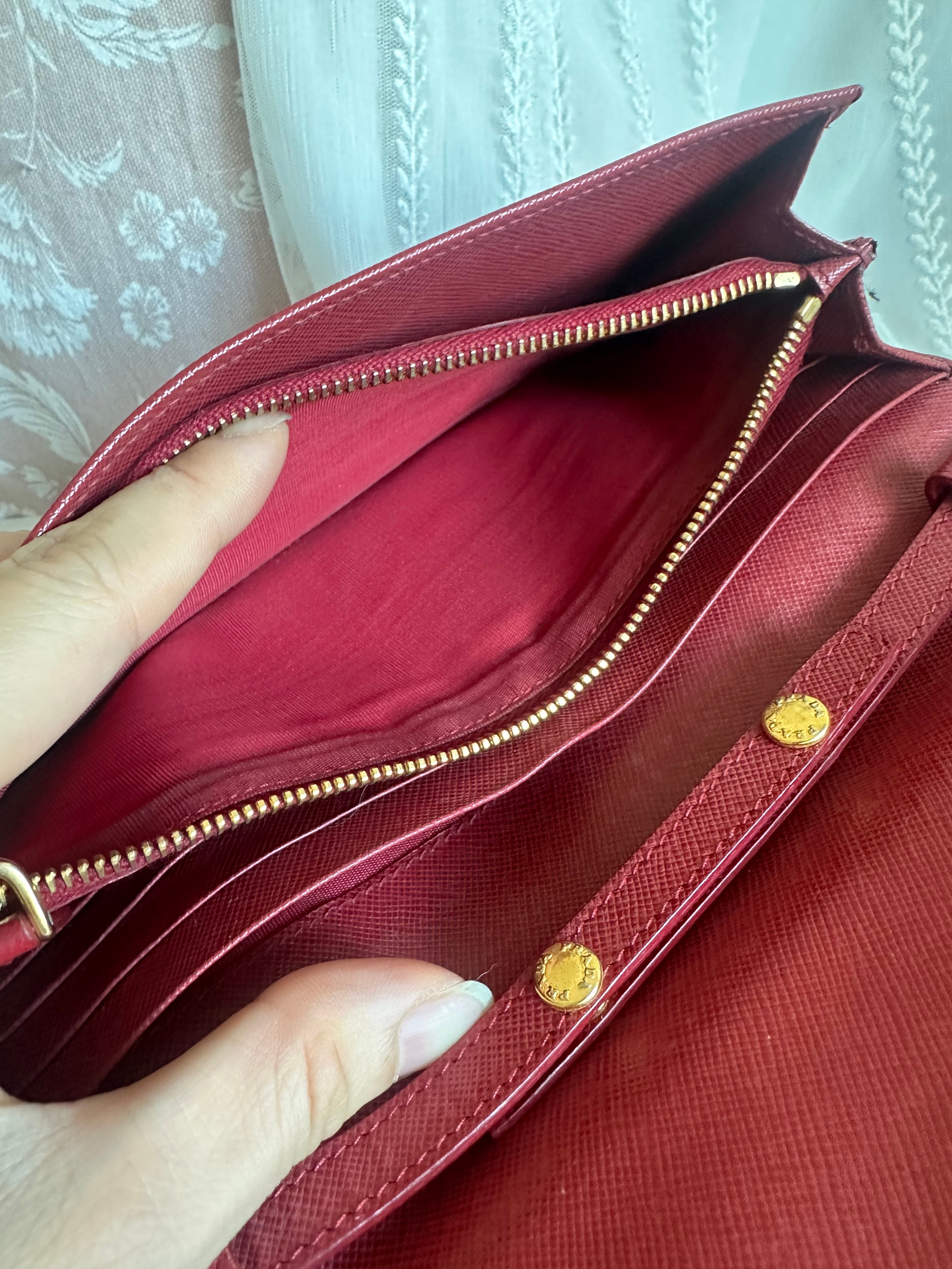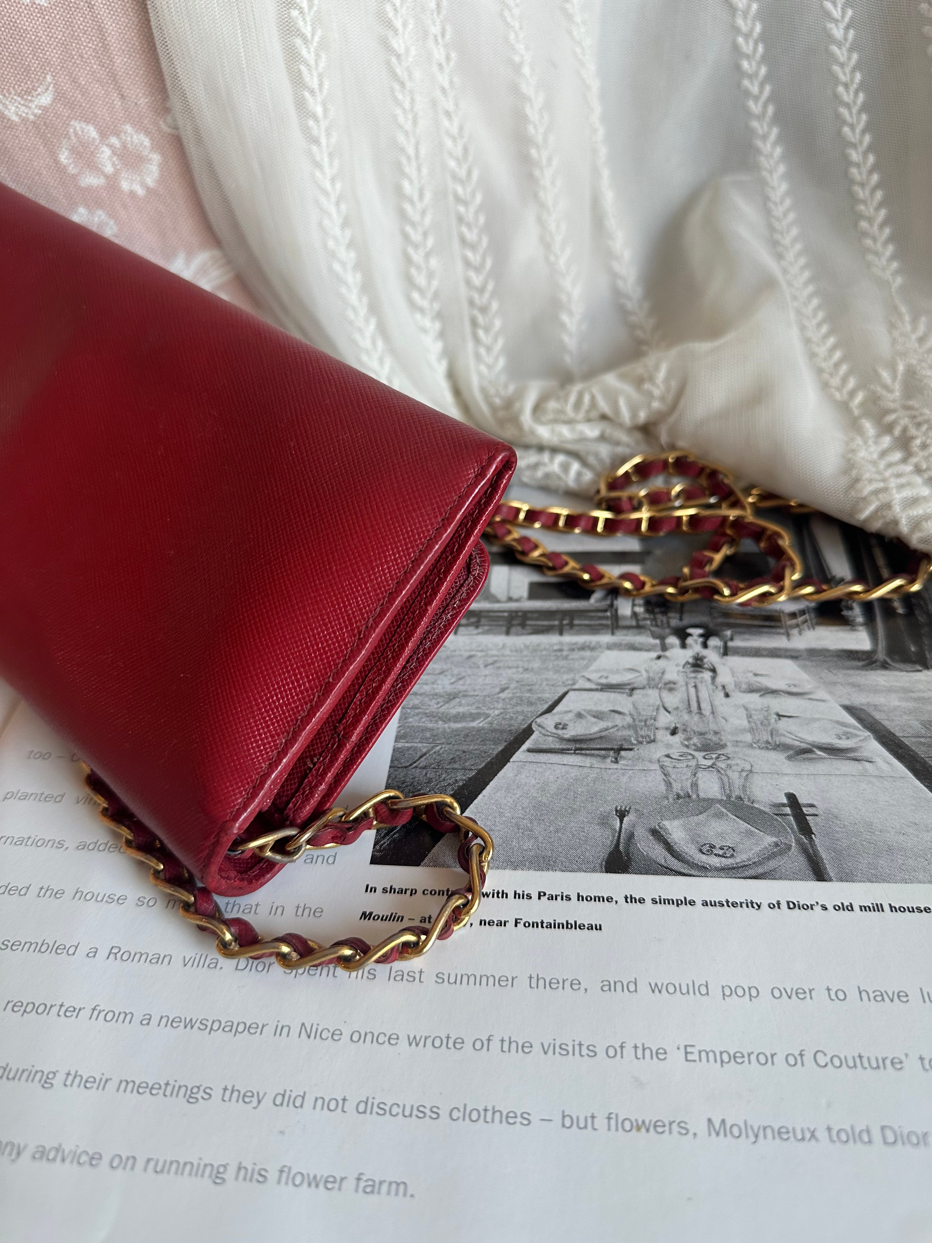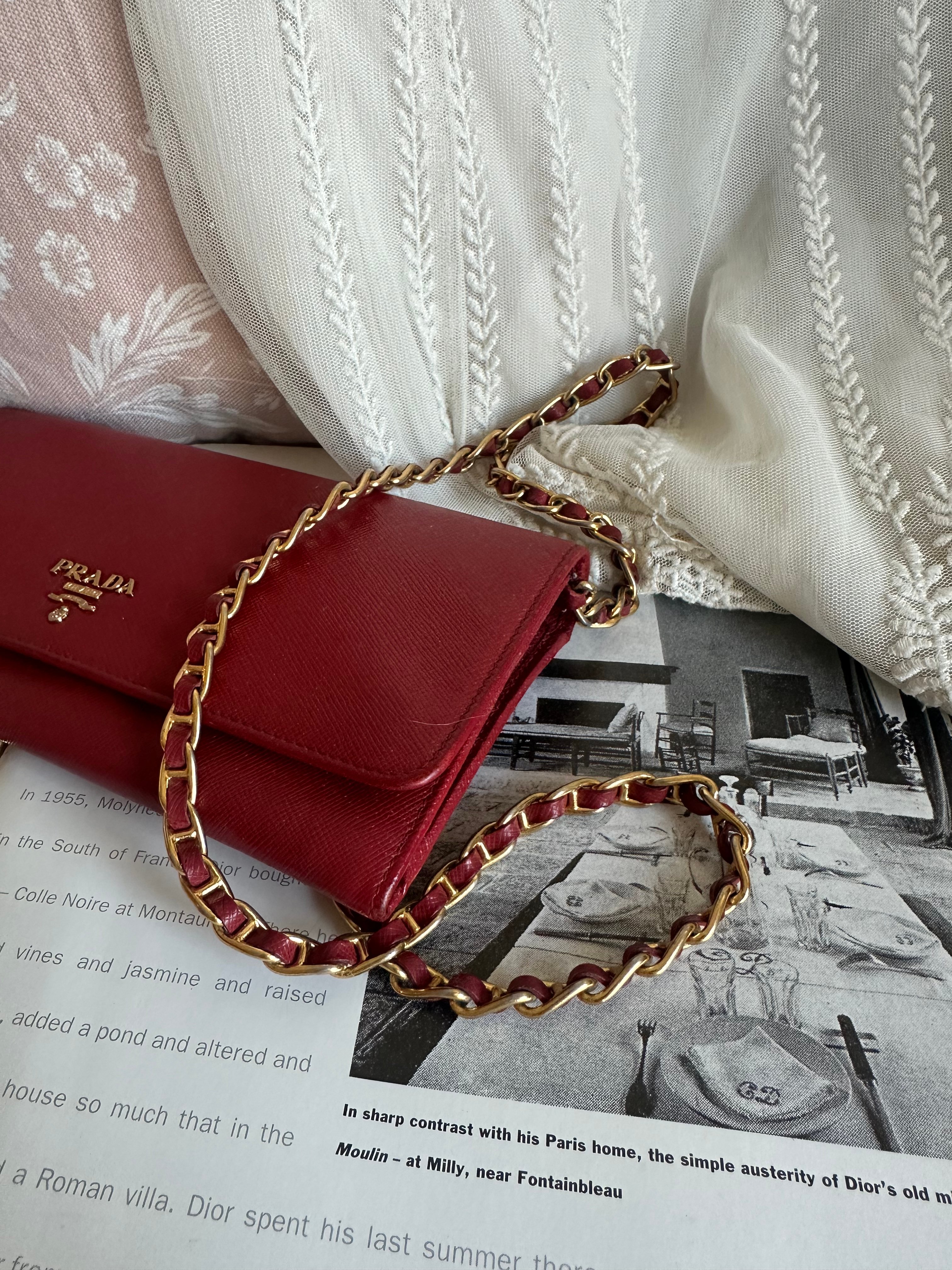Prada red Saffiano Leather 🧧wallet on chain