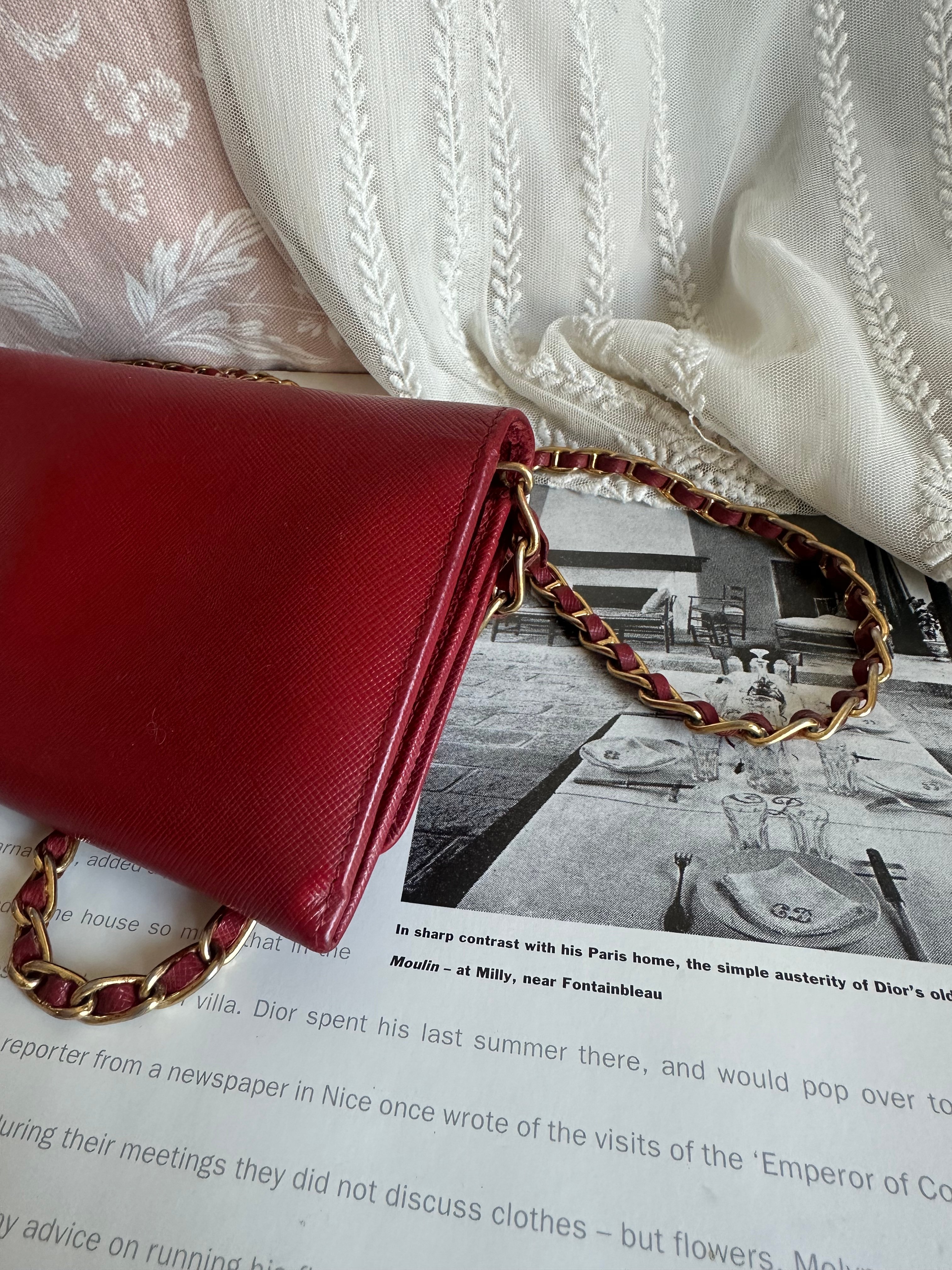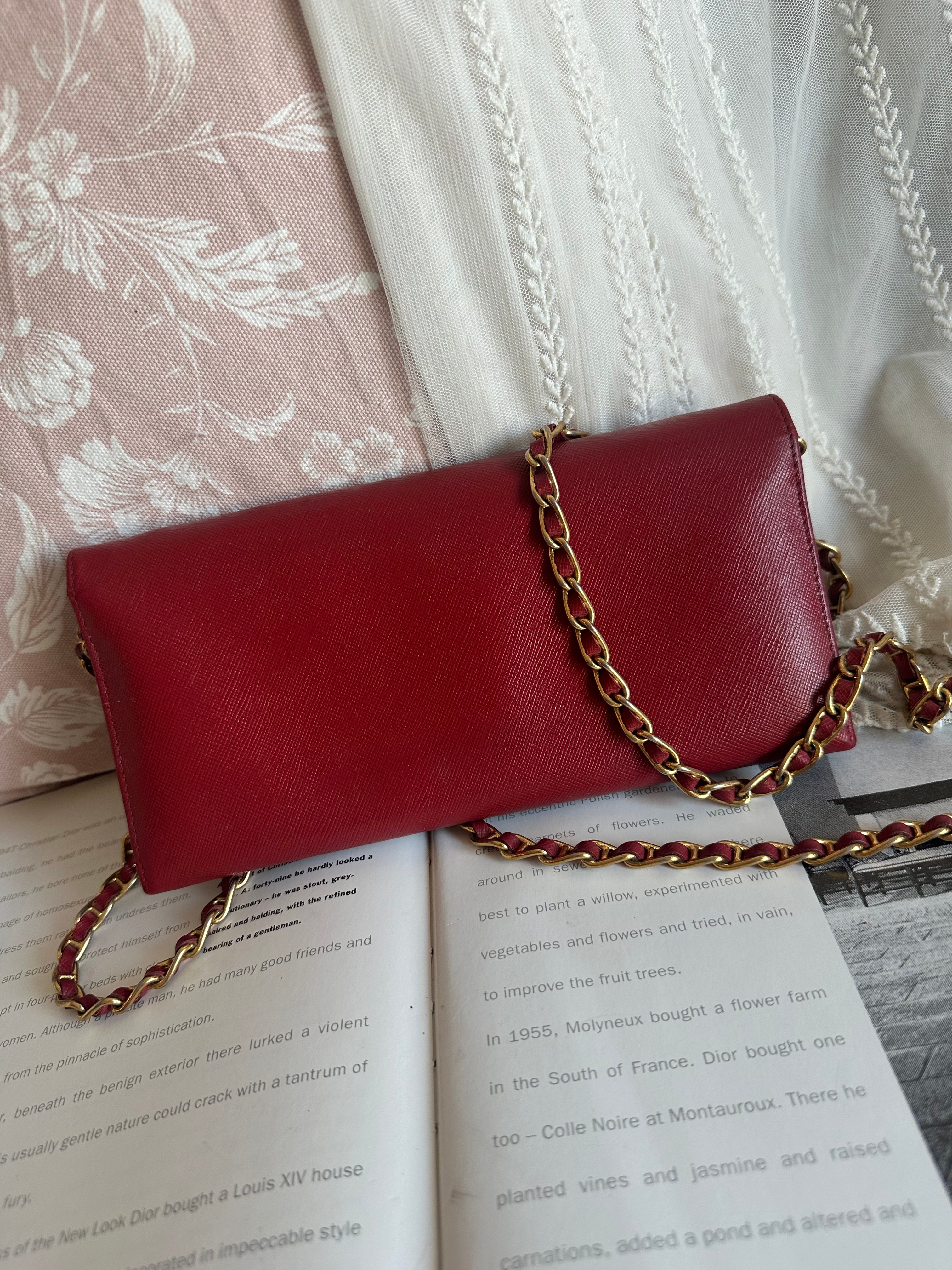 Prada red Saffiano Leather 🧧wallet on chain 紅色聖誕新年用啱晒 打牌包你大殺四方 🤣🤣 年頭旺到年尾🤣😆原裝chain可拆 可放iphone pro 💰1999 only Prada red Saffiano Leather 🧧wallet on chain 尺寸21x10.5x2cm 配件:原裝長鏈 狀態:外觀90新/内90新 Prada red Saffiano Leather 🧧wallet on chain Dimensions:21x10.5x2cm Accessories :original chain Condition:excellent